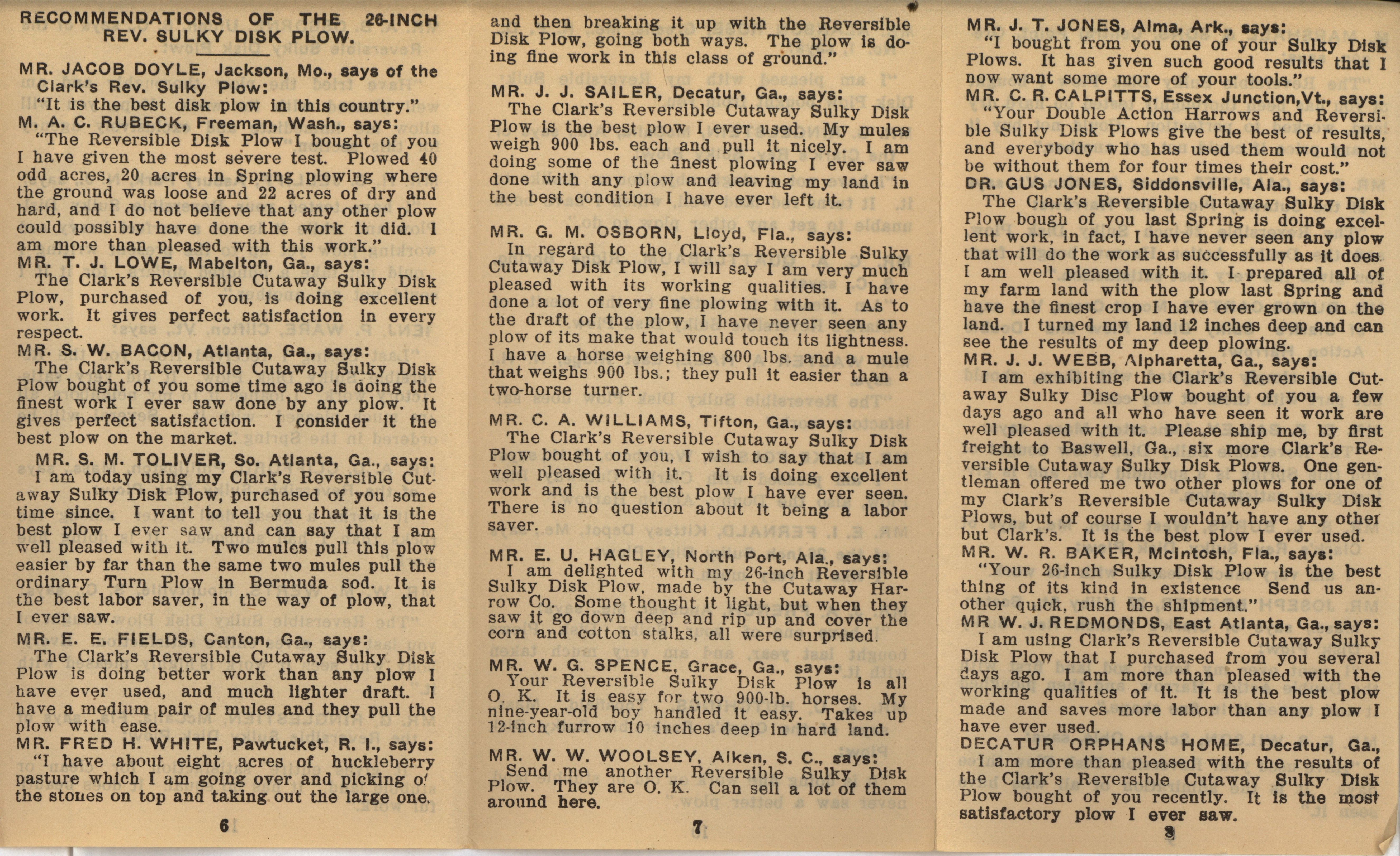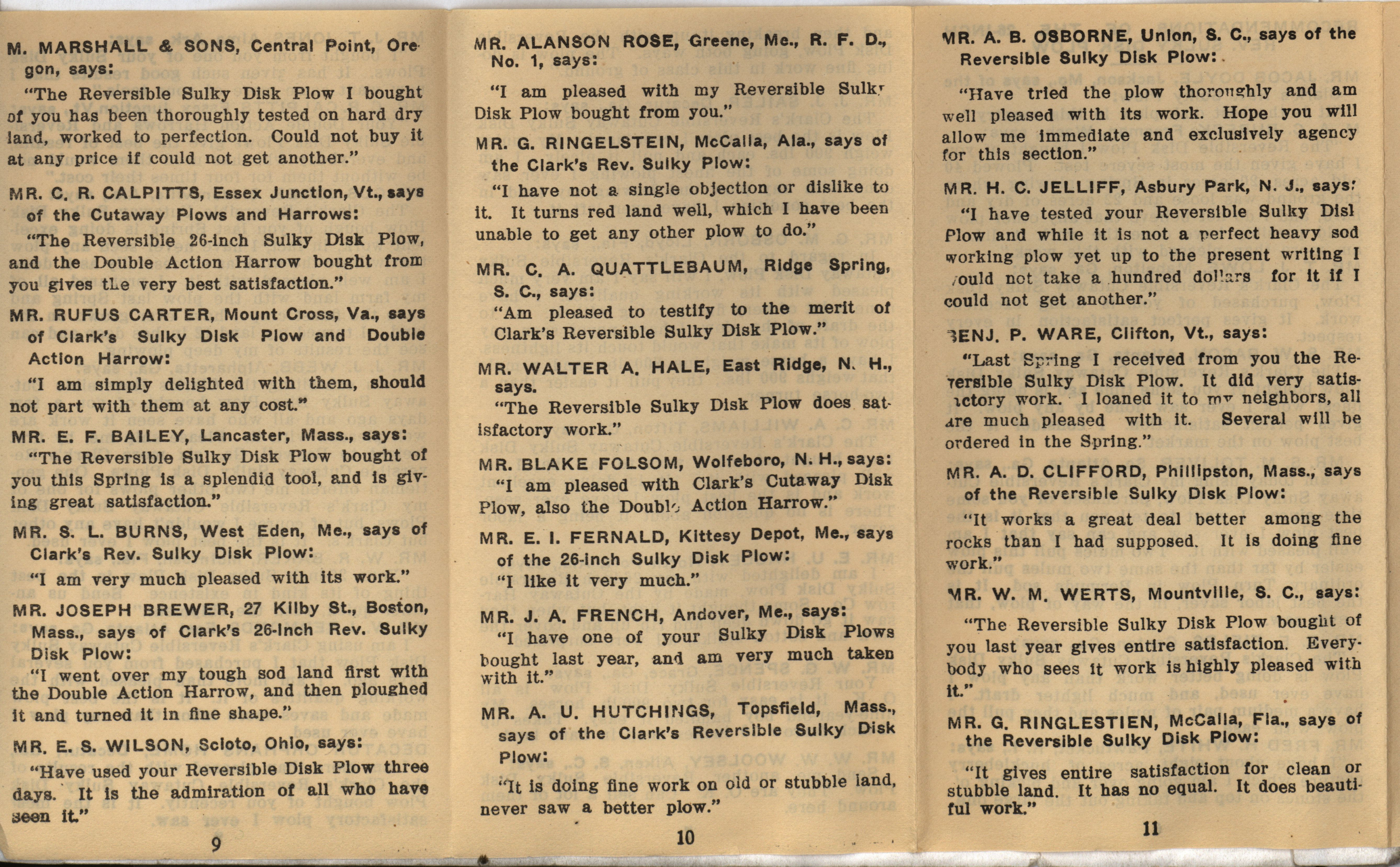 - Advertisement pamphlet for the cutaways offered by Cutaway Harrow Company, including testimonials and illustrations.