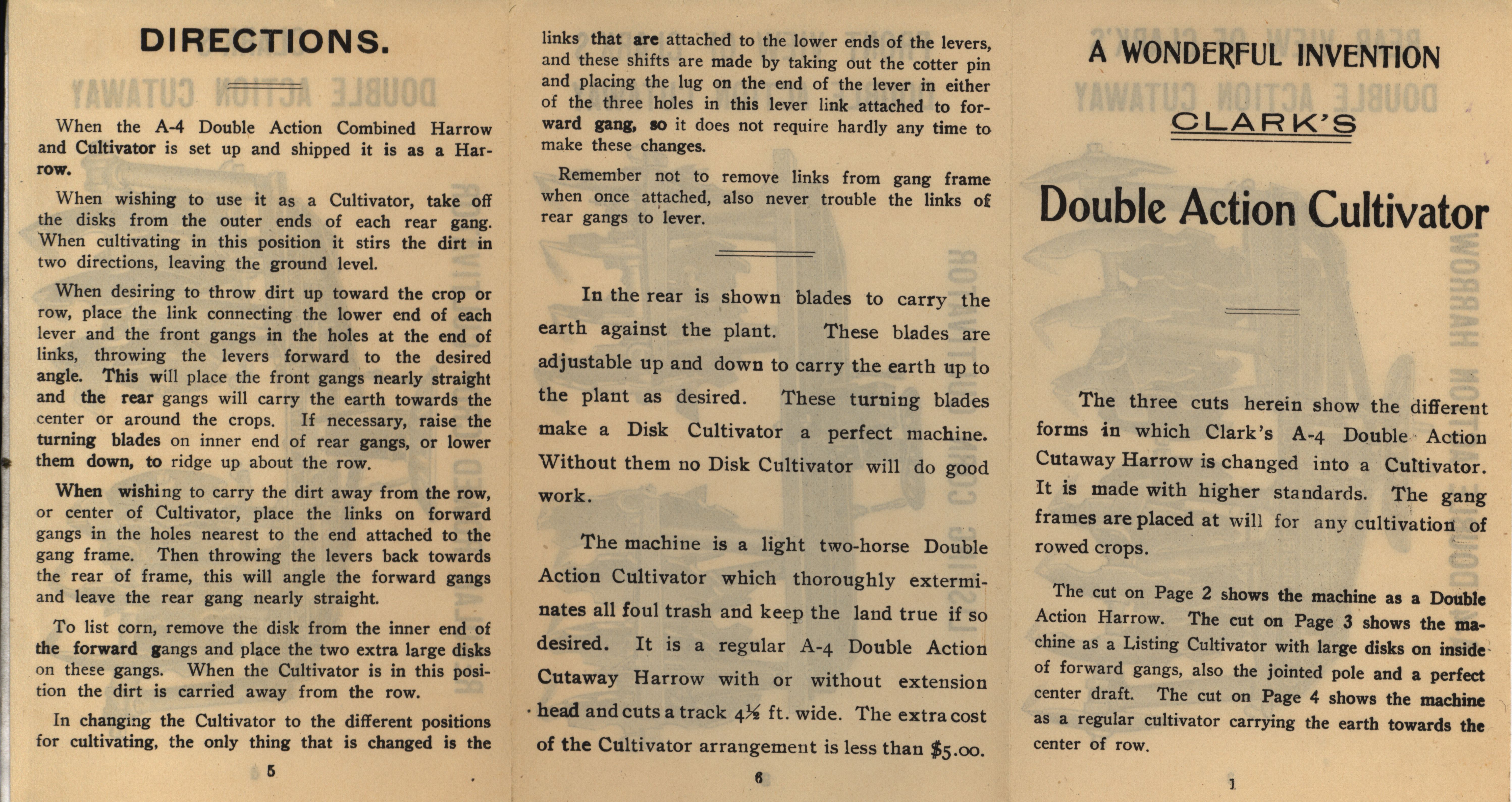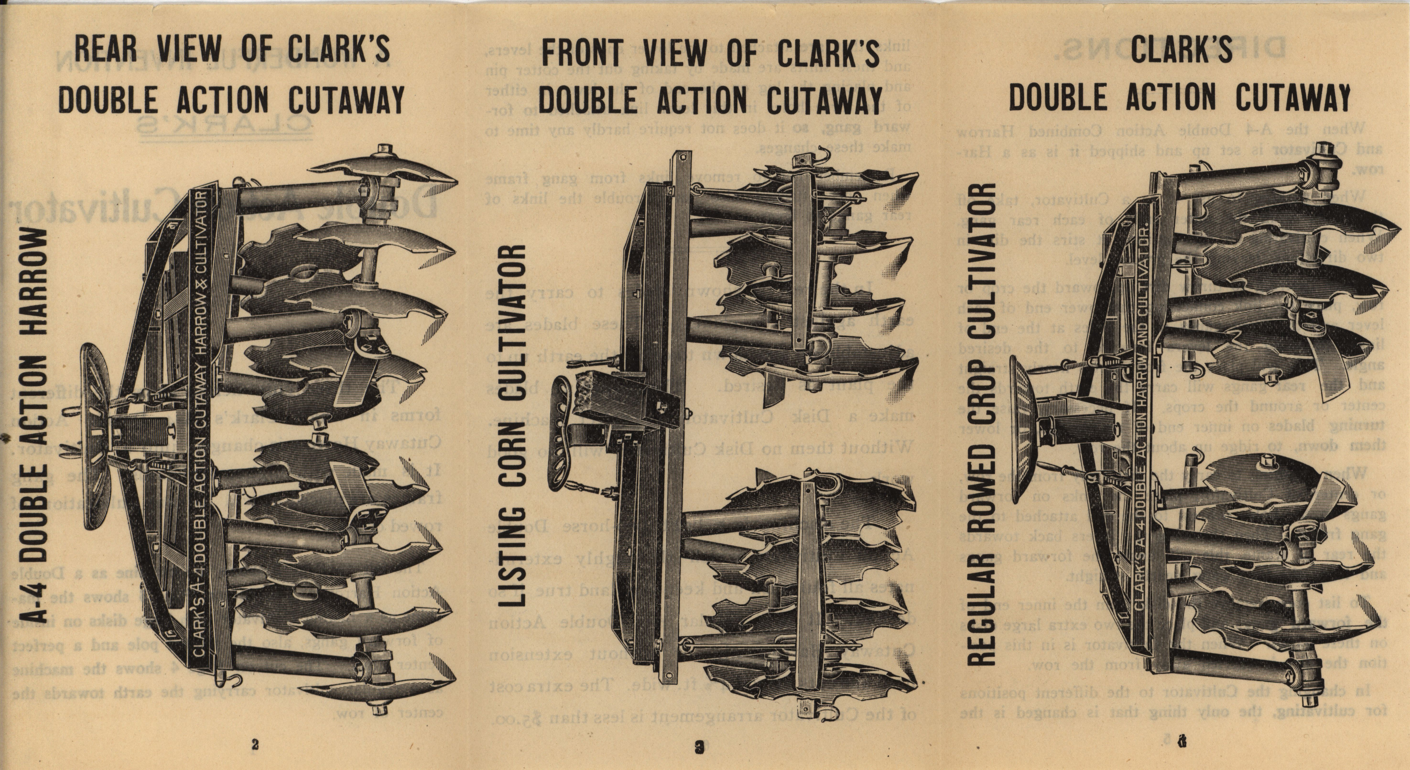 - "Clark's Double Action Cultivator advertisement and directions", Agricultural Machinery Literature Collection, Iowa State University Library Digital Collections