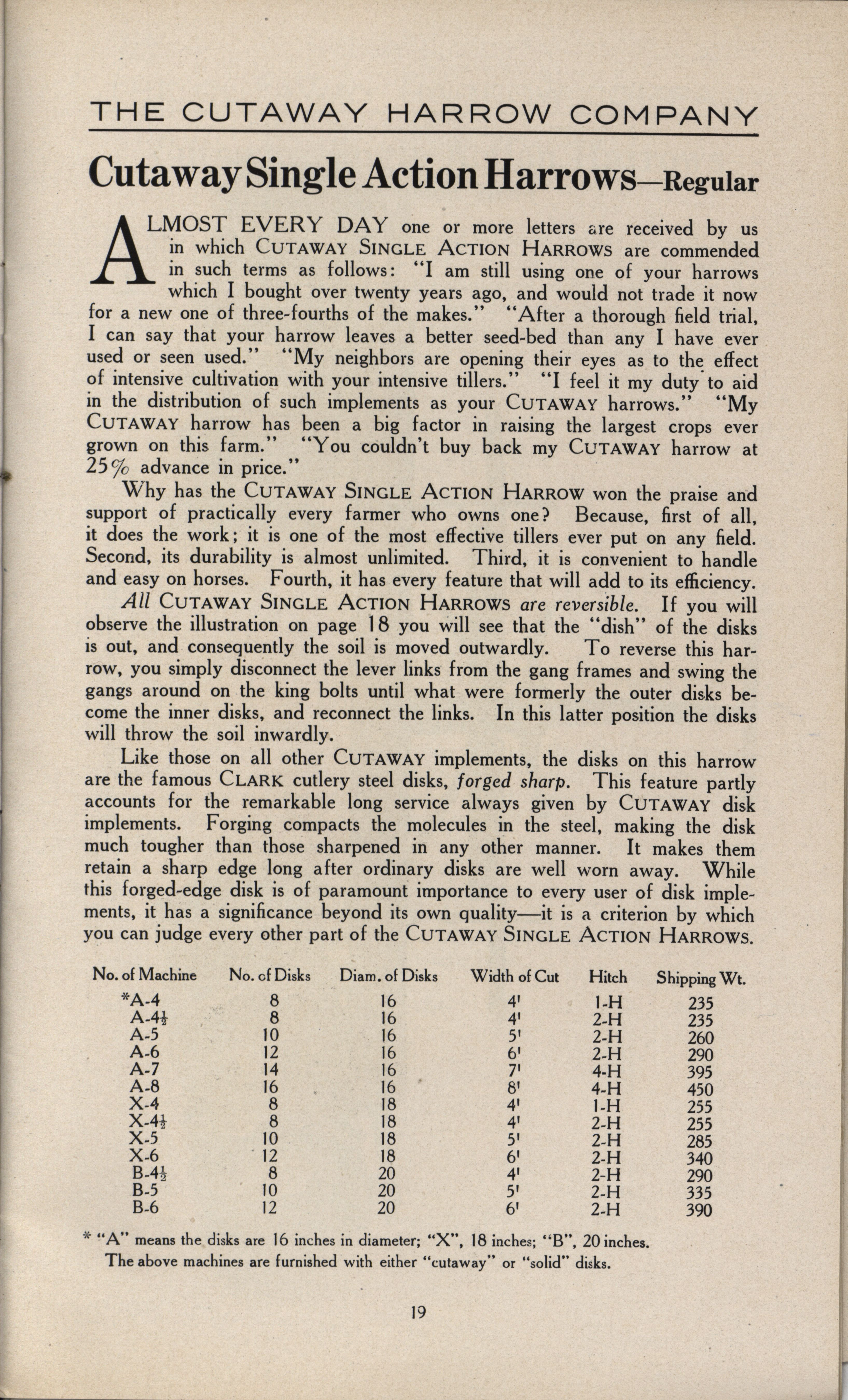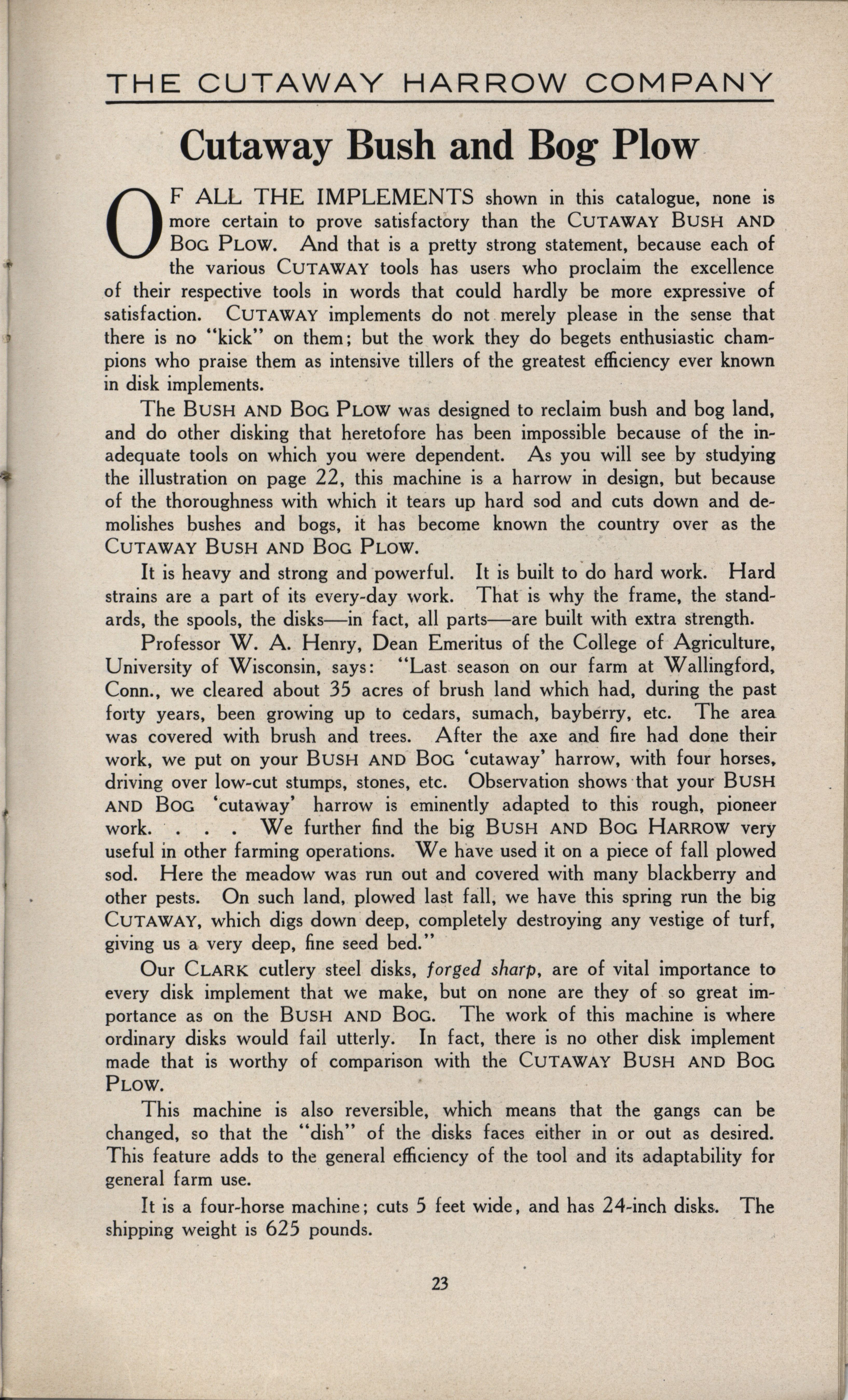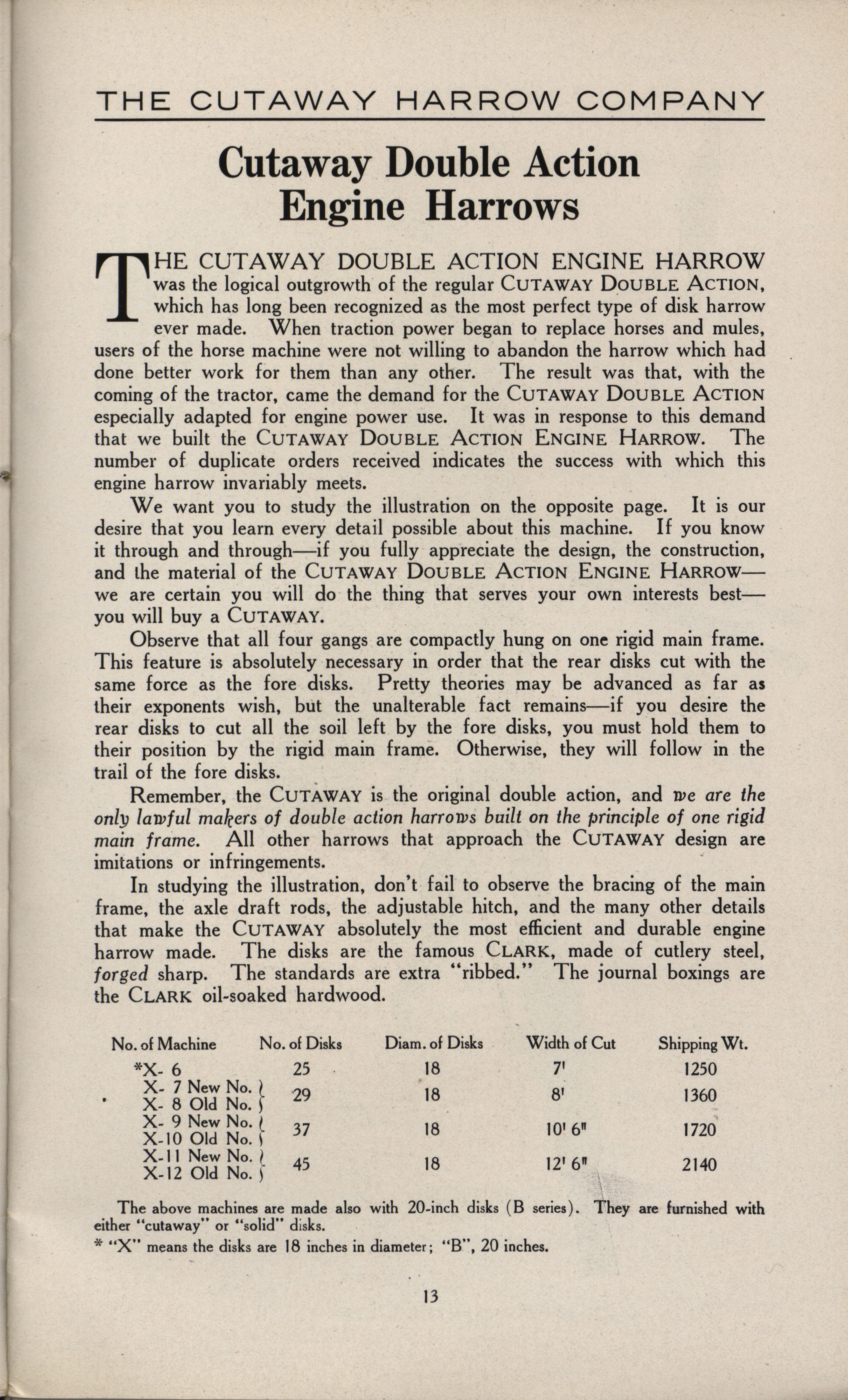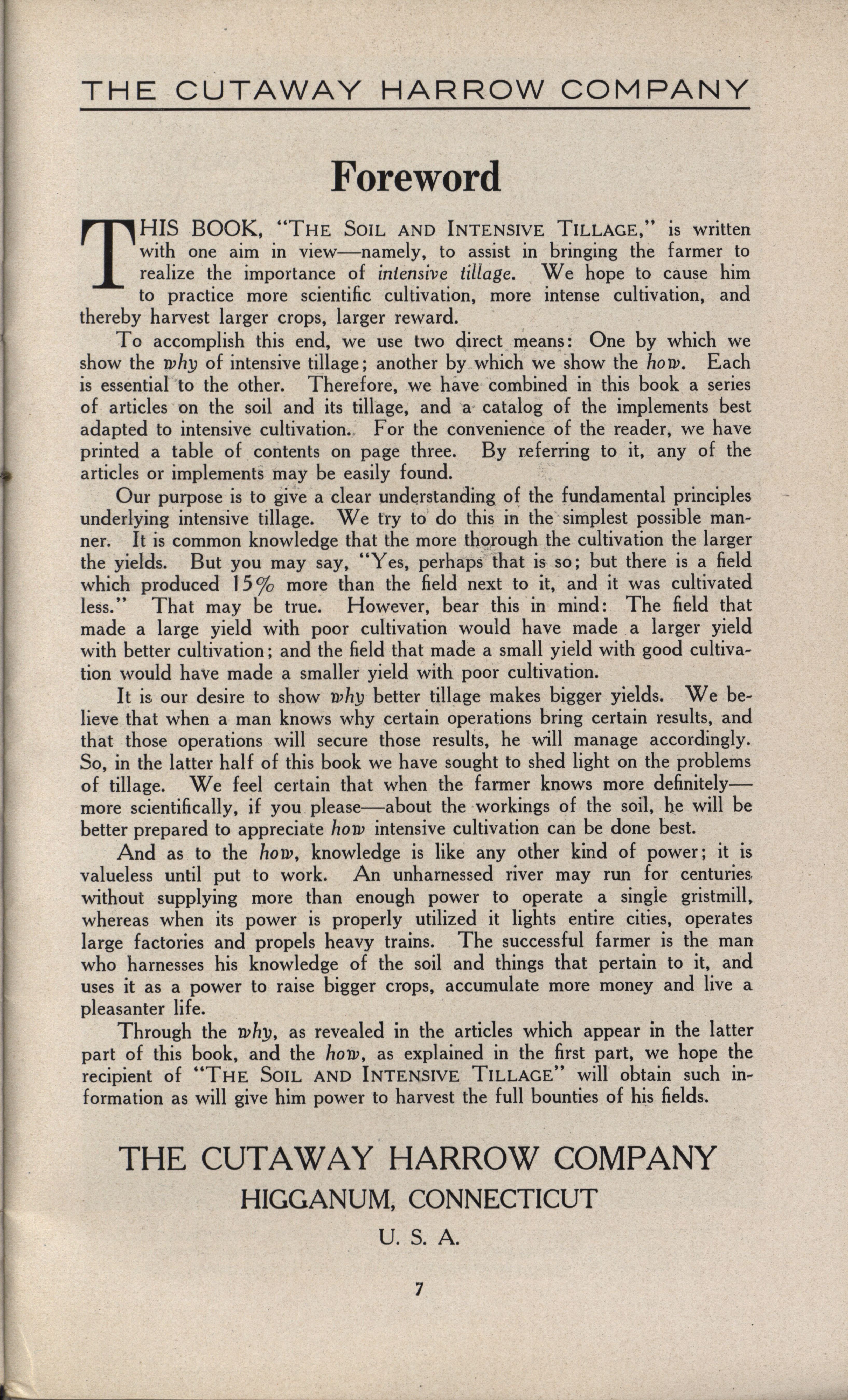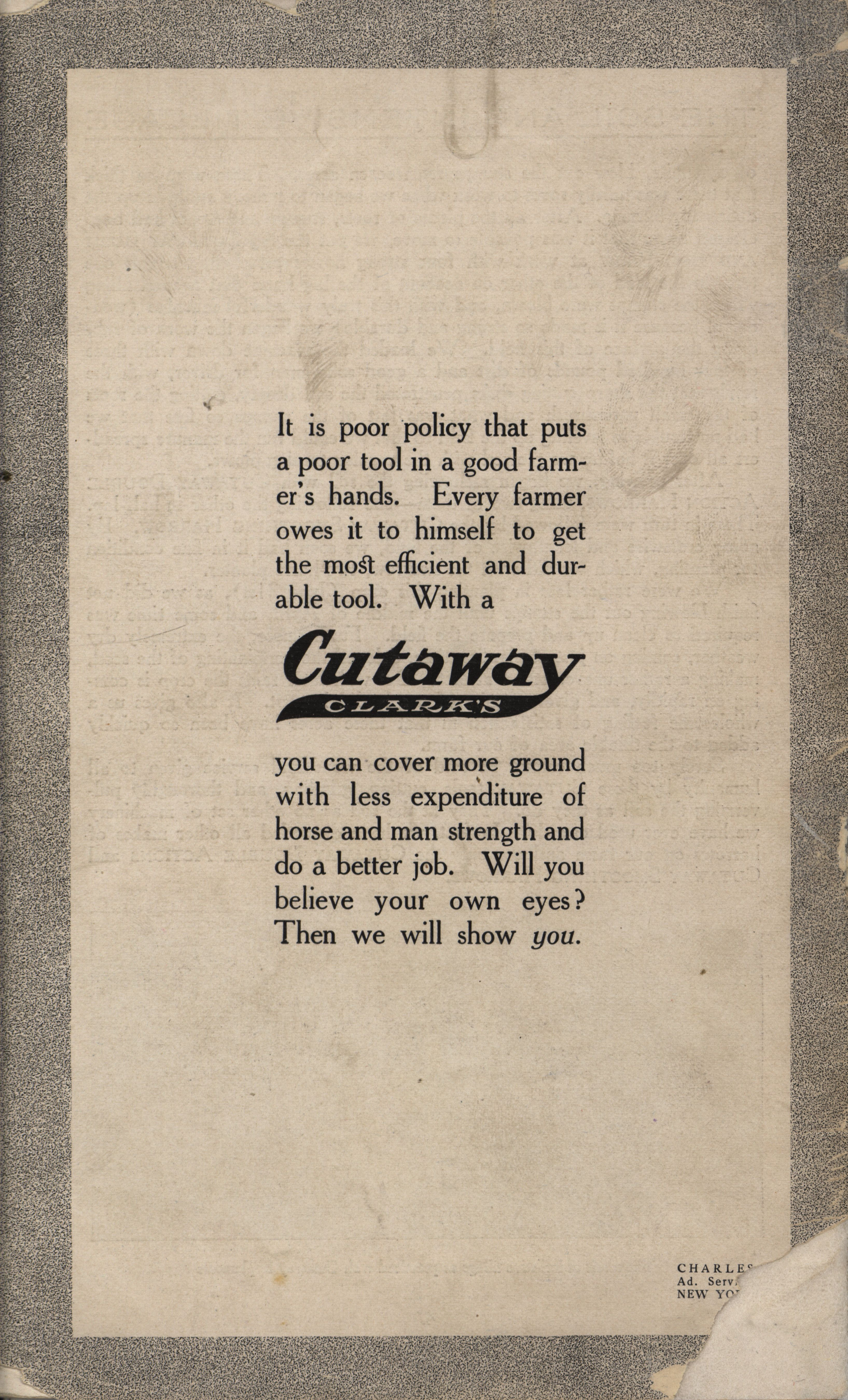 - Catalog describing the benefits of Cutaway Harrow Company products for soil tillage from 1922.
