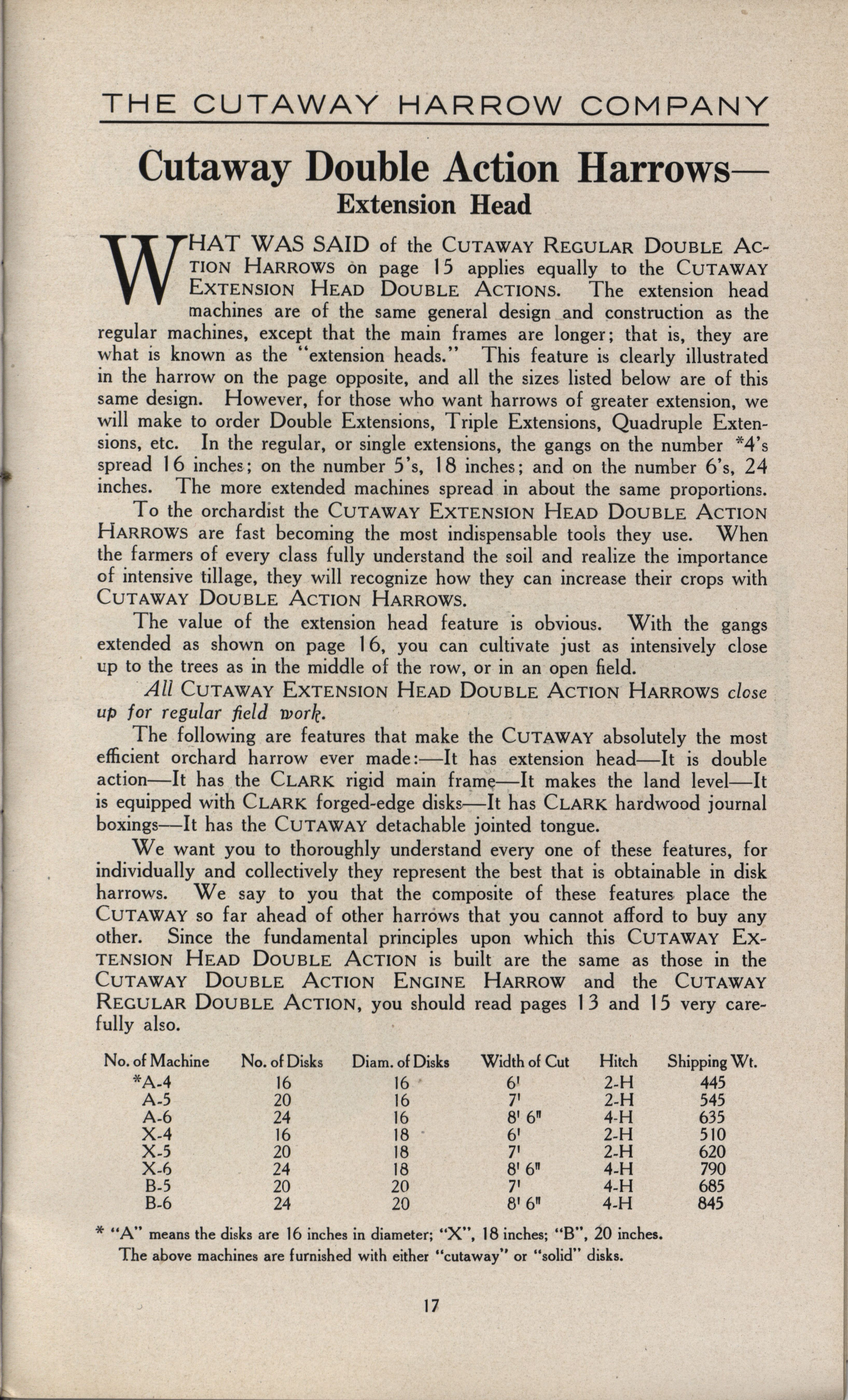 Cutaway Harrow Company soil and intensive tillage catalog Item Info