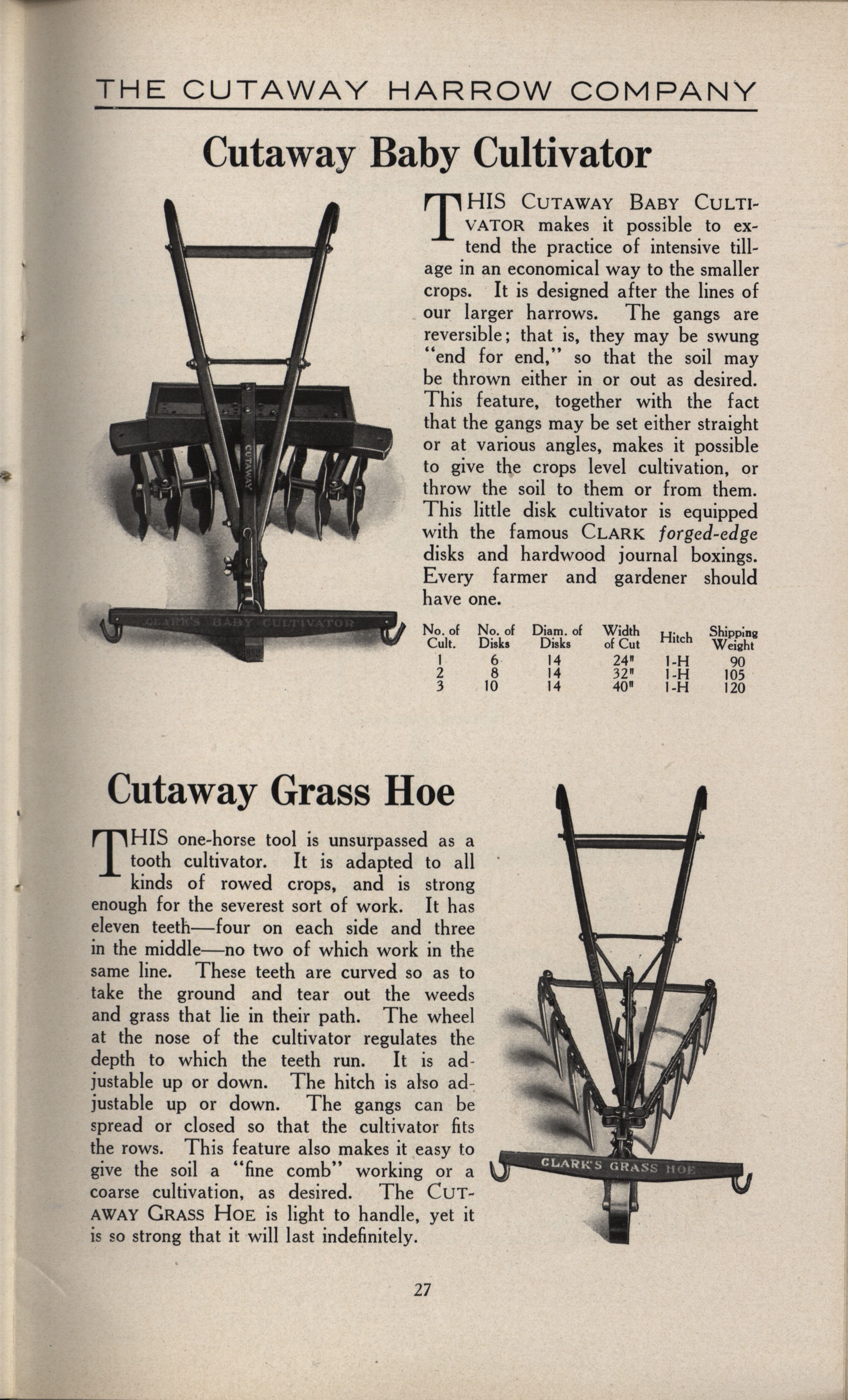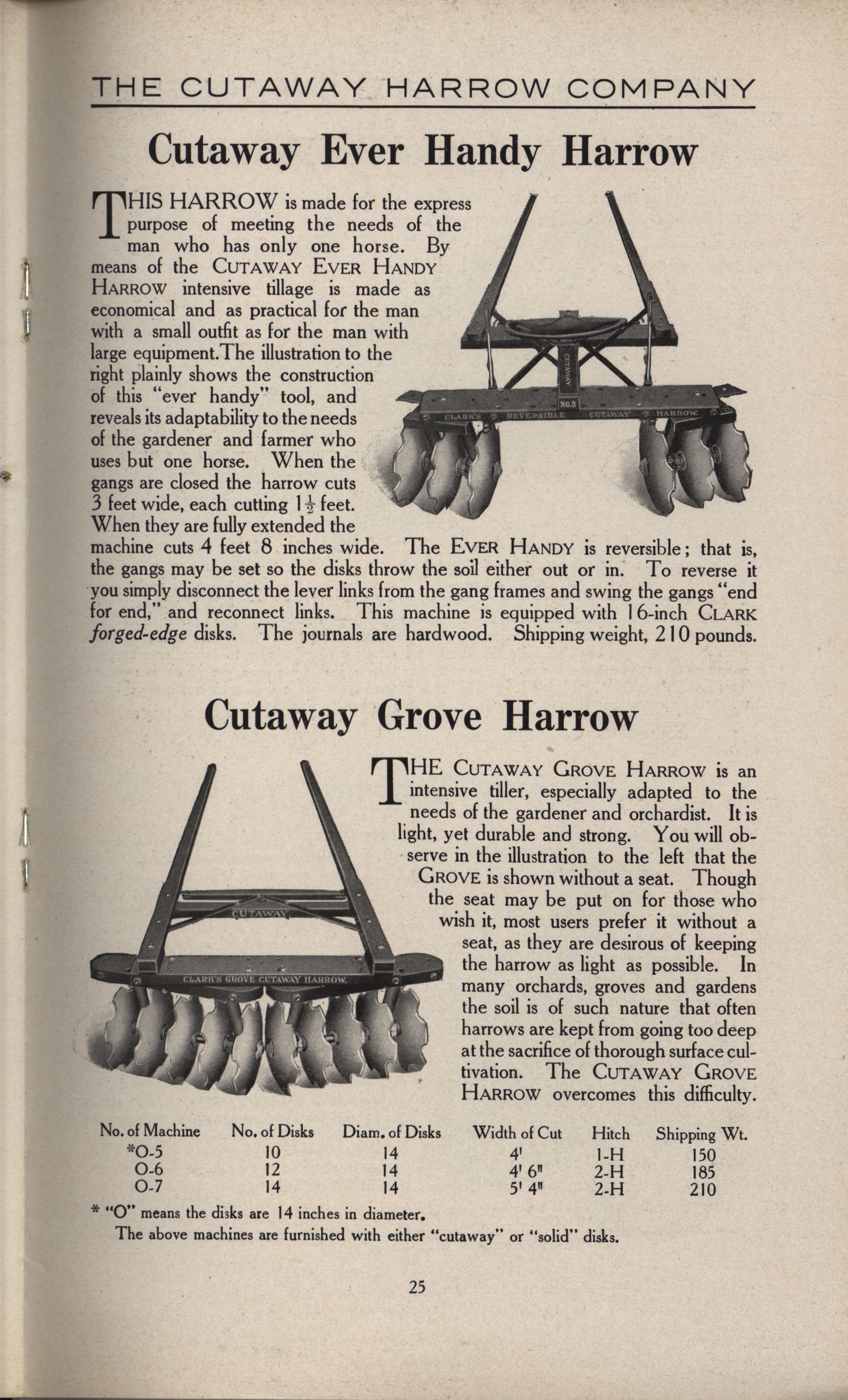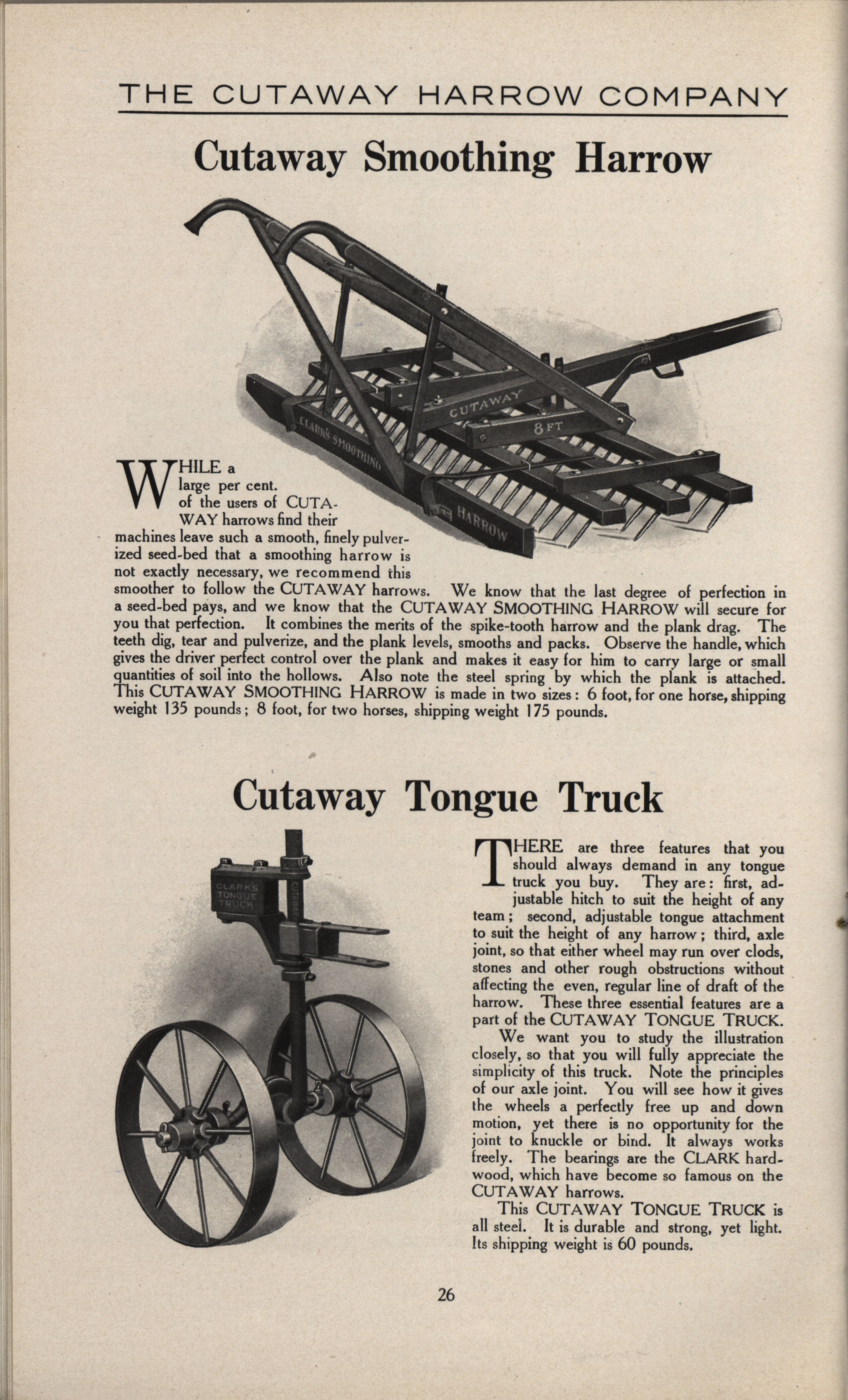- "Cutaway Harrow Company soil and intensive tillage catalog", Agricultural Machinery Literature Collection, Iowa State University Library Digital Collections