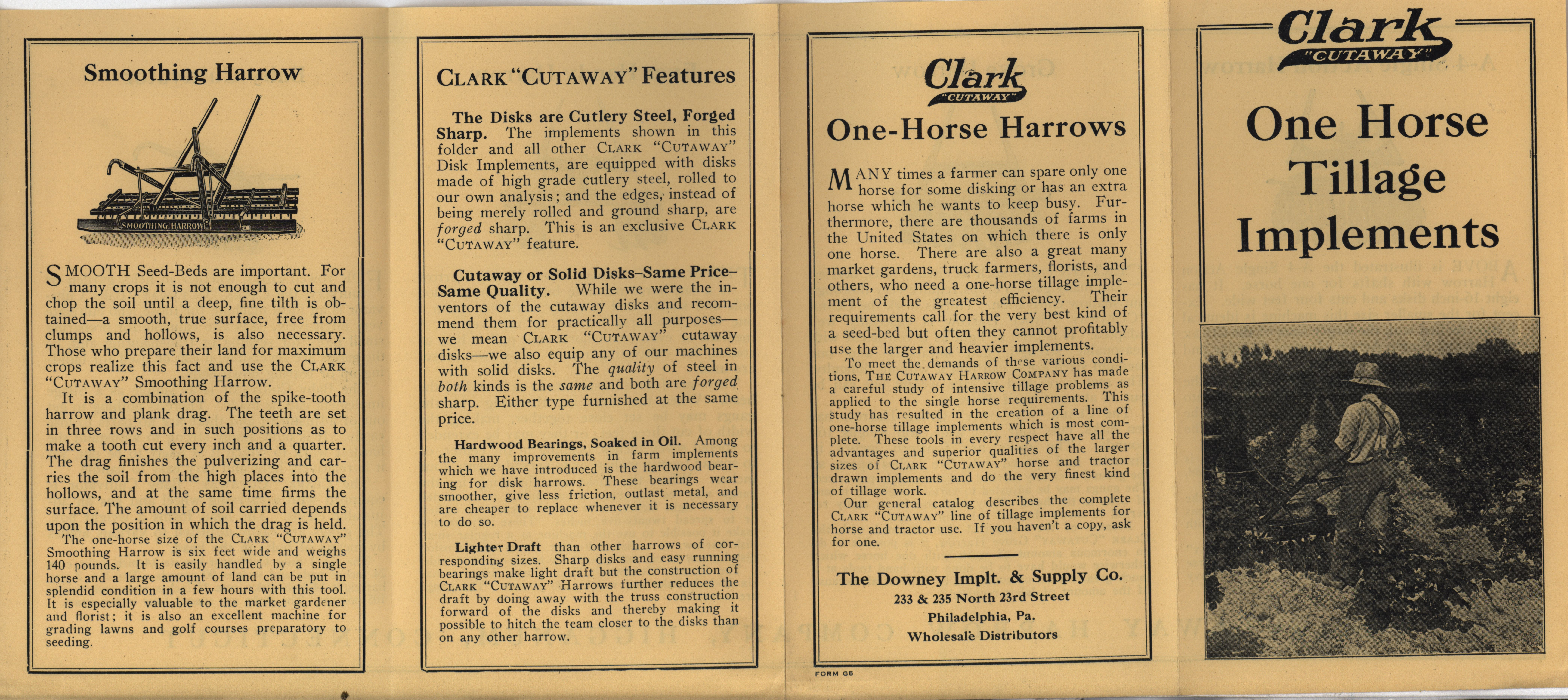 - Cutaway Harrow Company one horse tillage implements advertisement pamphlet