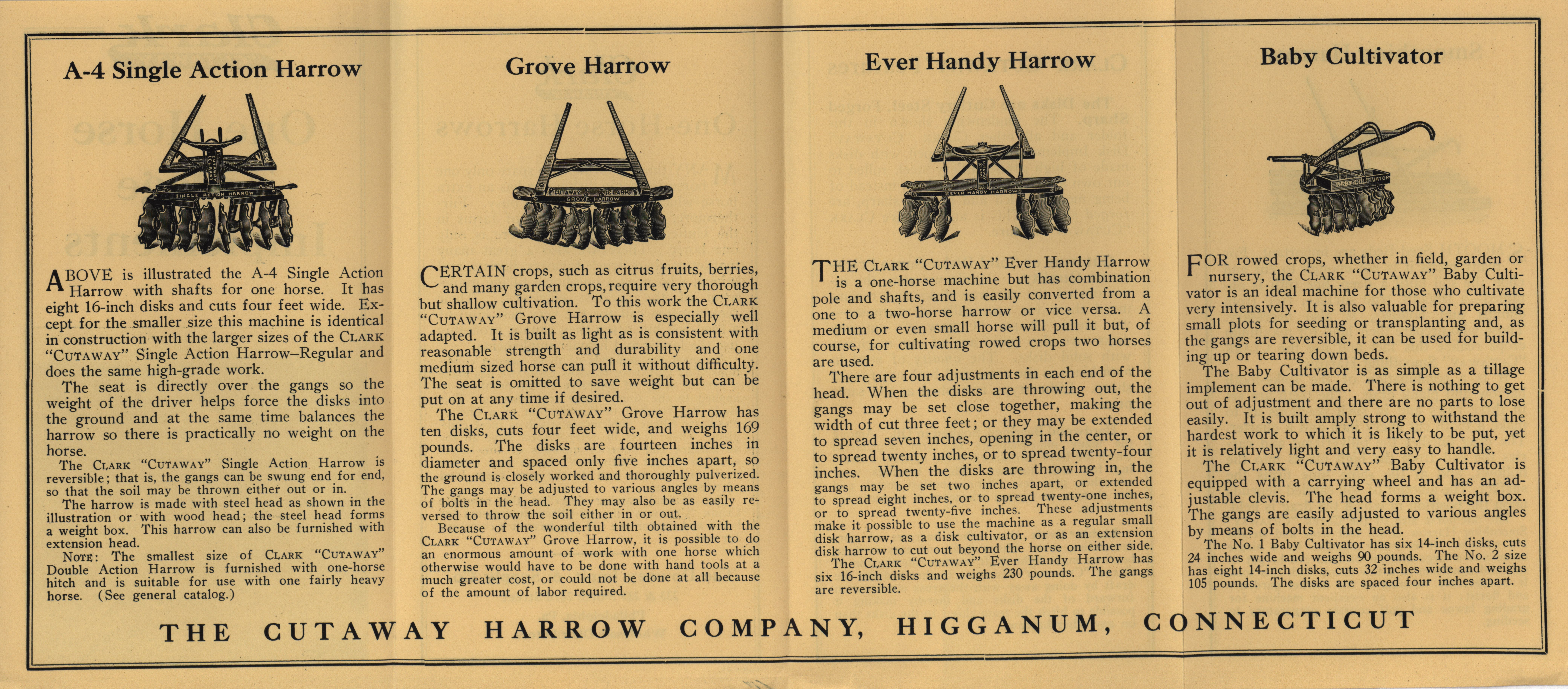 - "Cutaway Harrow Company one horse tillage implements advertisement pamphlet", Agricultural Machinery Literature Collection, Iowa State University Library Digital Collections