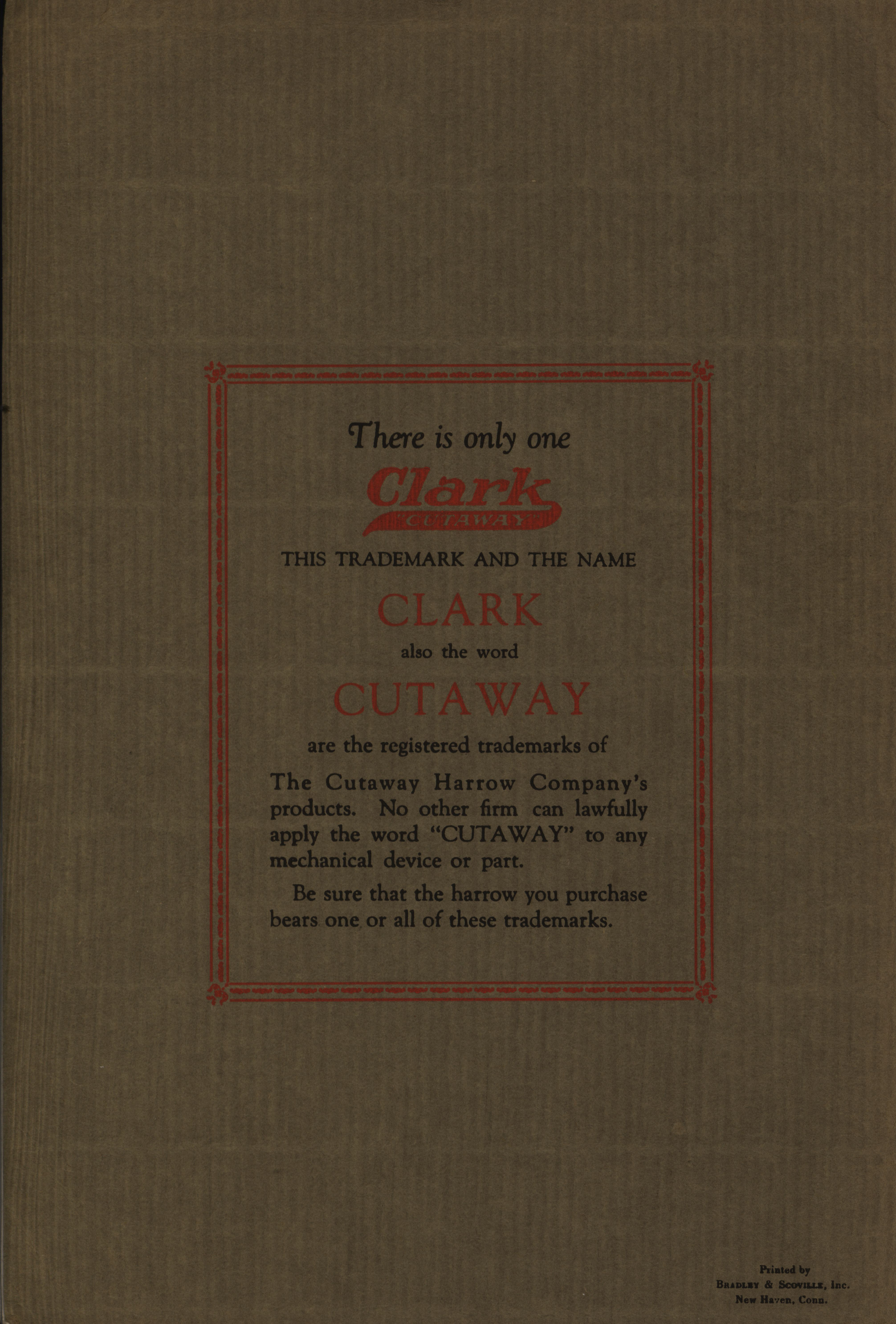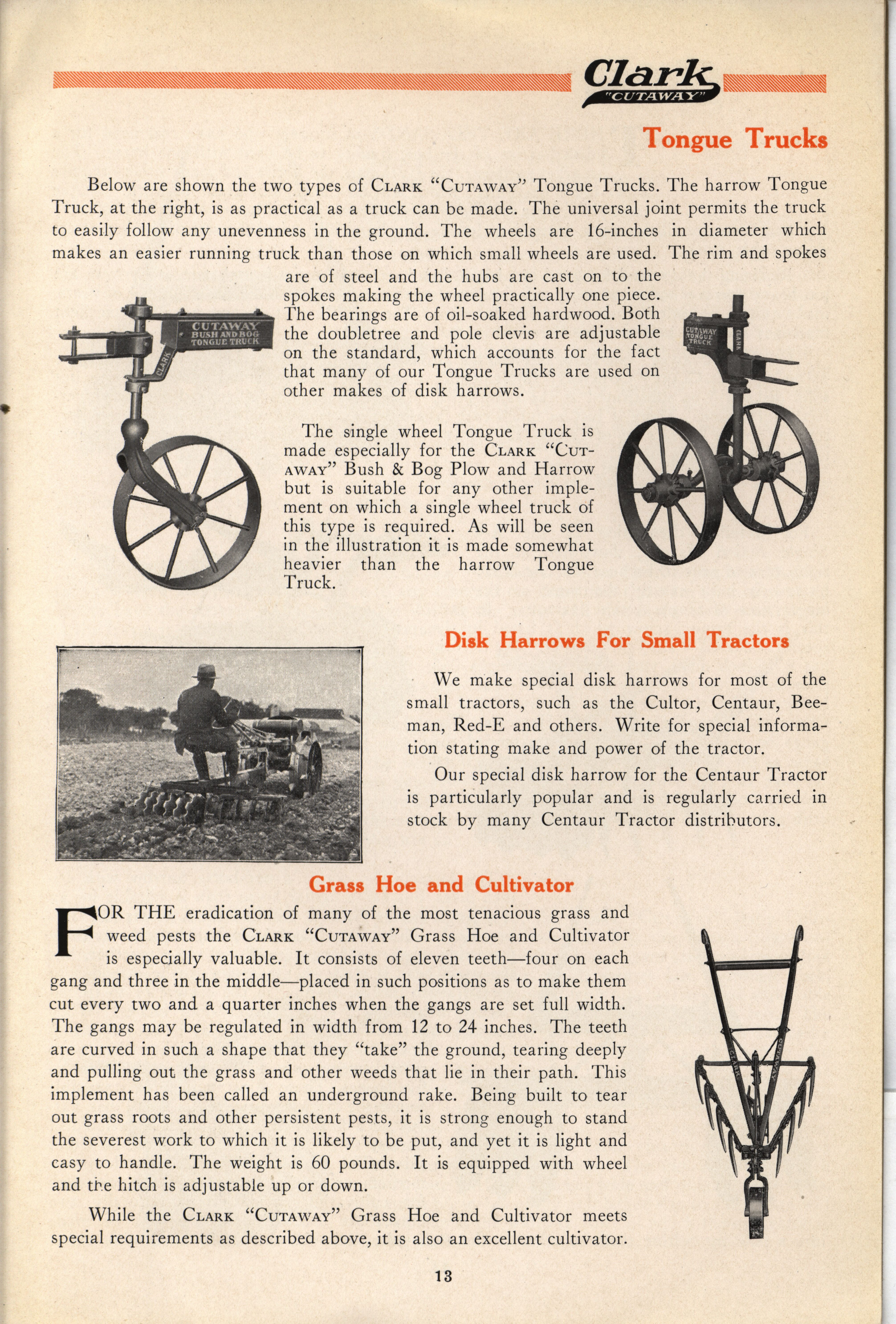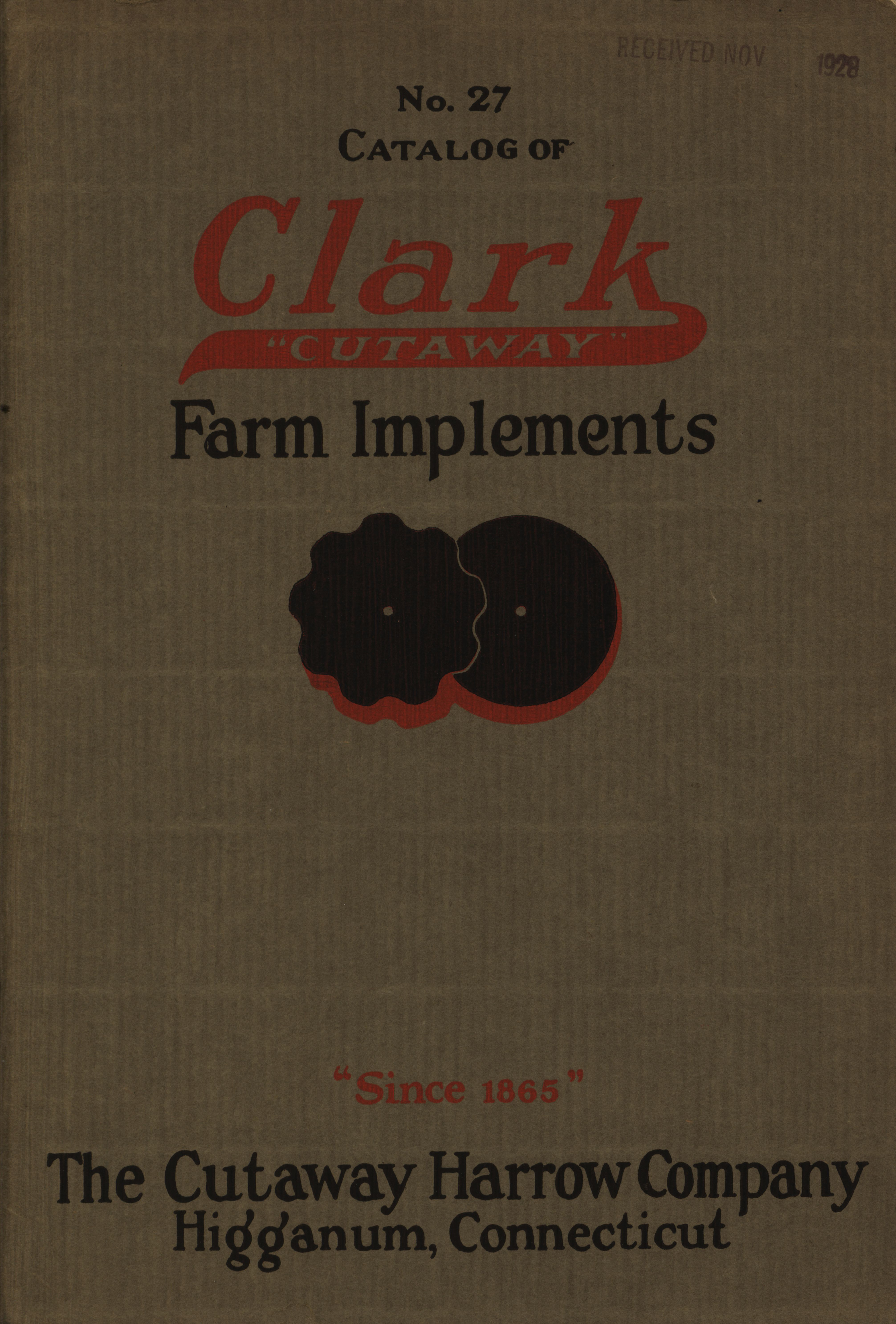 - Illustrated catalog describing the Clark Cutaway farm implements and related products offered by the Cutaway Harrow Company.
