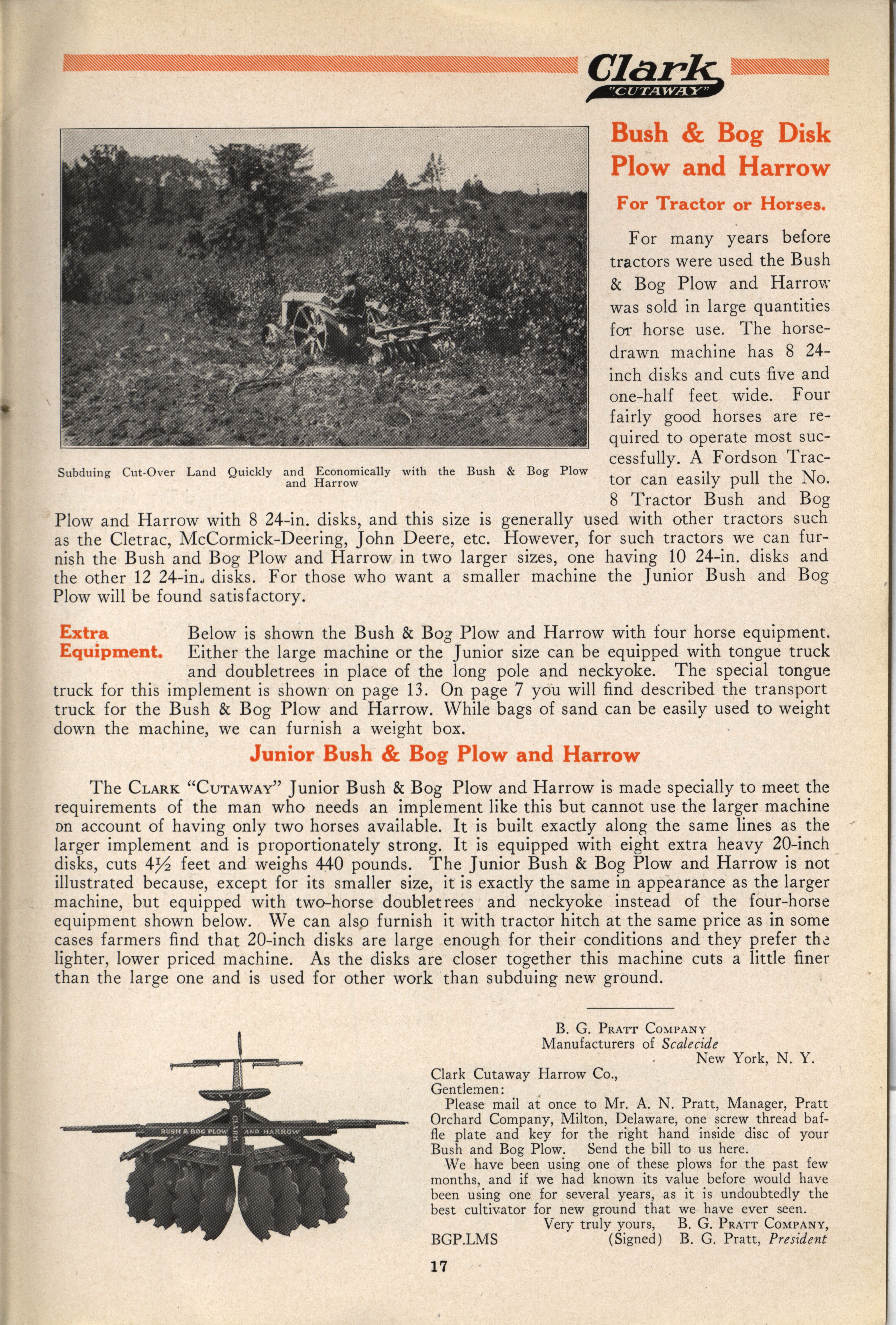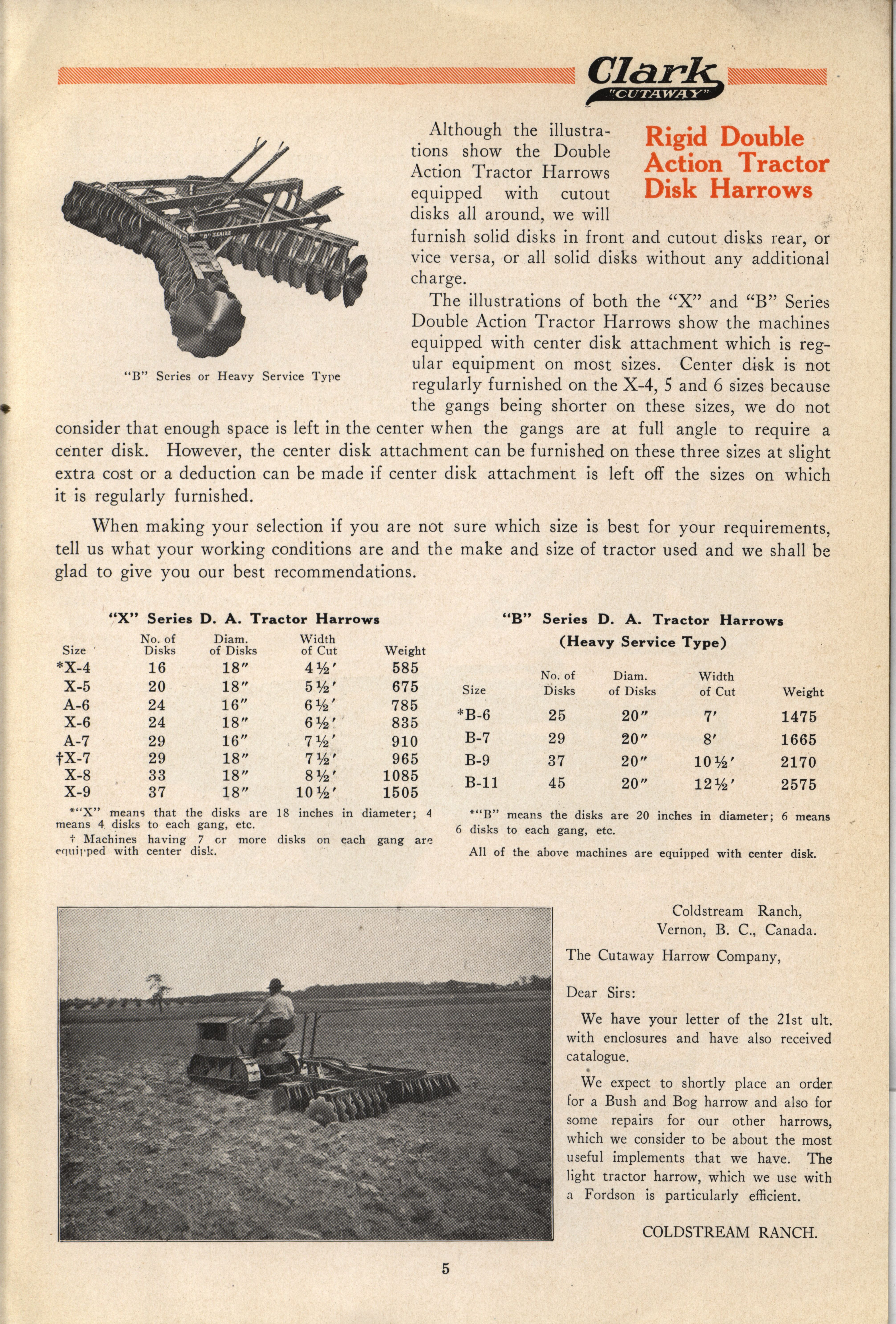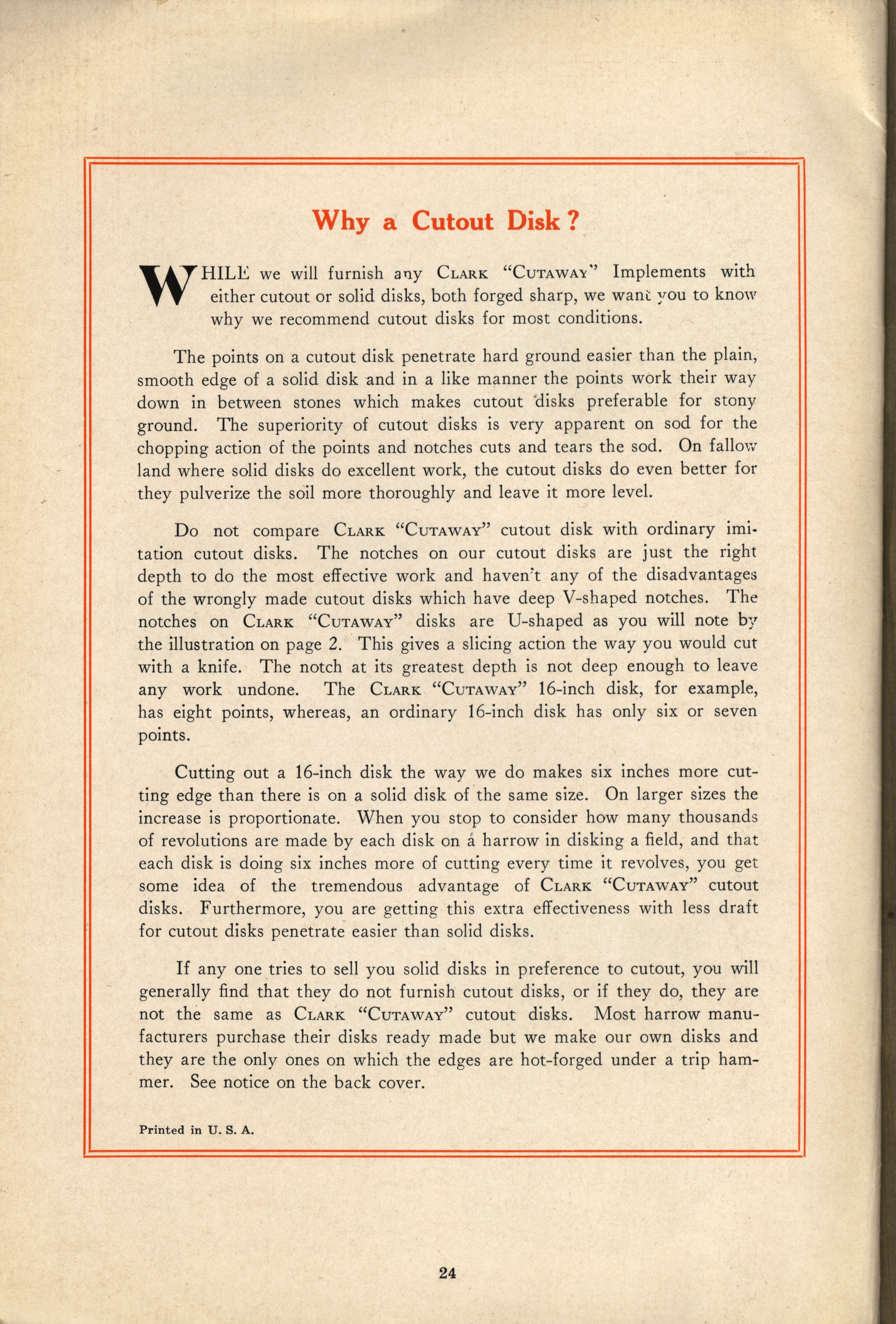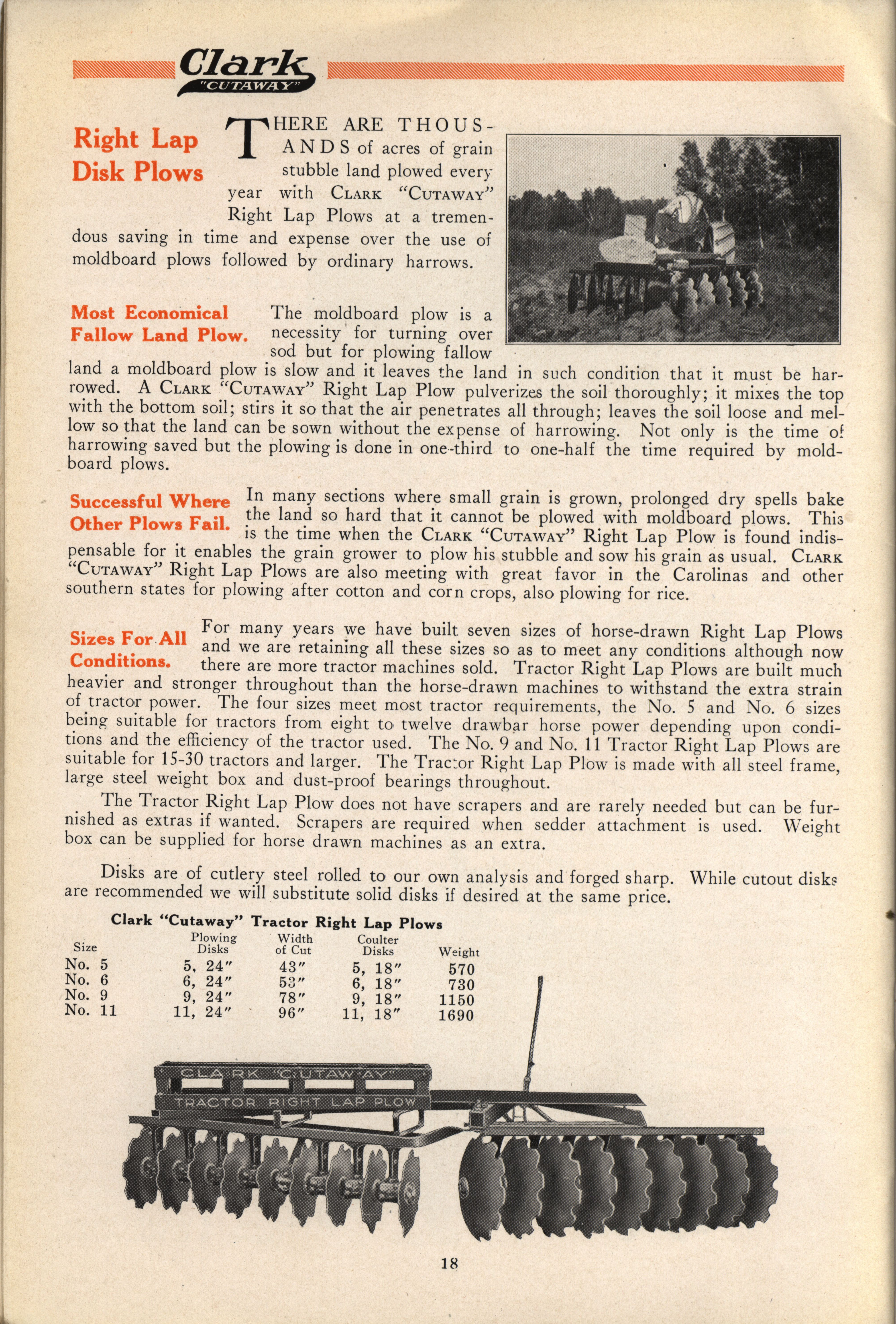 - Illustrated catalog describing the Clark Cutaway farm implements and related products offered by the Cutaway Harrow Company.
