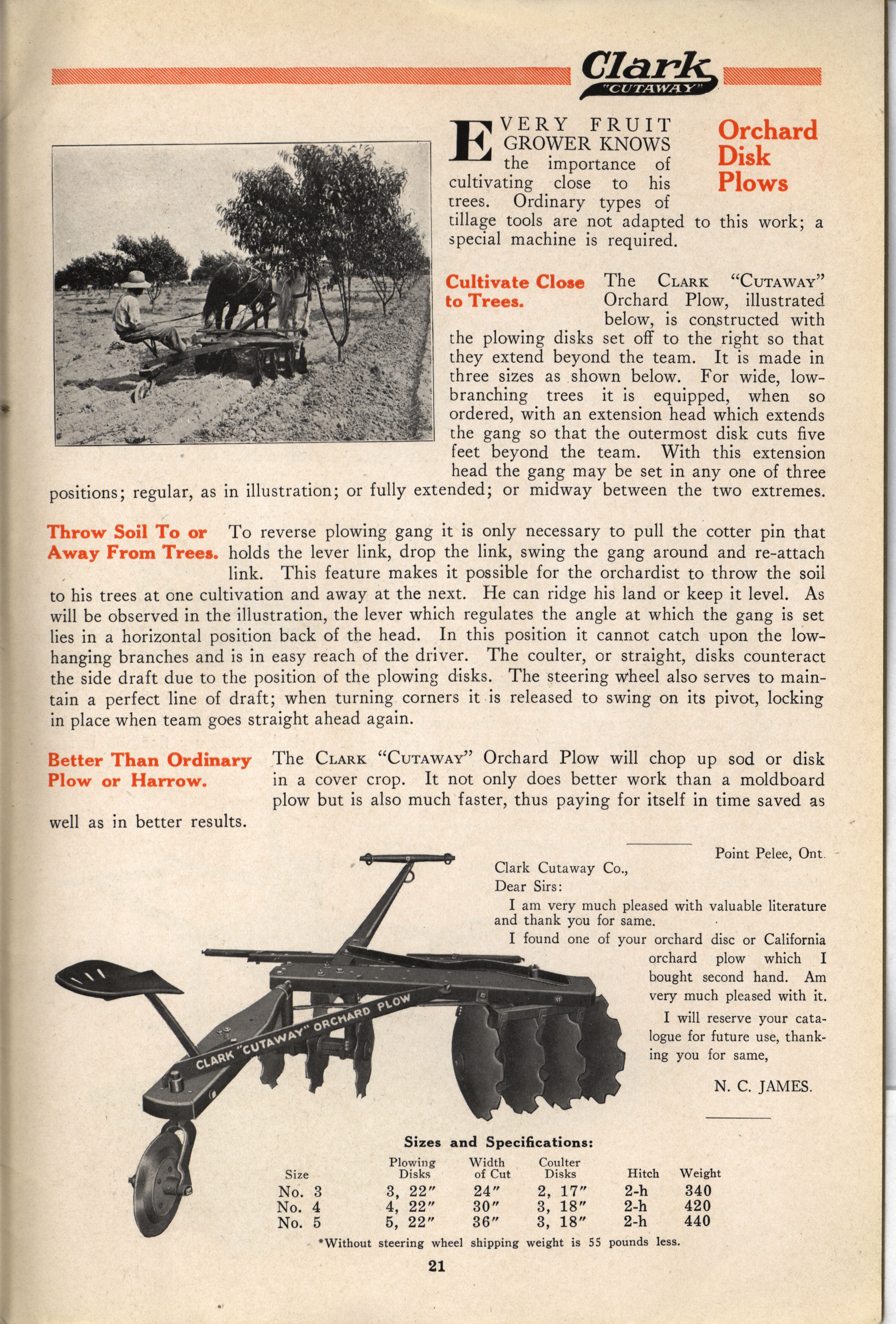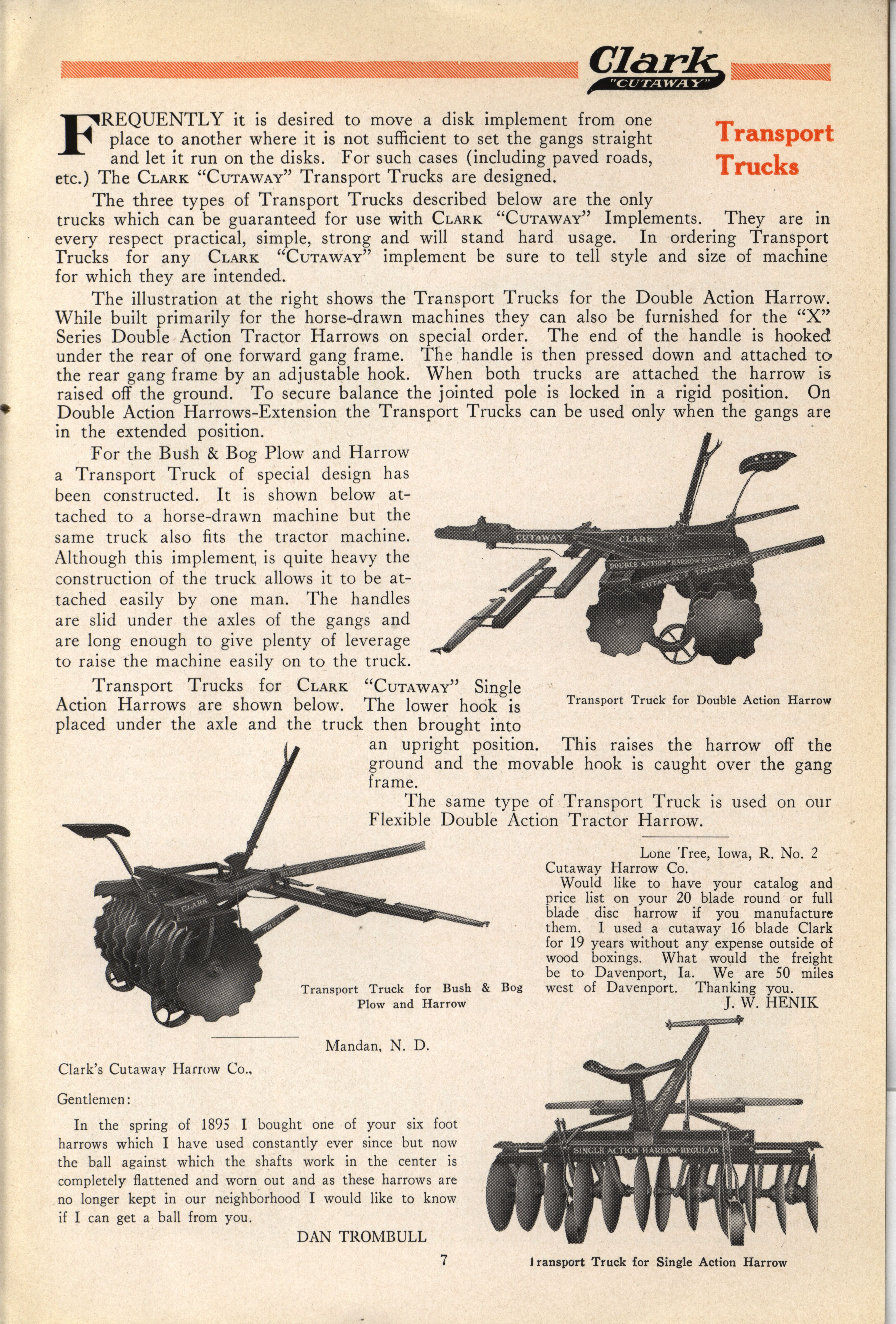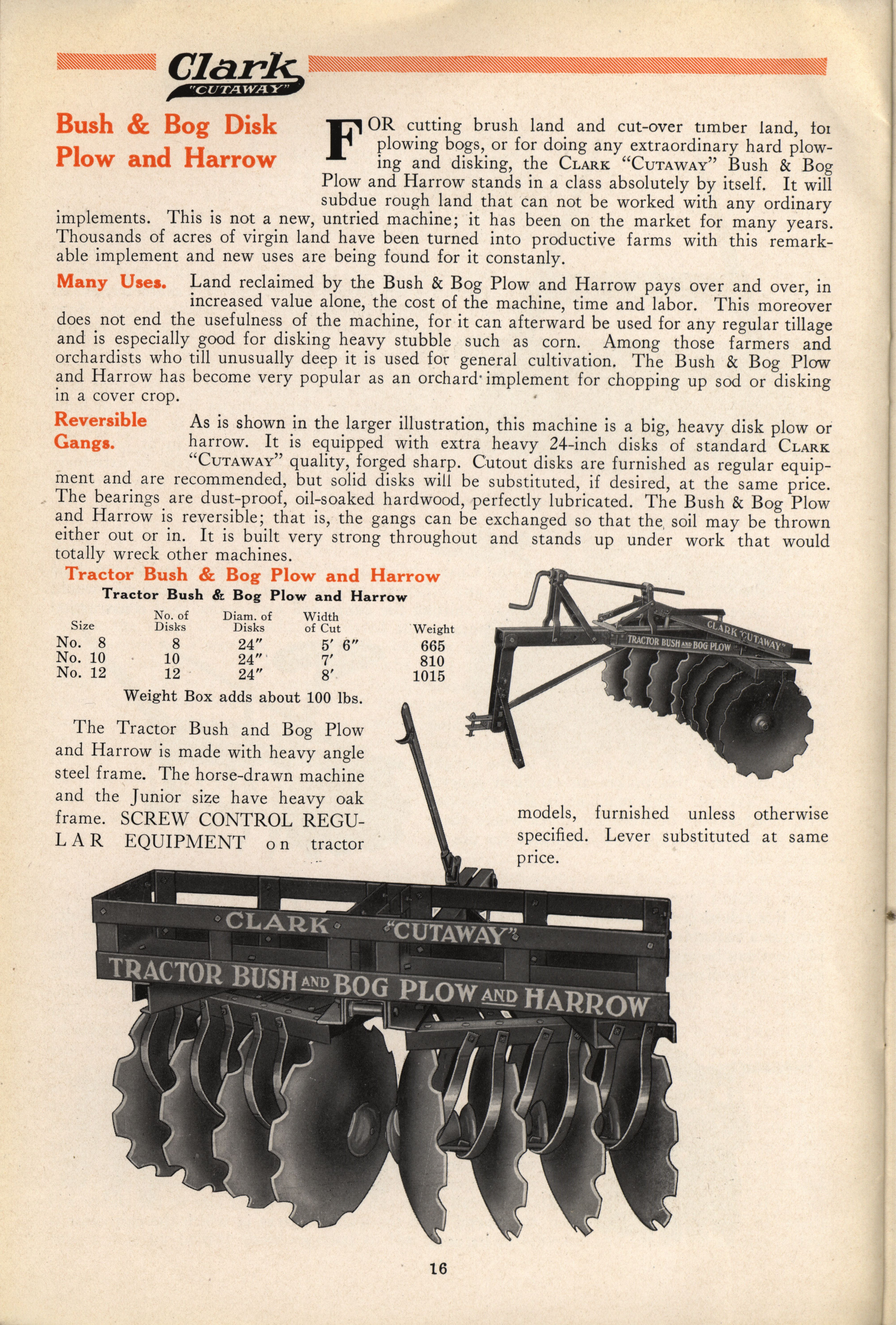 - "Cutaway Harrow Company Clark Cutaway Farm Implements catalog", Agricultural Machinery Literature Collection, Iowa State University Library Digital Collections