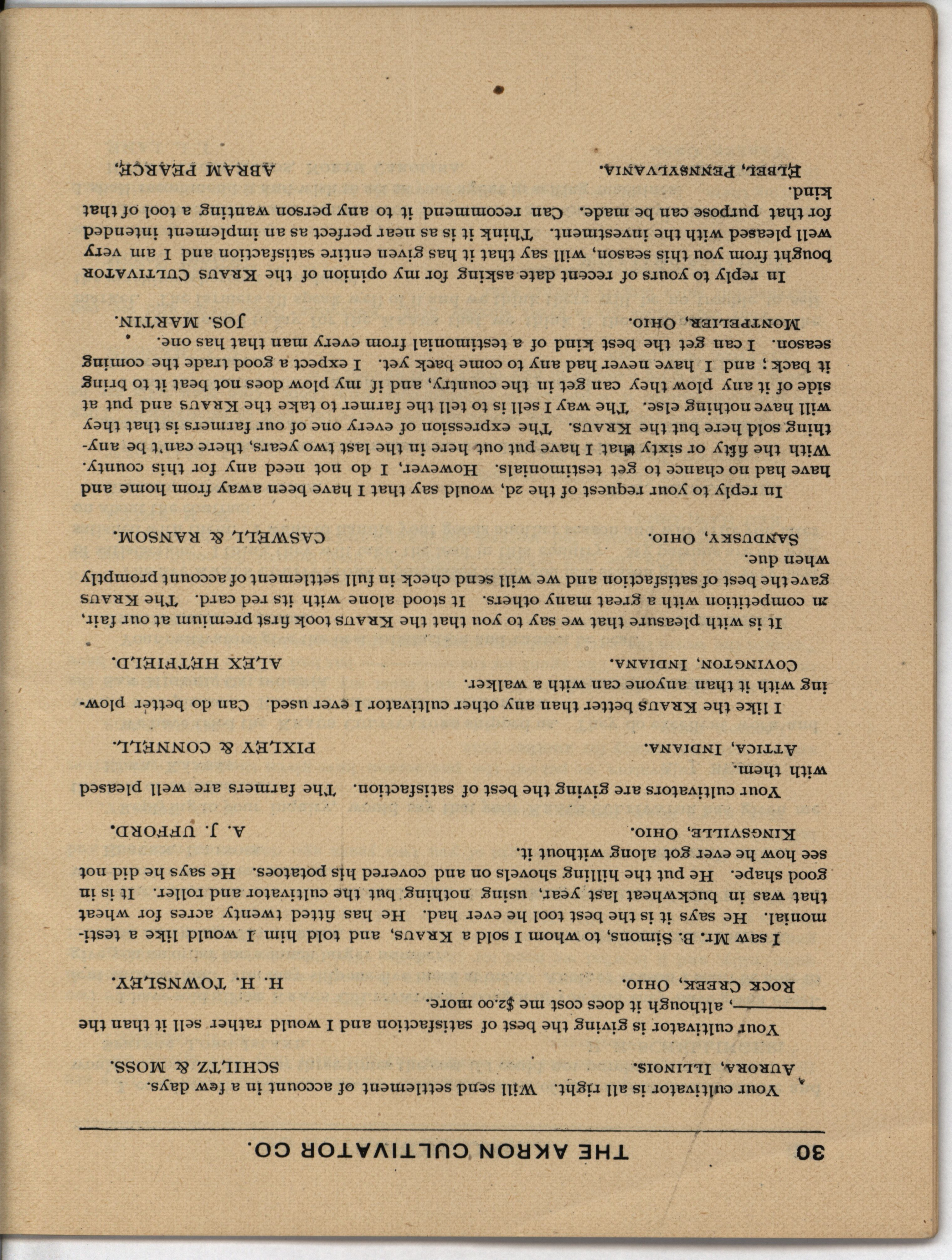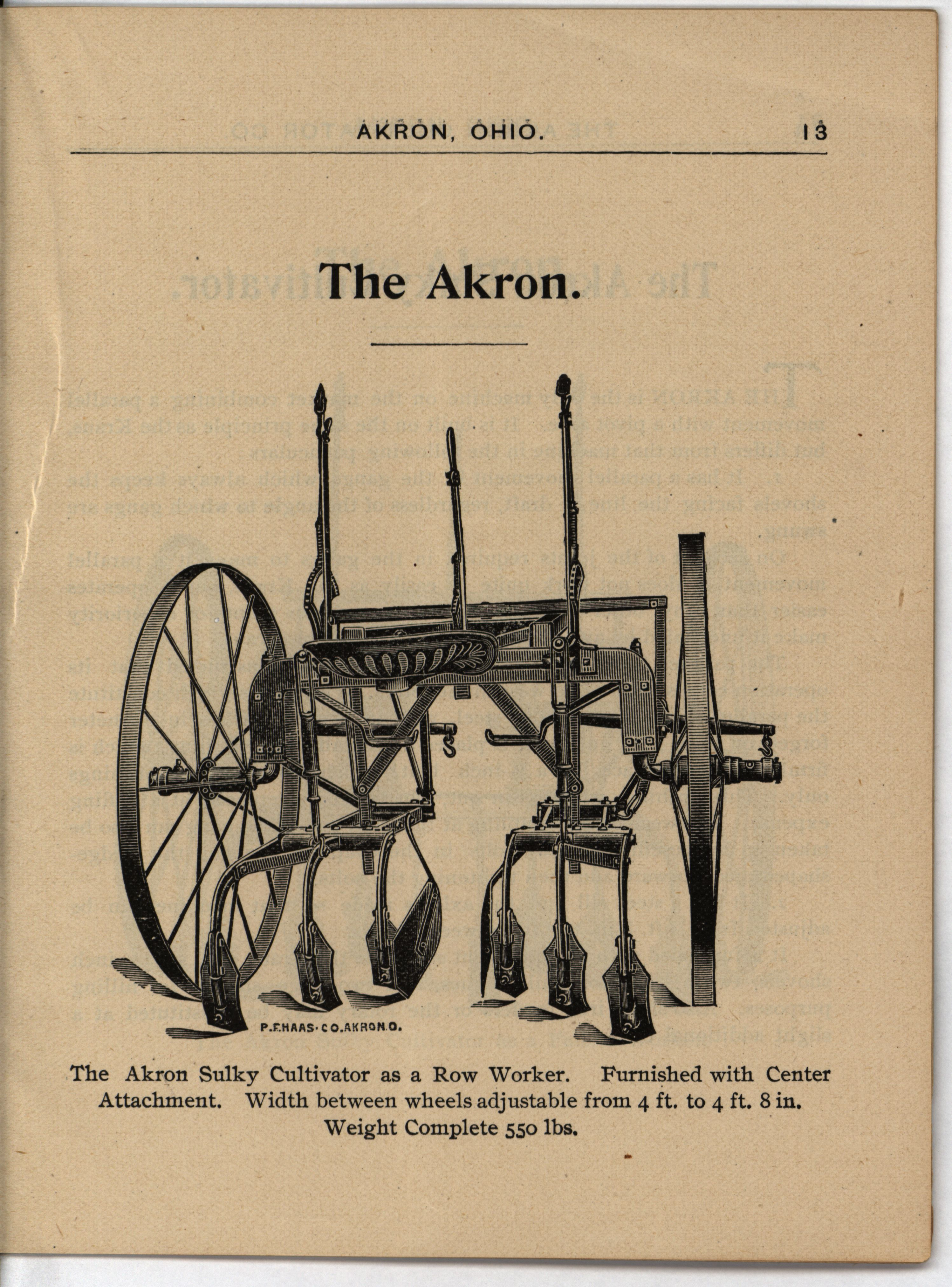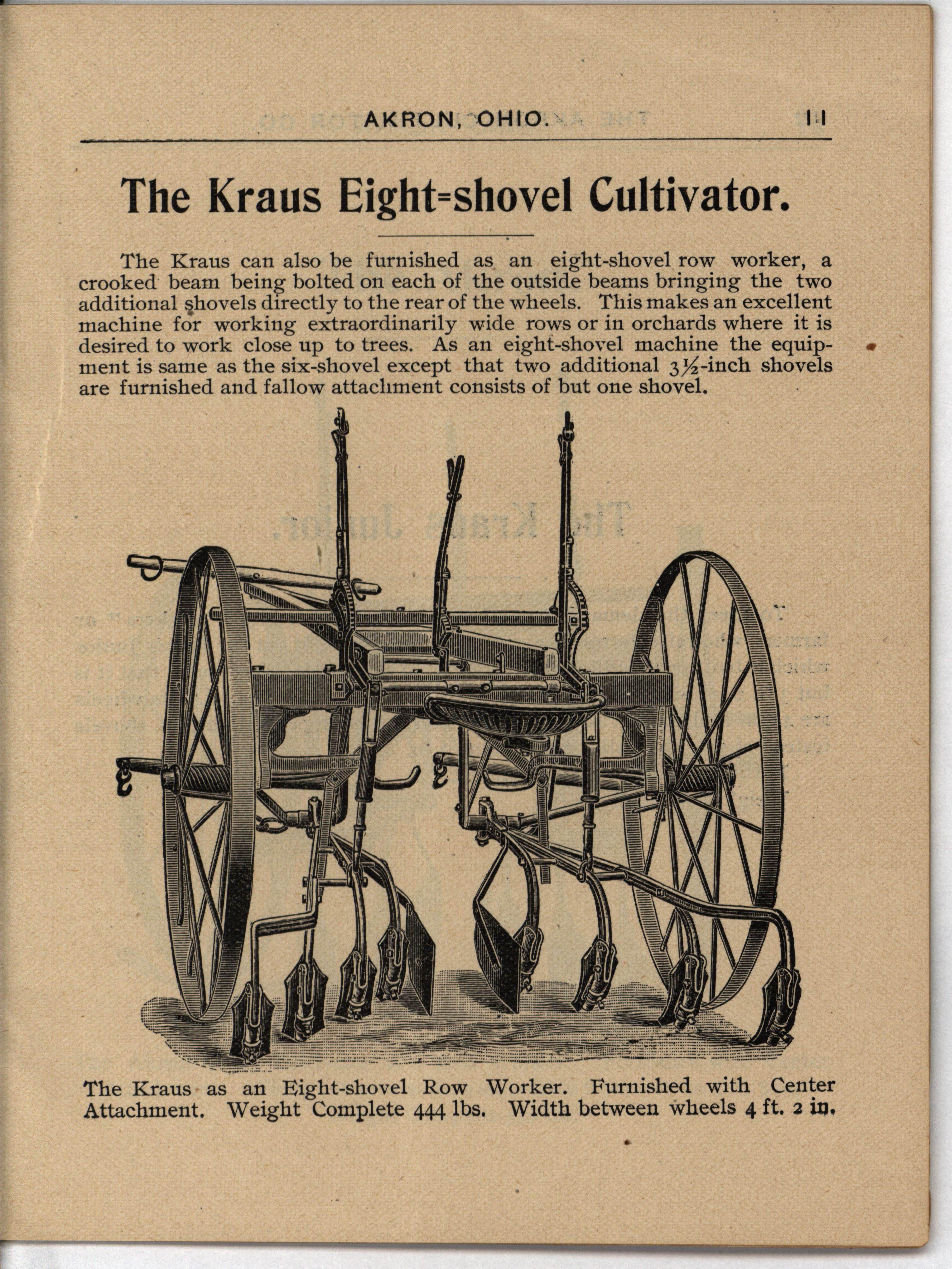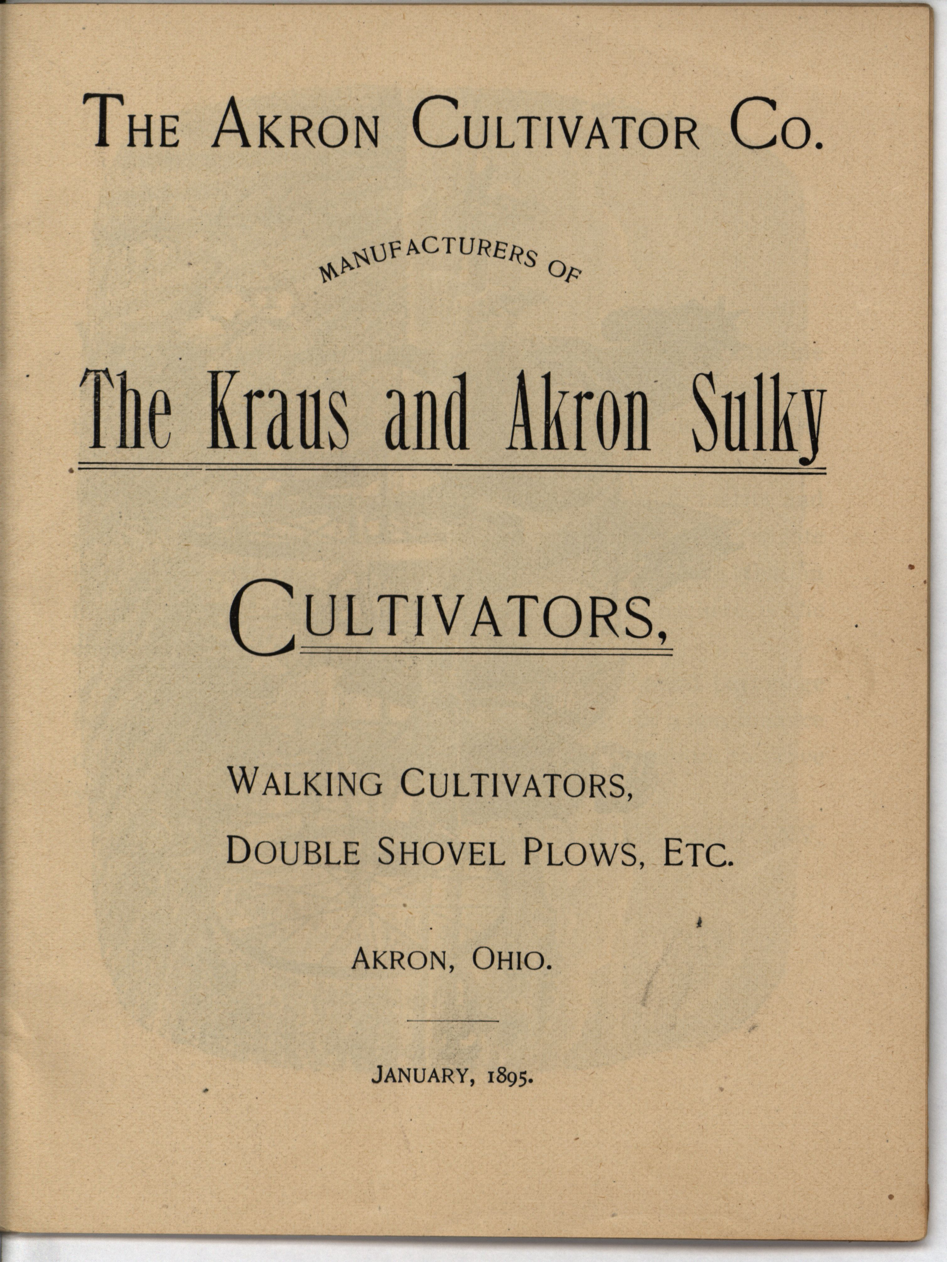 - "Aultman, Mill & Co. agents for The Akron Cultivator Co., The Kraus and Akron Riding Cultivators", Agricultural Machinery Literature Collection, Iowa State University Library Digital Collections