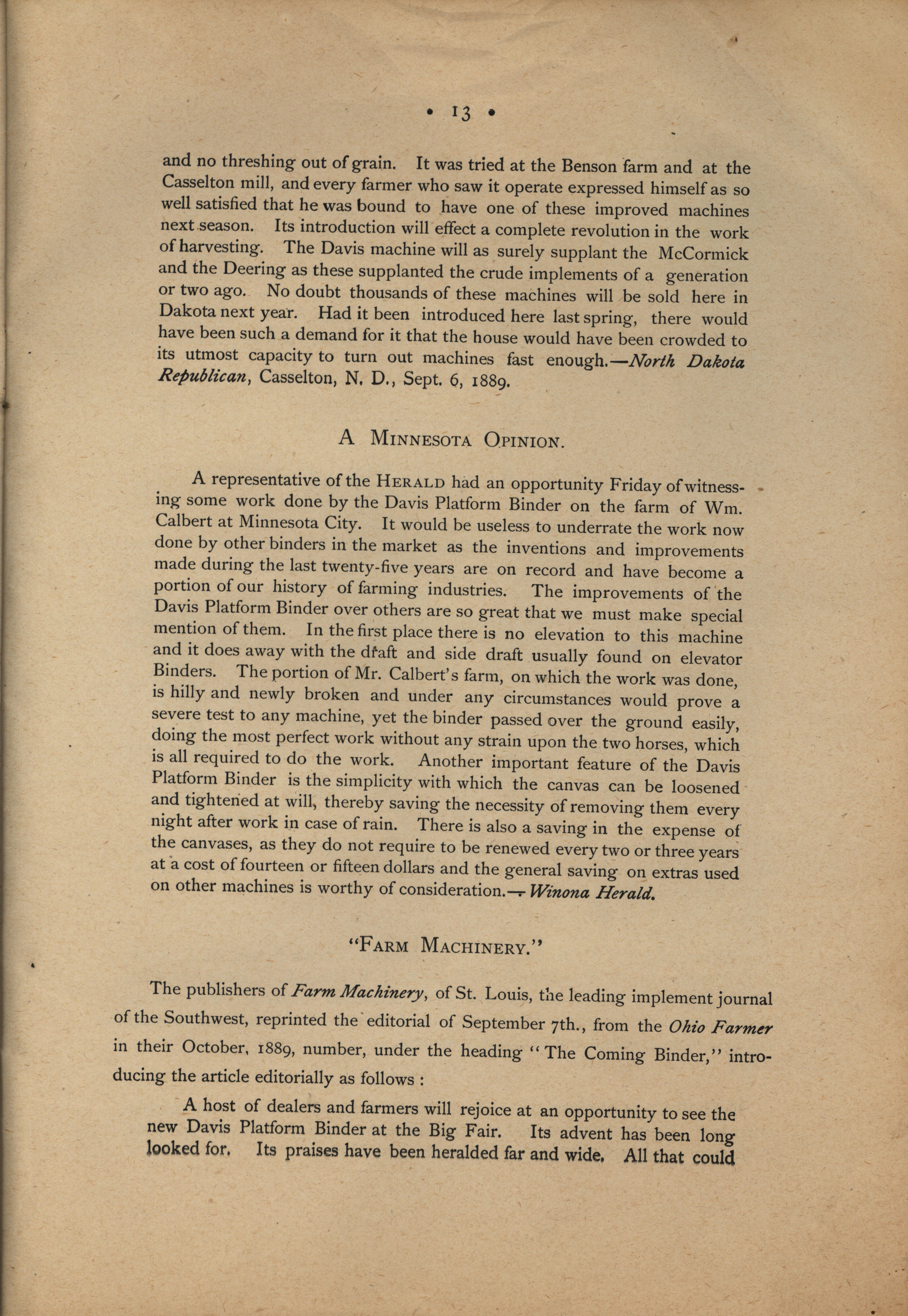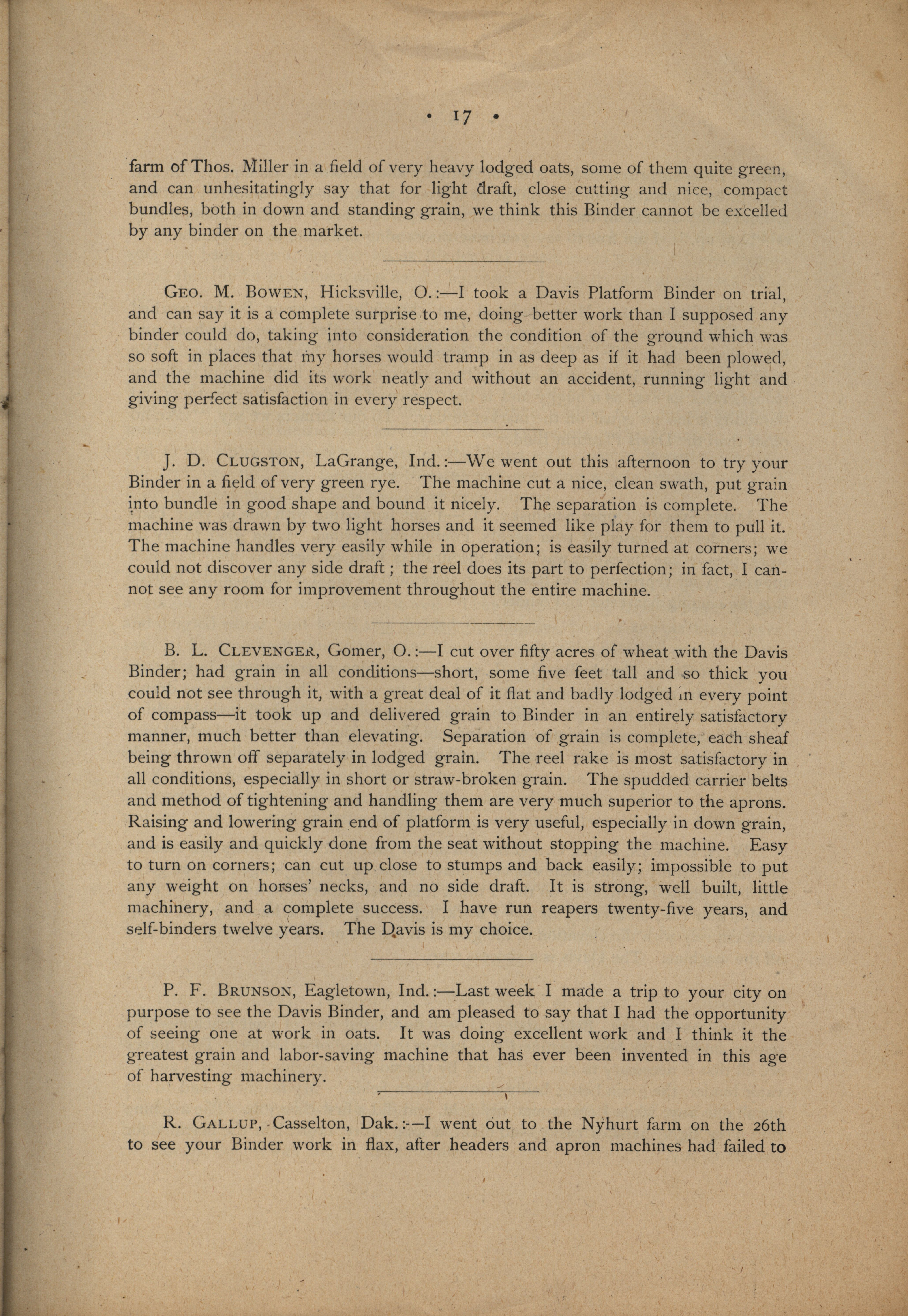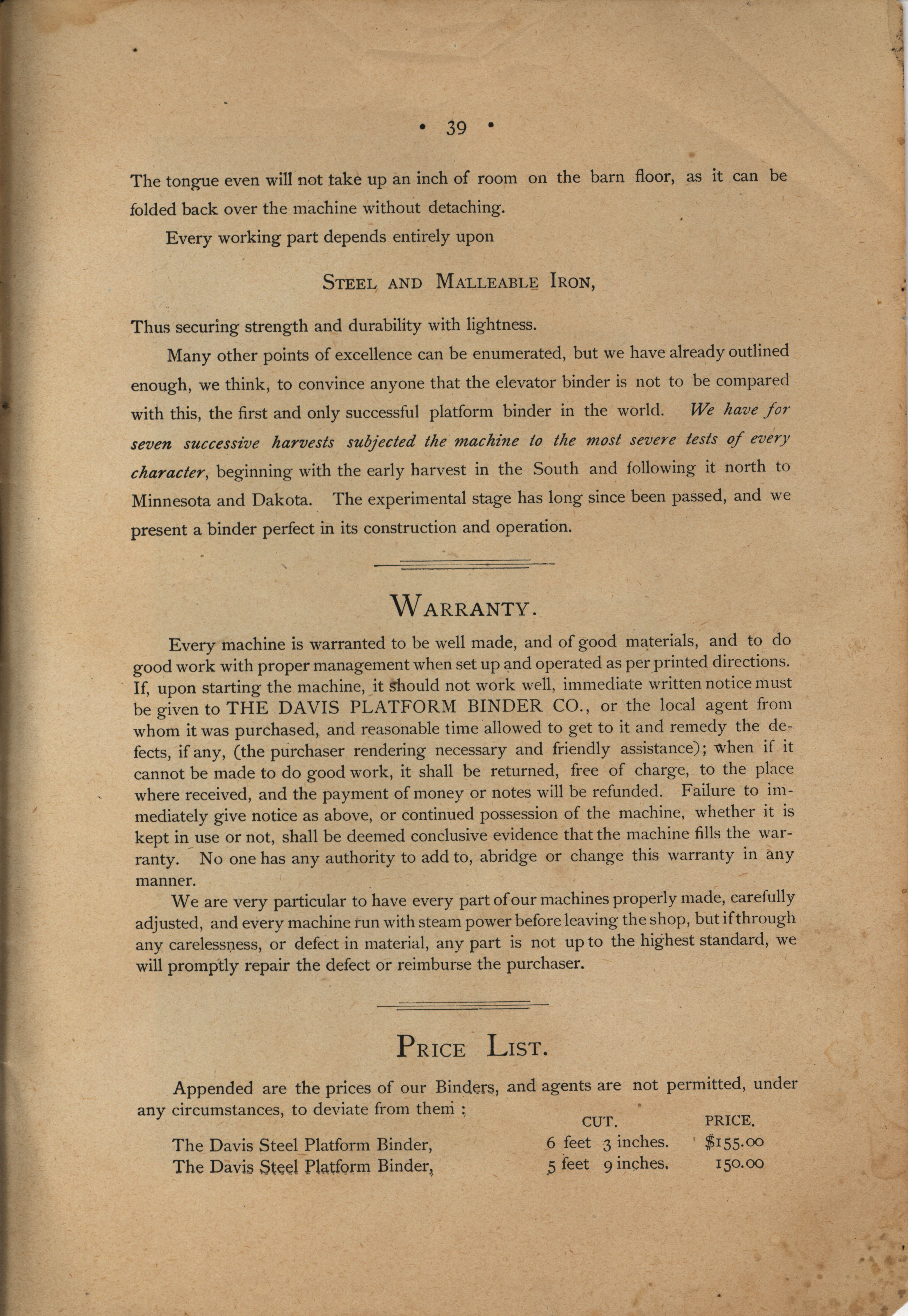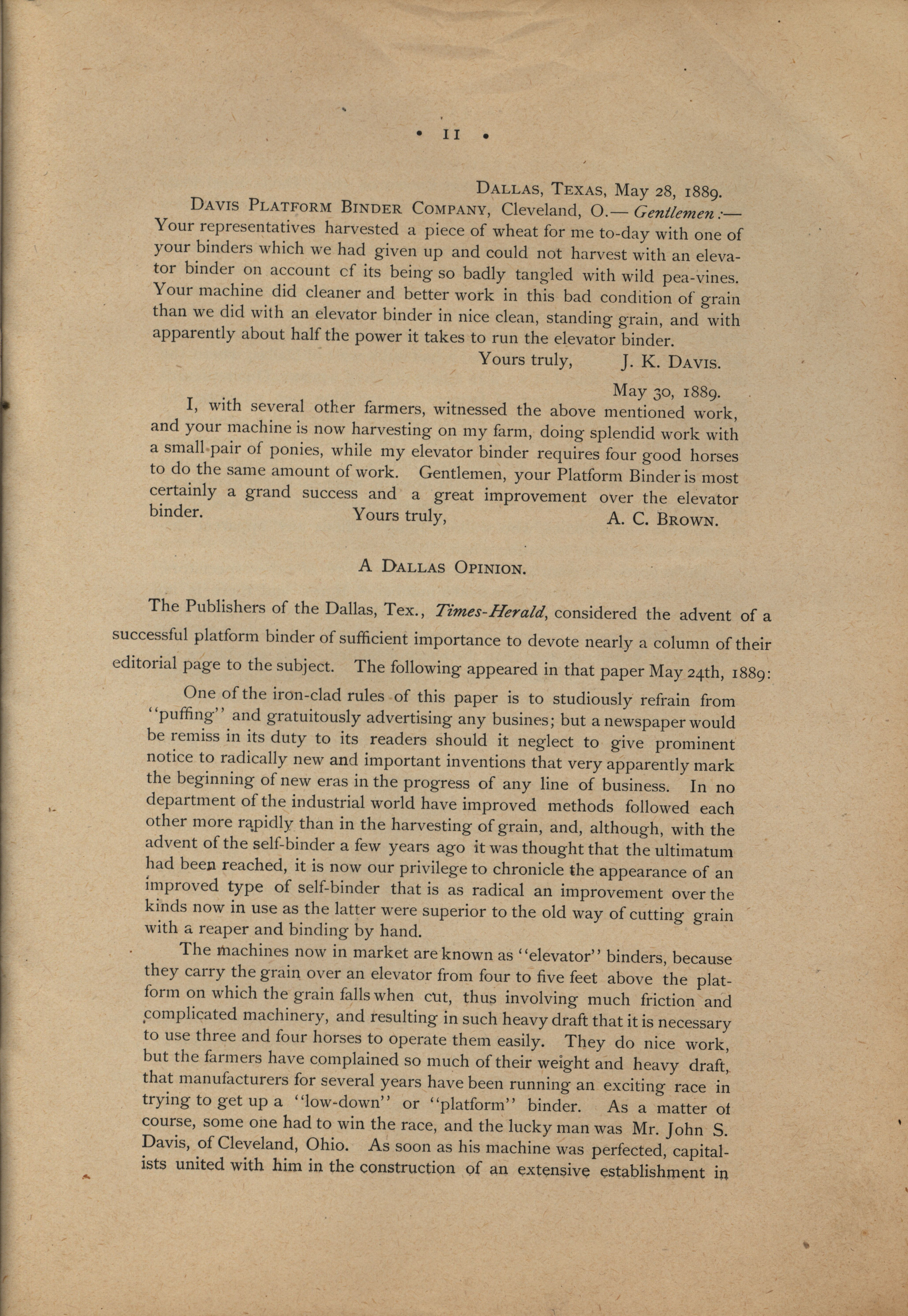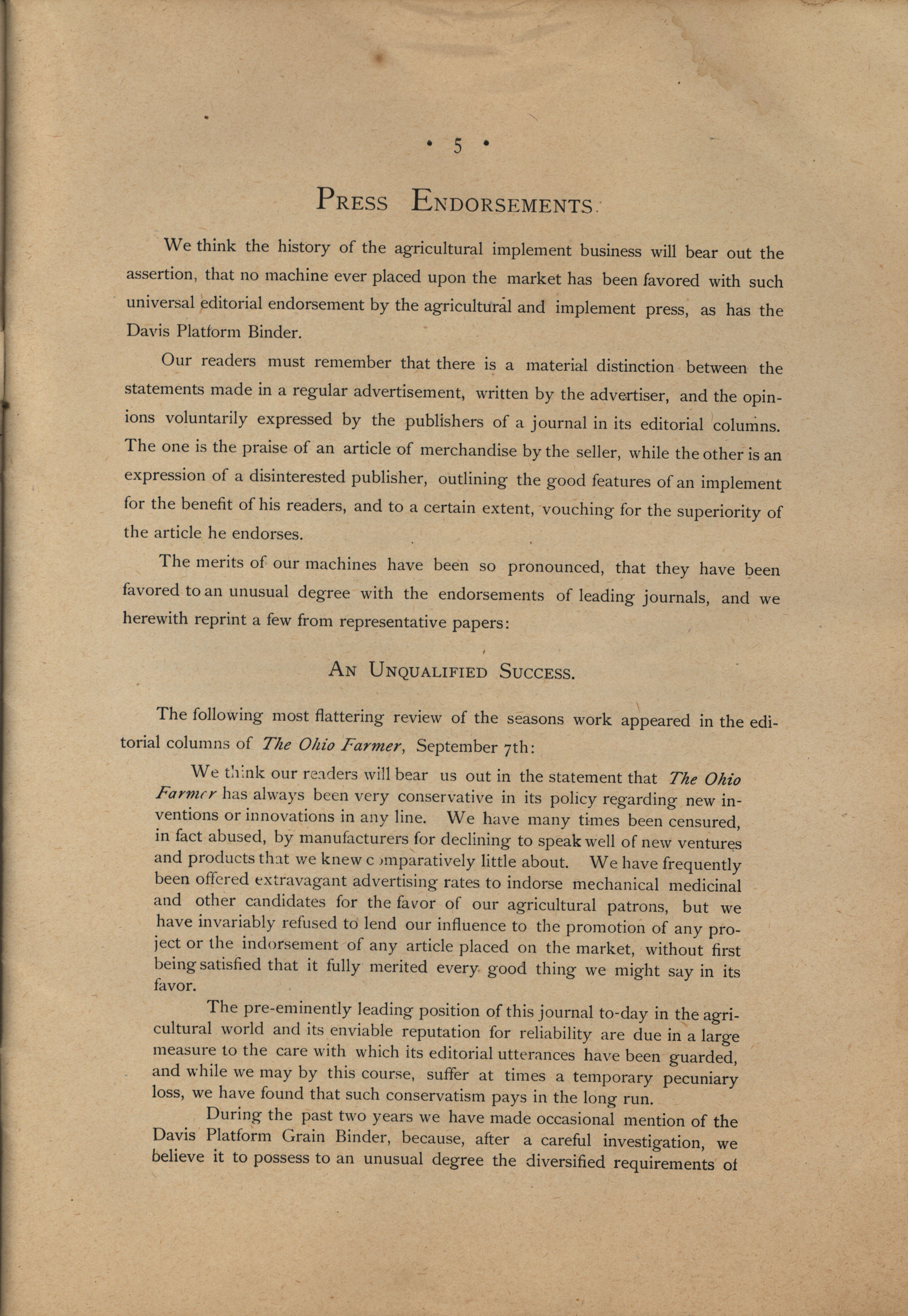 - "Davis Platform Binder Company catalog", Agricultural Machinery Literature Collection, Iowa State University Library Digital Collections