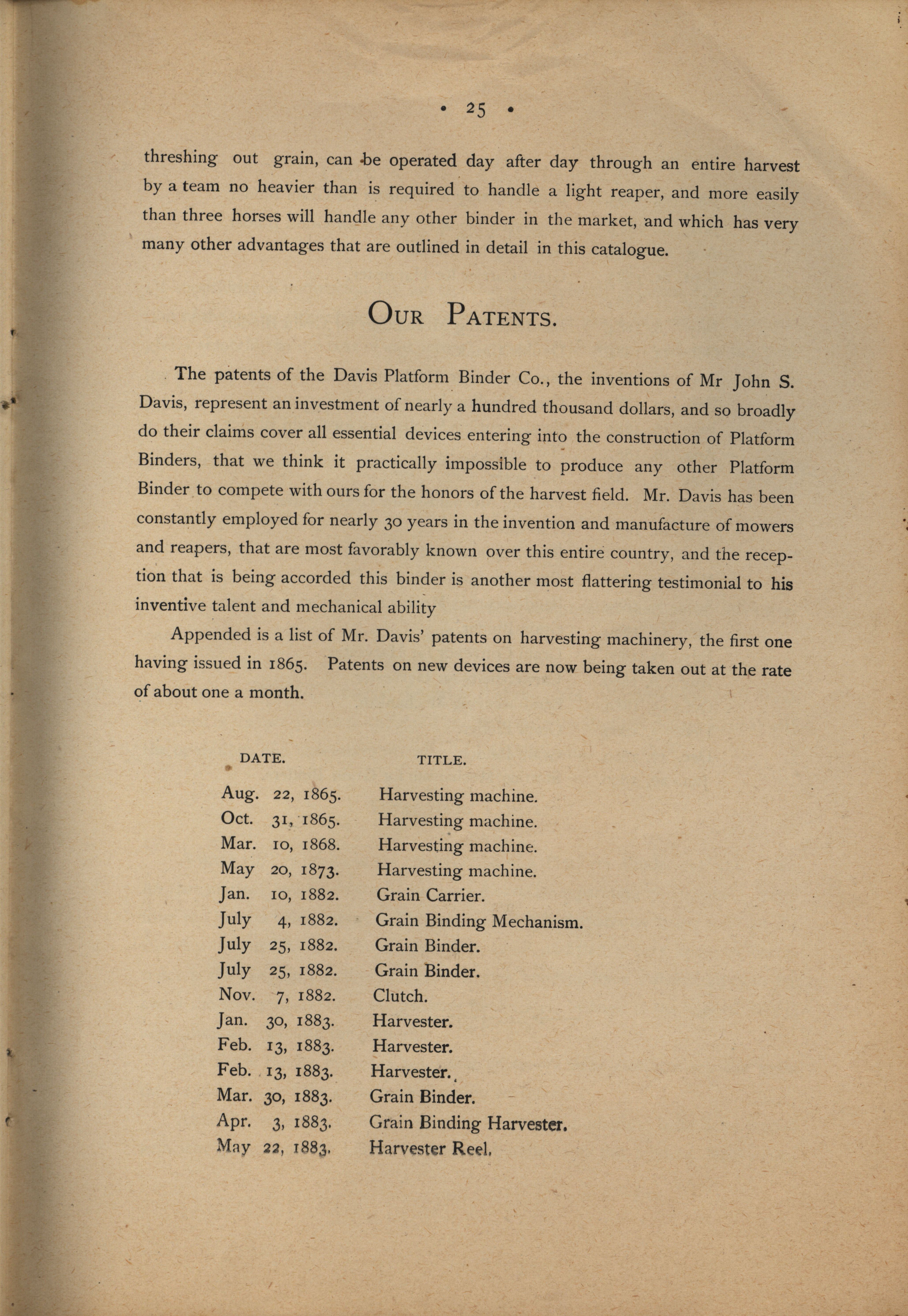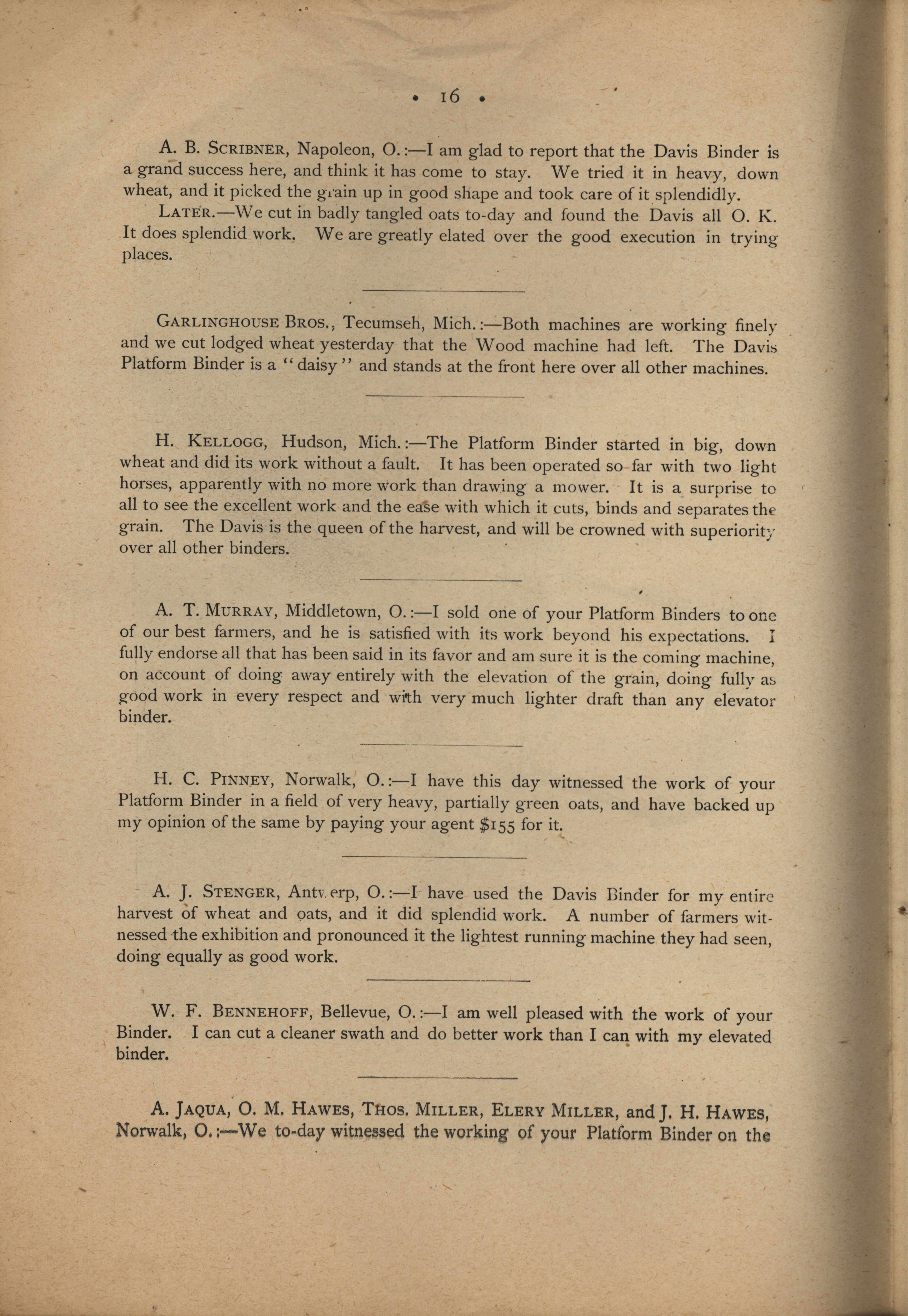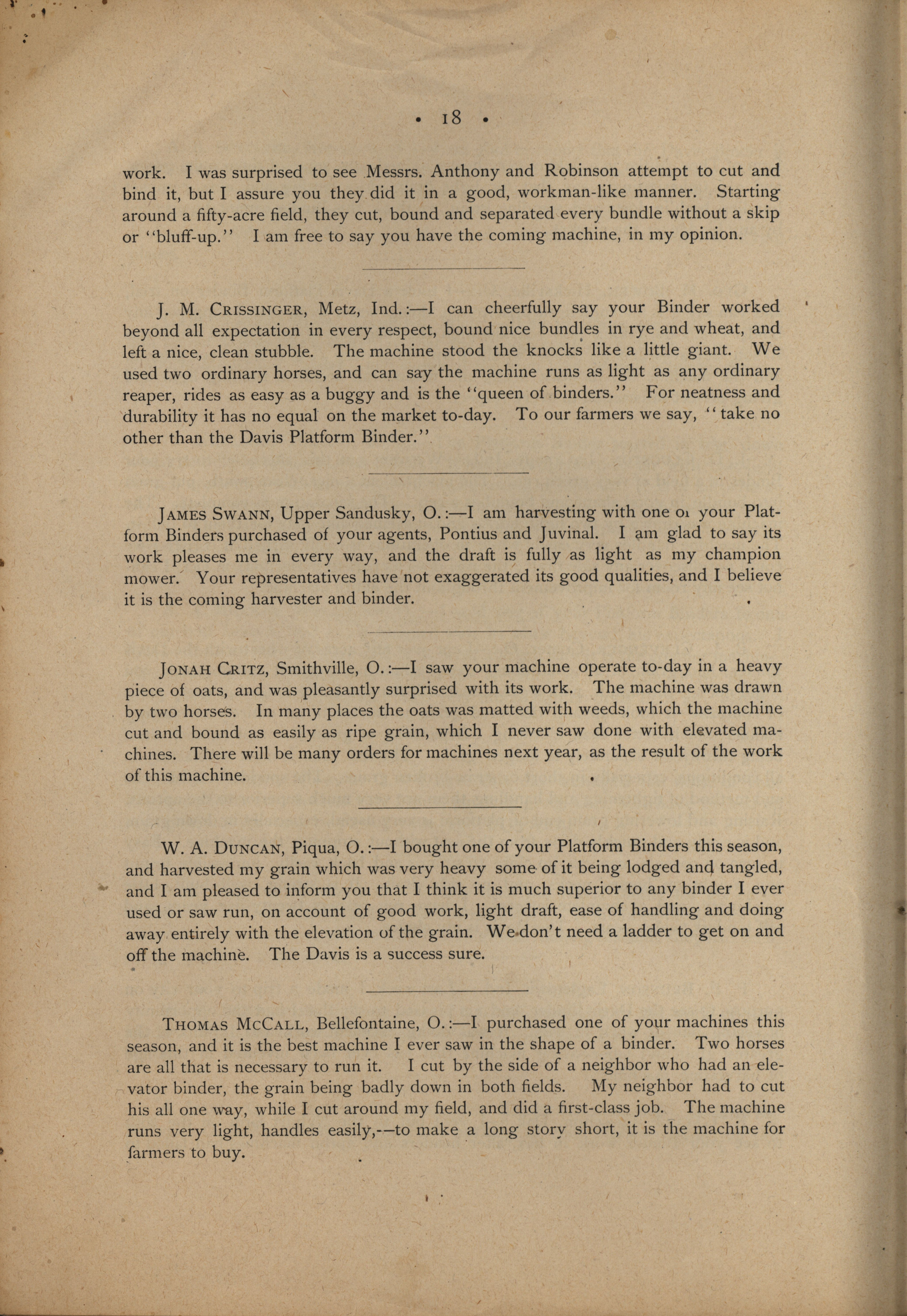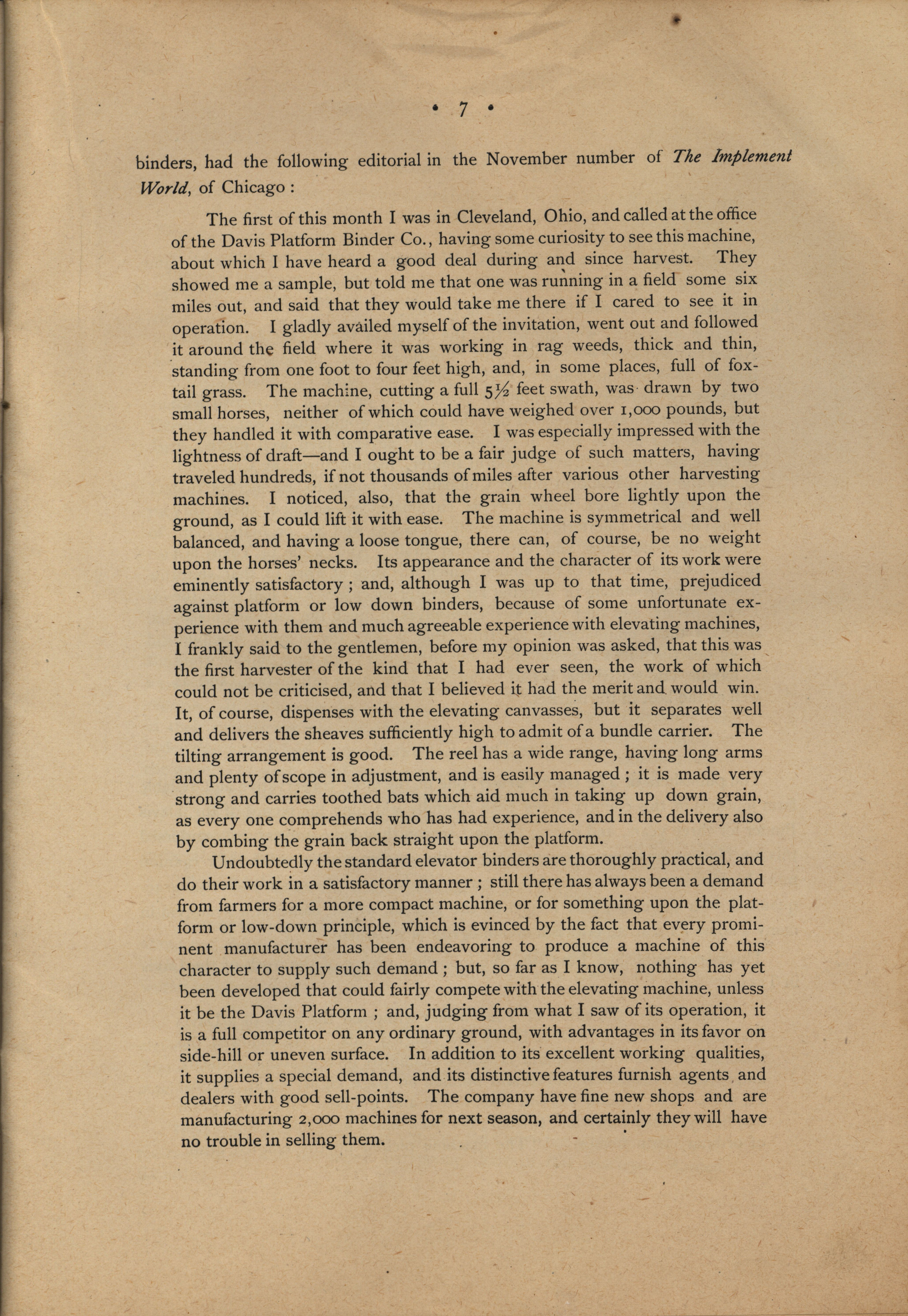 - "Davis Platform Binder Company catalog", Agricultural Machinery Literature Collection, Iowa State University Library Digital Collections