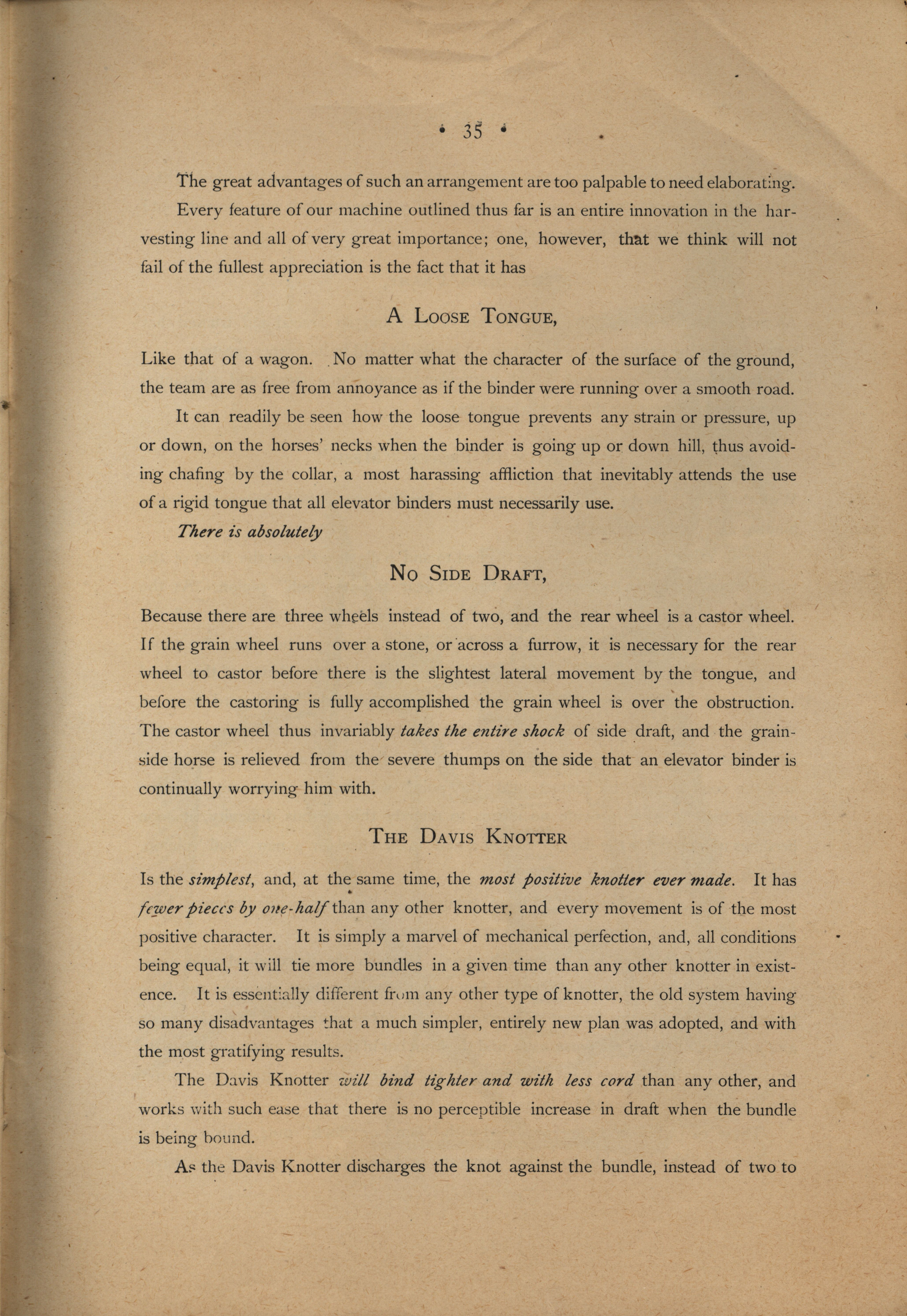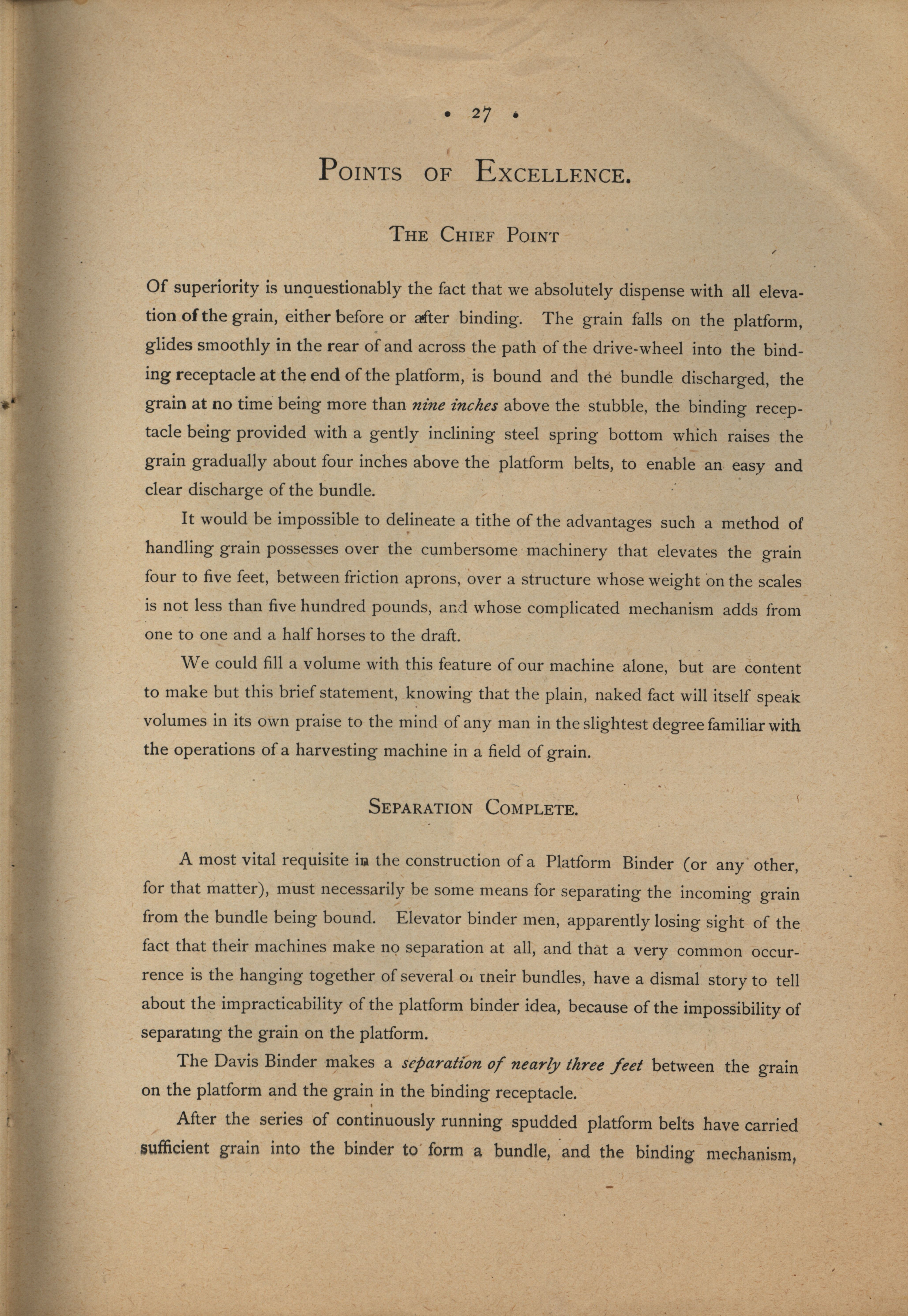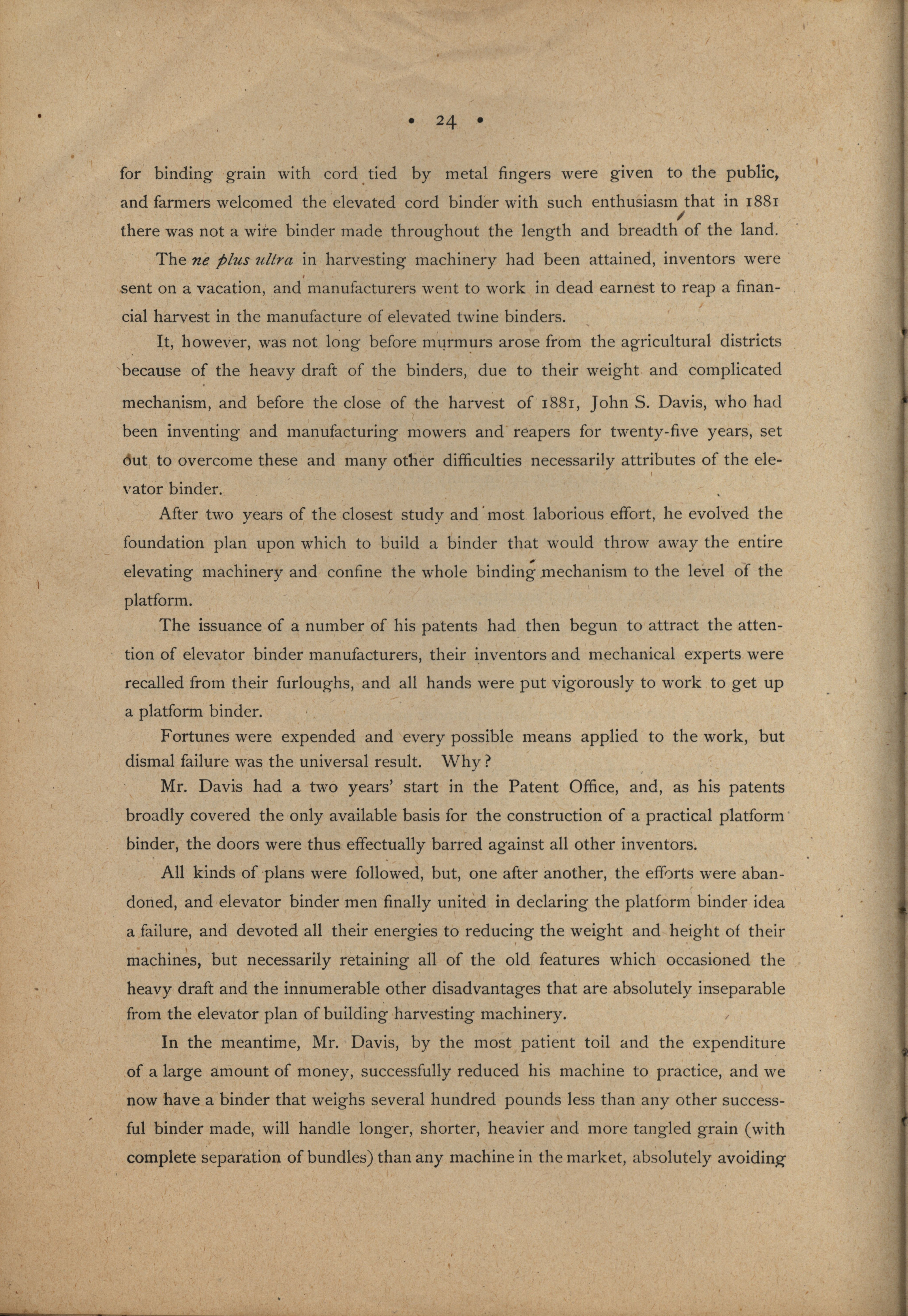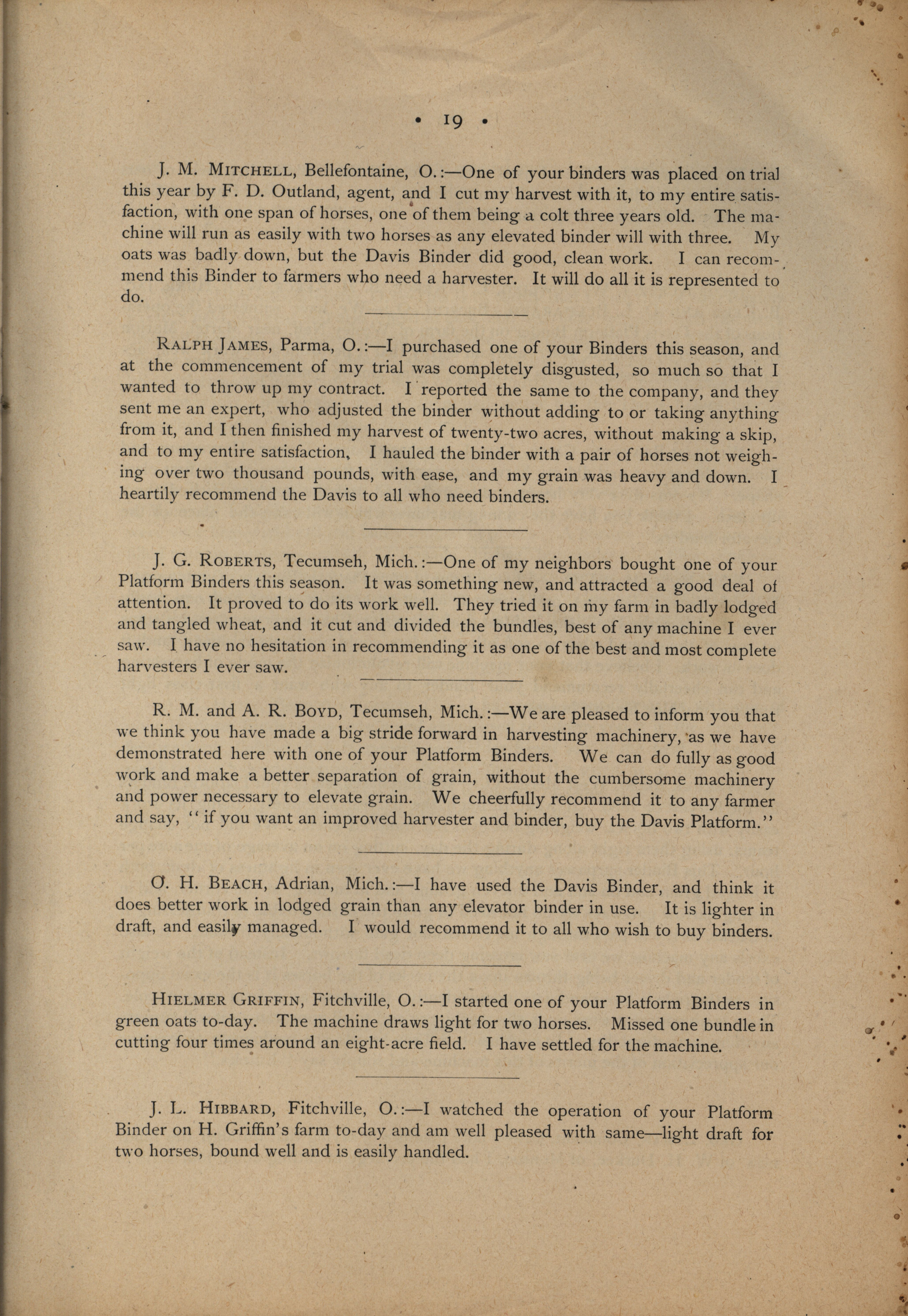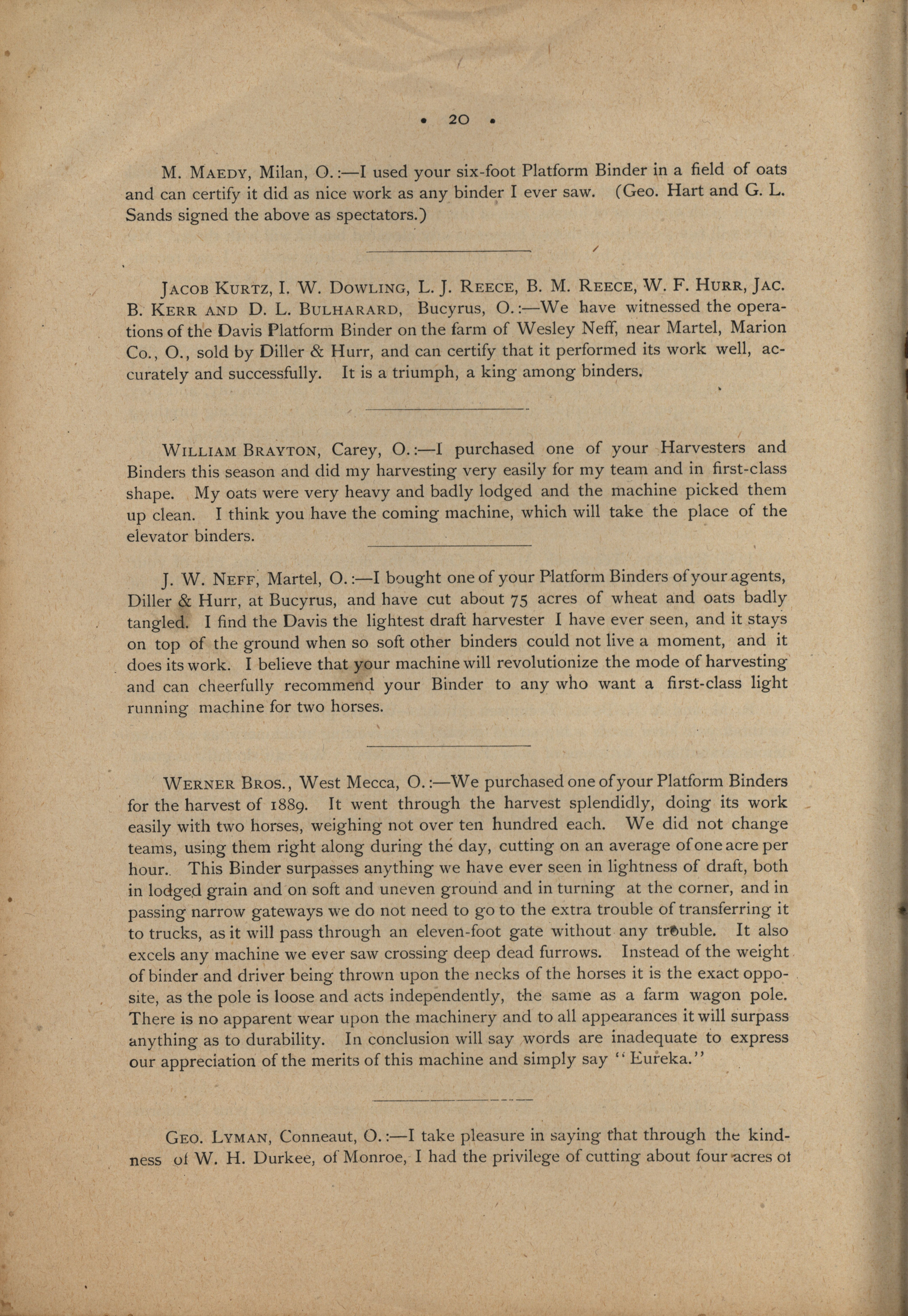 - "Davis Platform Binder Company catalog", Agricultural Machinery Literature Collection, Iowa State University Library Digital Collections