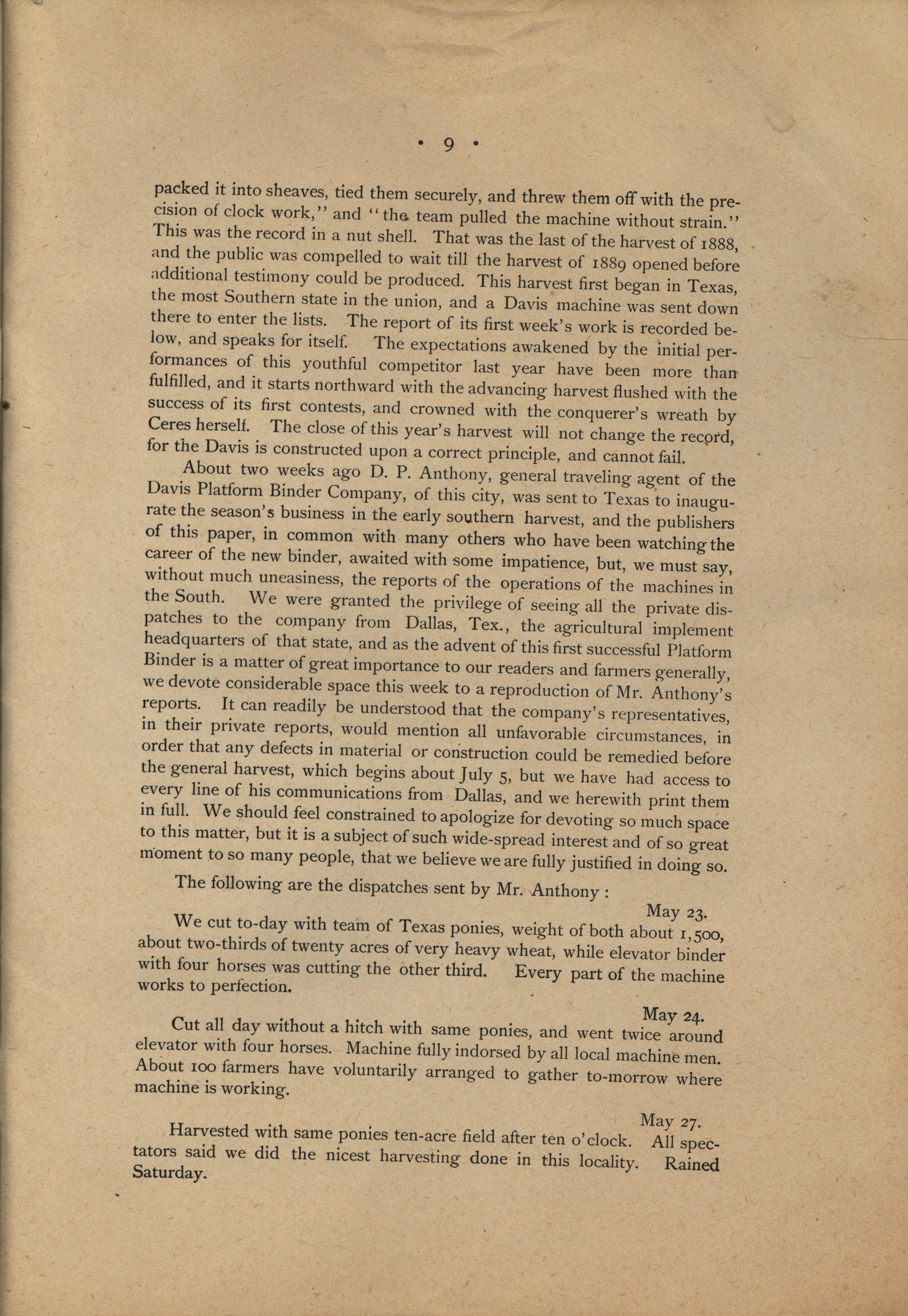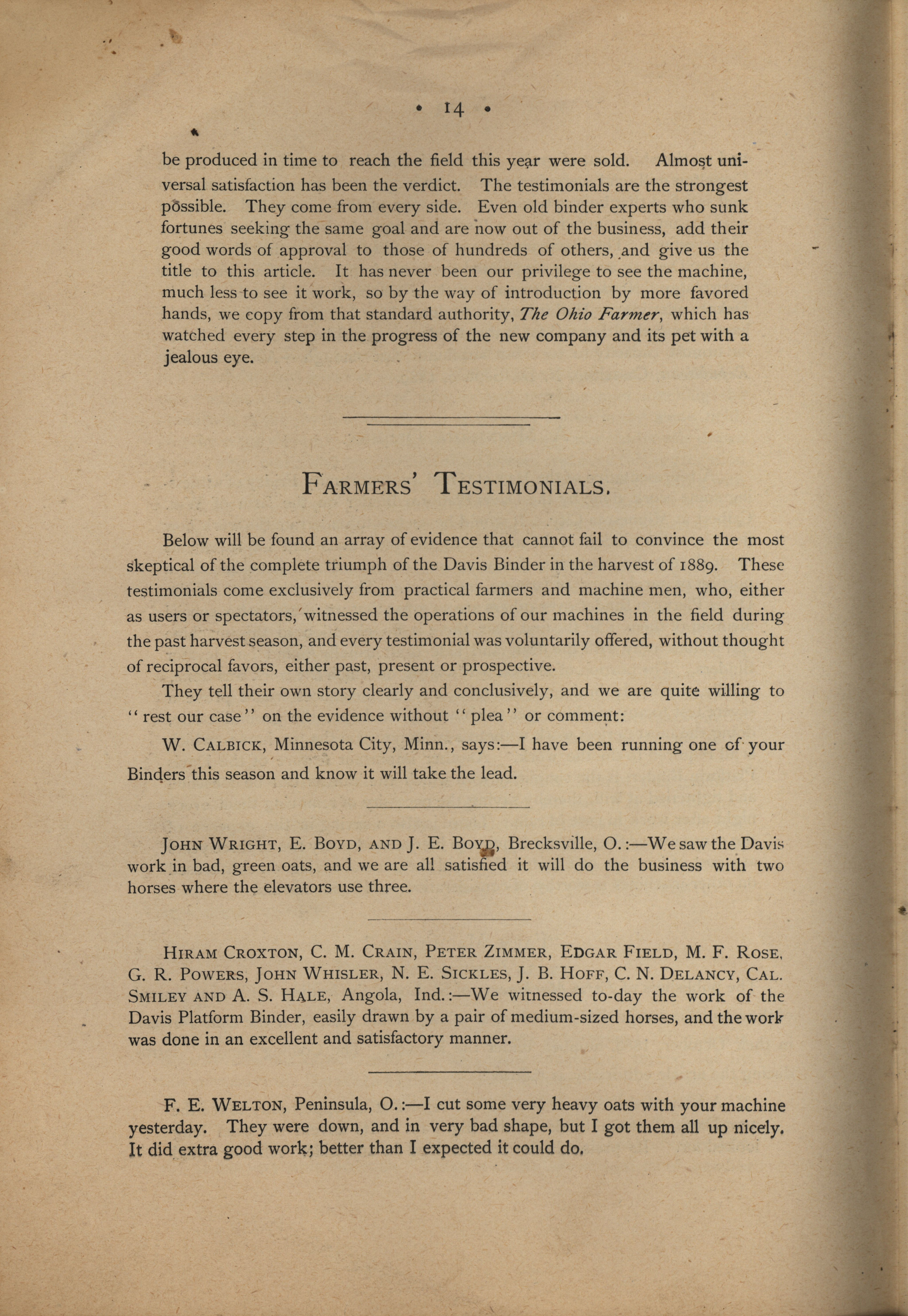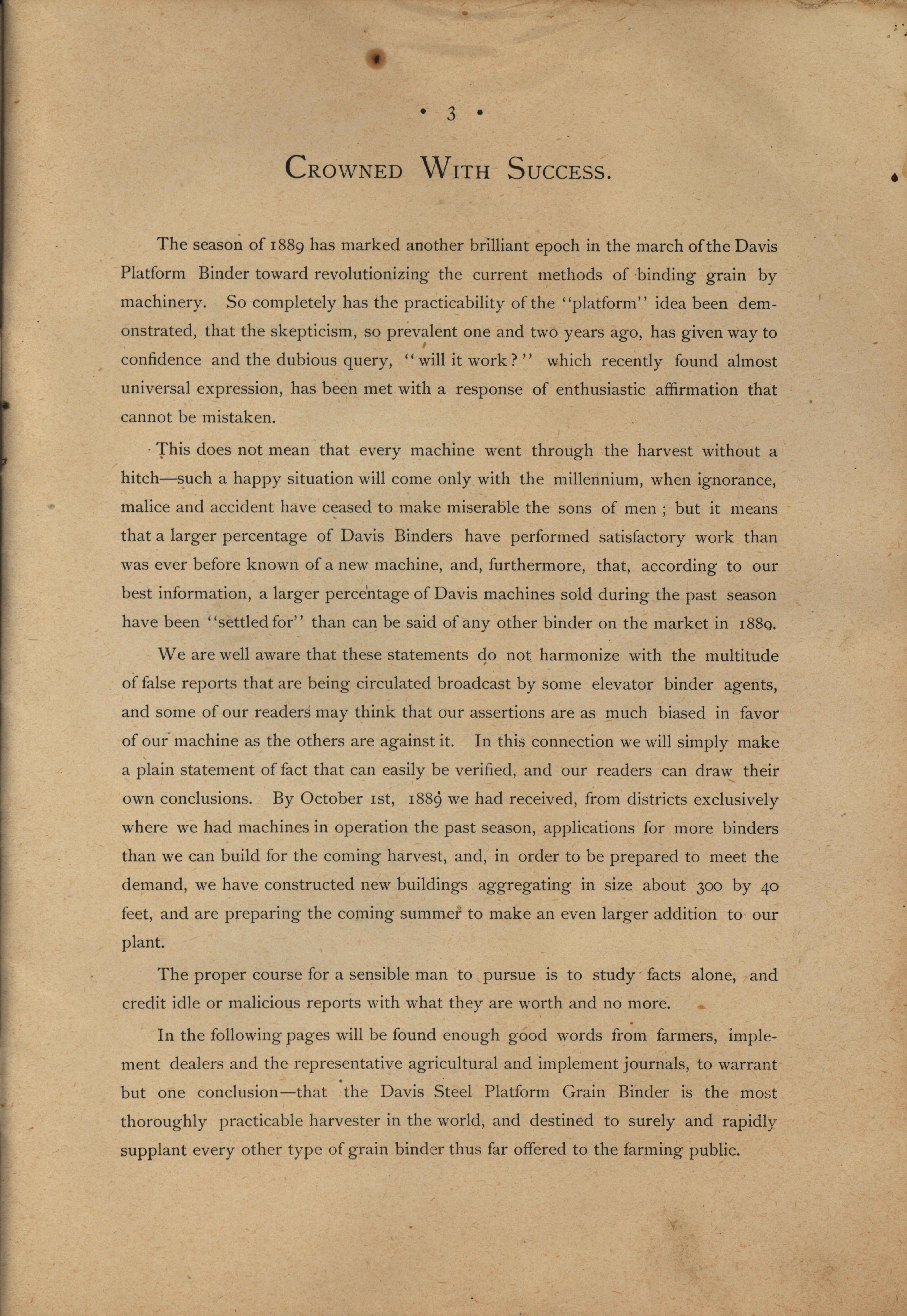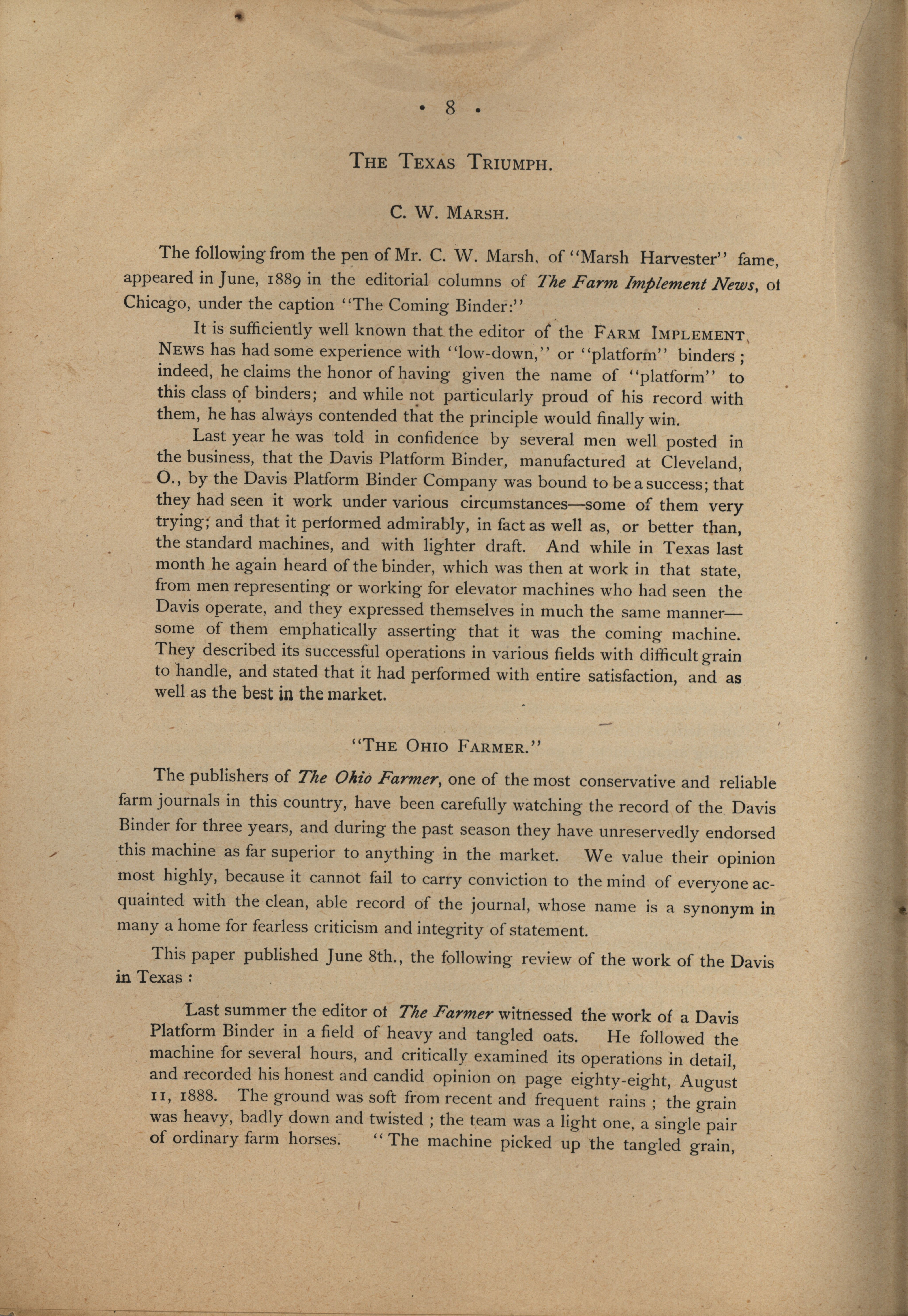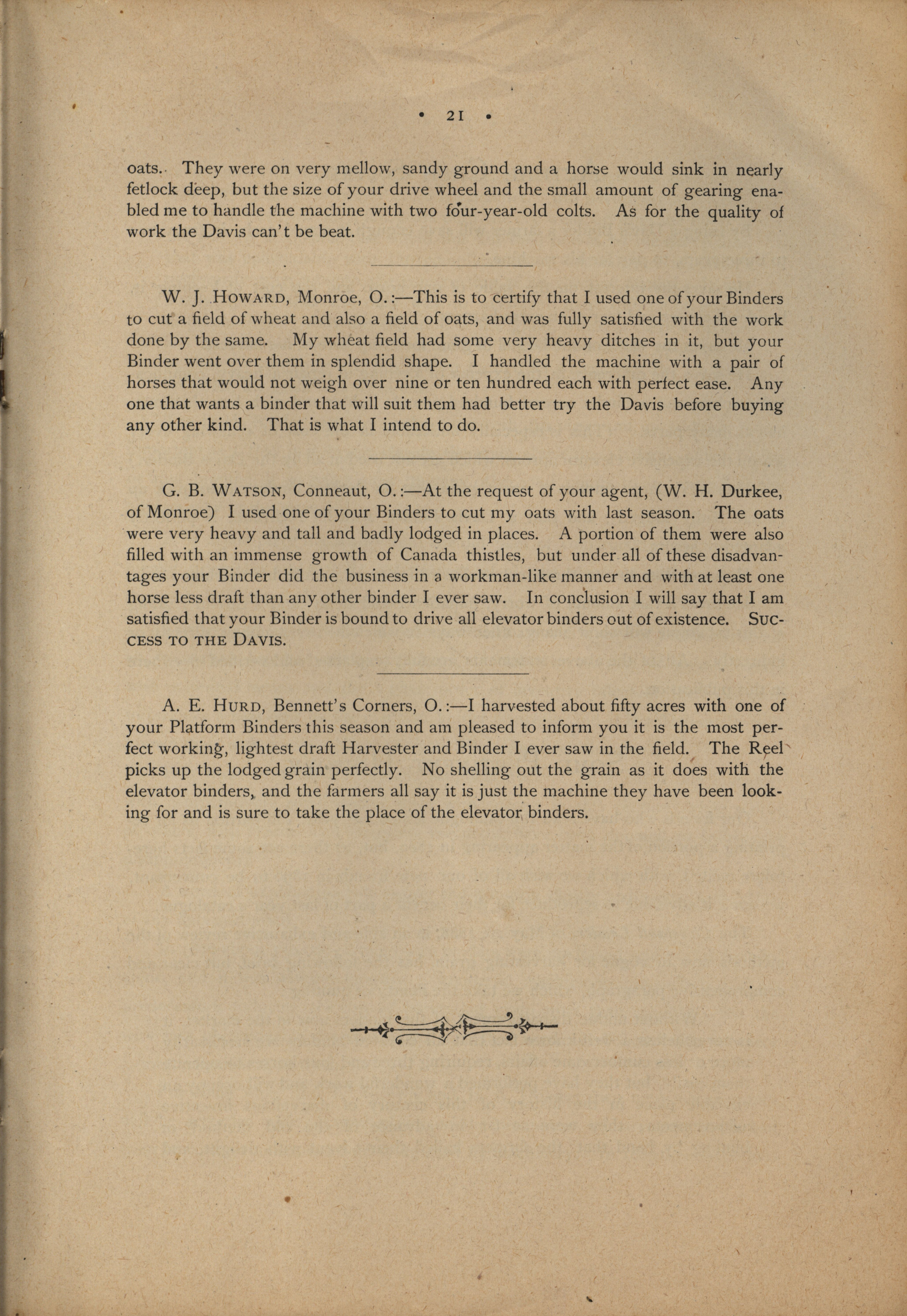 - "Davis Platform Binder Company catalog", Agricultural Machinery Literature Collection, Iowa State University Library Digital Collections