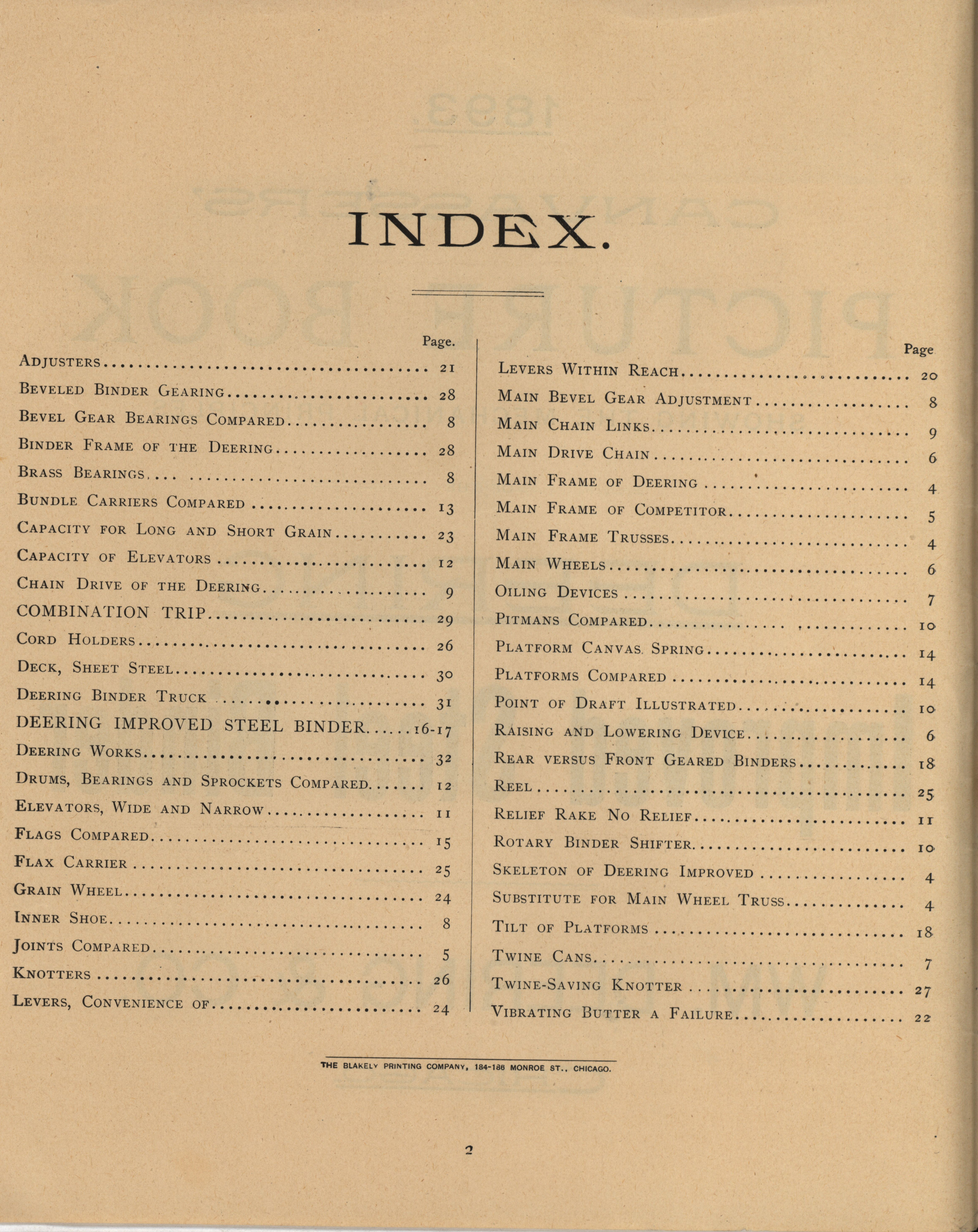 - WM. Deering and Company 1893 Canvassers' Picture Book Showing the Mechanical Principles of the Deering Improved Steel Binder
