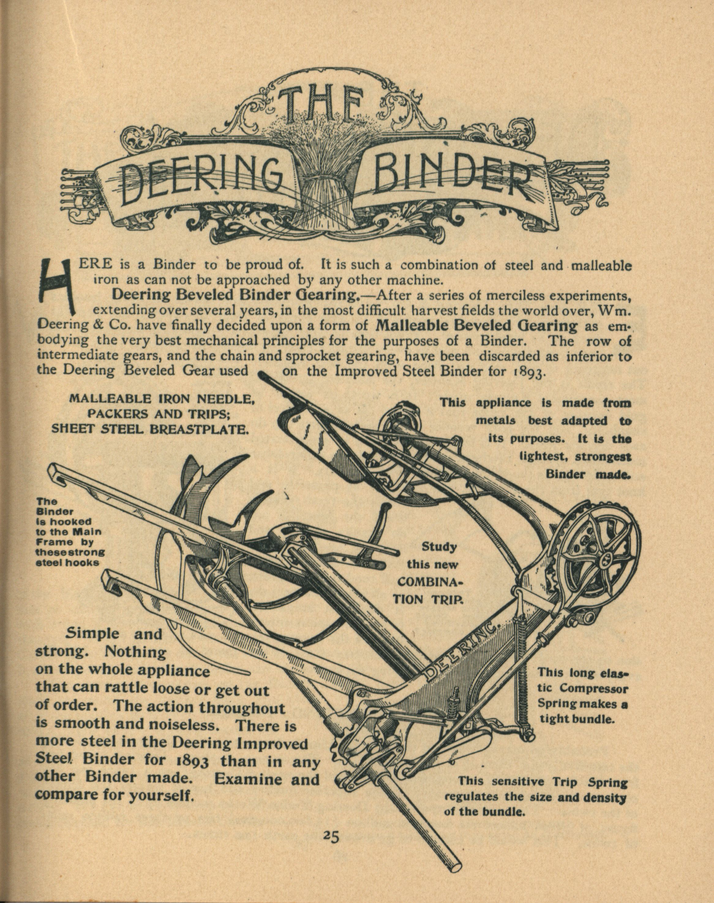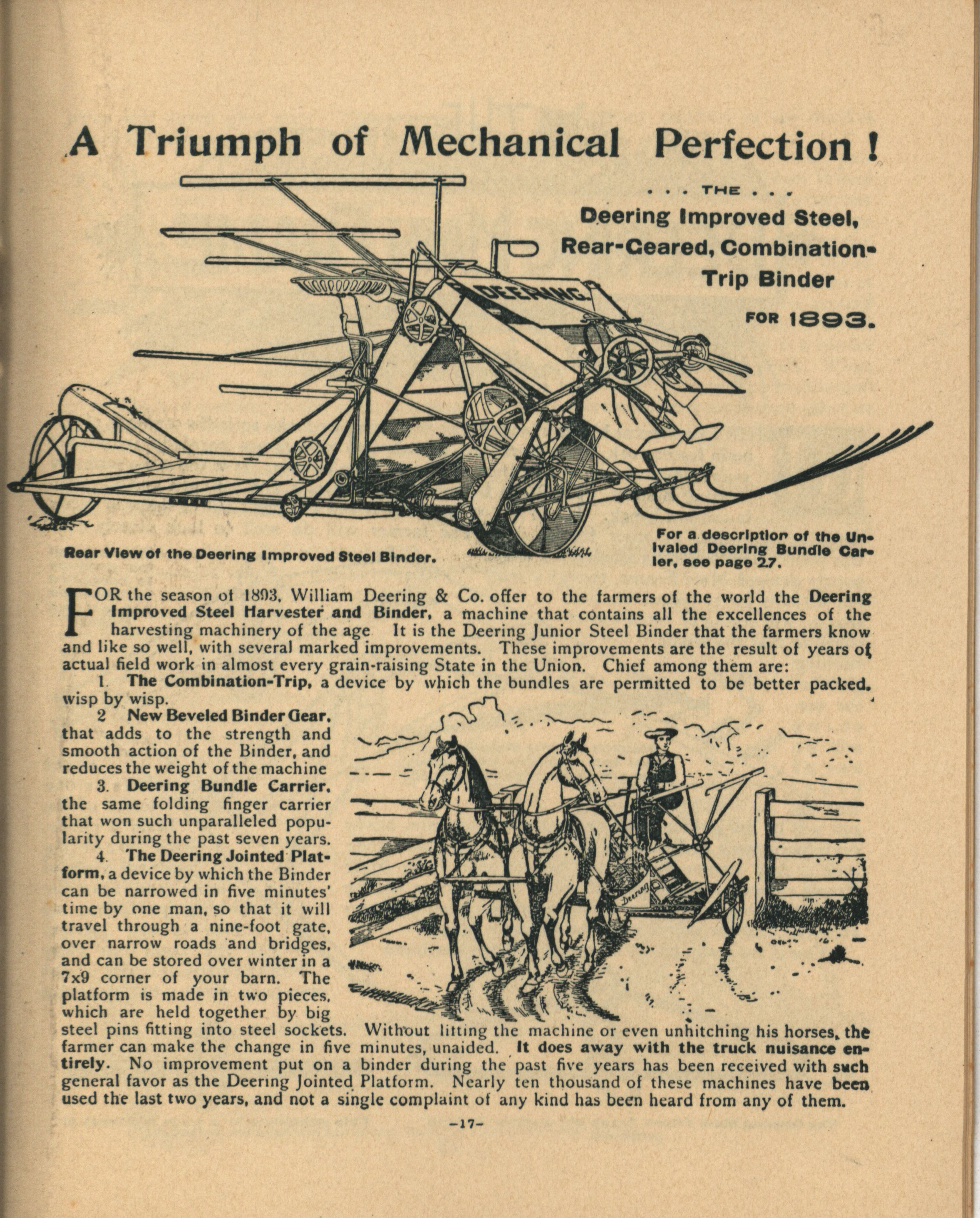 - Illustrated catalog describing the agricultural machinery offered by WM. Deering and Company in 1893.