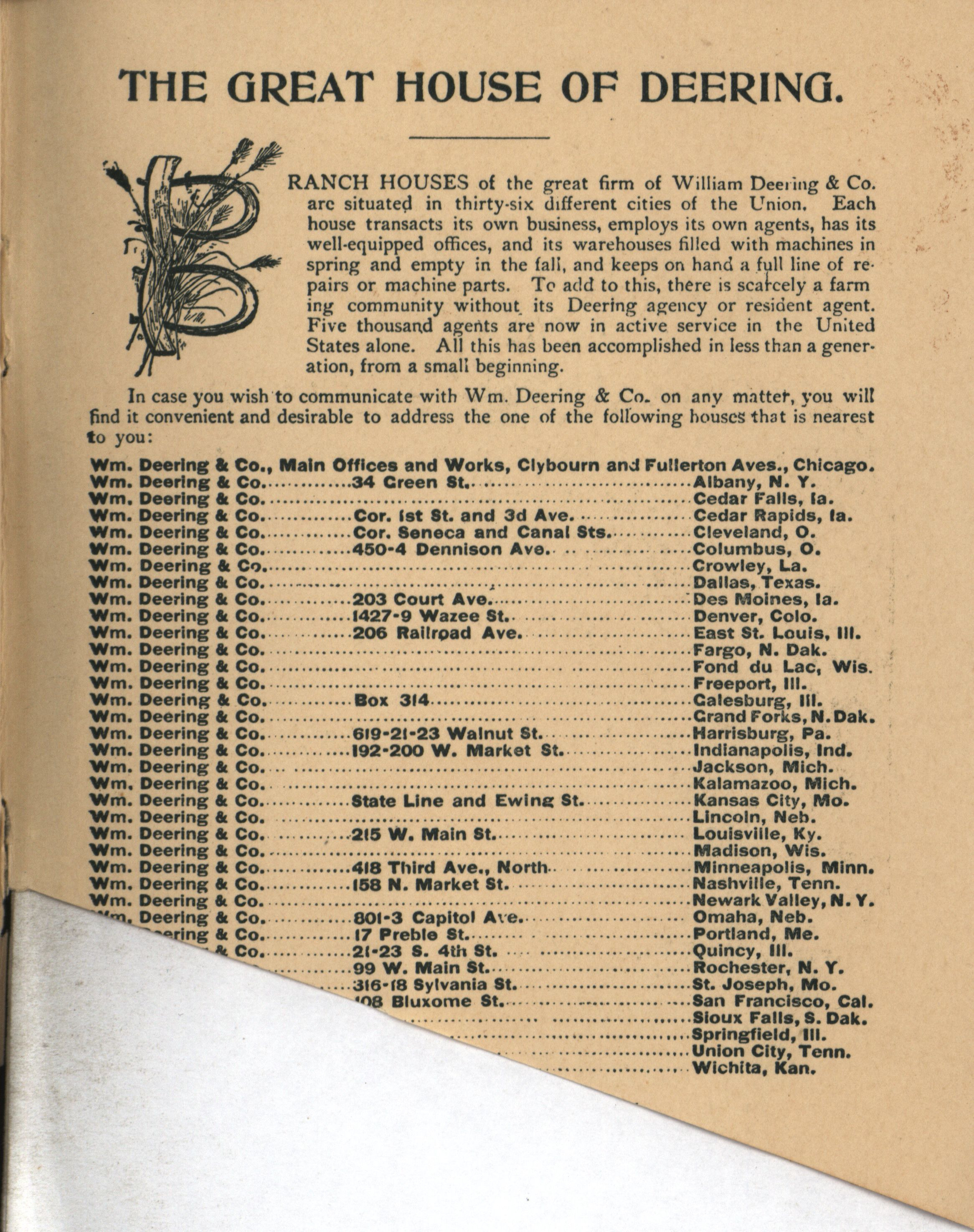 - "WM. Deering and Company catalog", Agricultural Machinery Literature Collection, Iowa State University Library Digital Collections