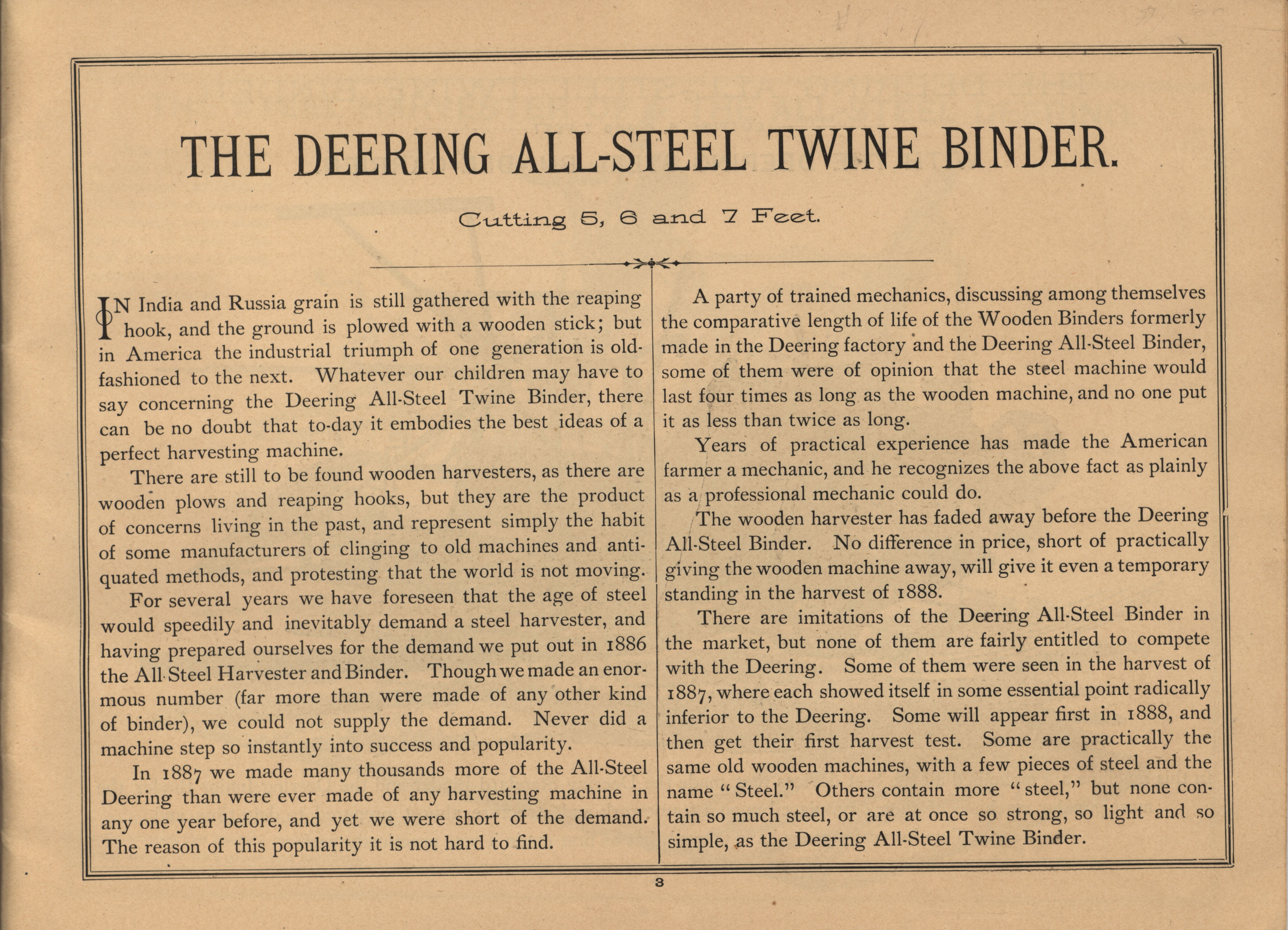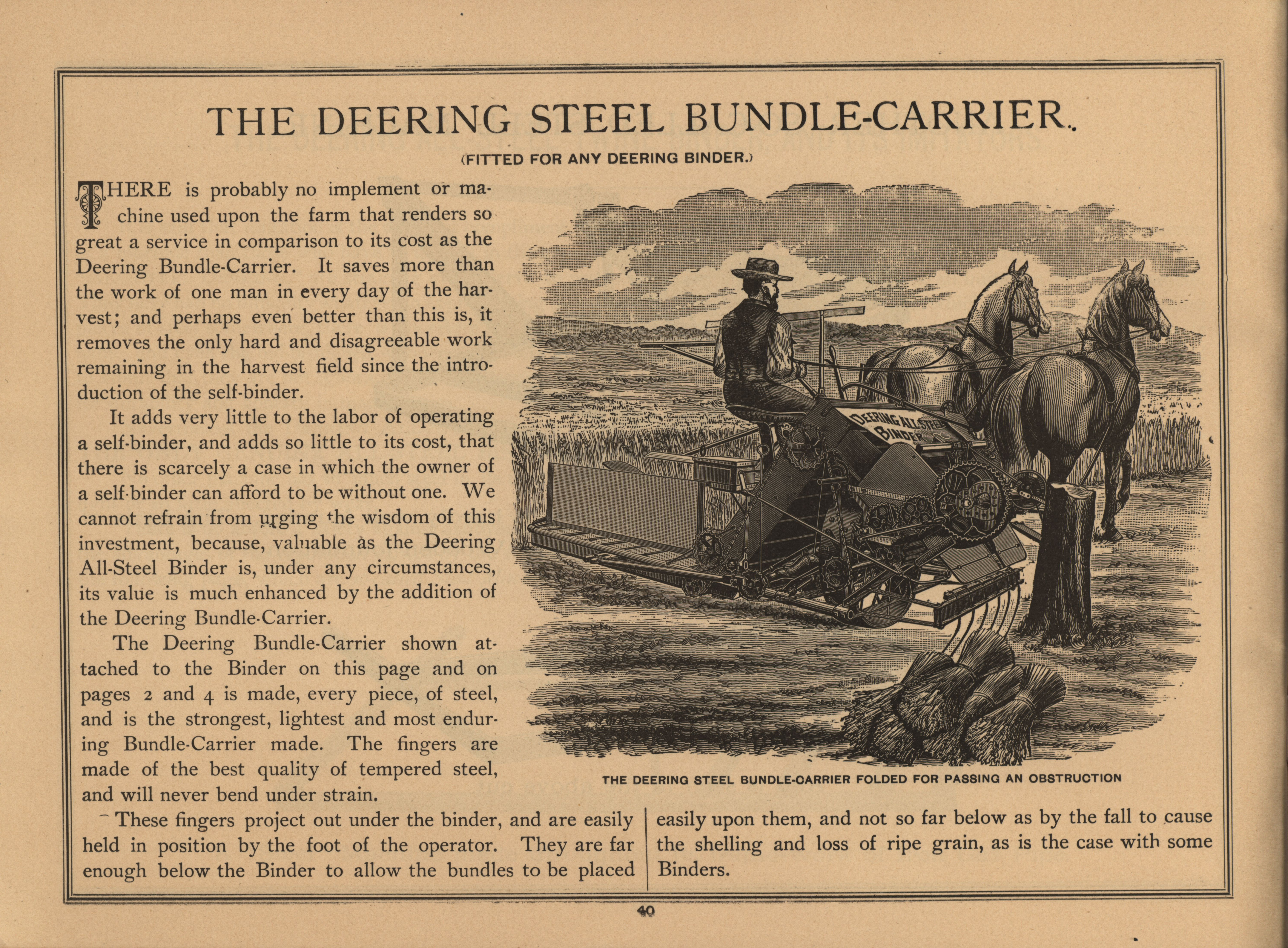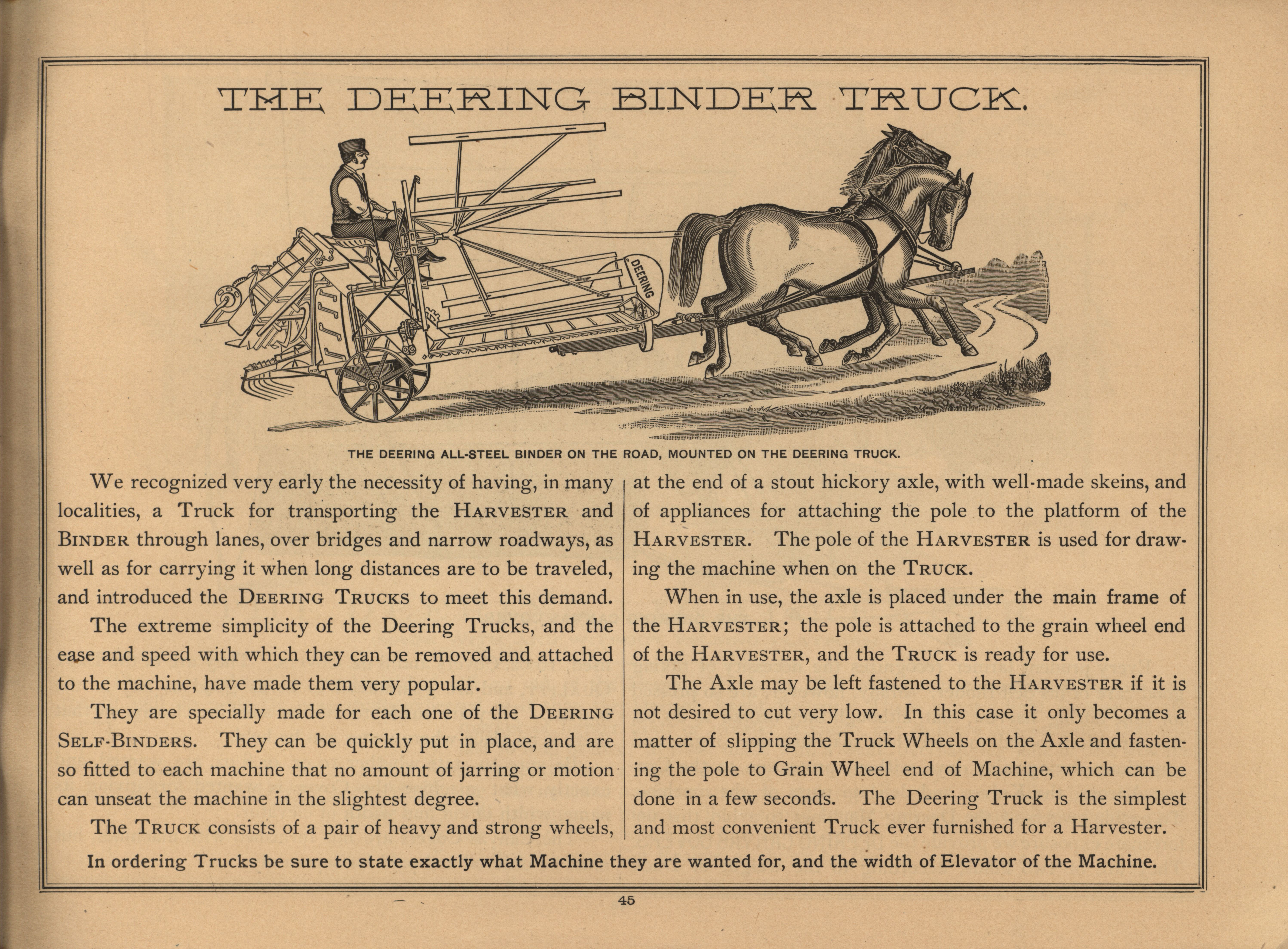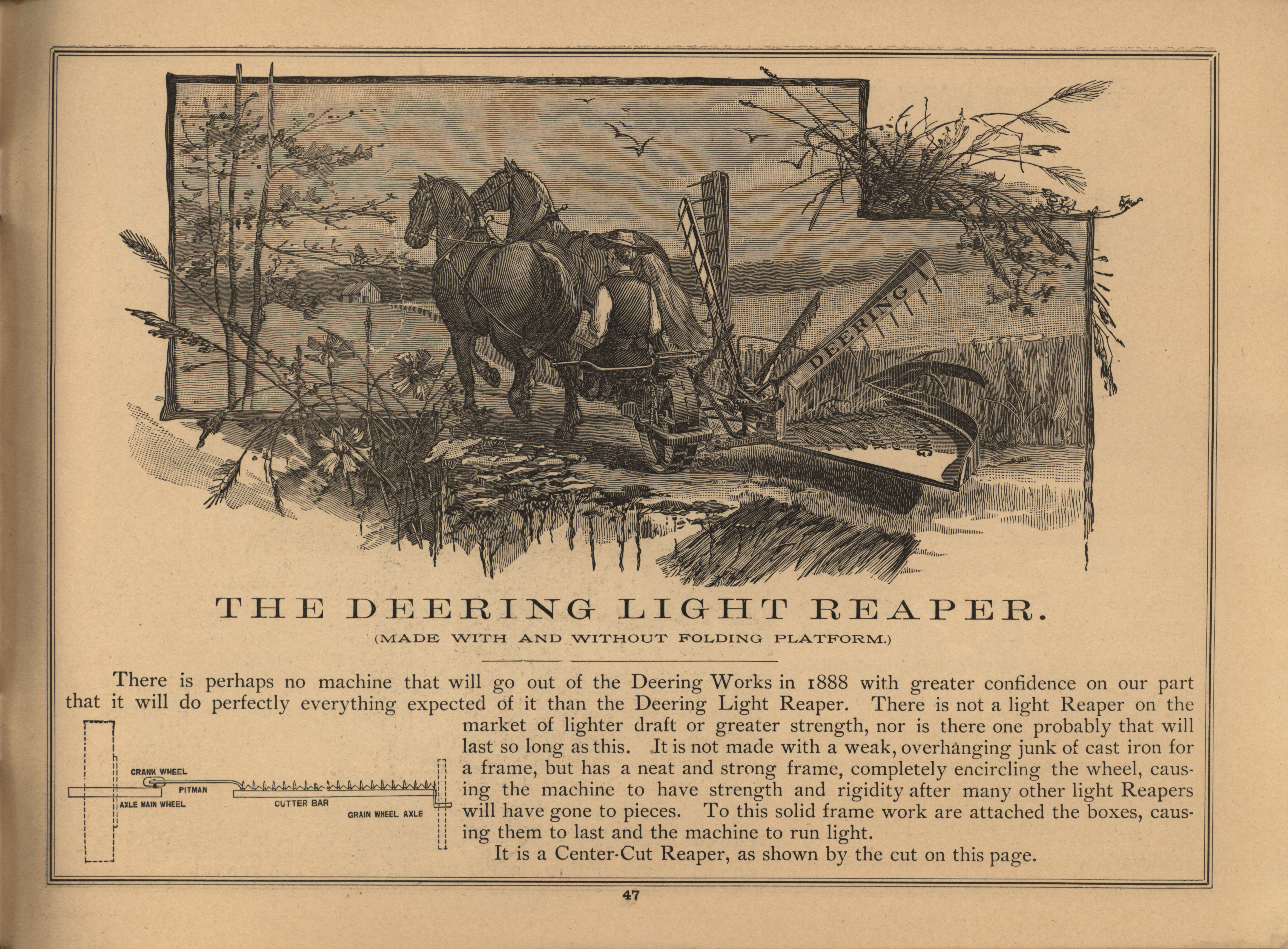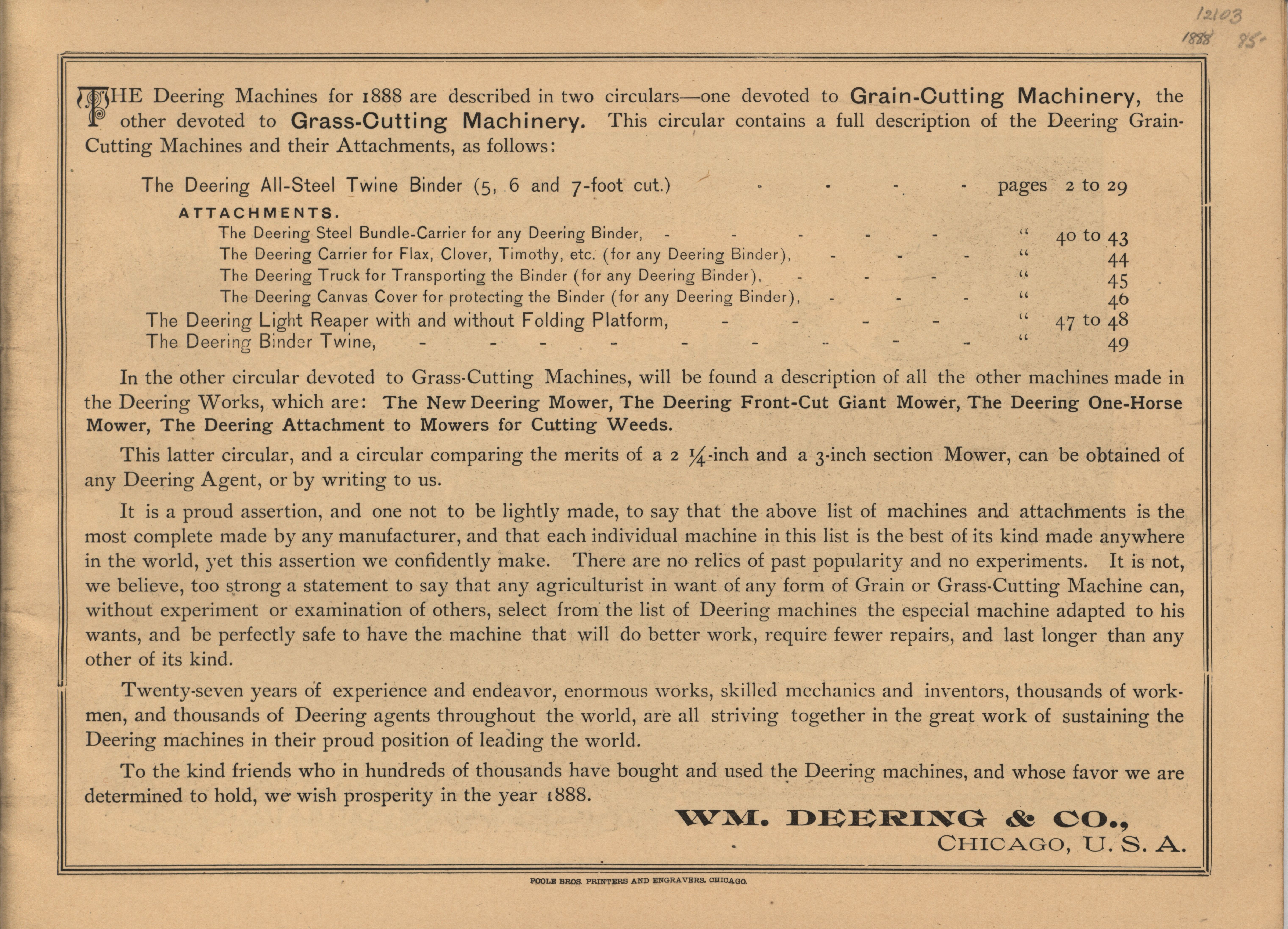 - "WM. Deering and Company Harvesting Machinery catalog", Agricultural Machinery Literature Collection, Iowa State University Library Digital Collections