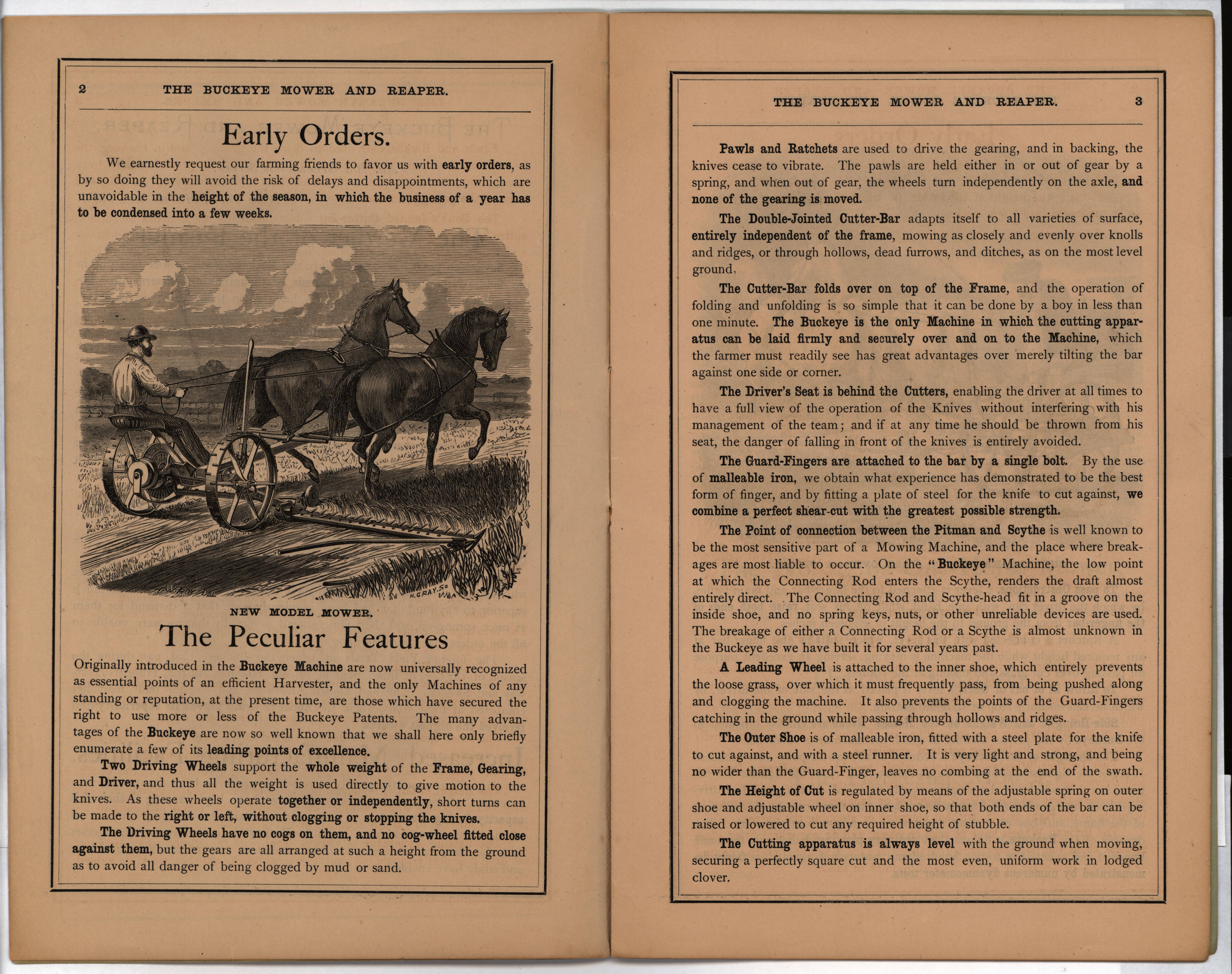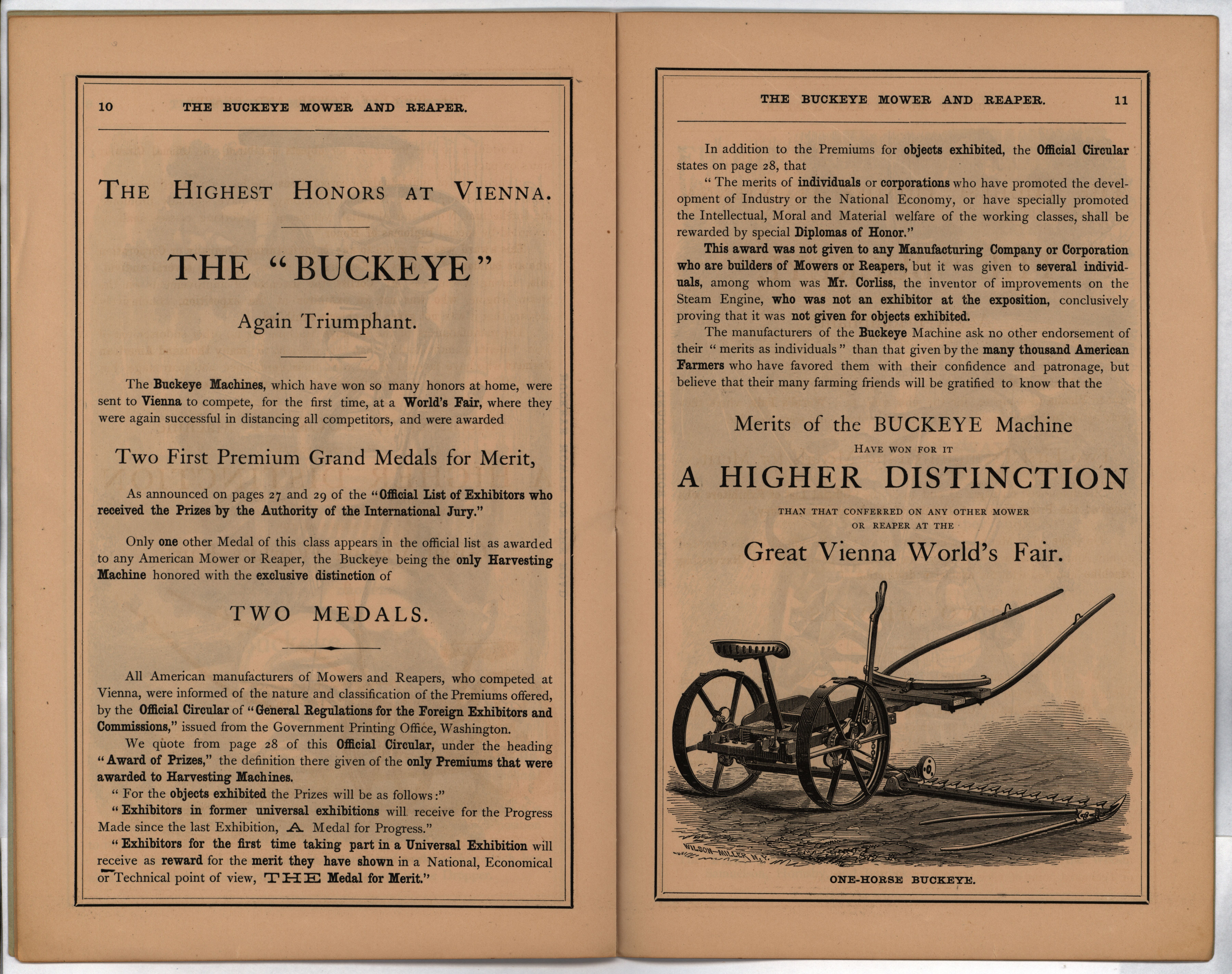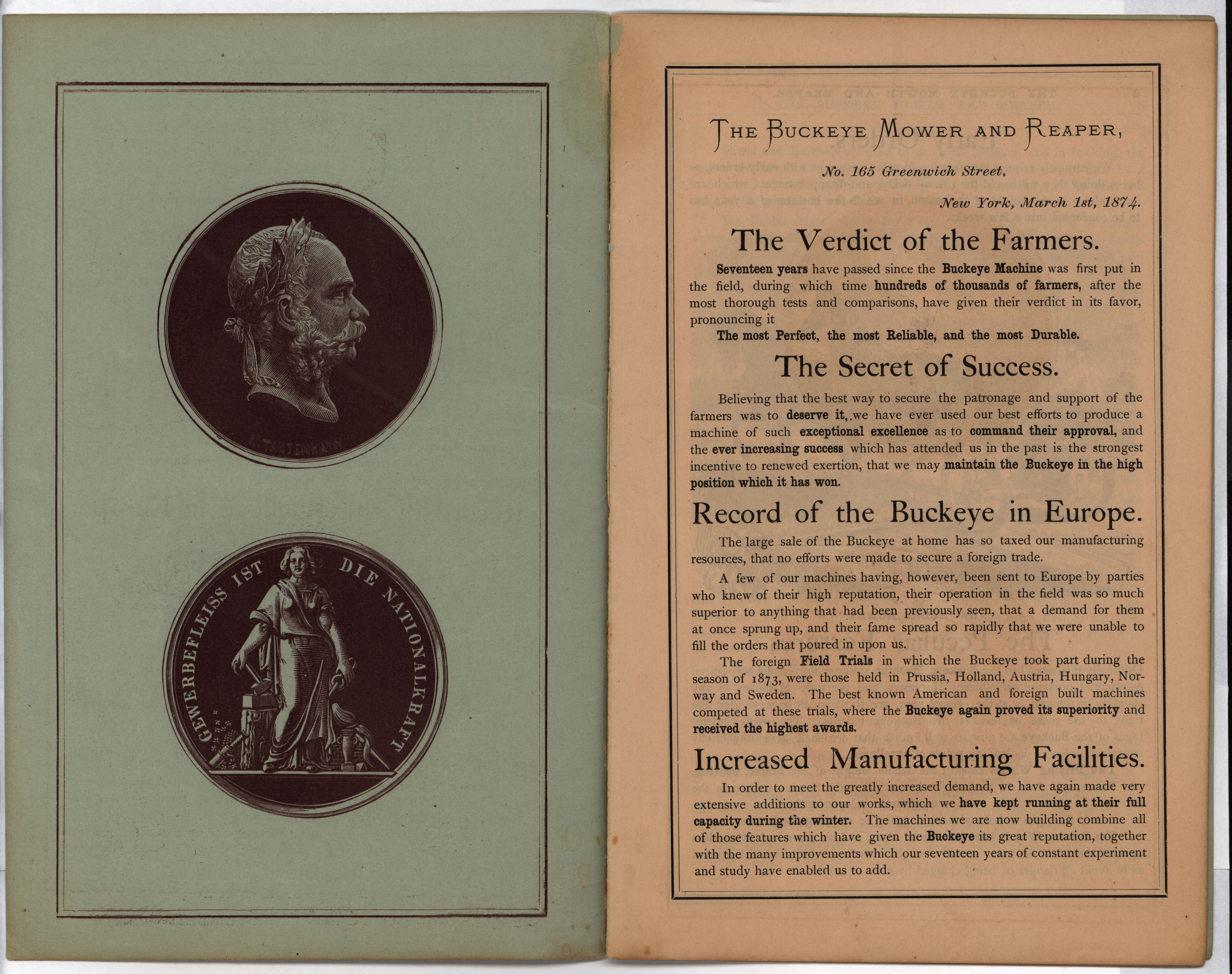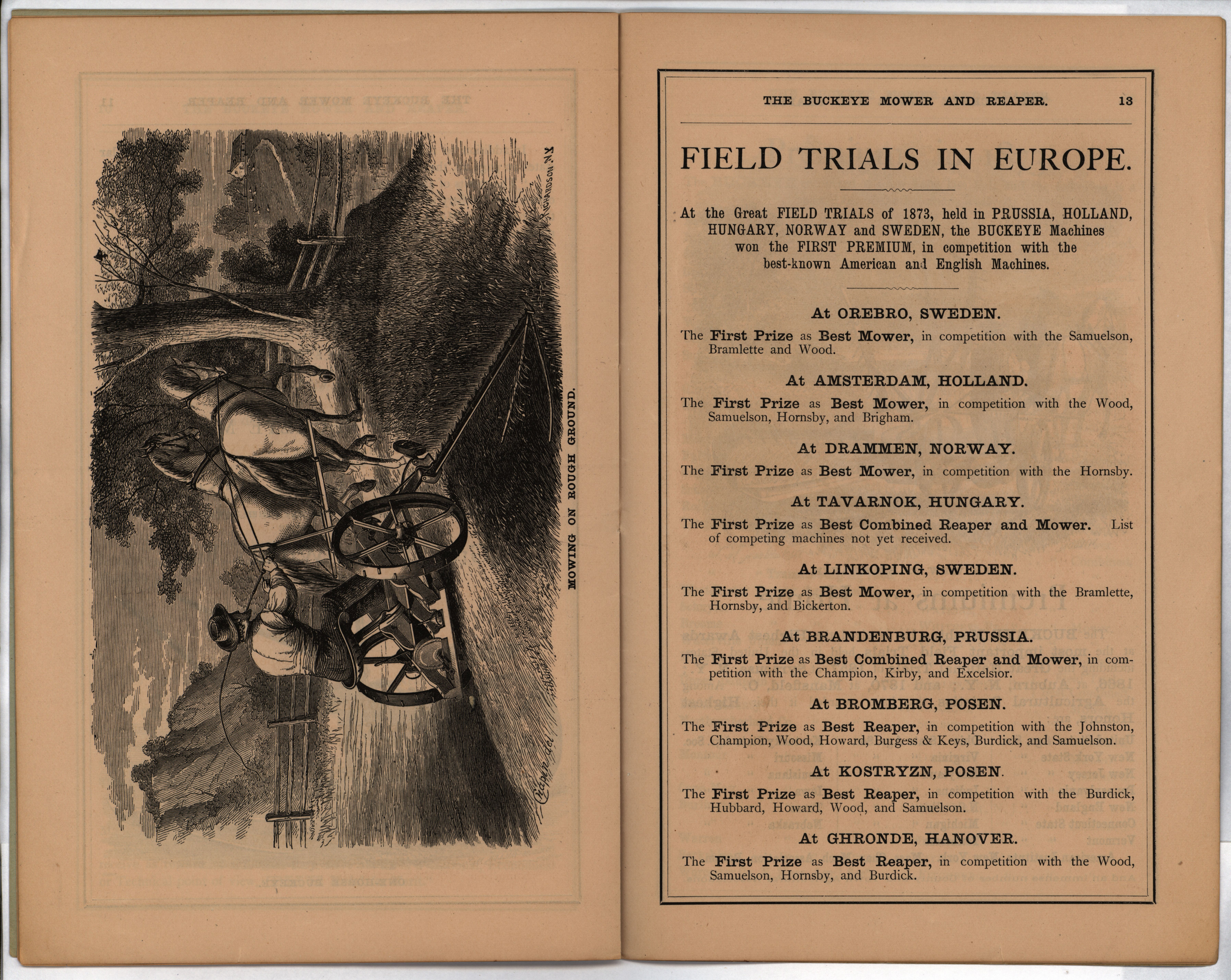 - "Buckeye mower and reaper with self-raker", Agricultural Machinery Literature Collection, Iowa State University Library Digital Collections