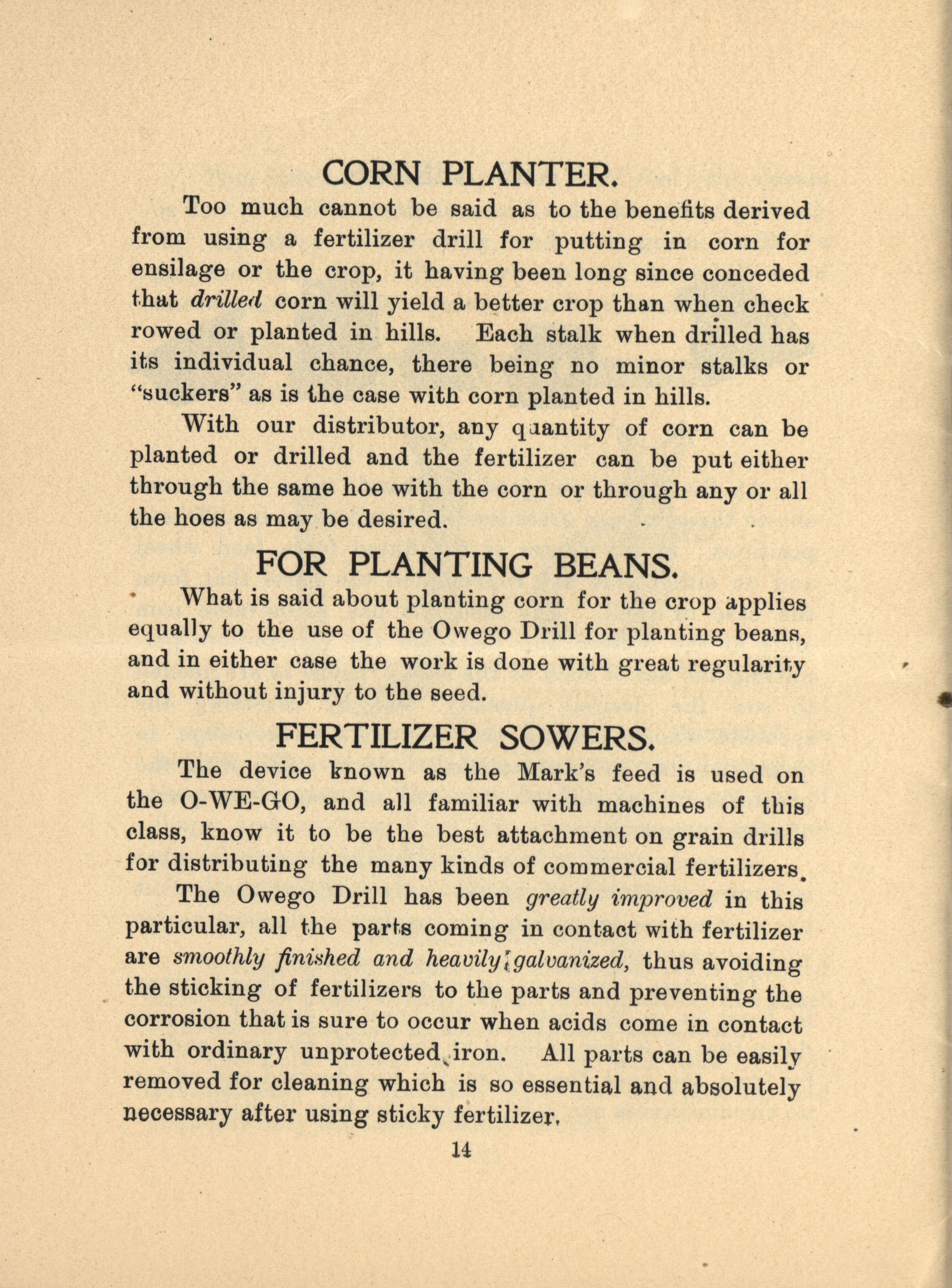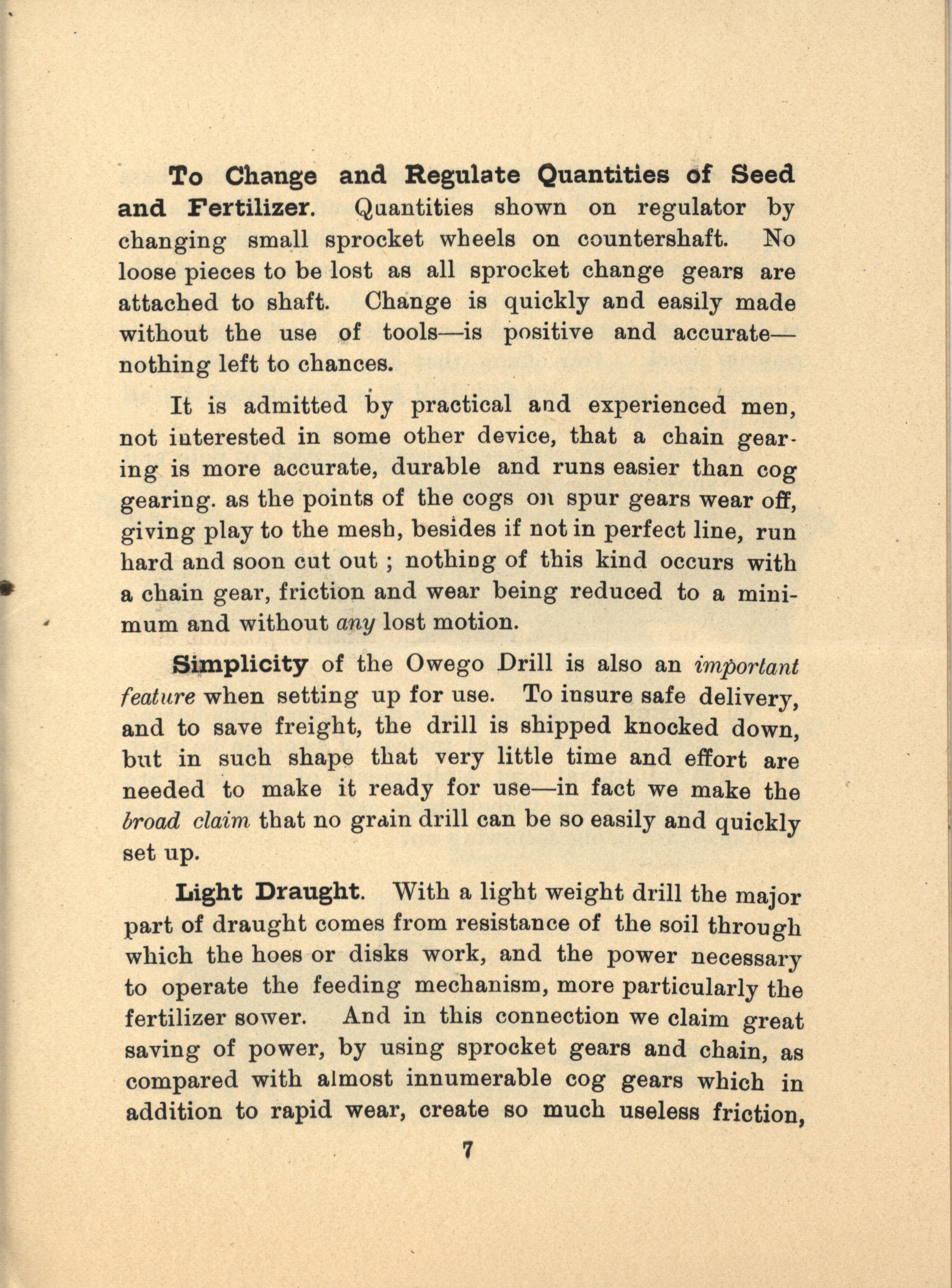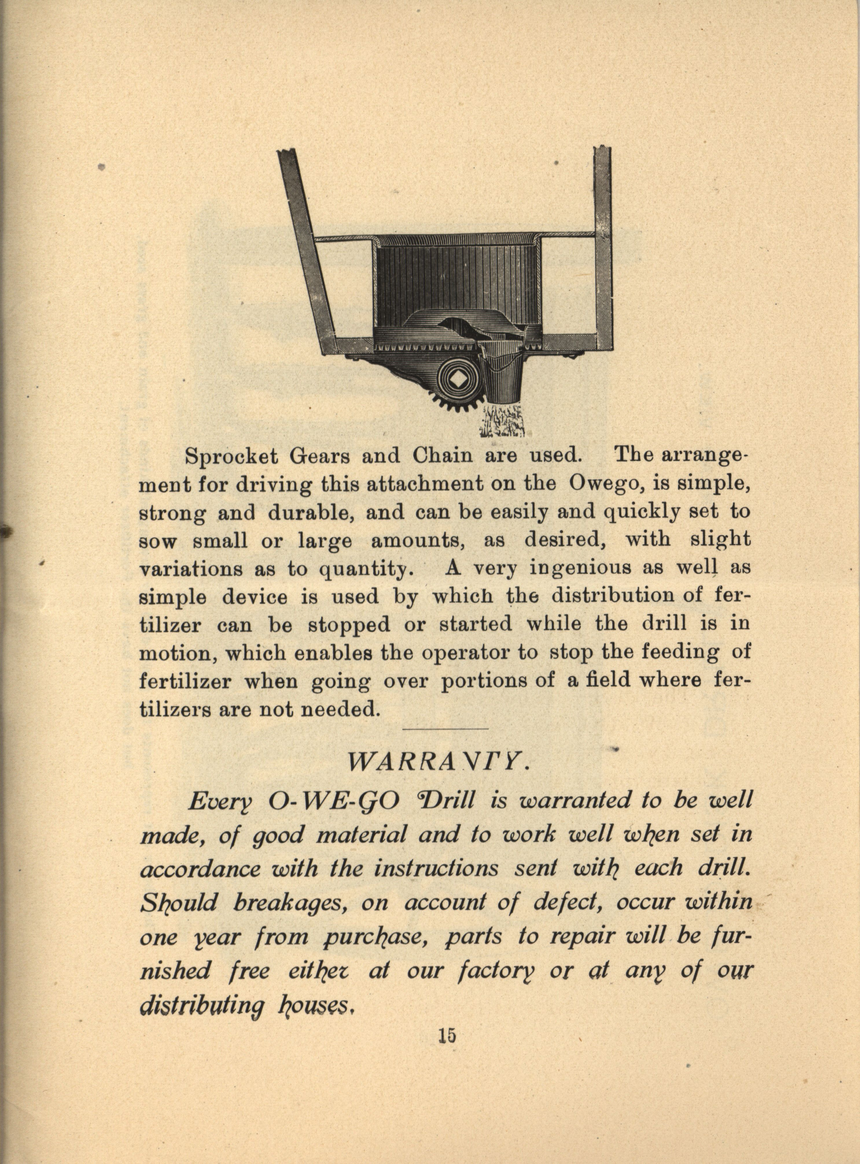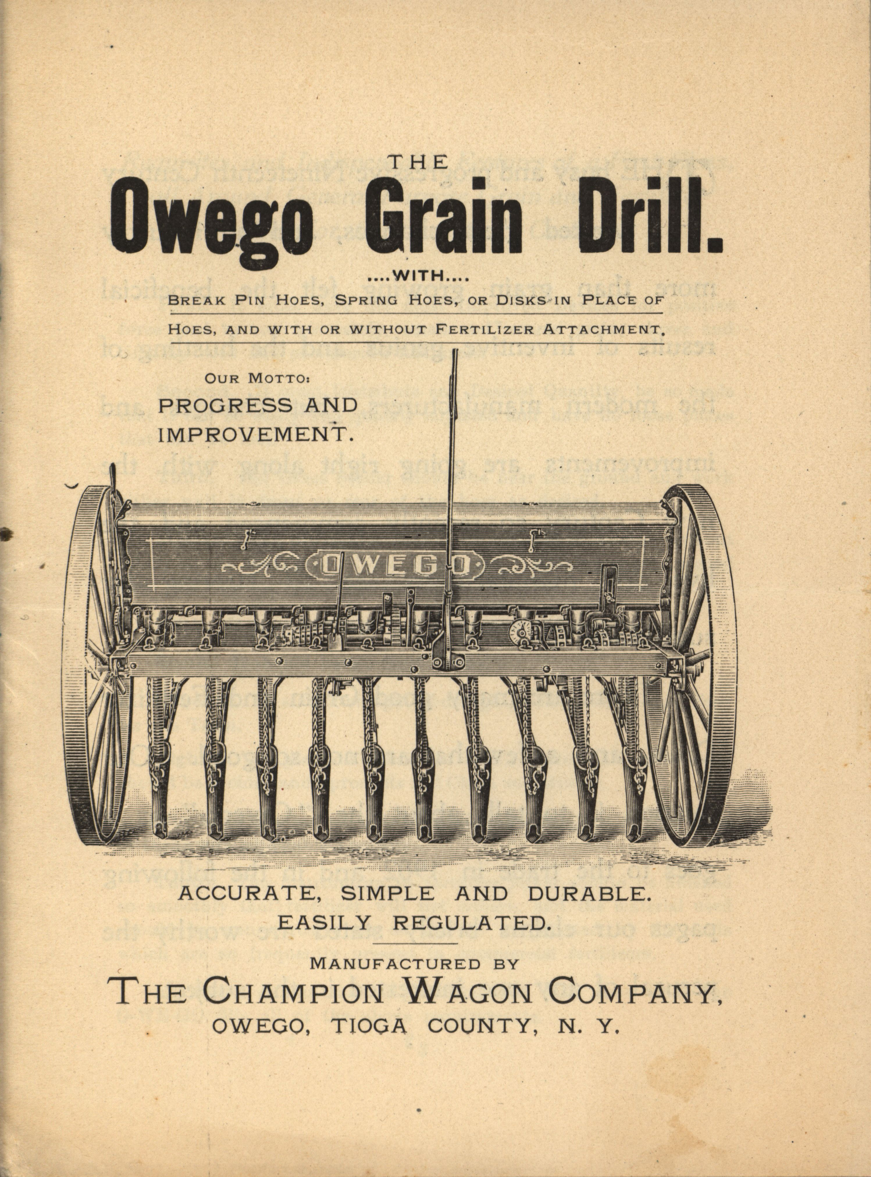 - "Champion Wagon Company Owego Grain Drill catalog", Agricultural Machinery Literature Collection, Iowa State University Library Digital Collections