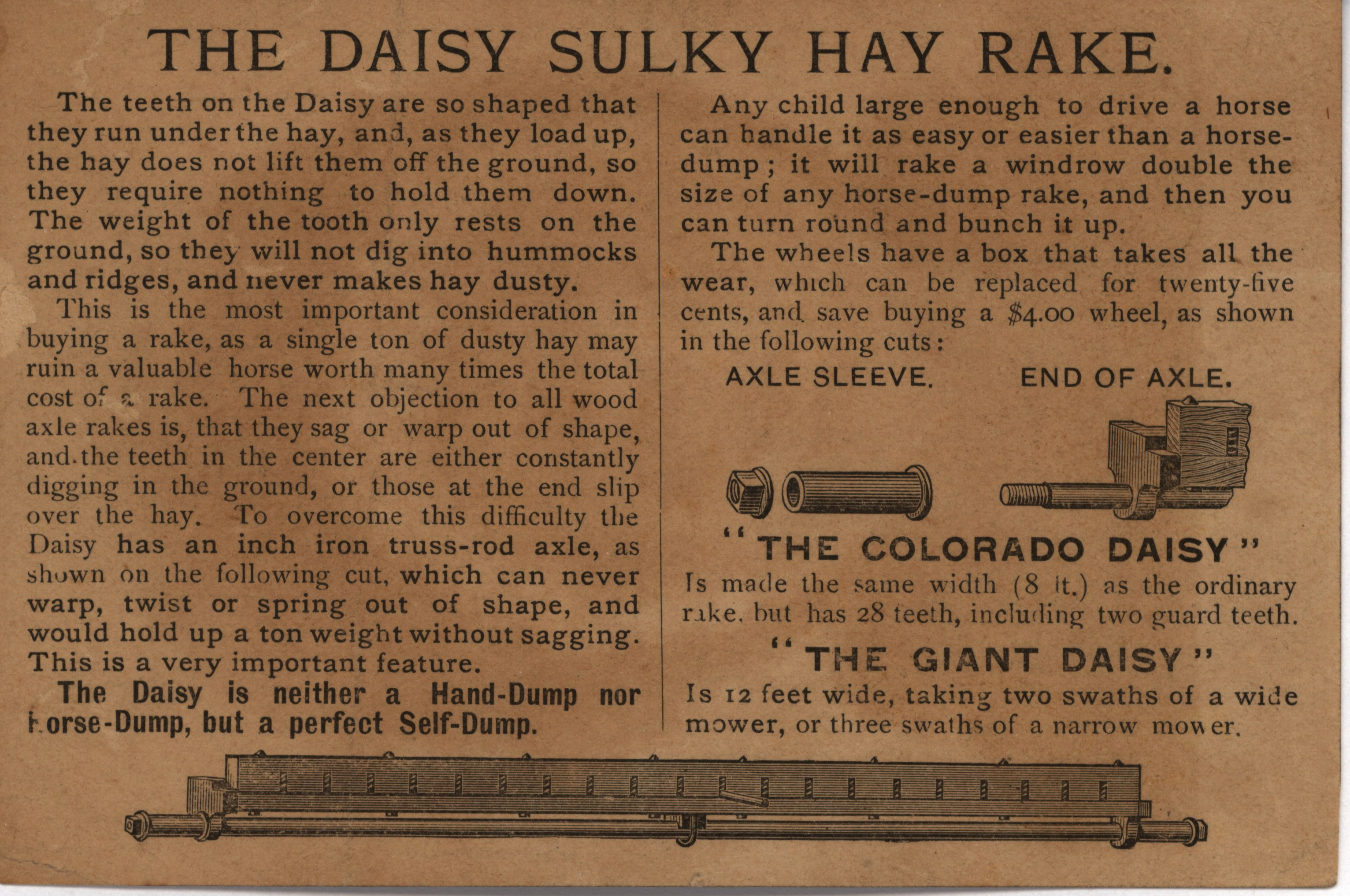 - "Albion Manufacturing Company Daisy sulky hay rake advertisement", Agricultural Machinery Literature Collection, Iowa State University Library Digital Collections