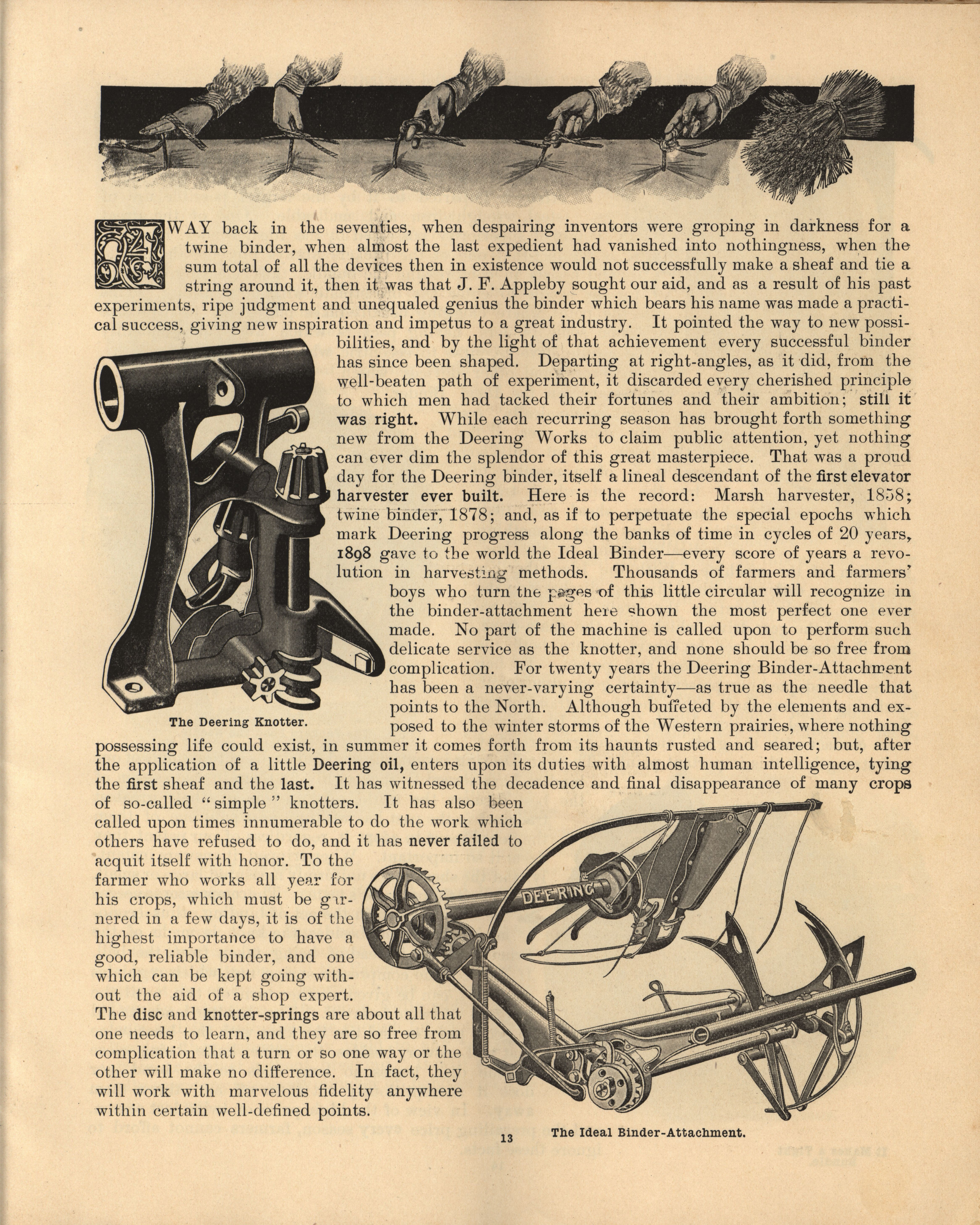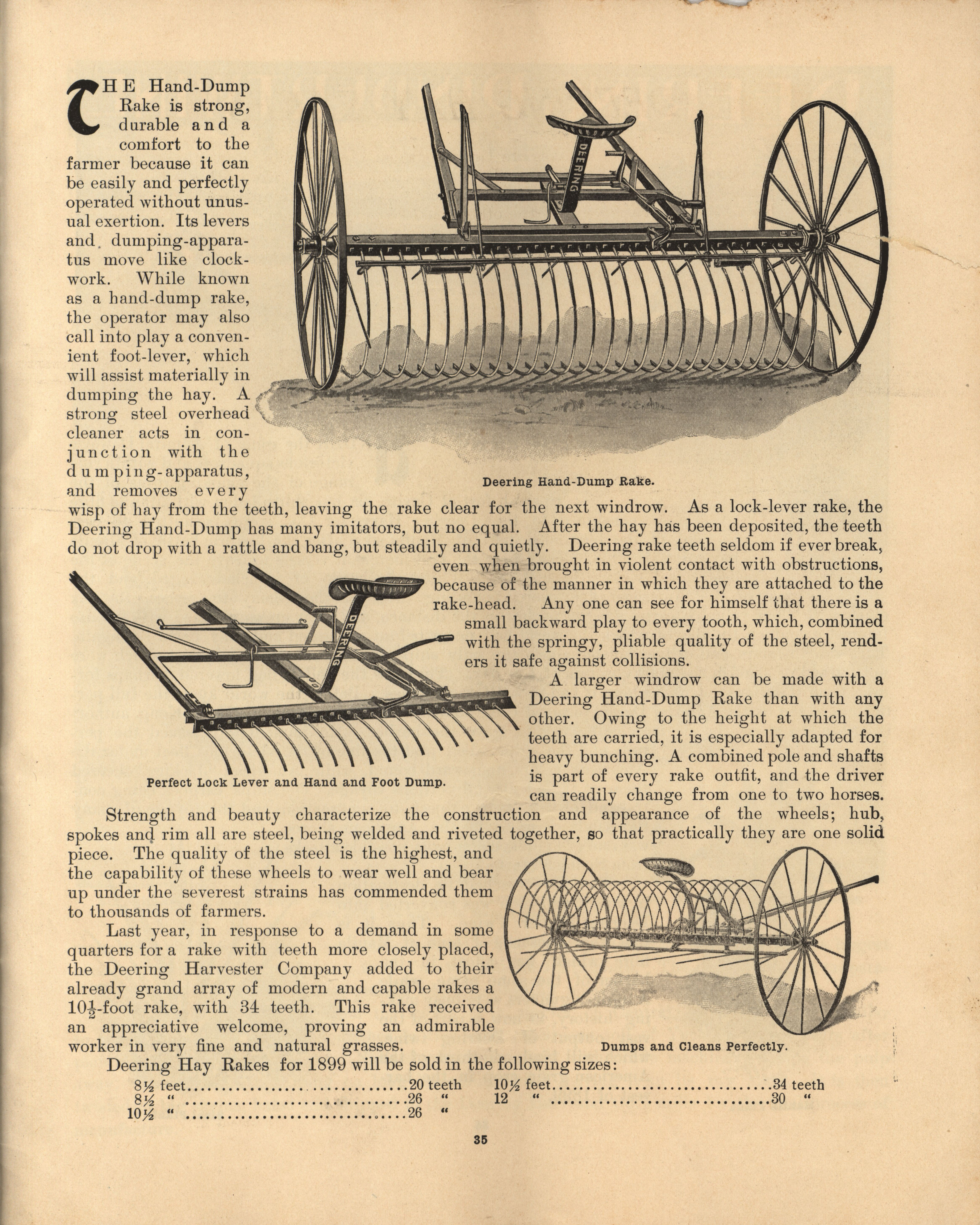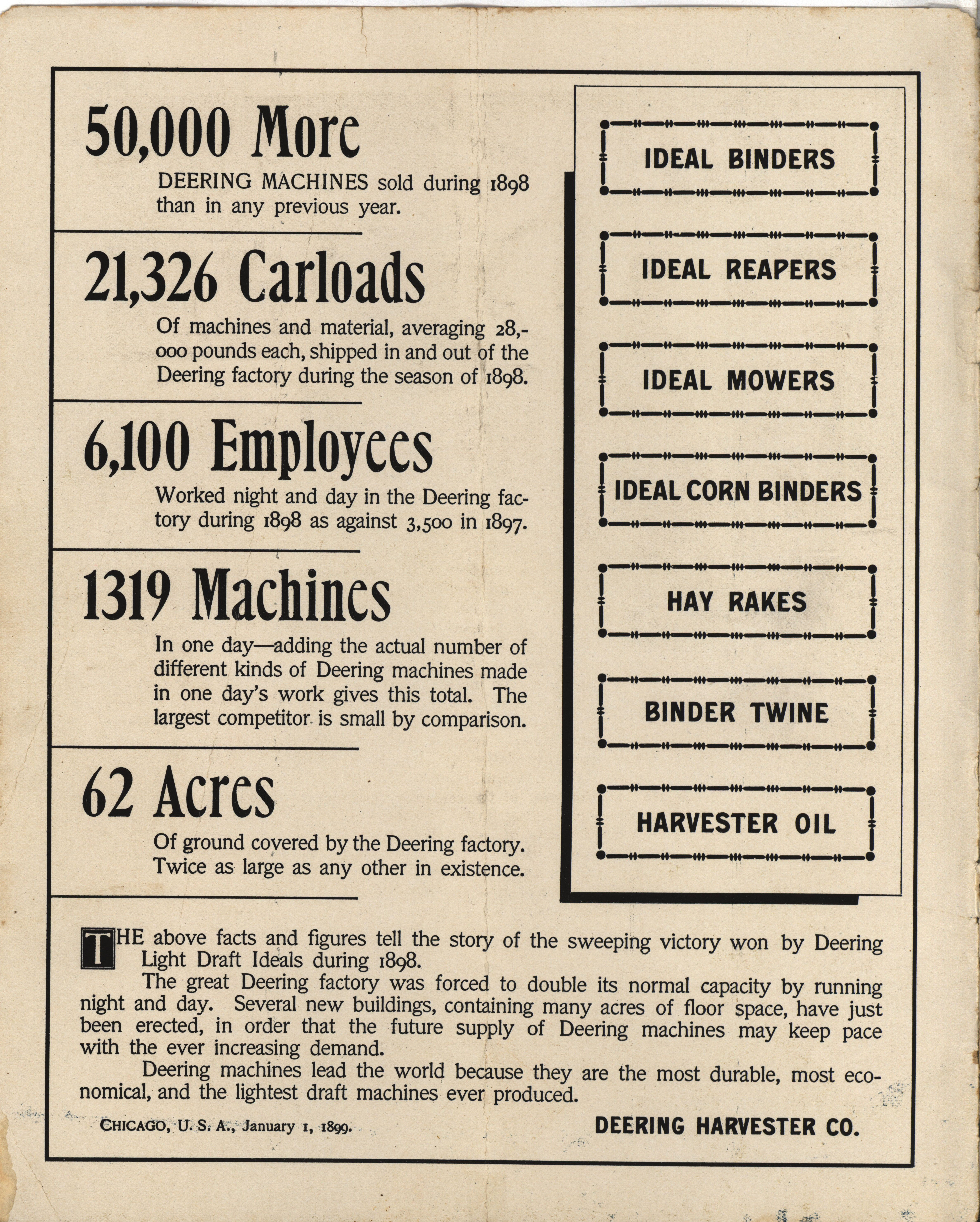 - Illustrated catalog describing the agricultural implements offered by Deering Harvester Company in 1899.