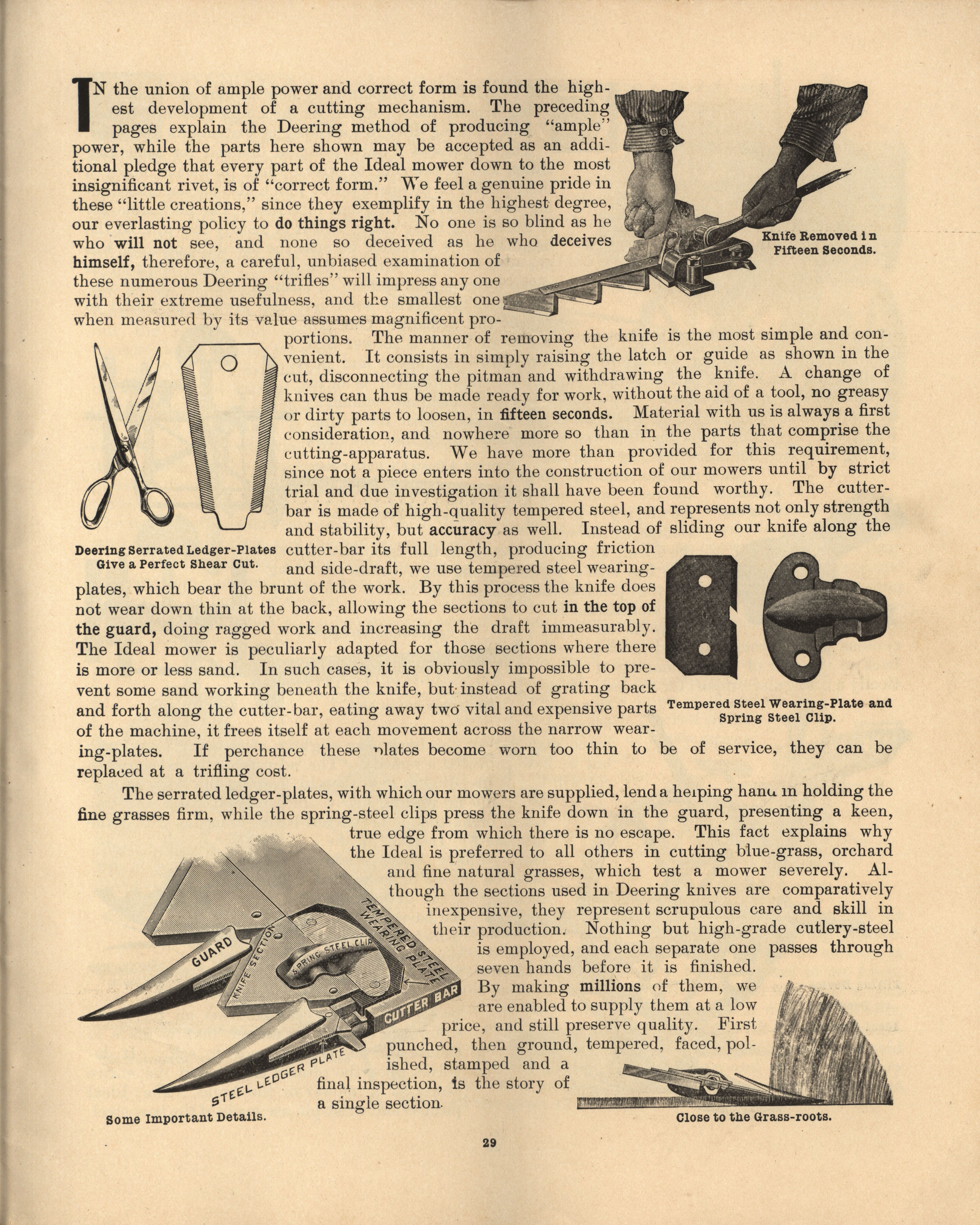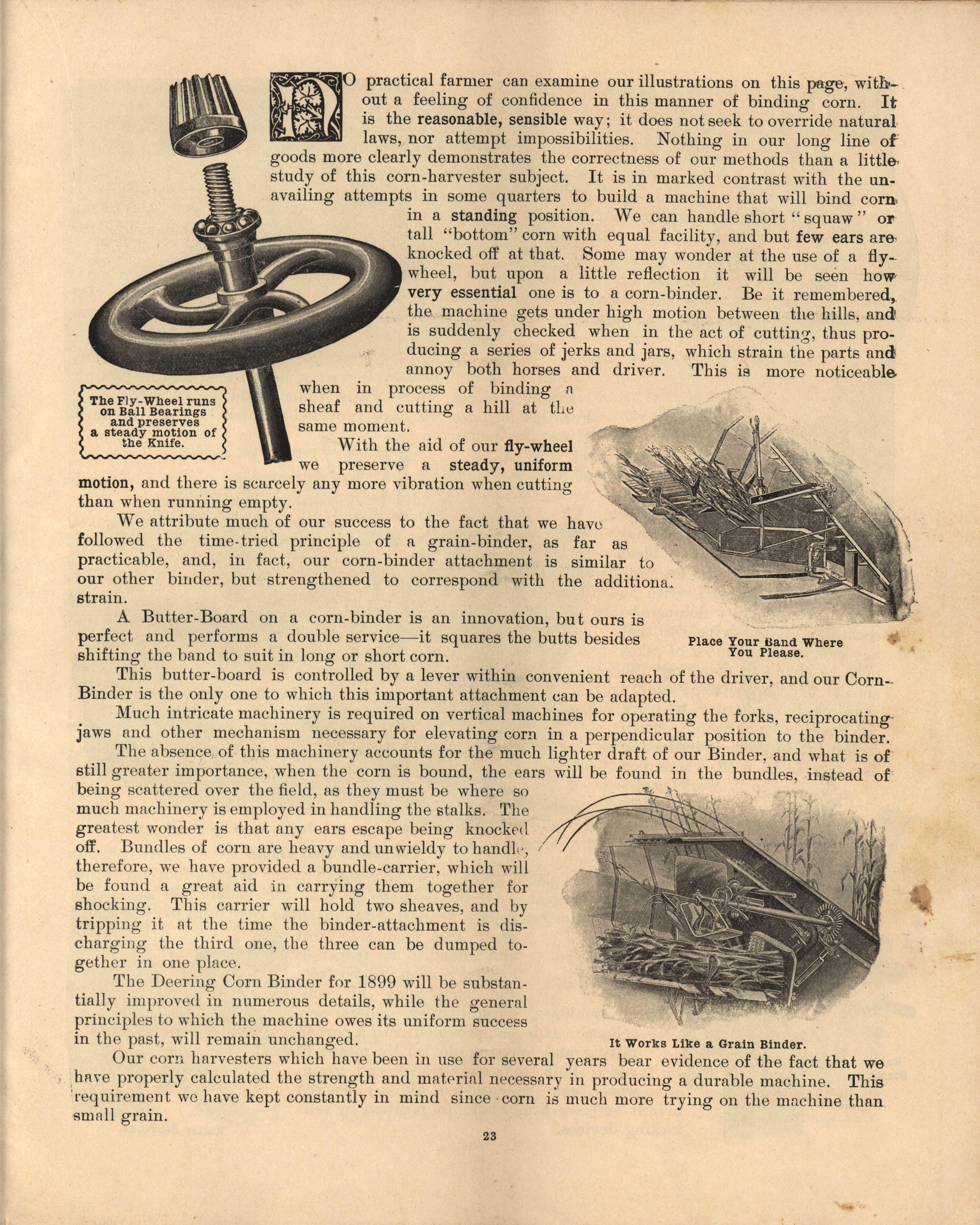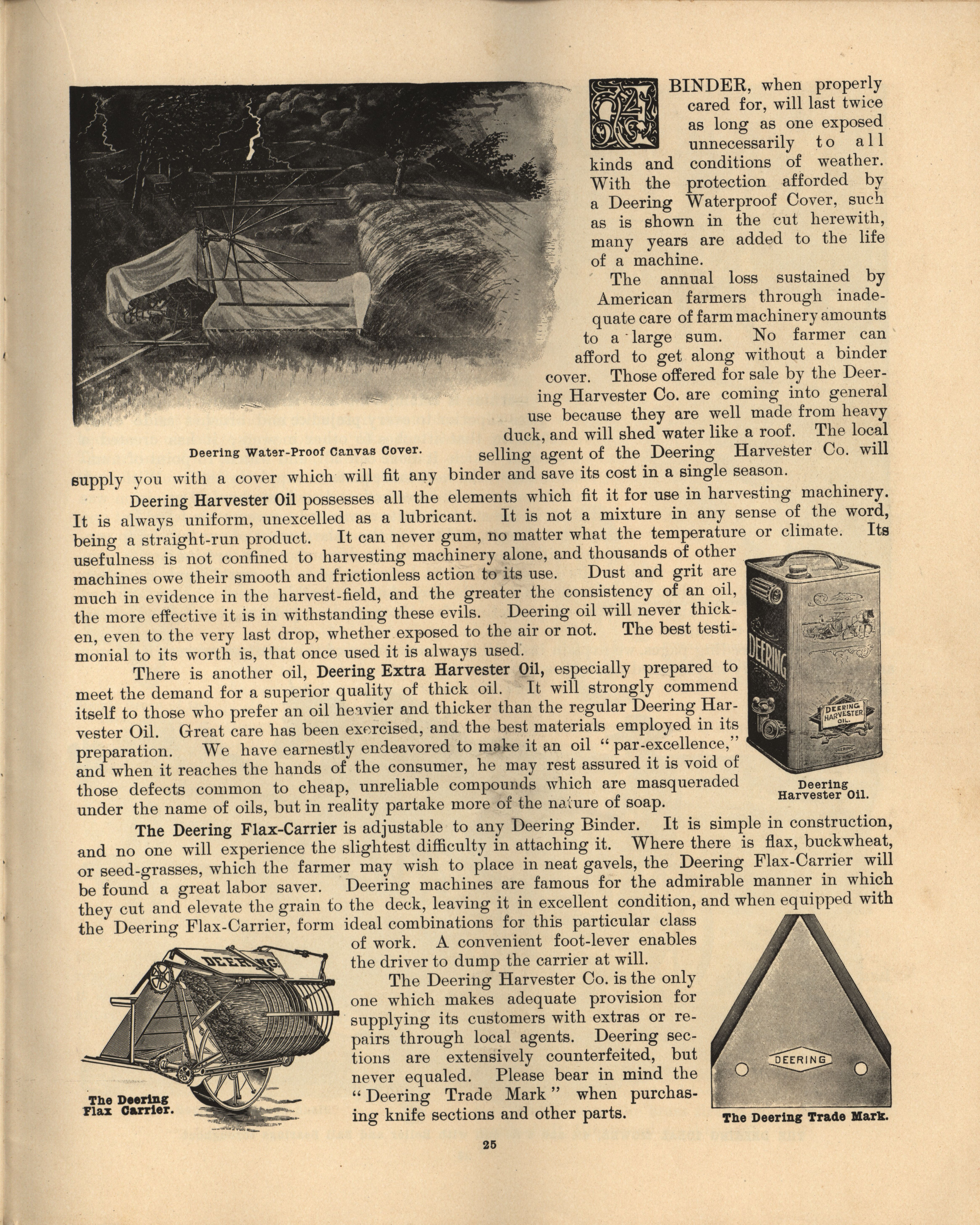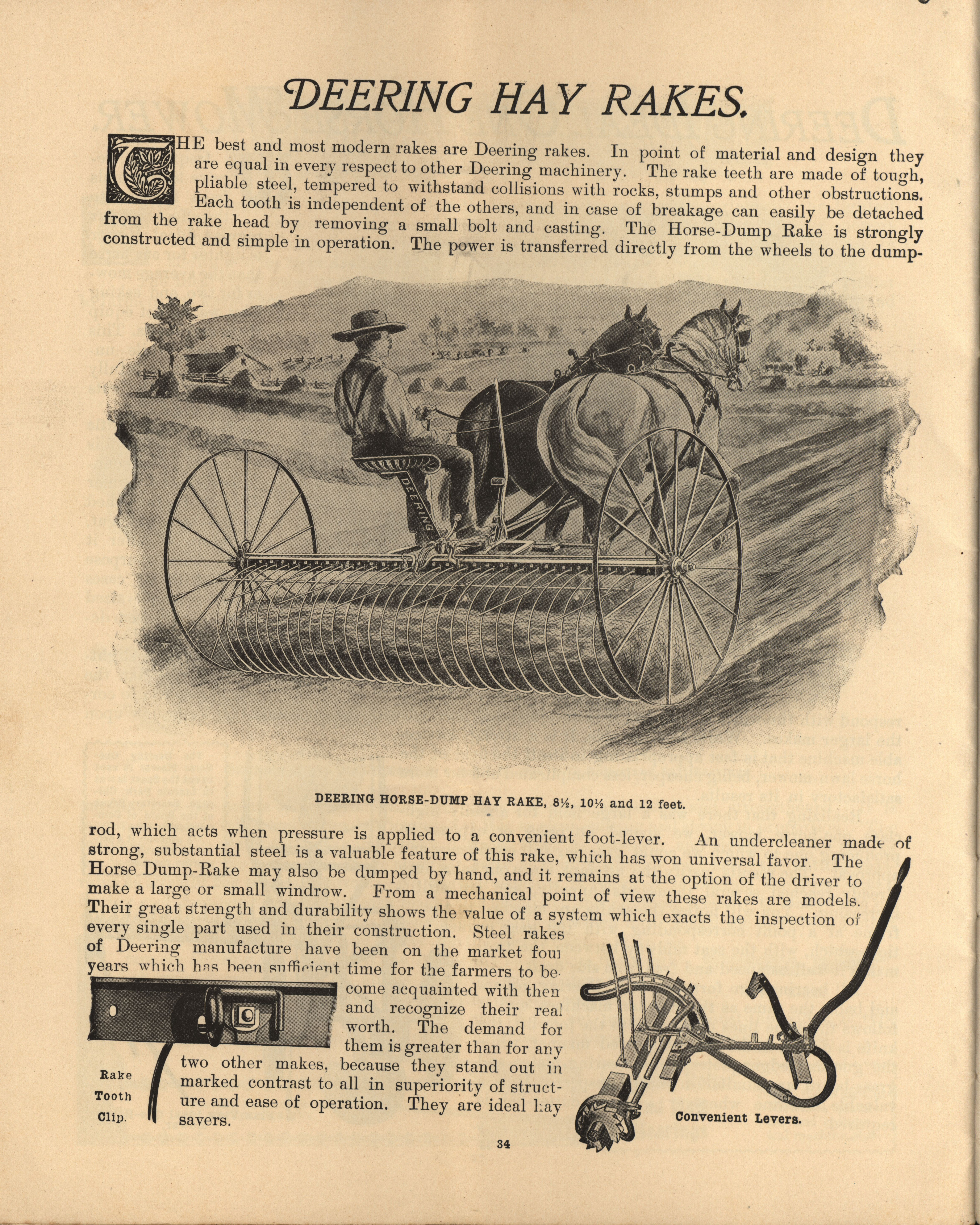 - Illustrated catalog describing the agricultural implements offered by Deering Harvester Company in 1899.
