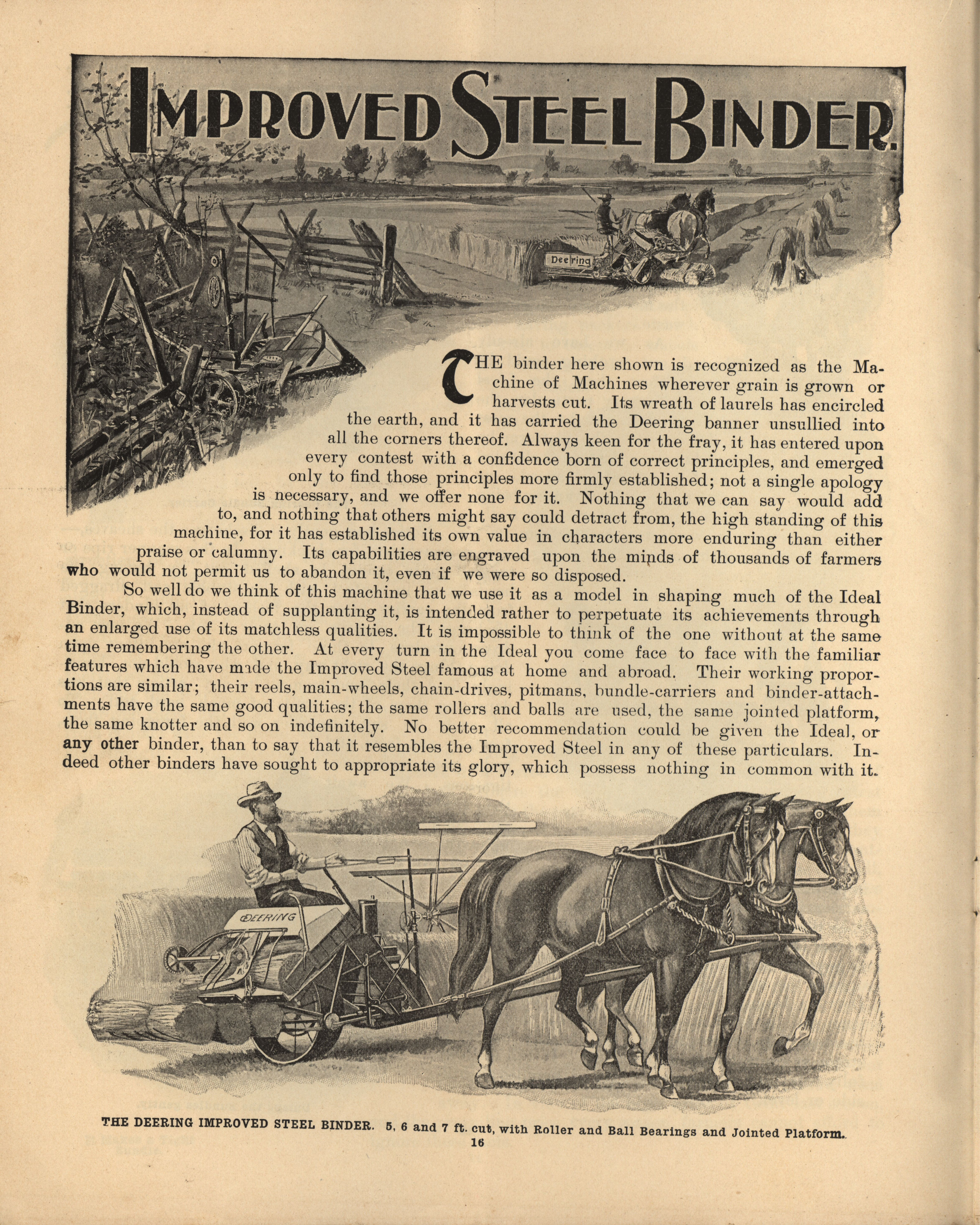 - "Deering Harvester Company Light Draft Ideals catalog", Agricultural Machinery Literature Collection, Iowa State University Library Digital Collections