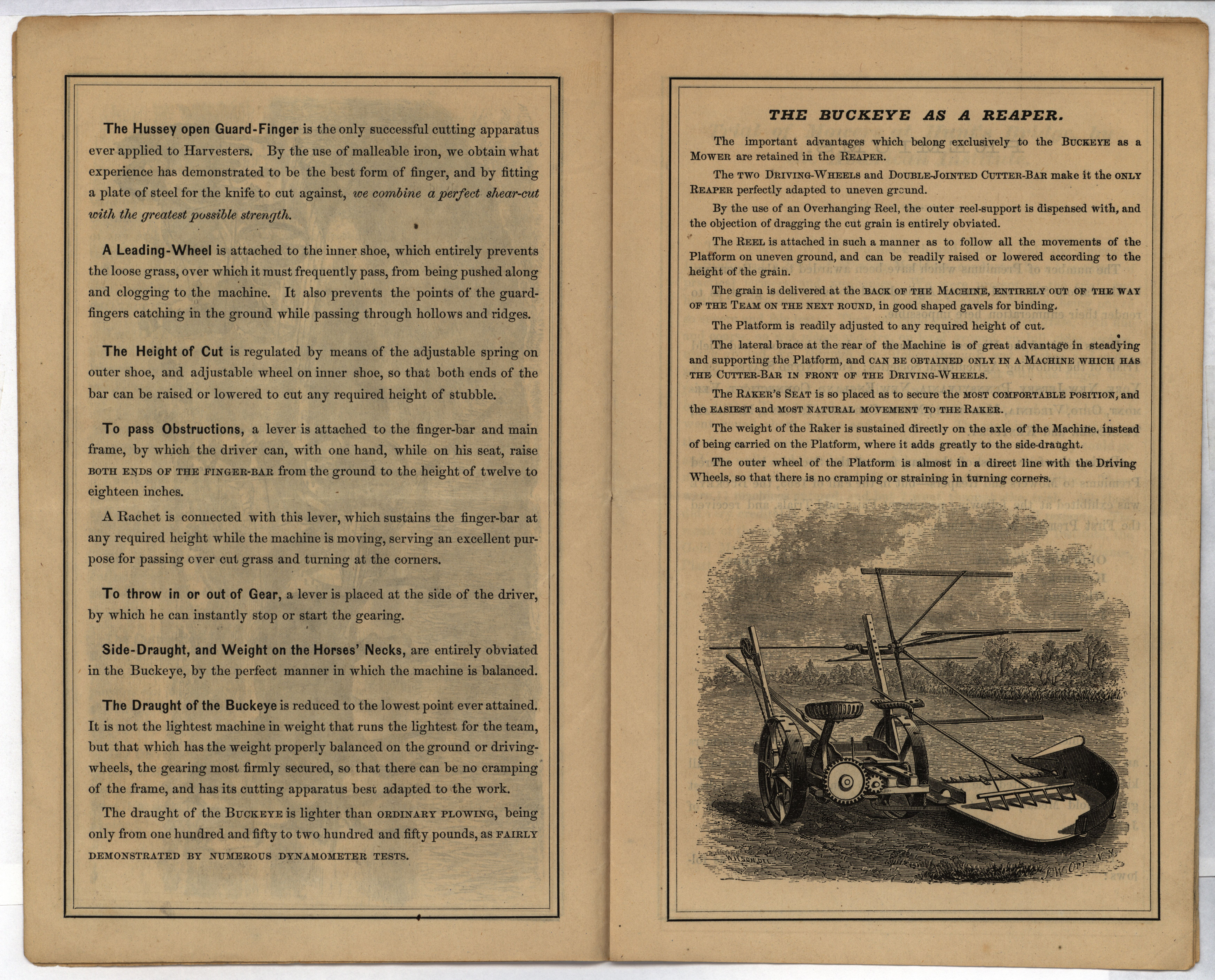 - "Buckeye mower and reaper", Agricultural Machinery Literature Collection, Iowa State University Library Digital Collections