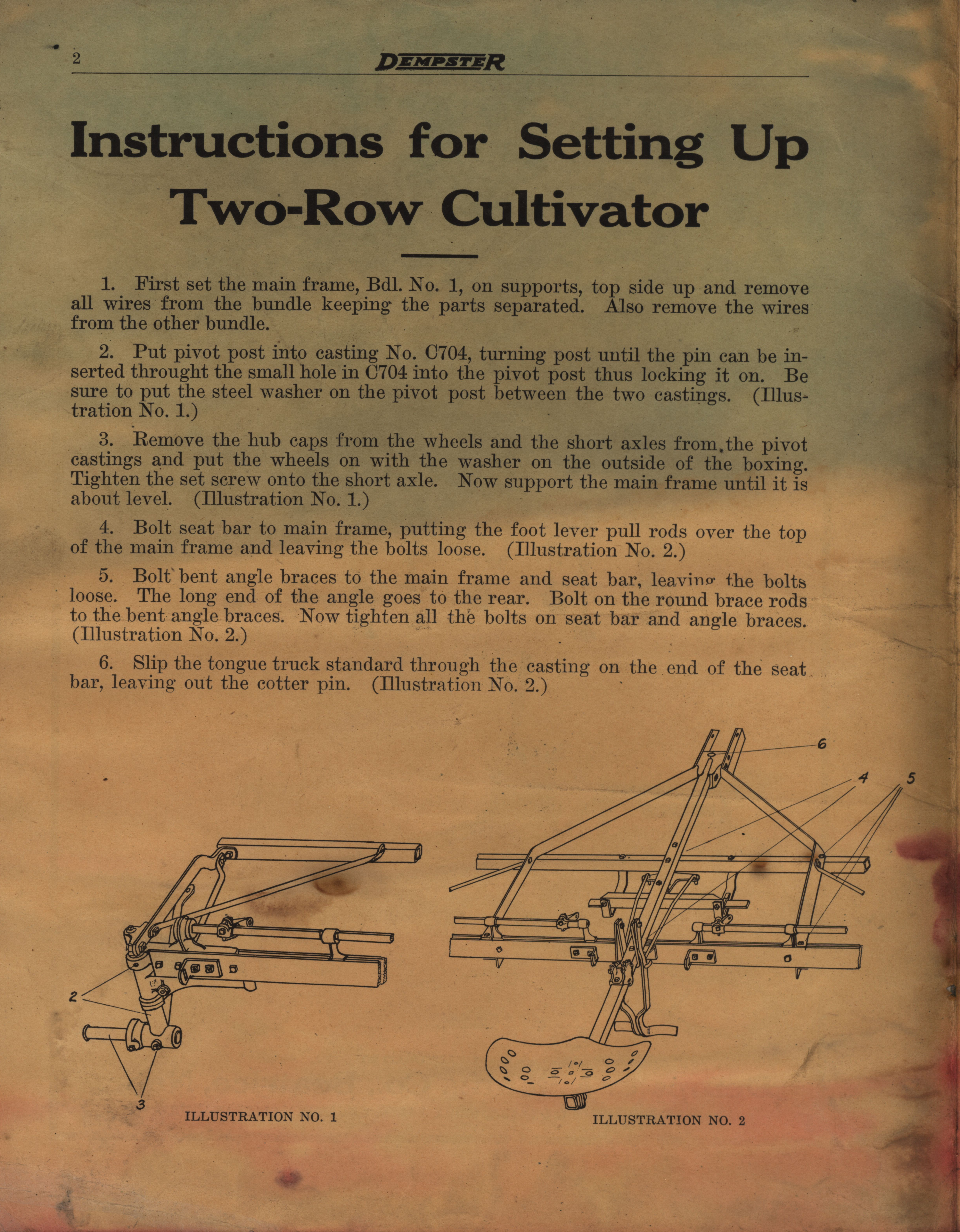 - Dempster Mill Manufacturing Company instructions for setting up and operating Dempster cultivators and listers