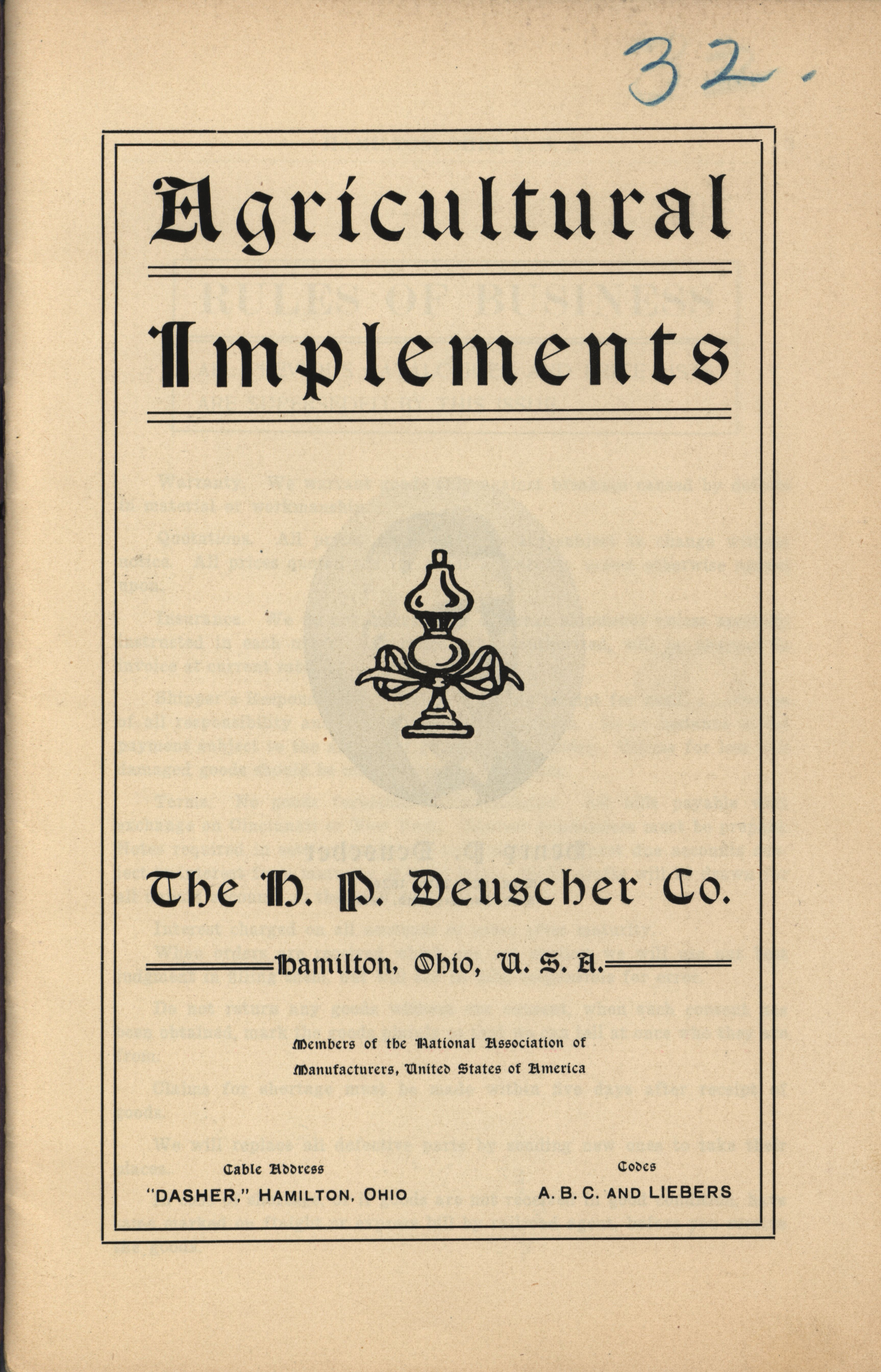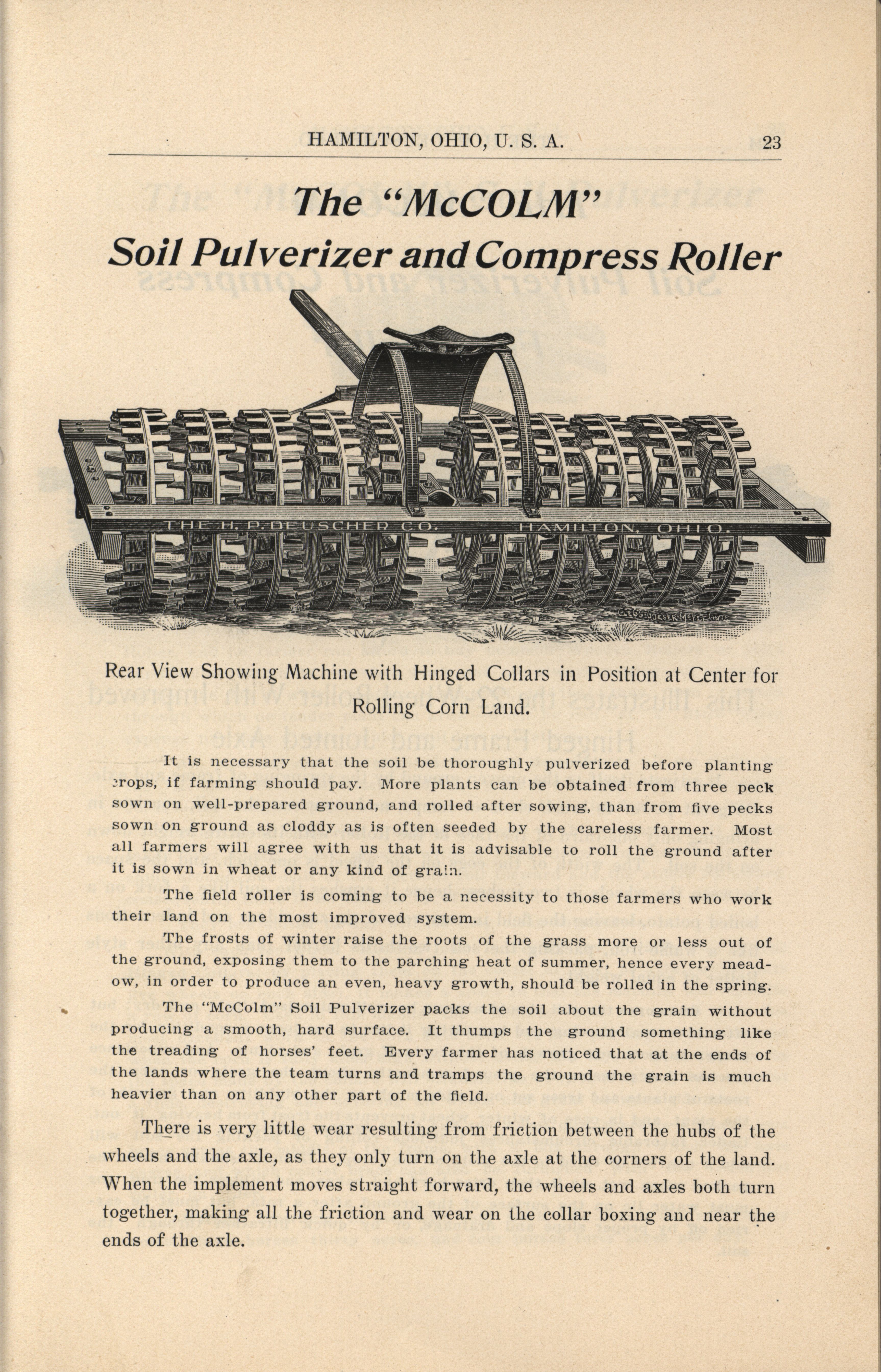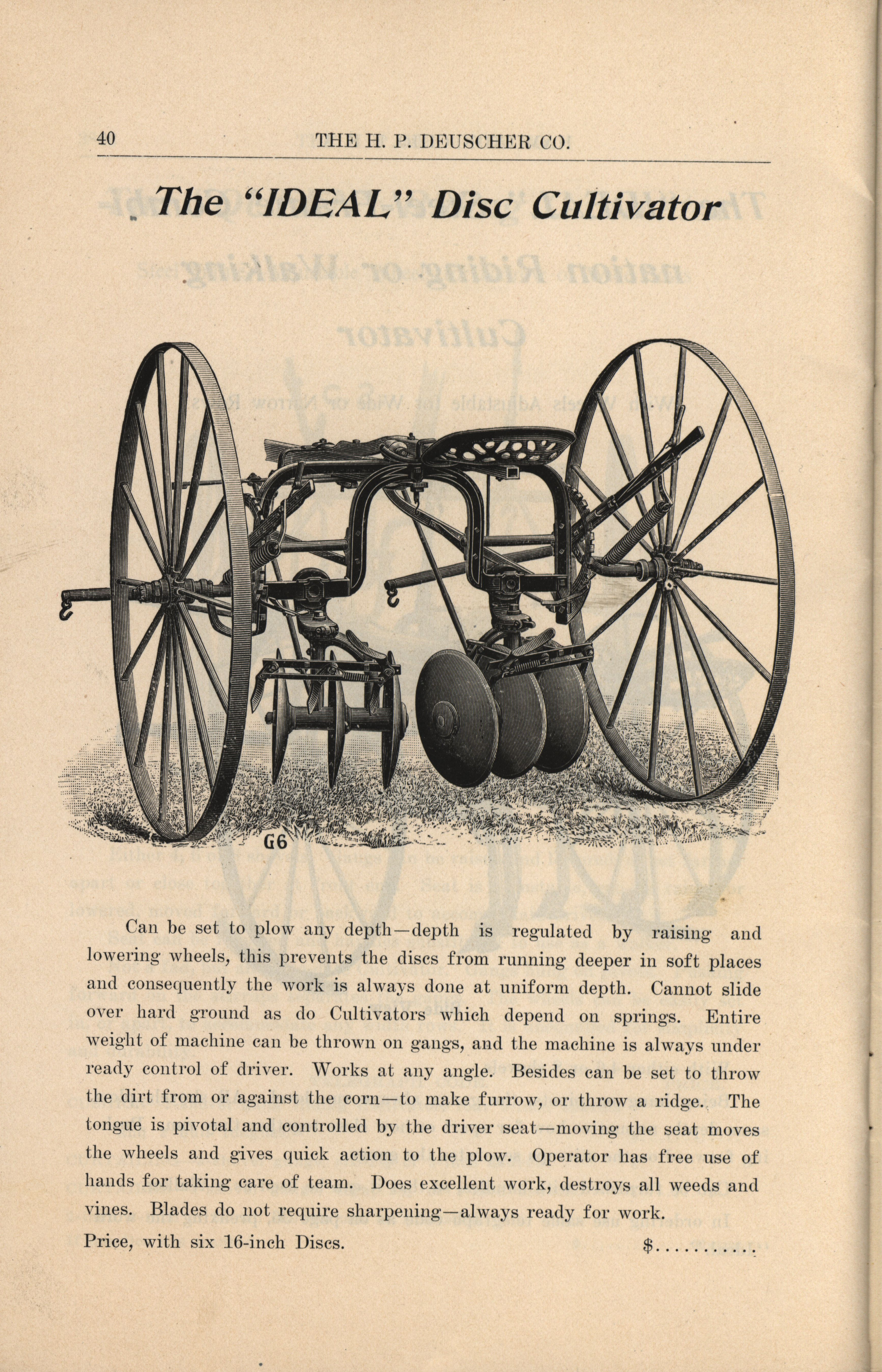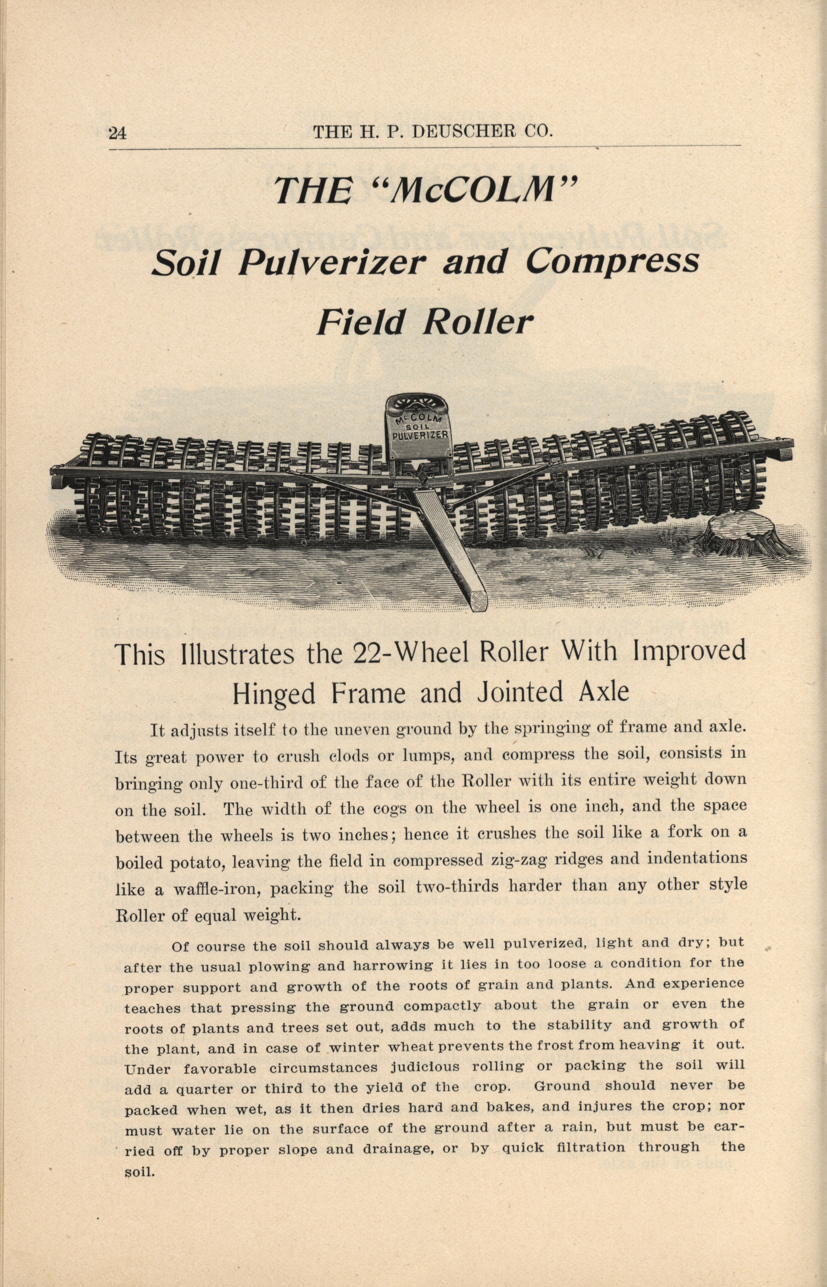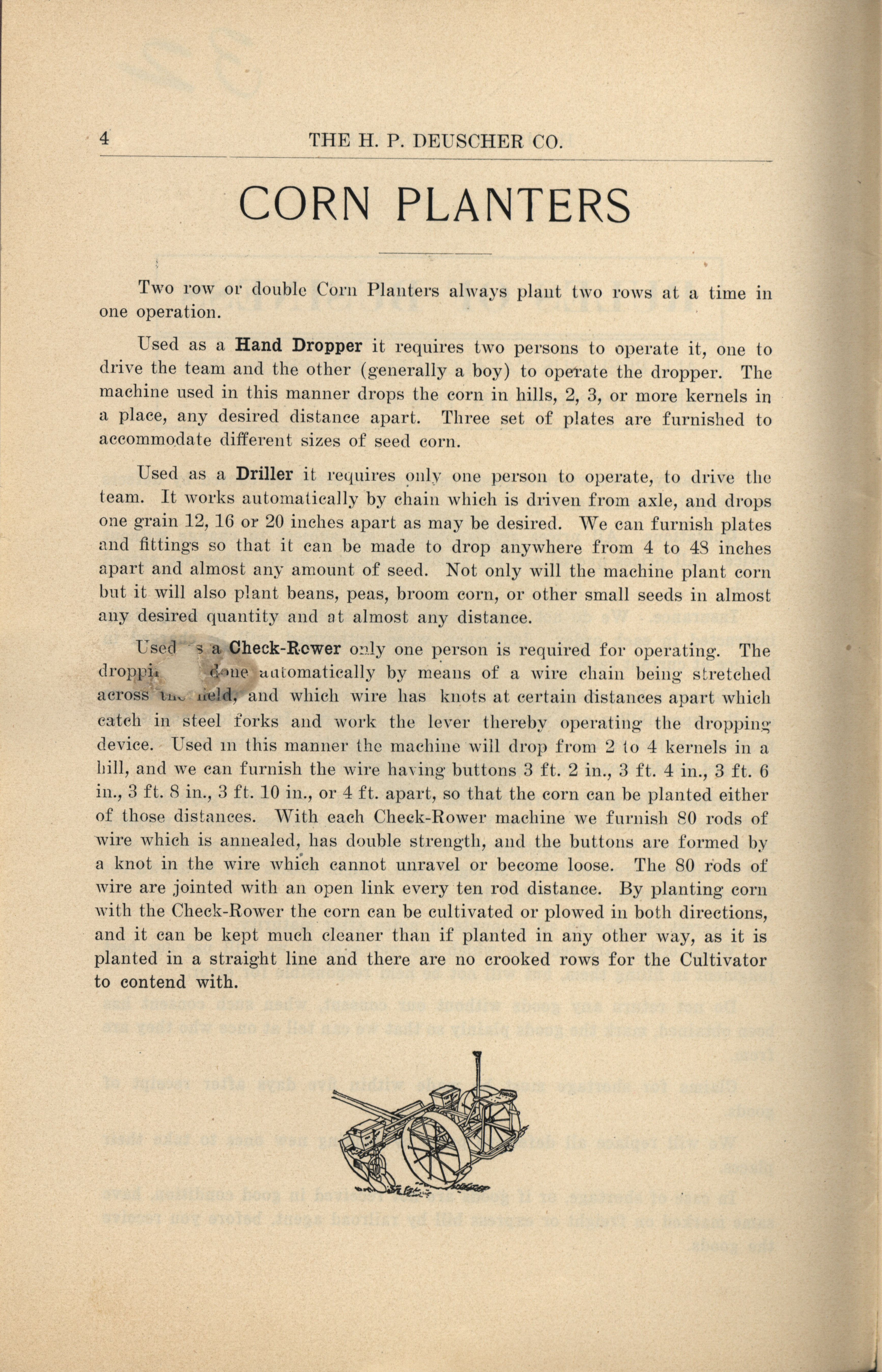 - Illustrated catalog describing the agricultural implements offered by H. P. Deuscher Company.