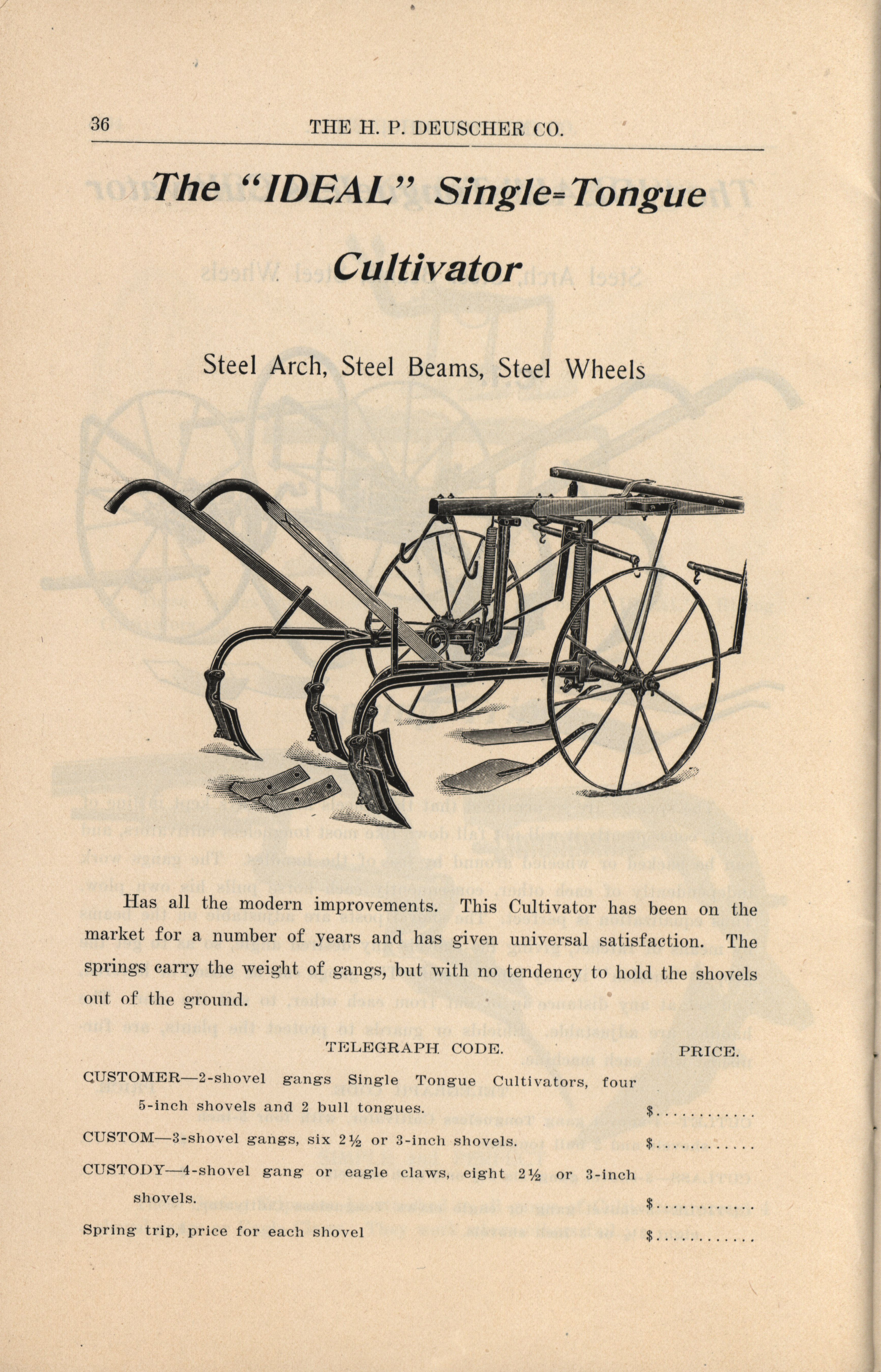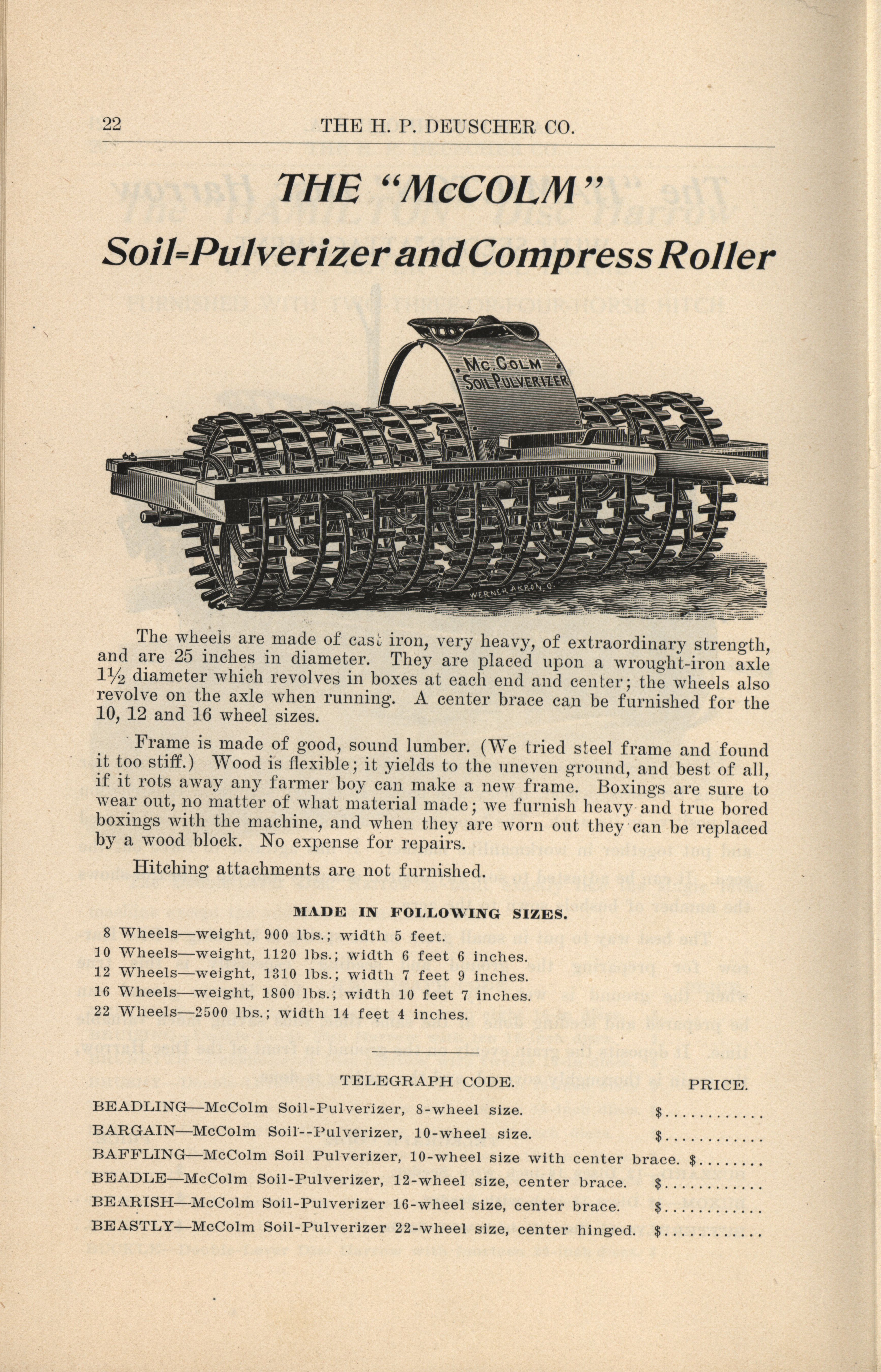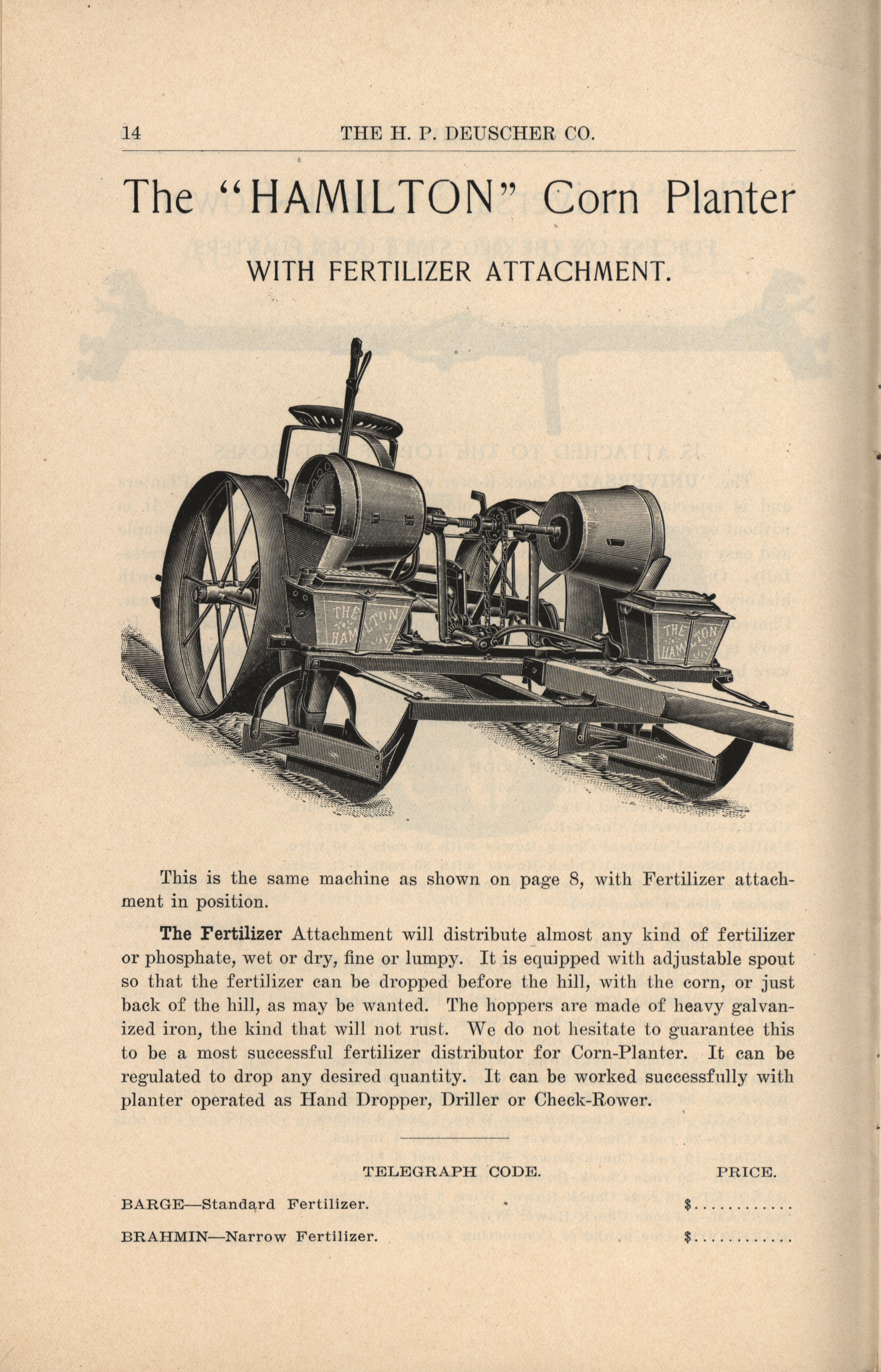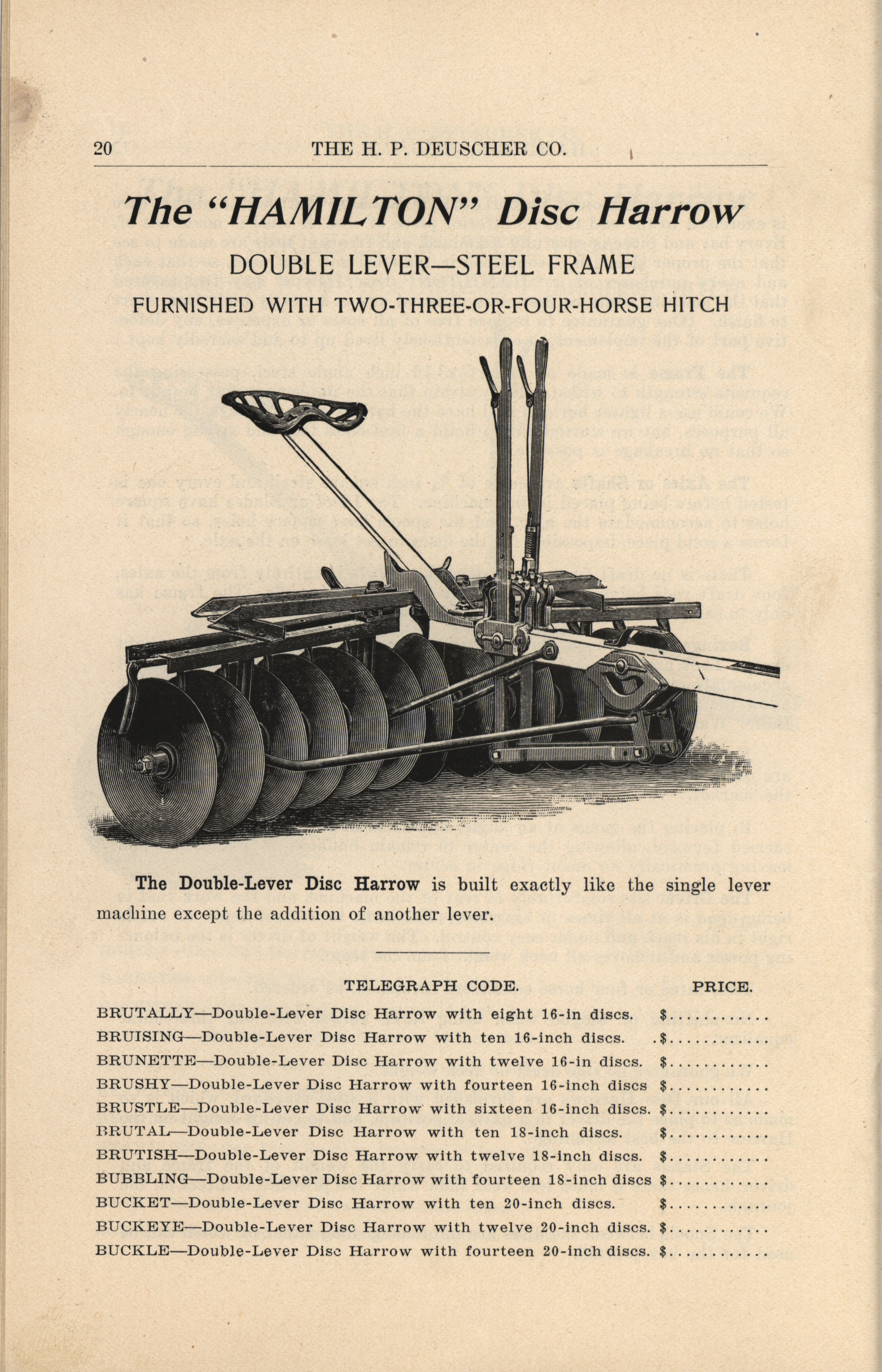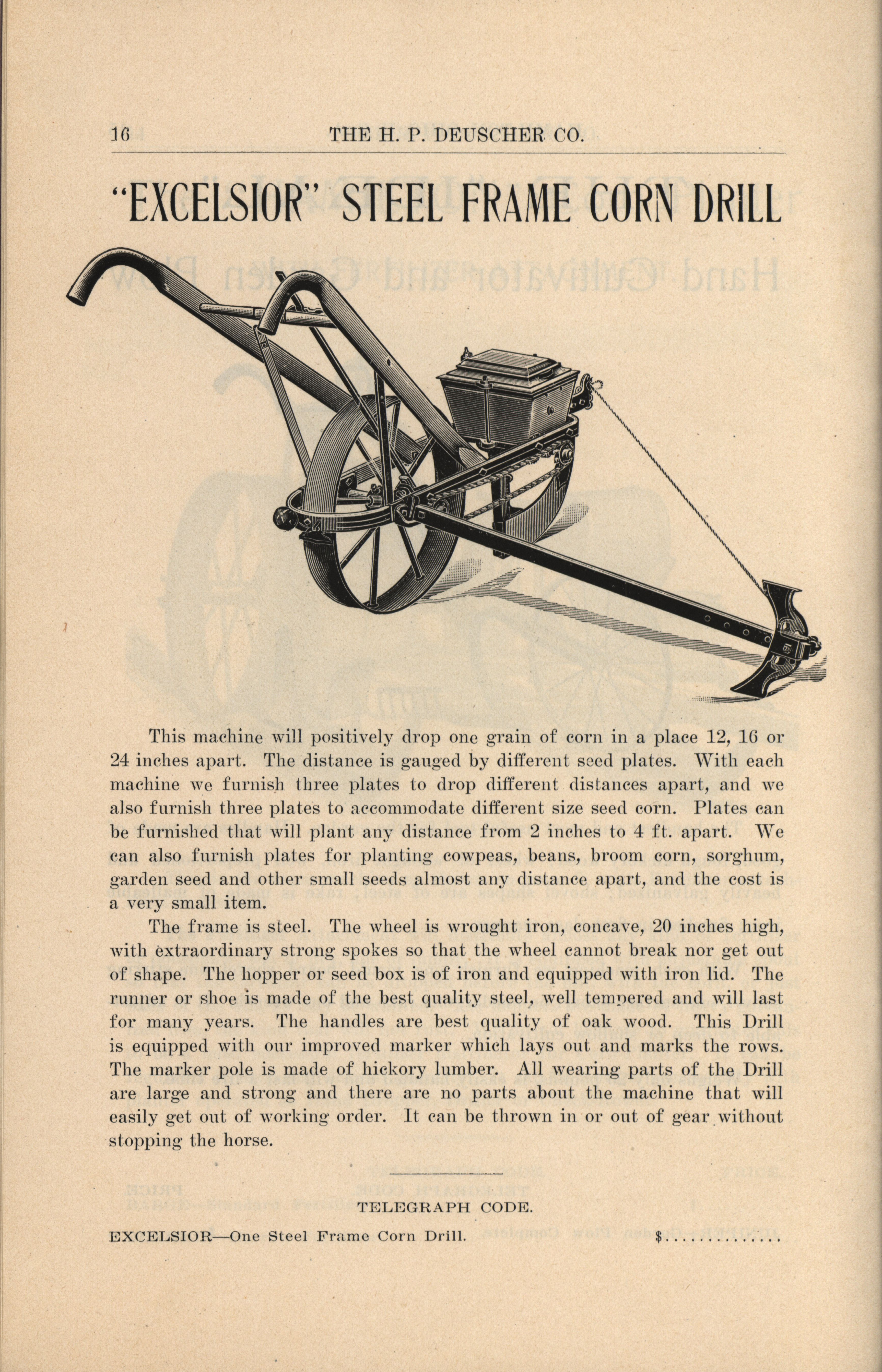 H. P. Deuscher Company agricultural implements catalog Item Info