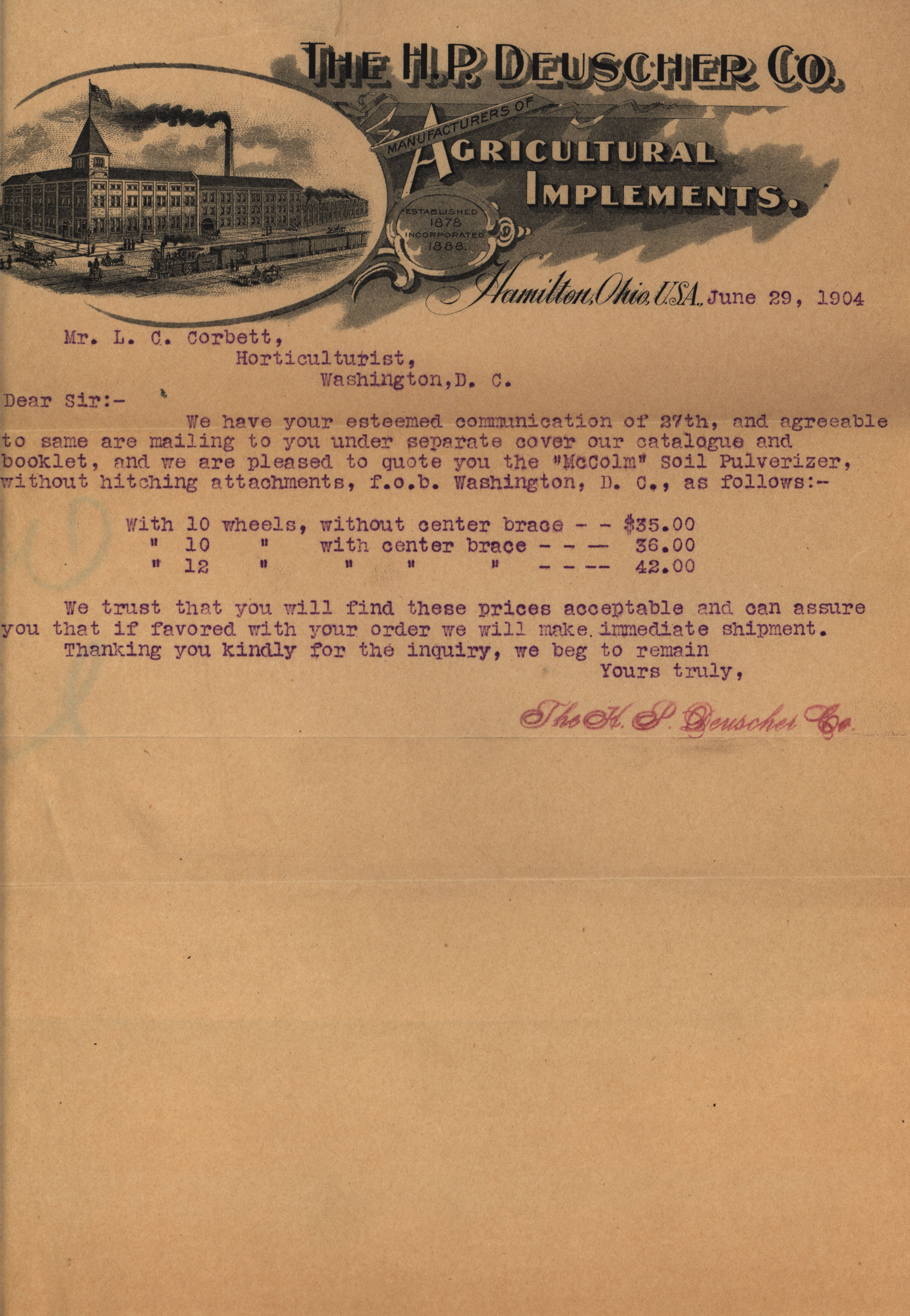 - "H. P. Deuscher Company agricultural implements catalog", Agricultural Machinery Literature Collection, Iowa State University Library Digital Collections