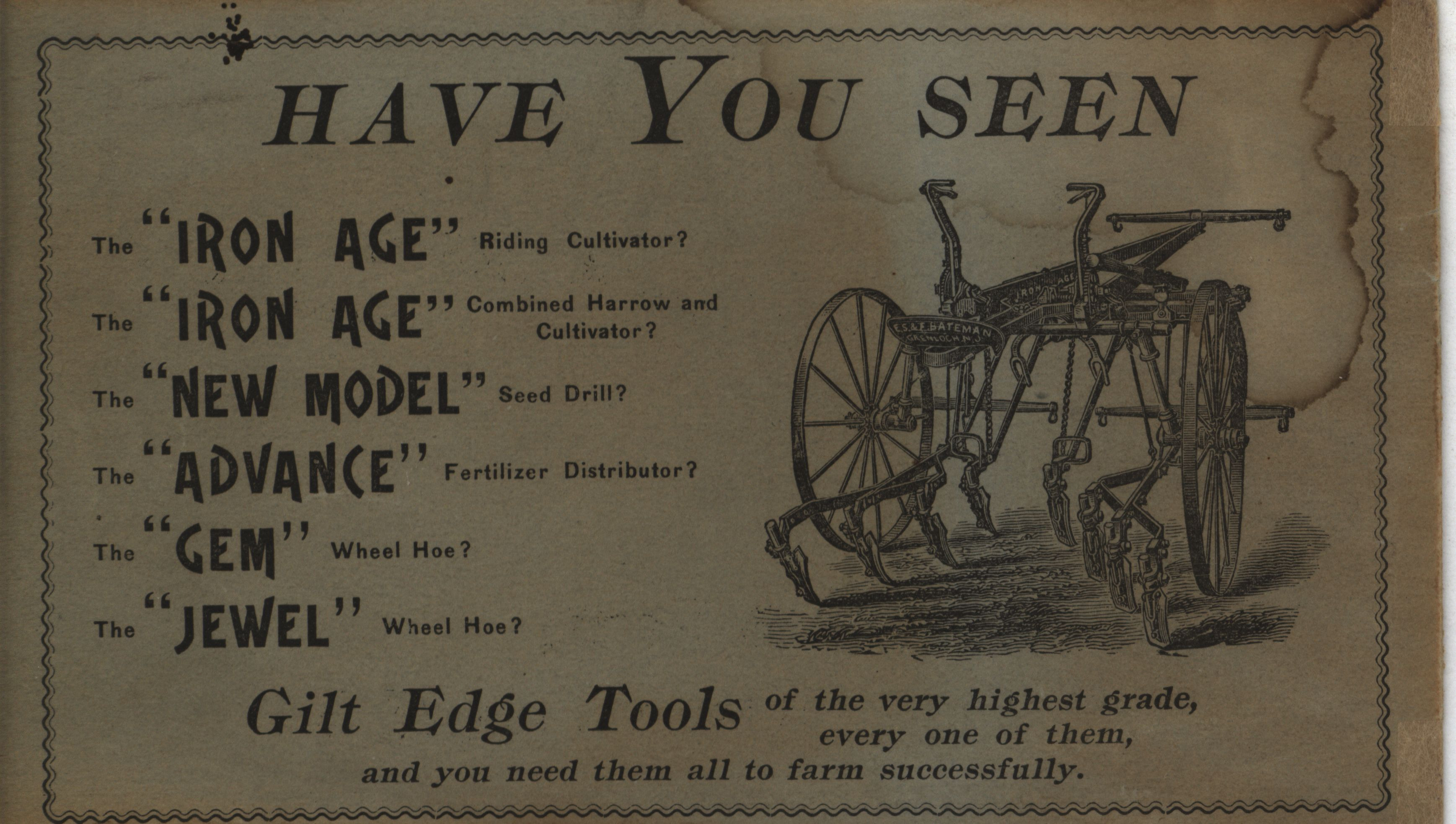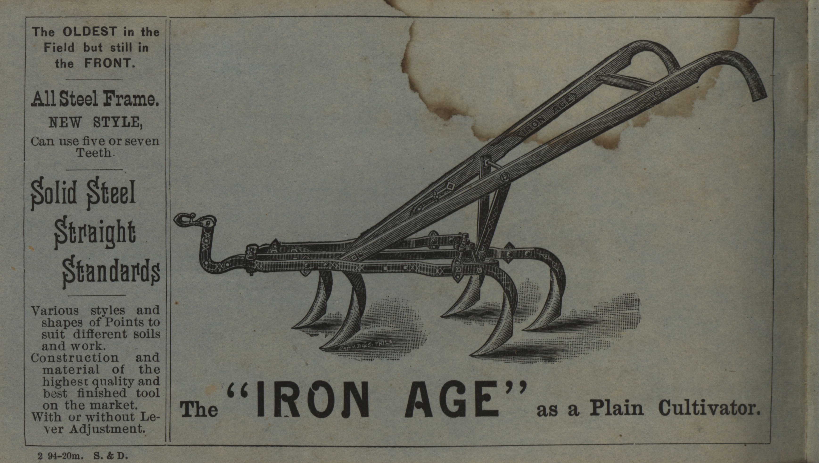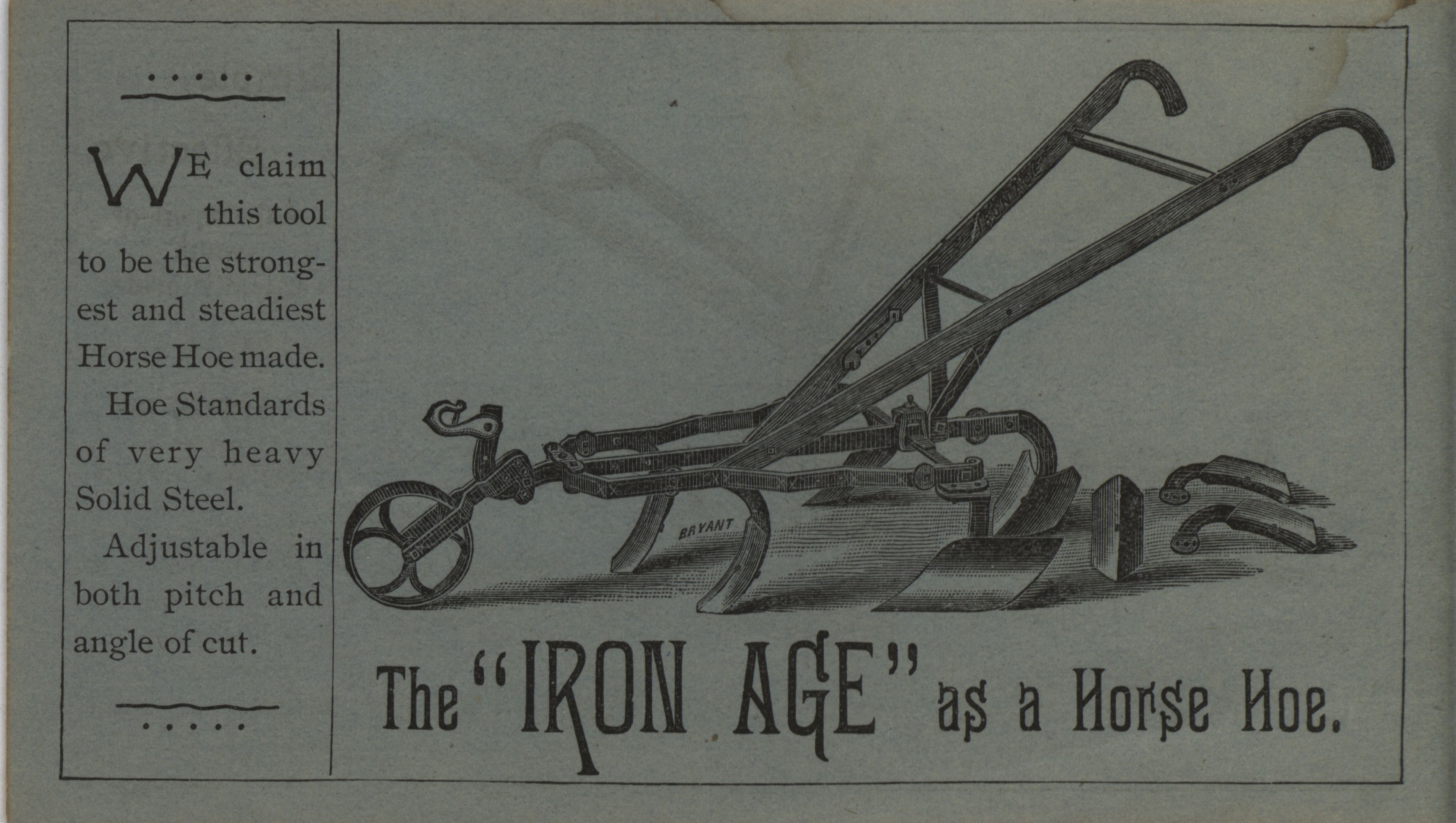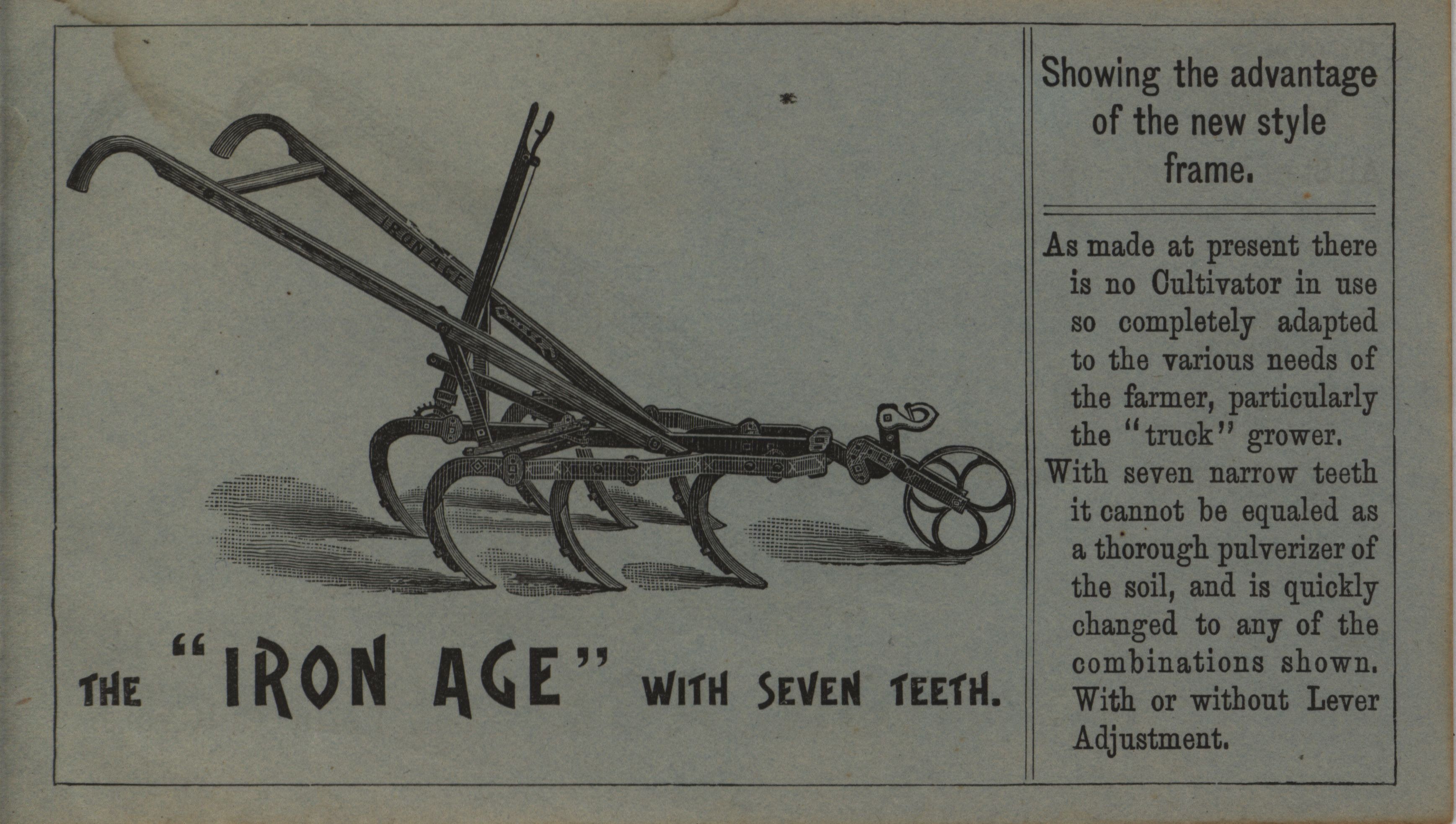 - Illustrated catalog describing the Iron Age Cultivator and Combinations product line offered by the W. Eddy and Sons.