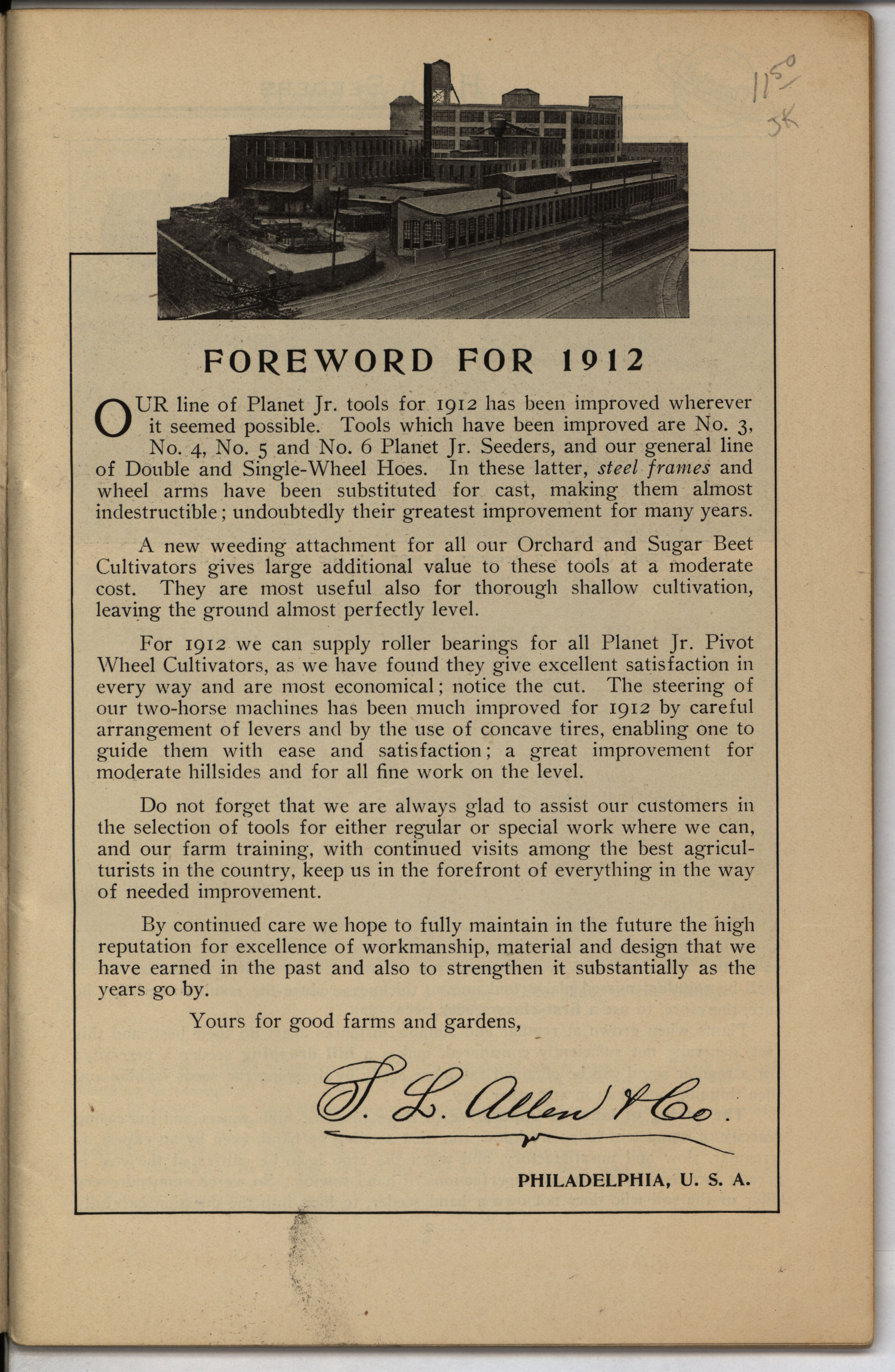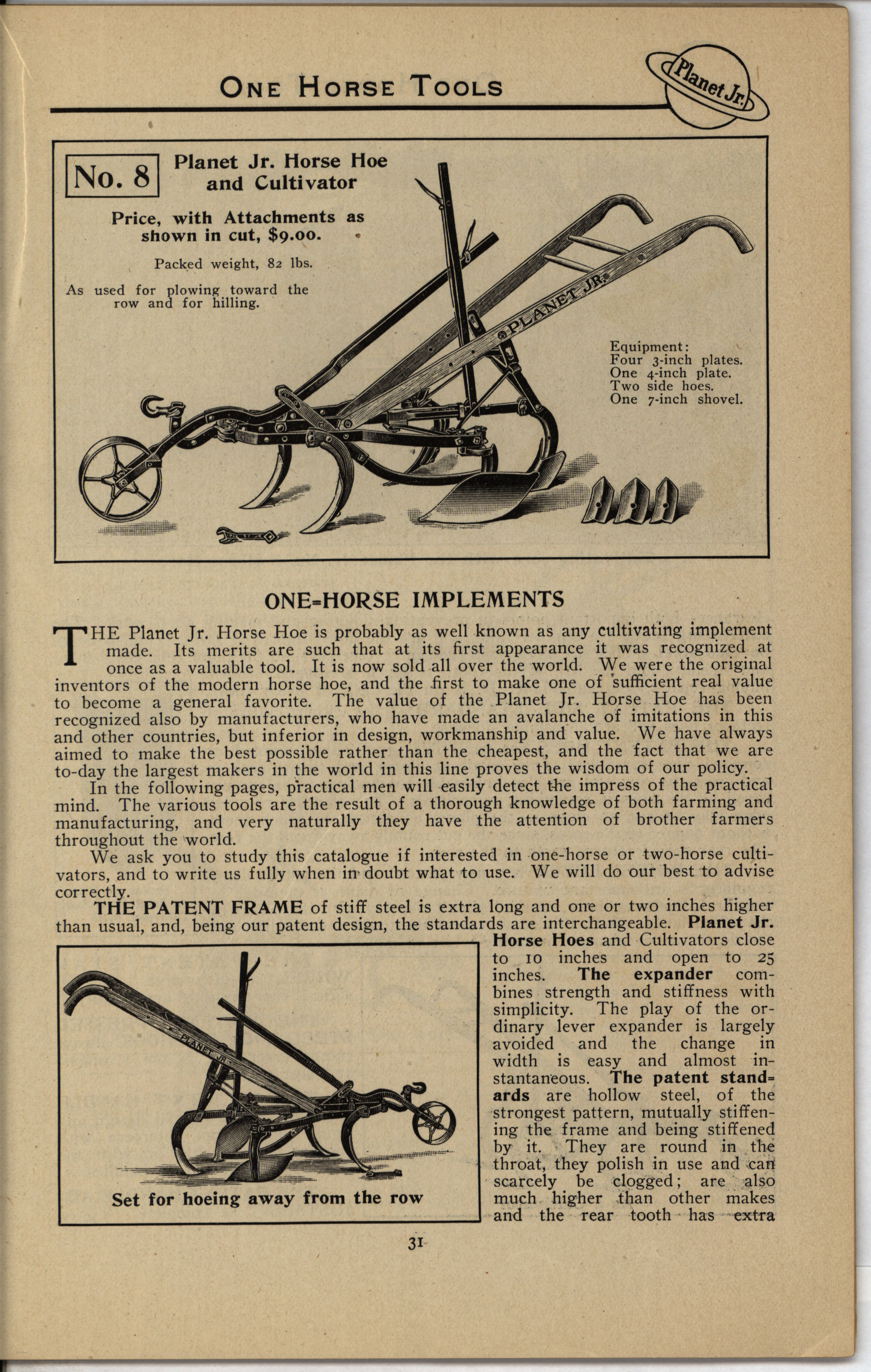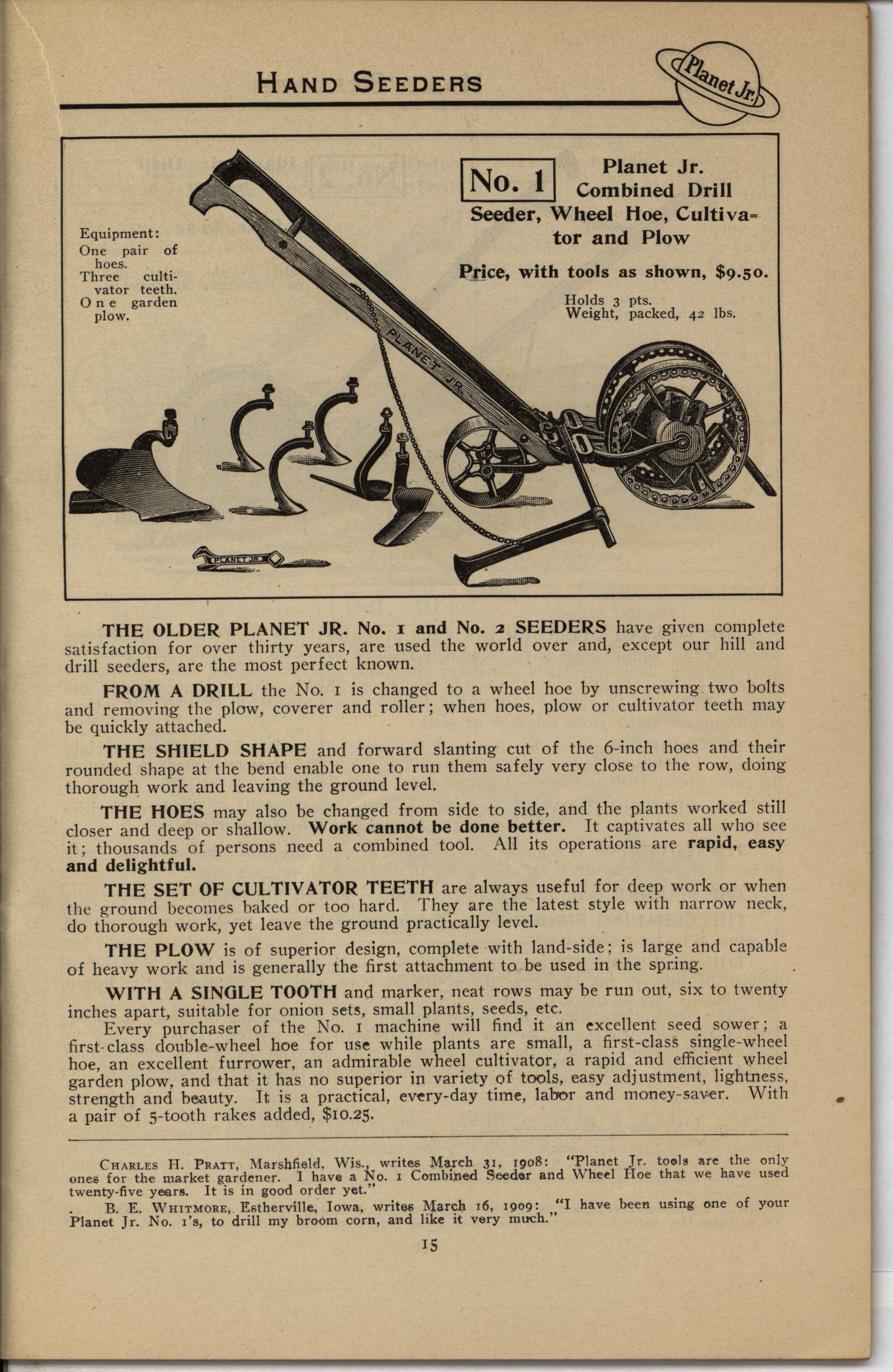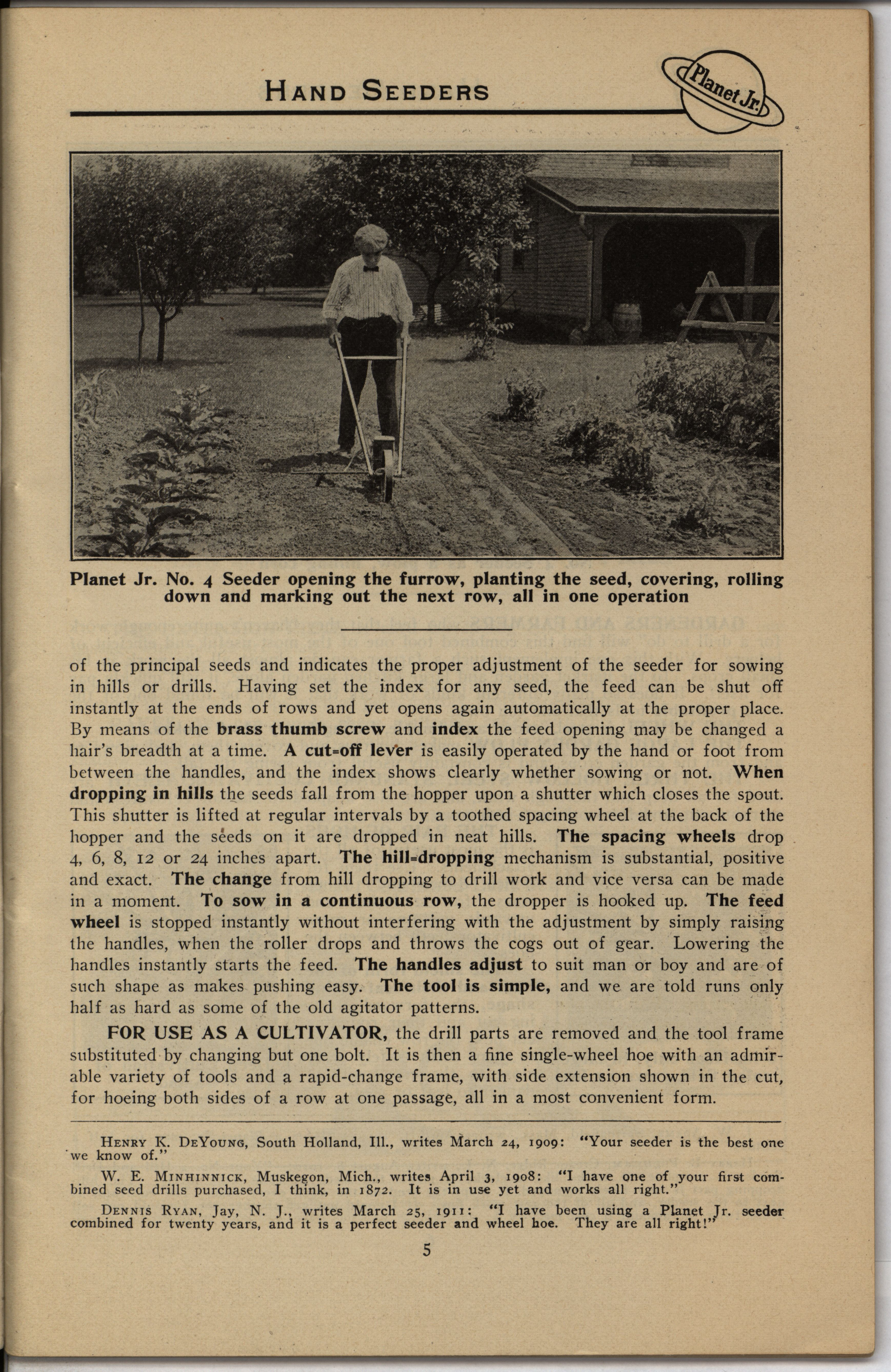 - "Planet Jr. Farm and Garden Implements, S.L. Allen & Co. Philadelphia, U.S.A.", Agricultural Machinery Literature Collection, Iowa State University Library Digital Collections