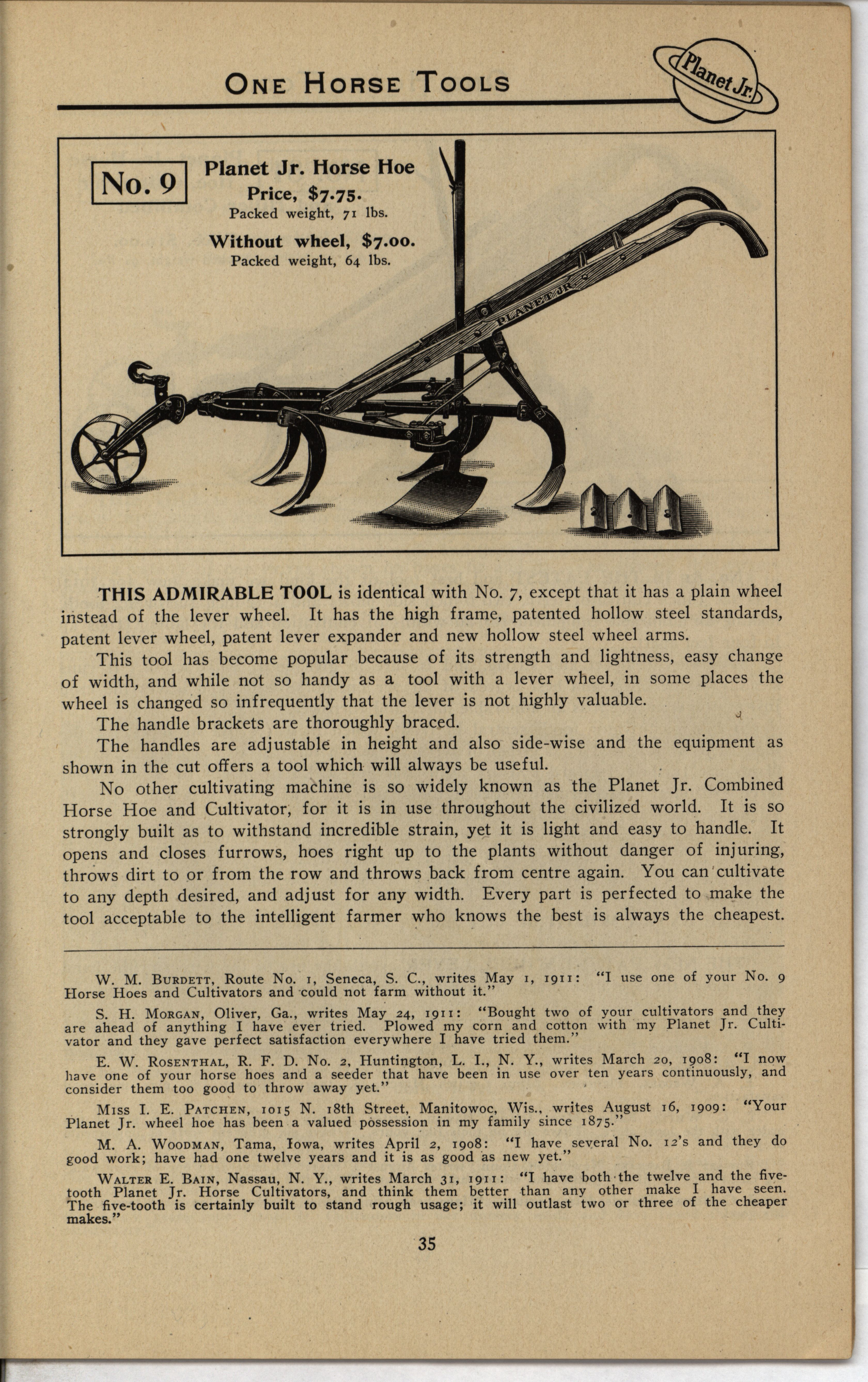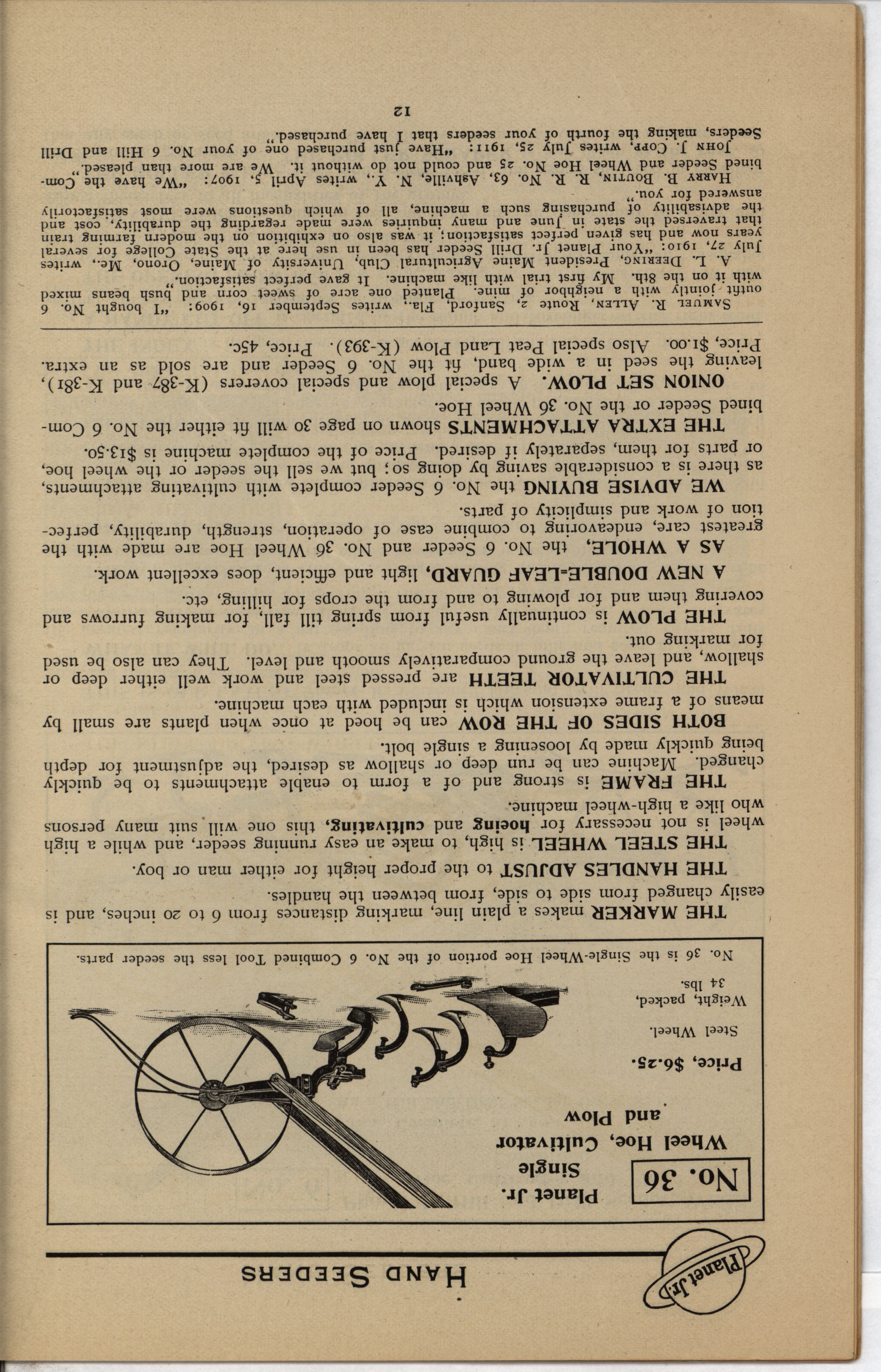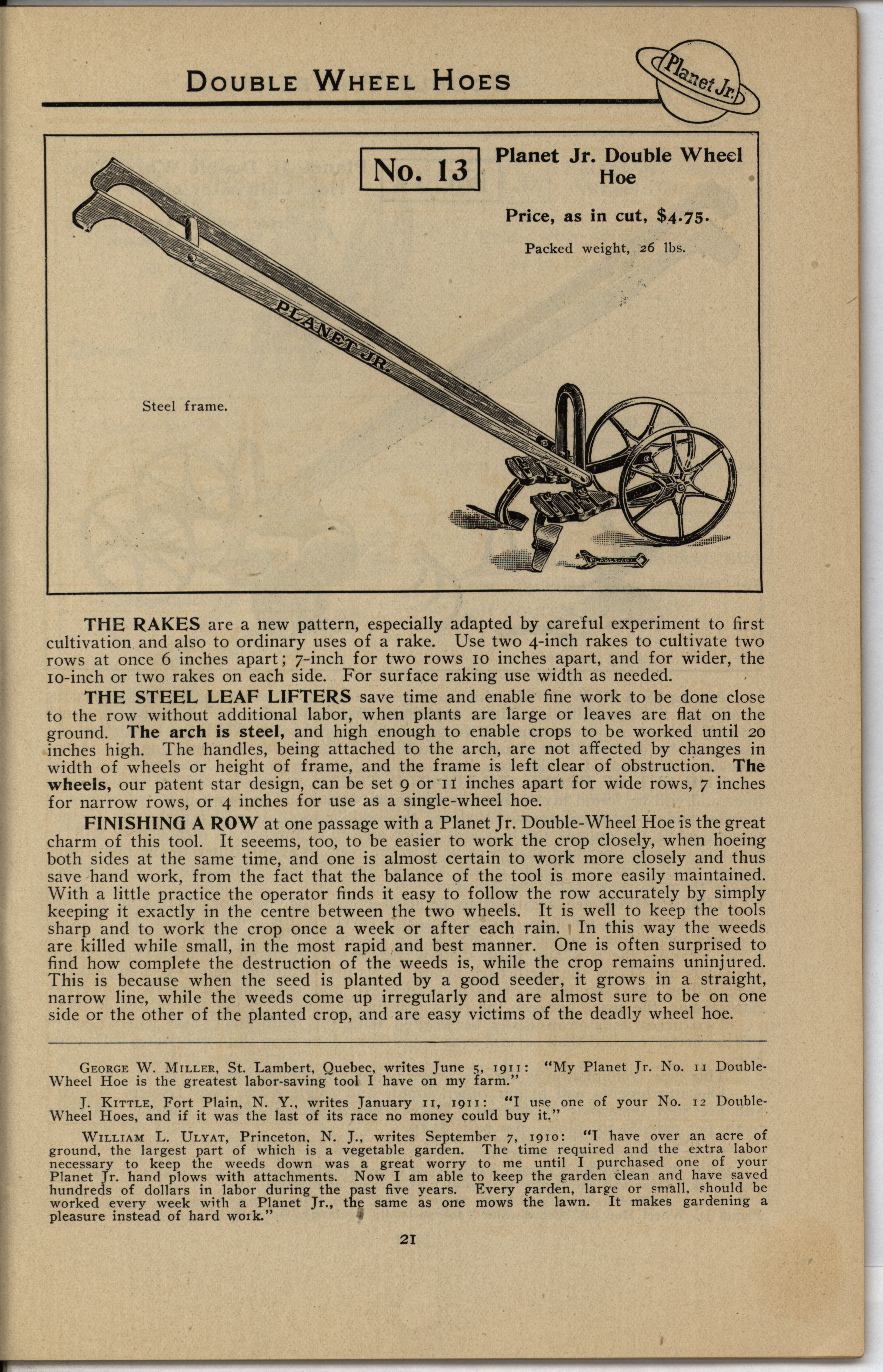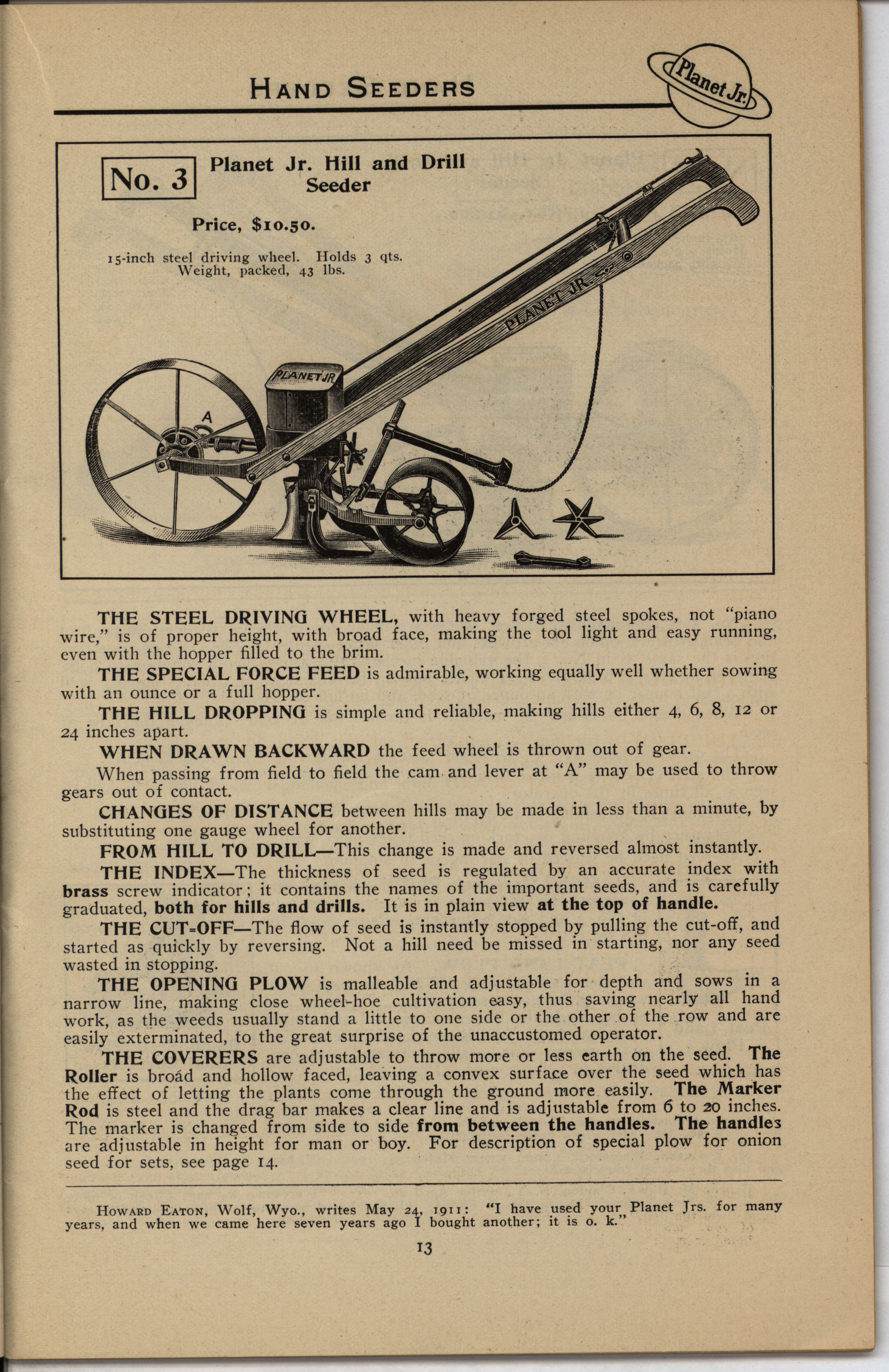 - "Planet Jr. Farm and Garden Implements, S.L. Allen & Co. Philadelphia, U.S.A.", Agricultural Machinery Literature Collection, Iowa State University Library Digital Collections