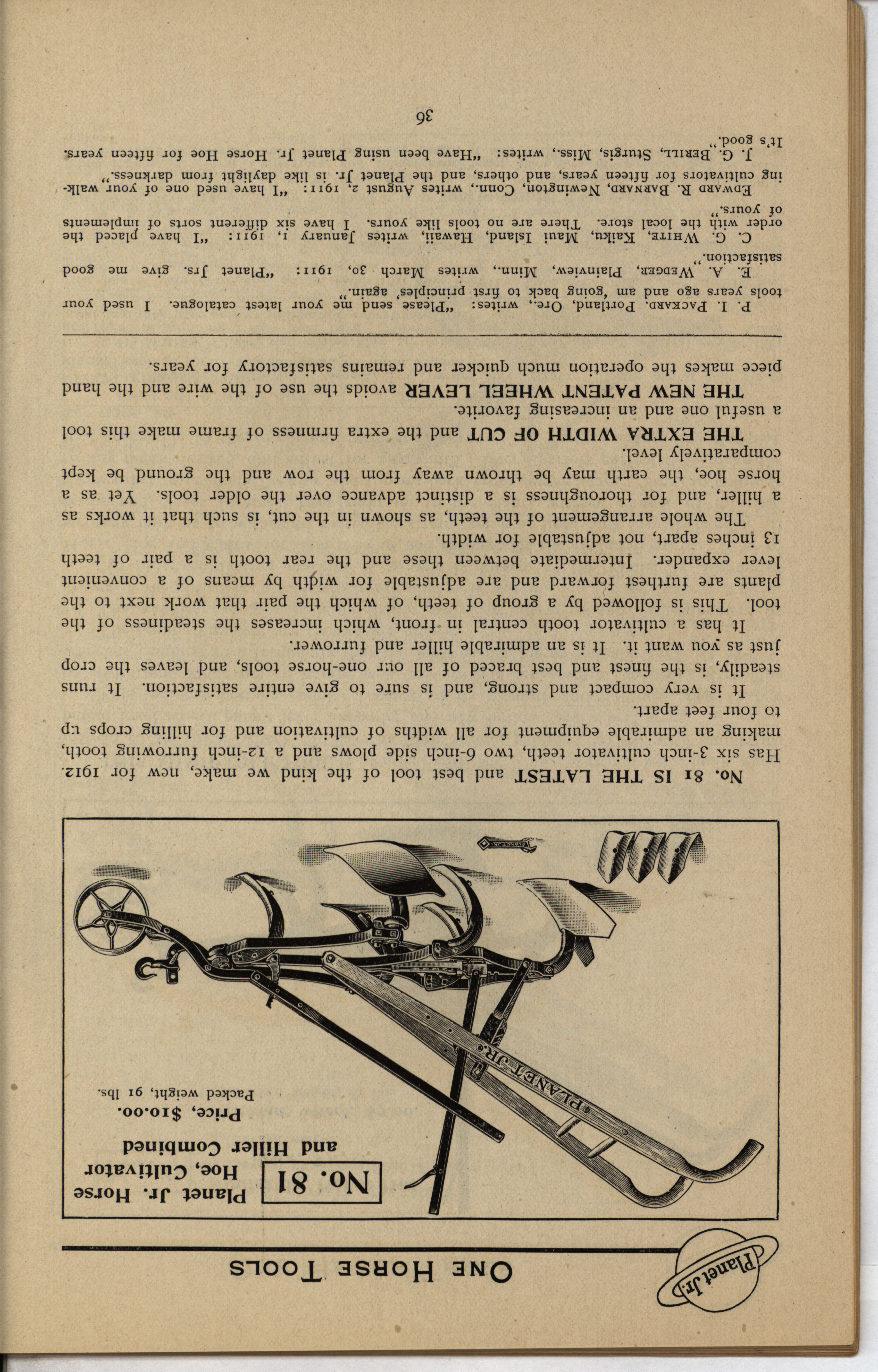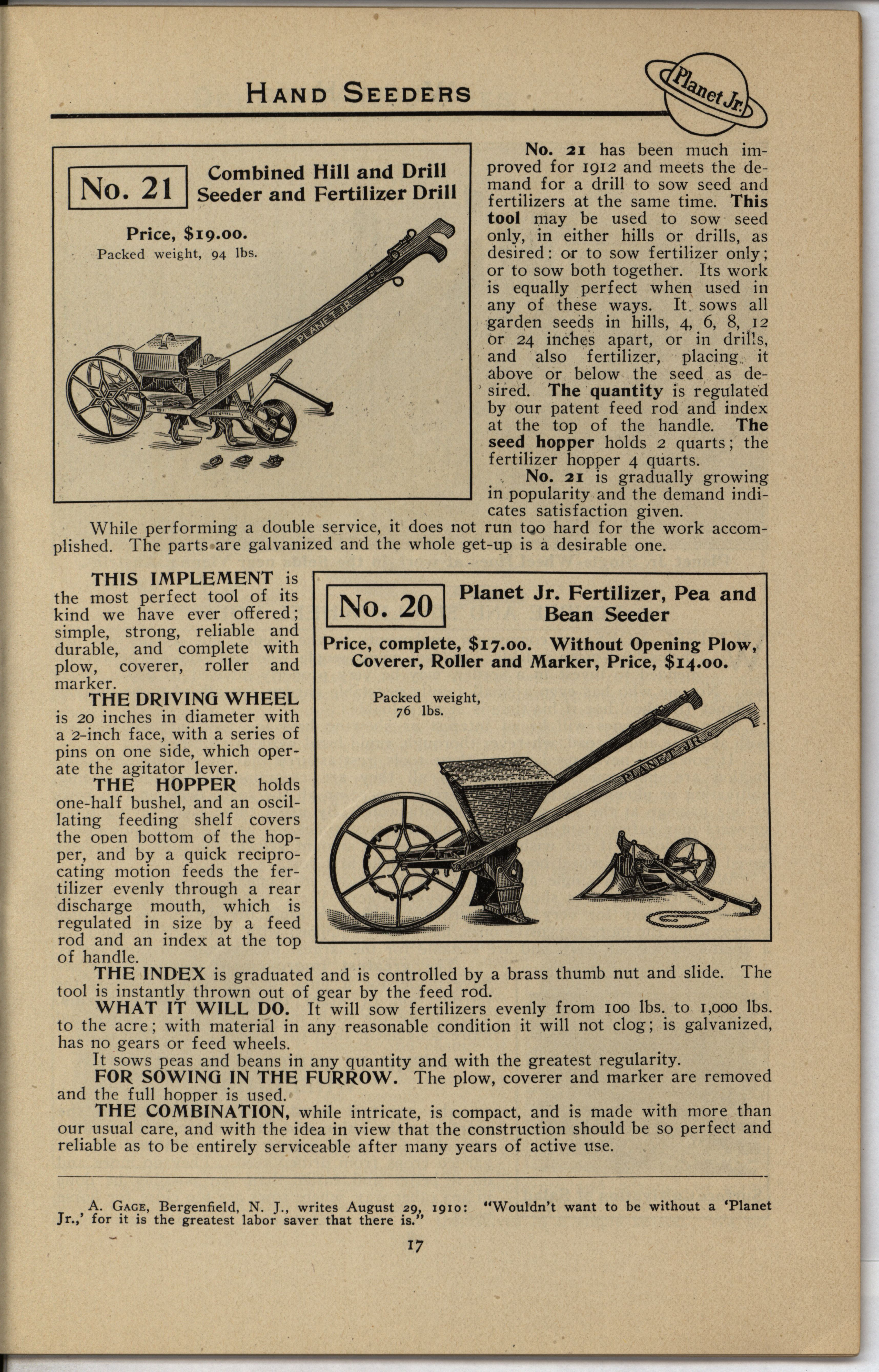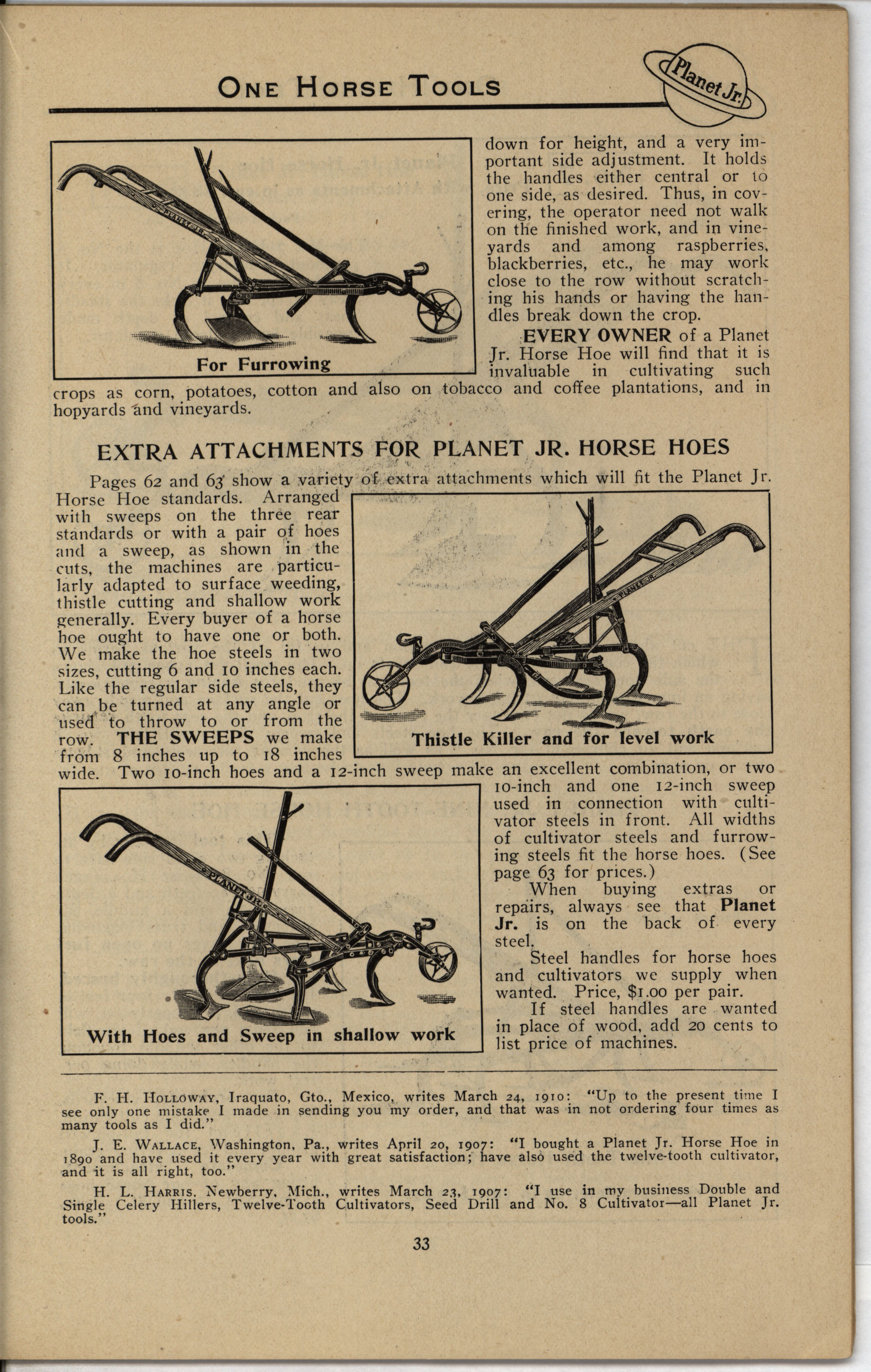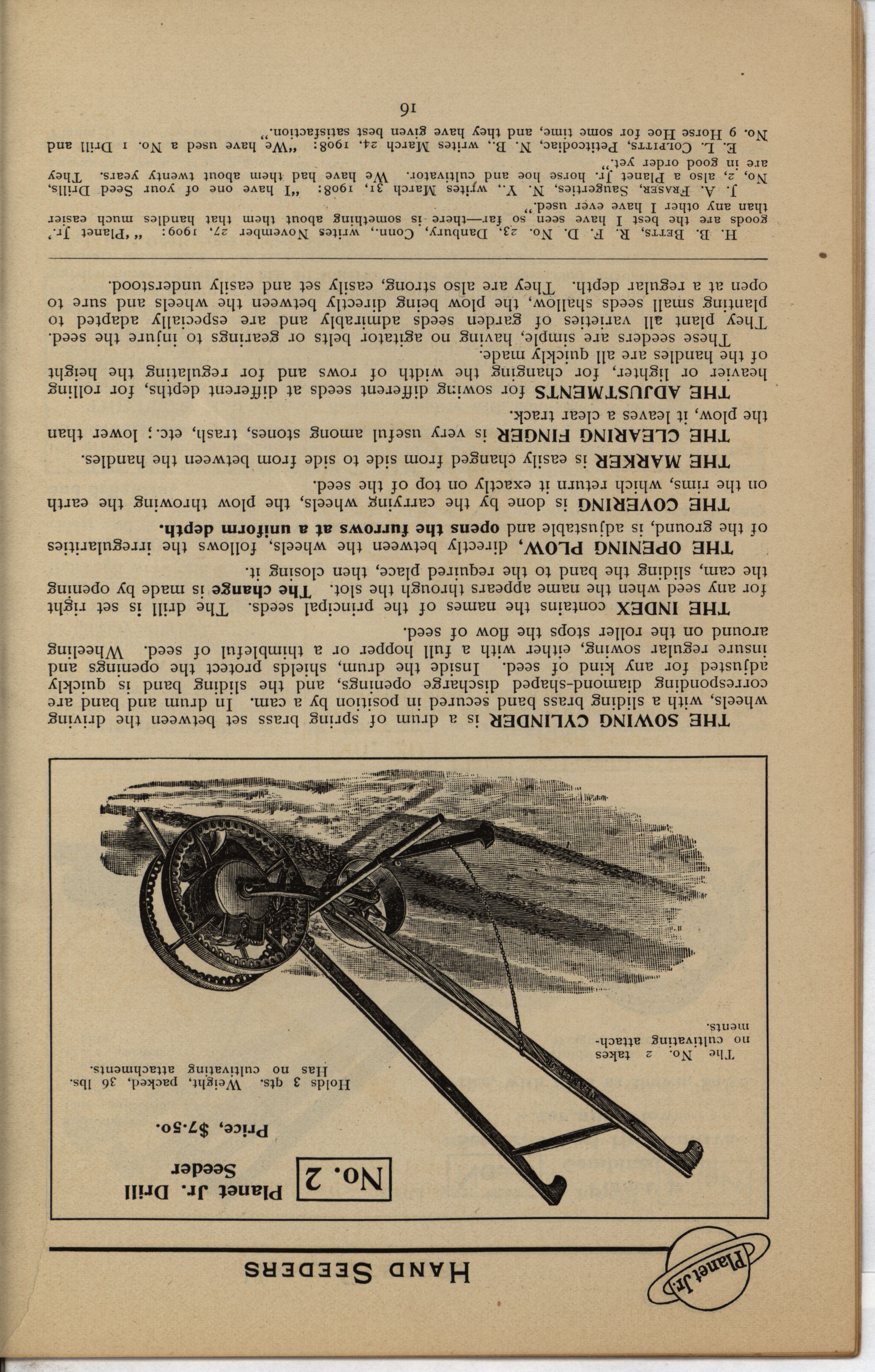 - "Planet Jr. Farm and Garden Implements, S.L. Allen & Co. Philadelphia, U.S.A.", Agricultural Machinery Literature Collection, Iowa State University Library Digital Collections