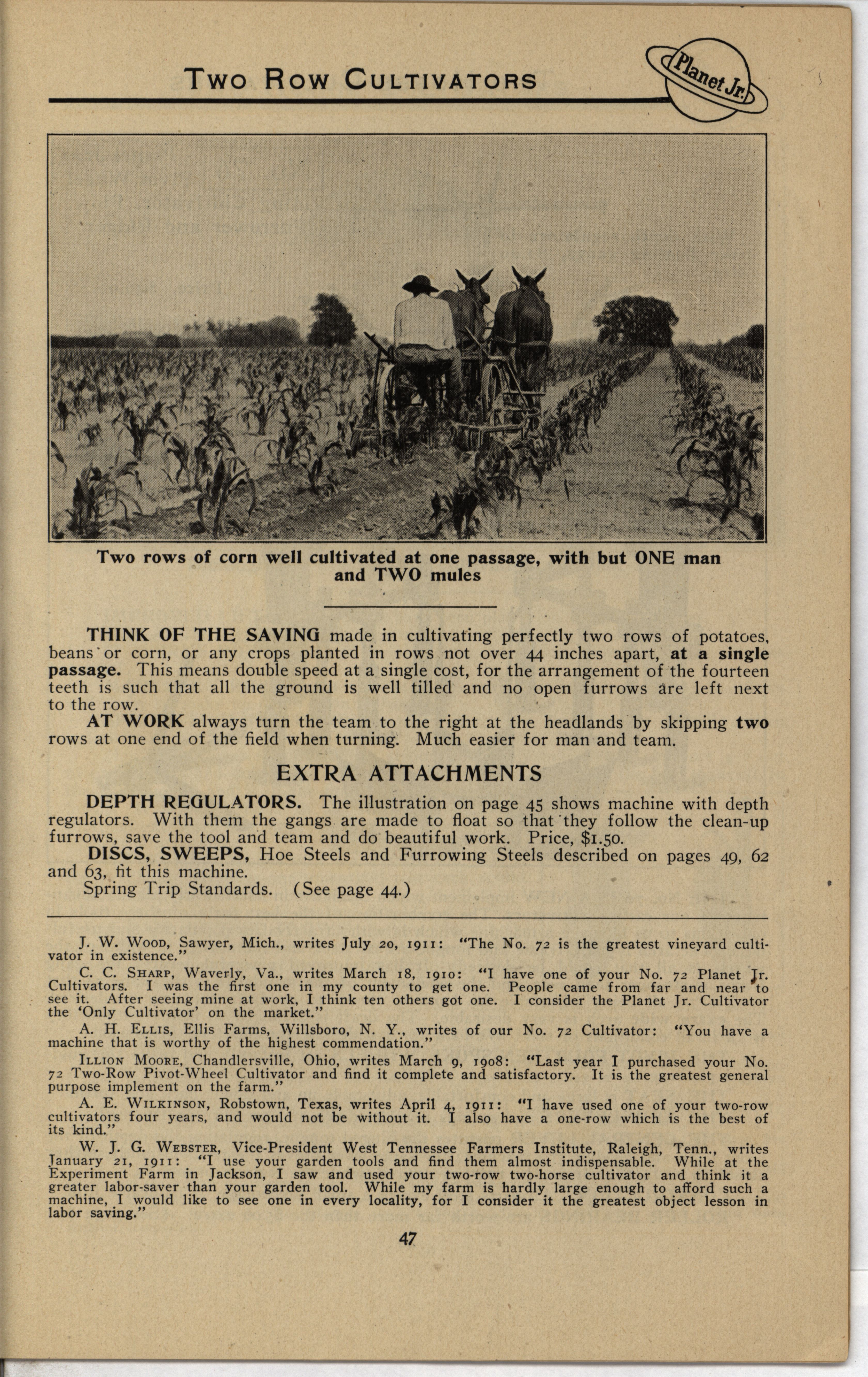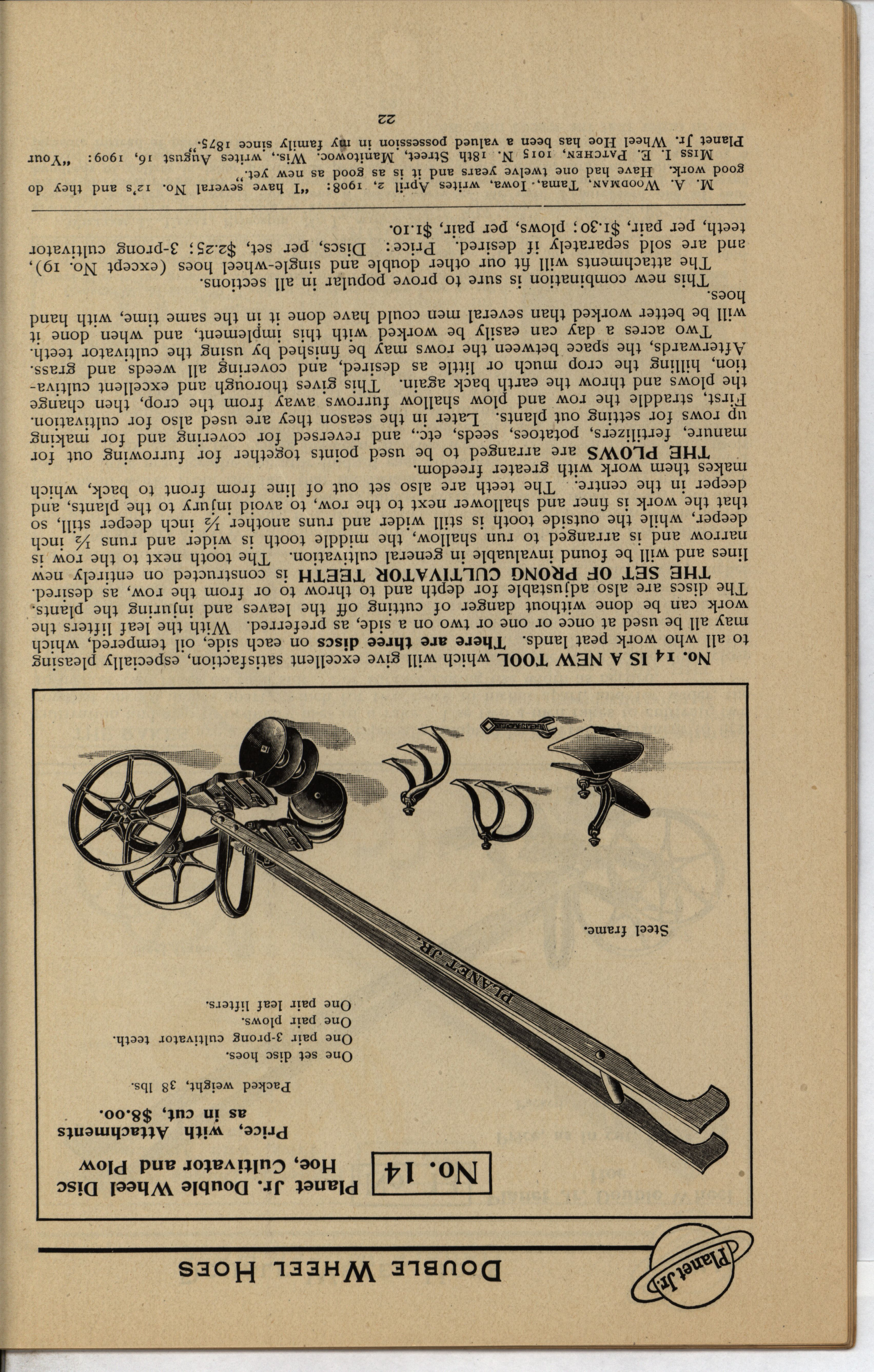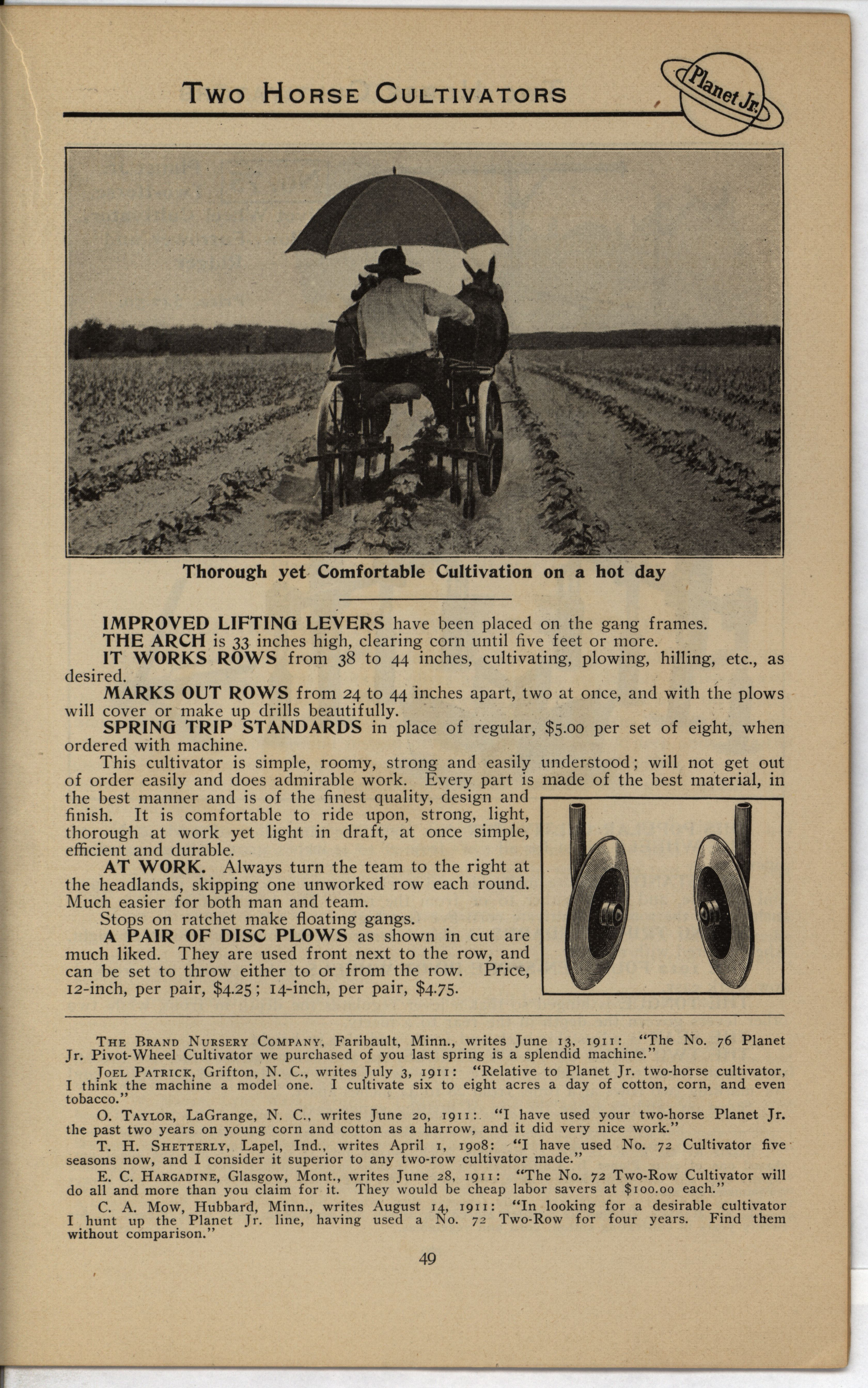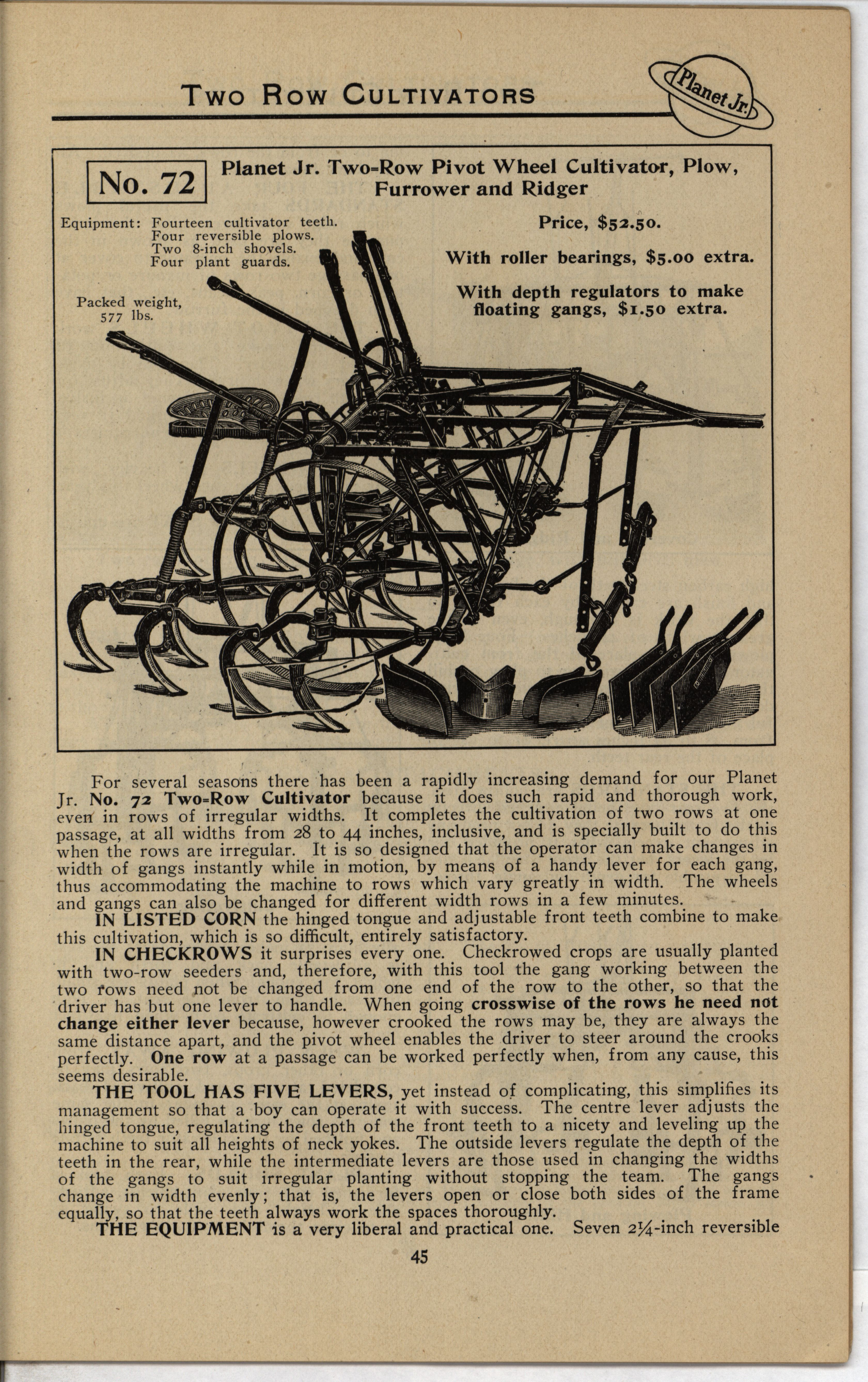 - "Planet Jr. Farm and Garden Implements, S.L. Allen & Co. Philadelphia, U.S.A.", Agricultural Machinery Literature Collection, Iowa State University Library Digital Collections