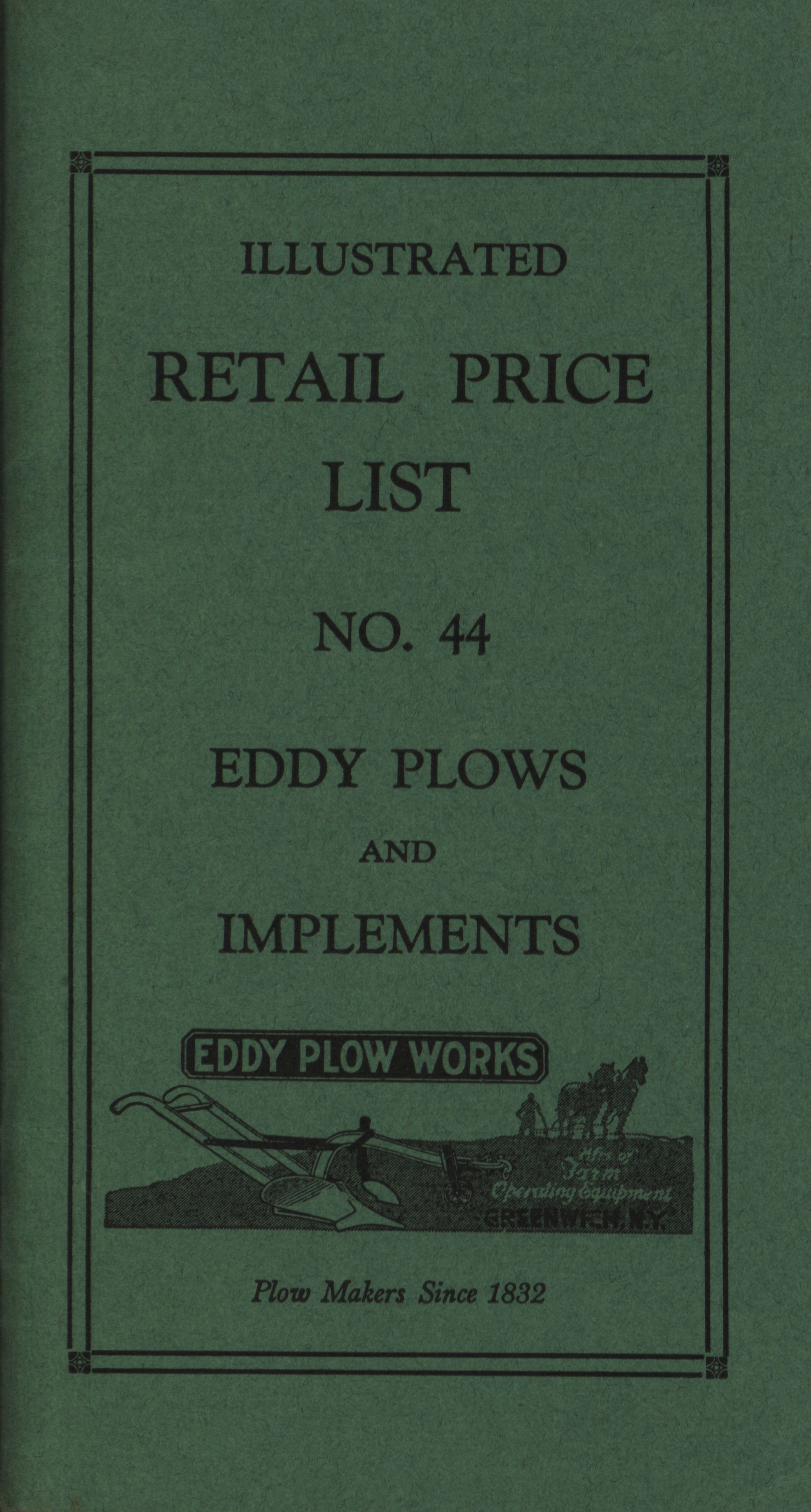 - Illustrated price list for the plows, agricultural implements and related products offered by Eddy Plow Works.