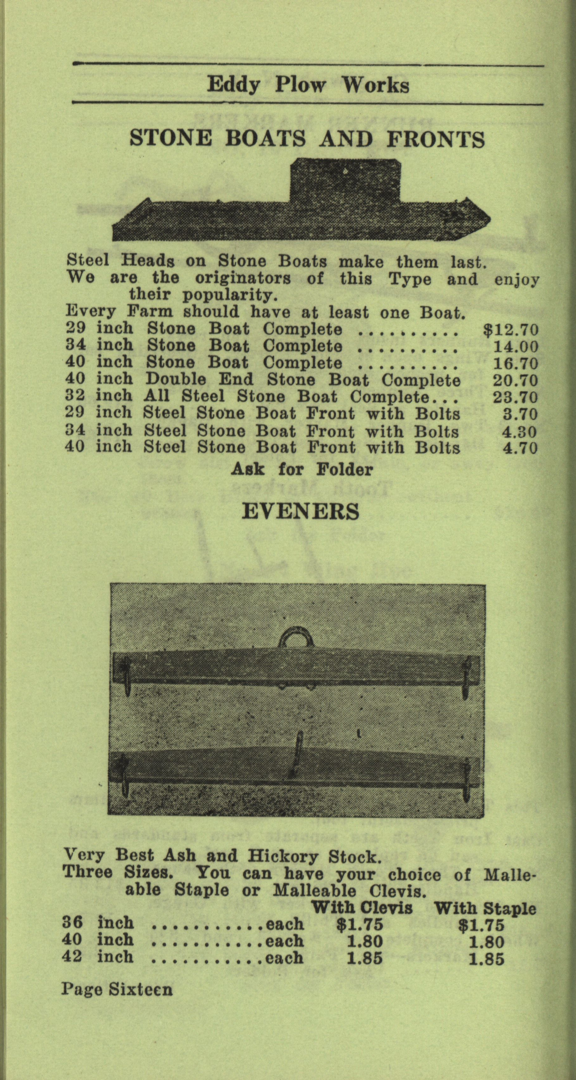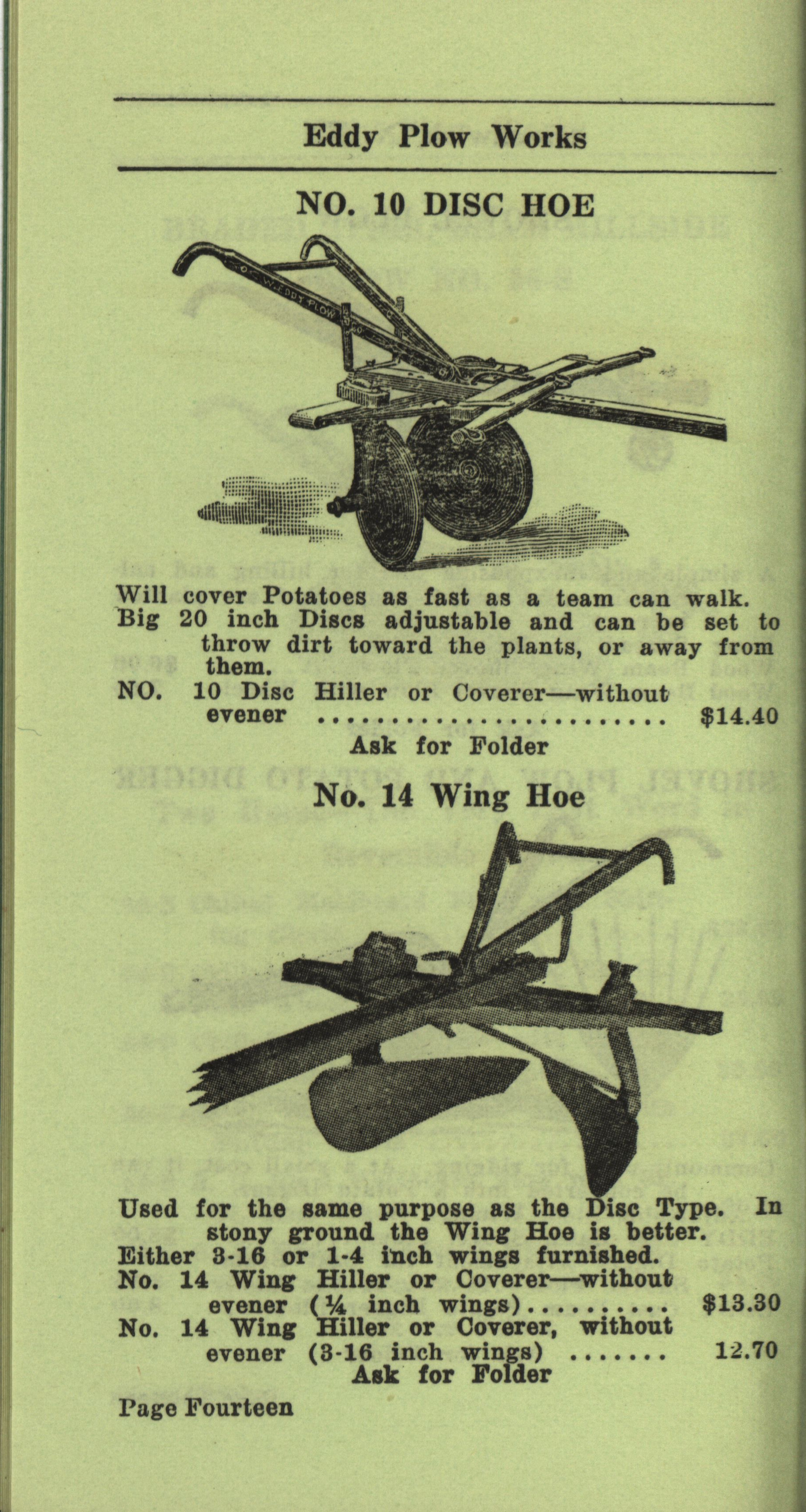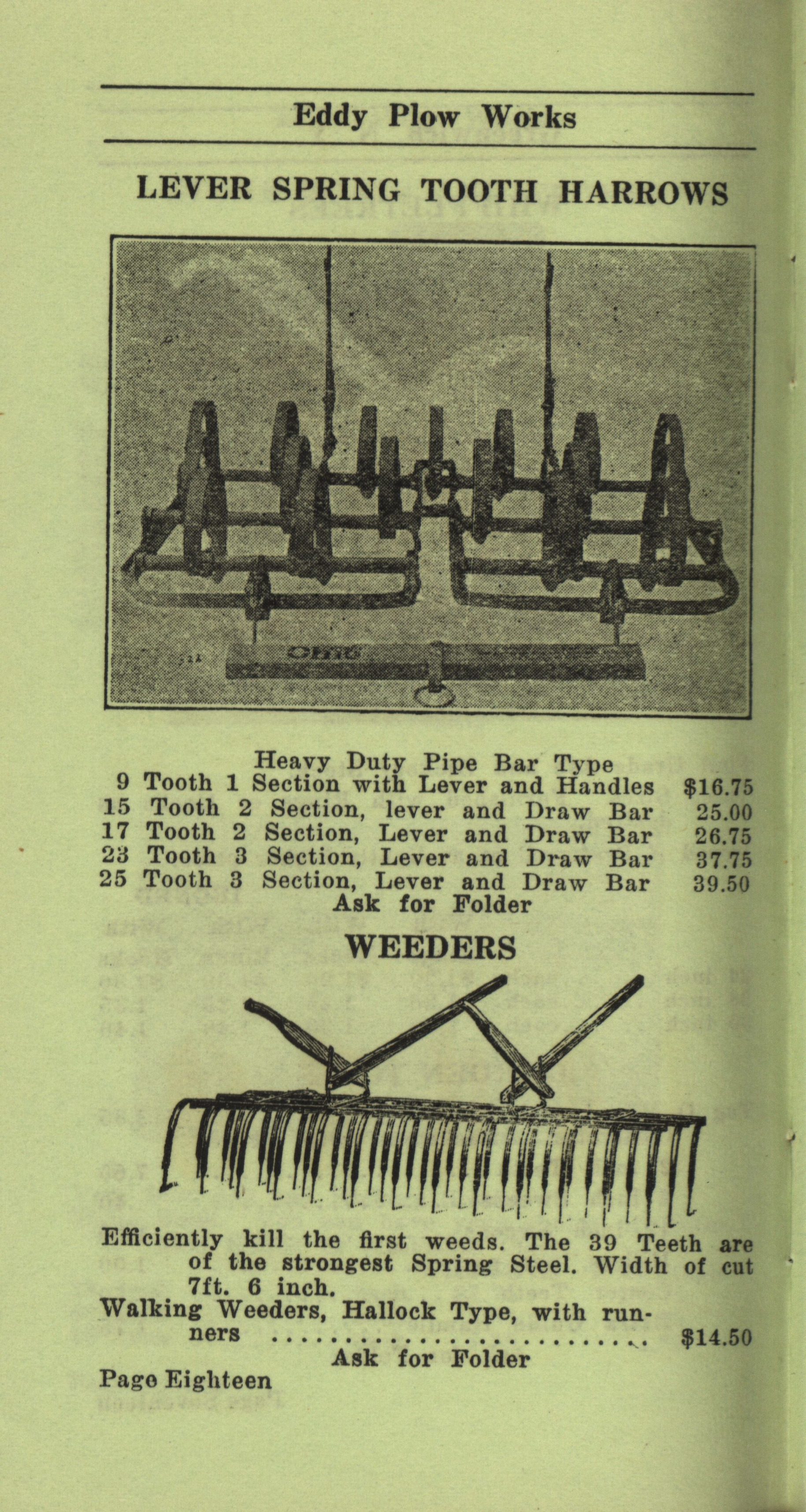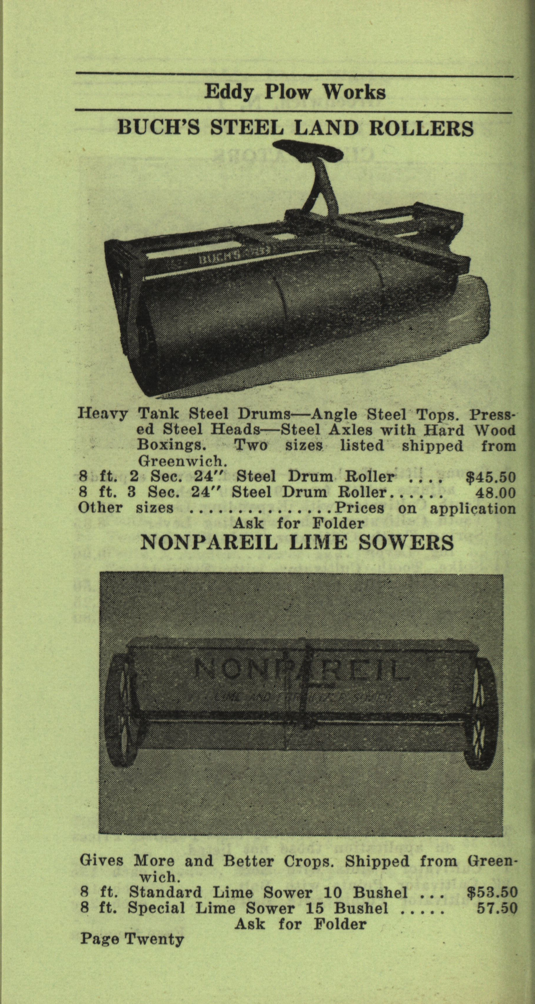 - "Eddy Plow Works Price List No. 44", Agricultural Machinery Literature Collection, Iowa State University Library Digital Collections