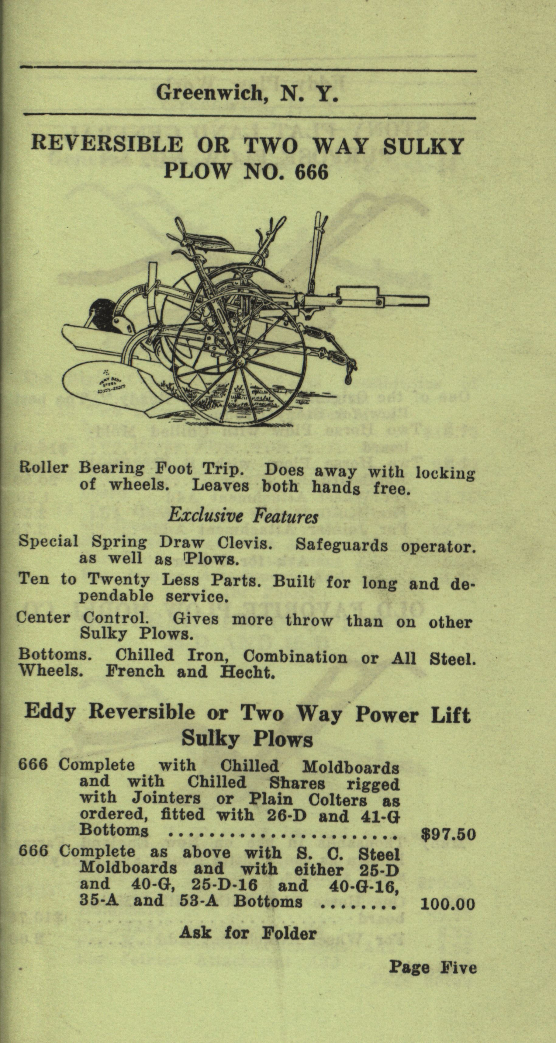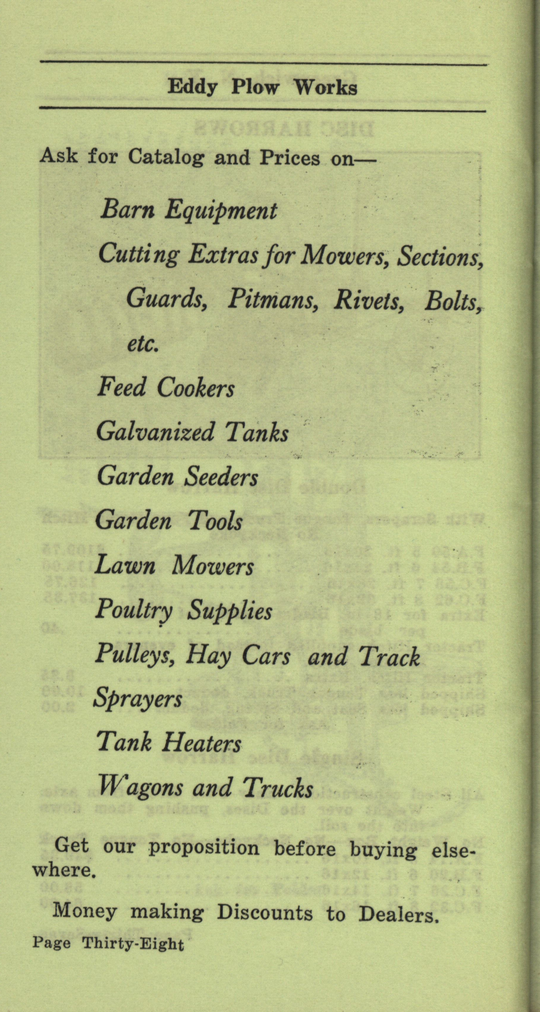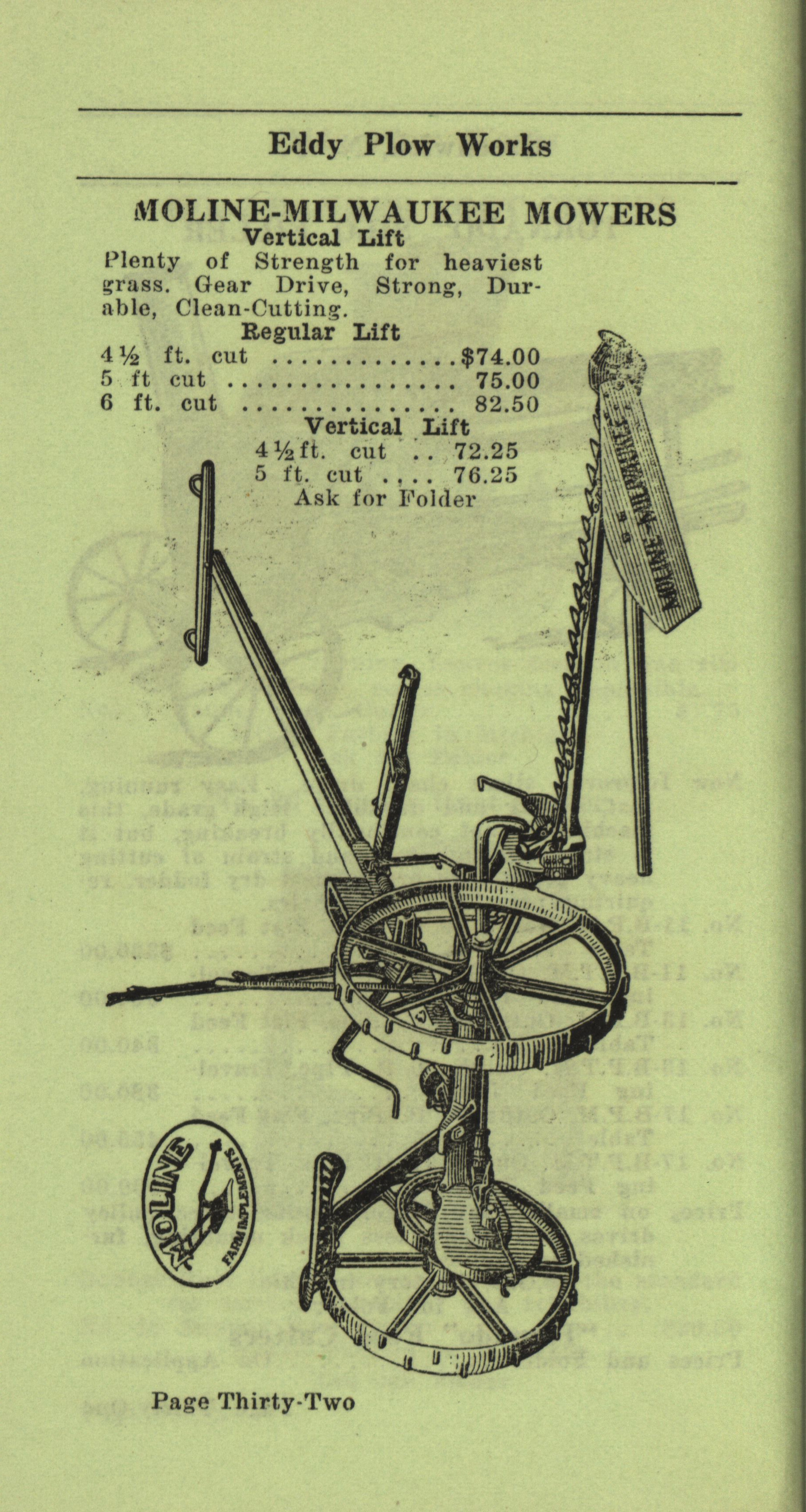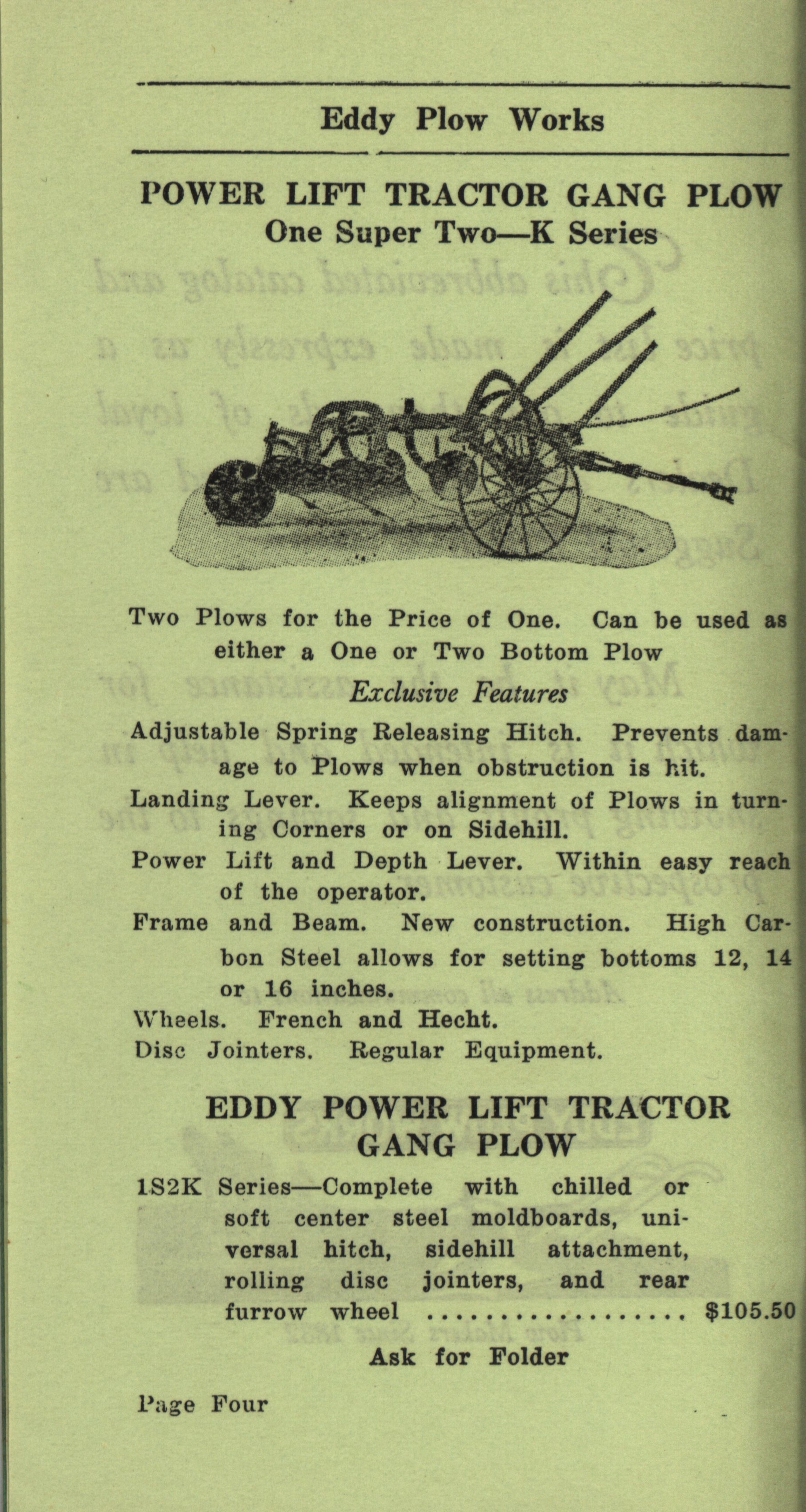 - "Eddy Plow Works Price List No. 44", Agricultural Machinery Literature Collection, Iowa State University Library Digital Collections