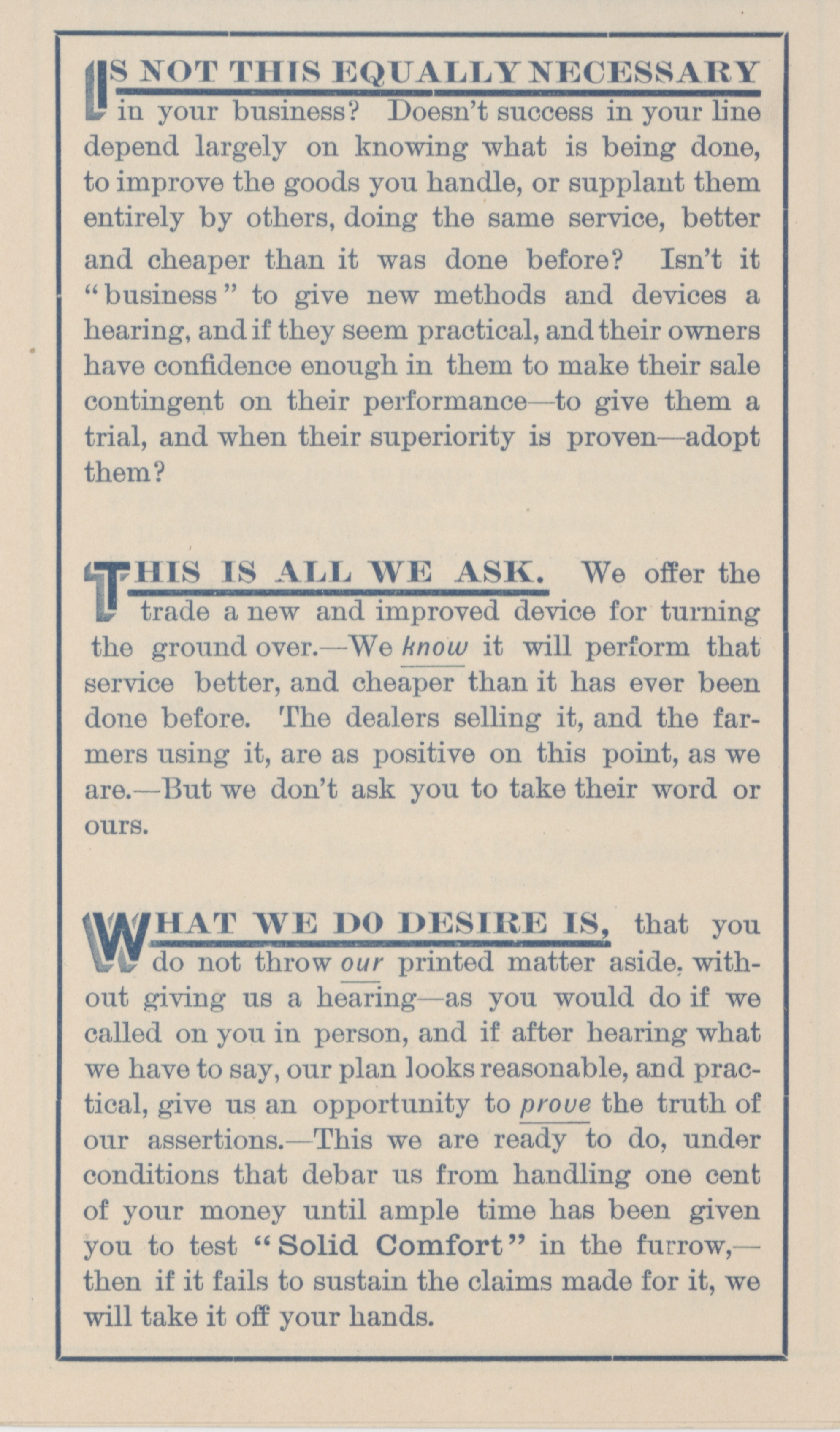 - "Solid Shot Hot from the Muzzle advertisement pamphlet", Agricultural Machinery Literature Collection, Iowa State University Library Digital Collections