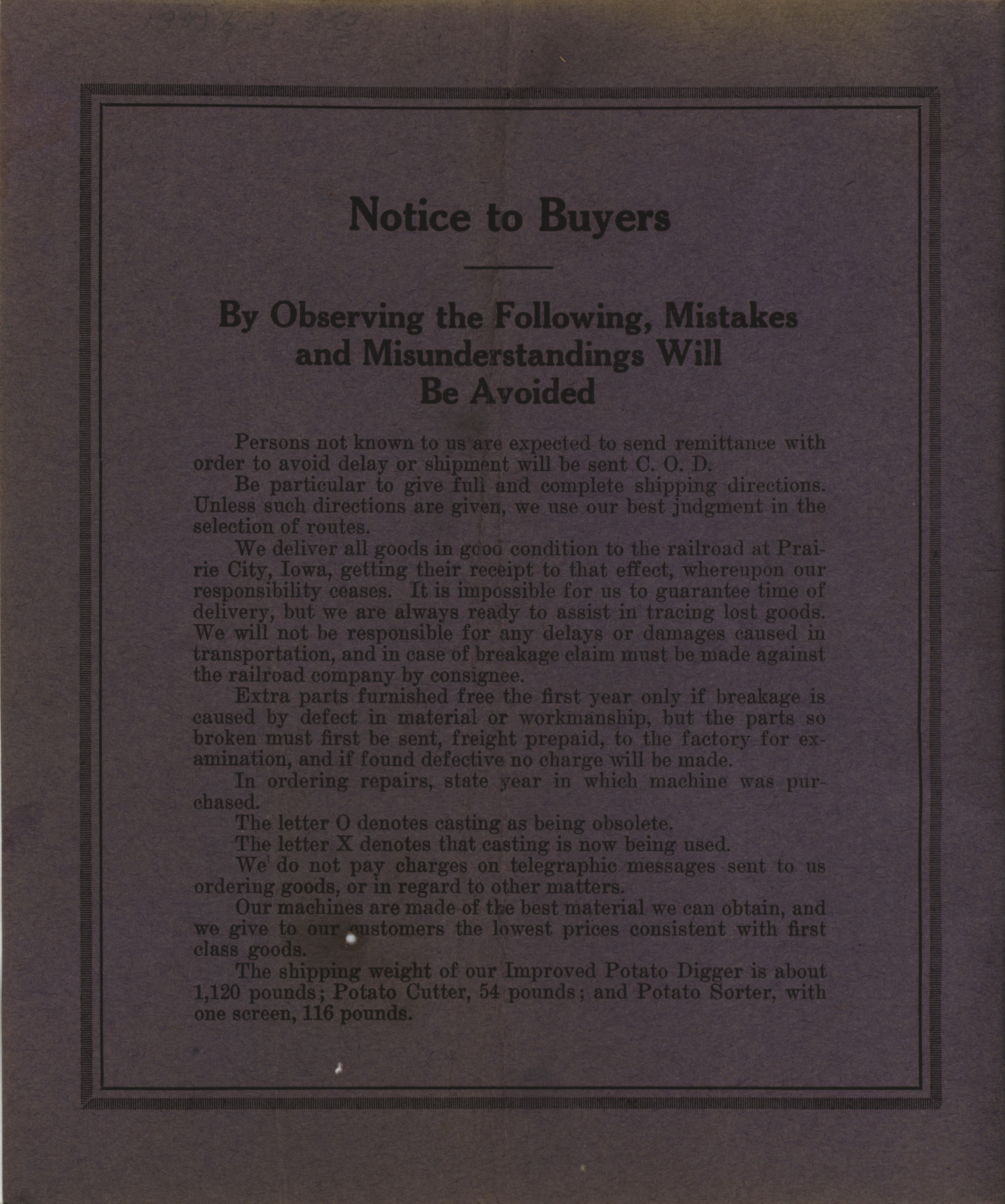 - Illustrated price list for the agricultural implements and related products offered by Dowden Manufacturing Company in 1920-1921.