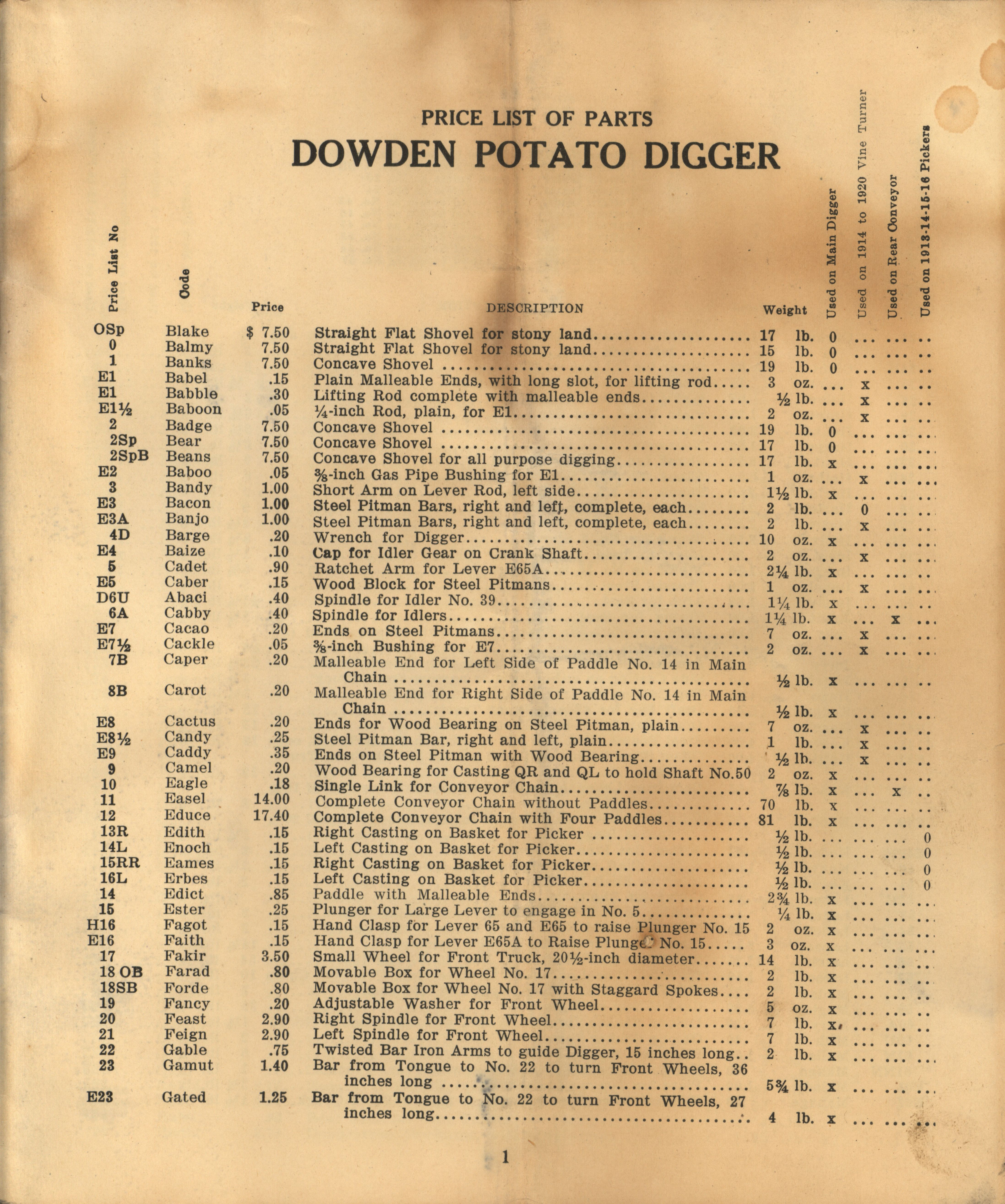 - "Dowden Manufacturing Company 1920-1921 price list;text", Agricultural Machinery Literature Collection, Iowa State University Library Digital Collections