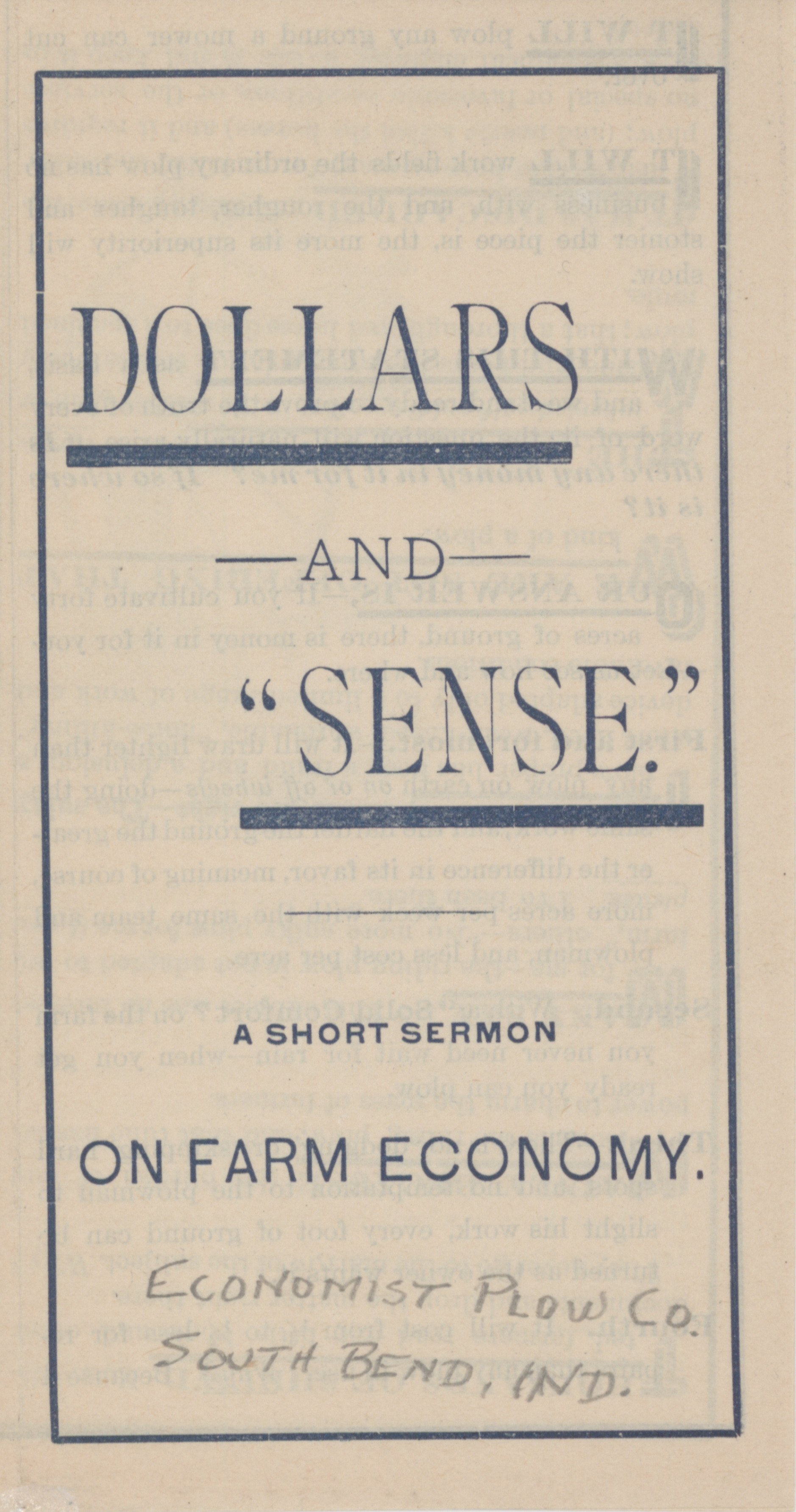 - Economist Plow Company "Dollars and Sense on Farm Economy" pamphlet