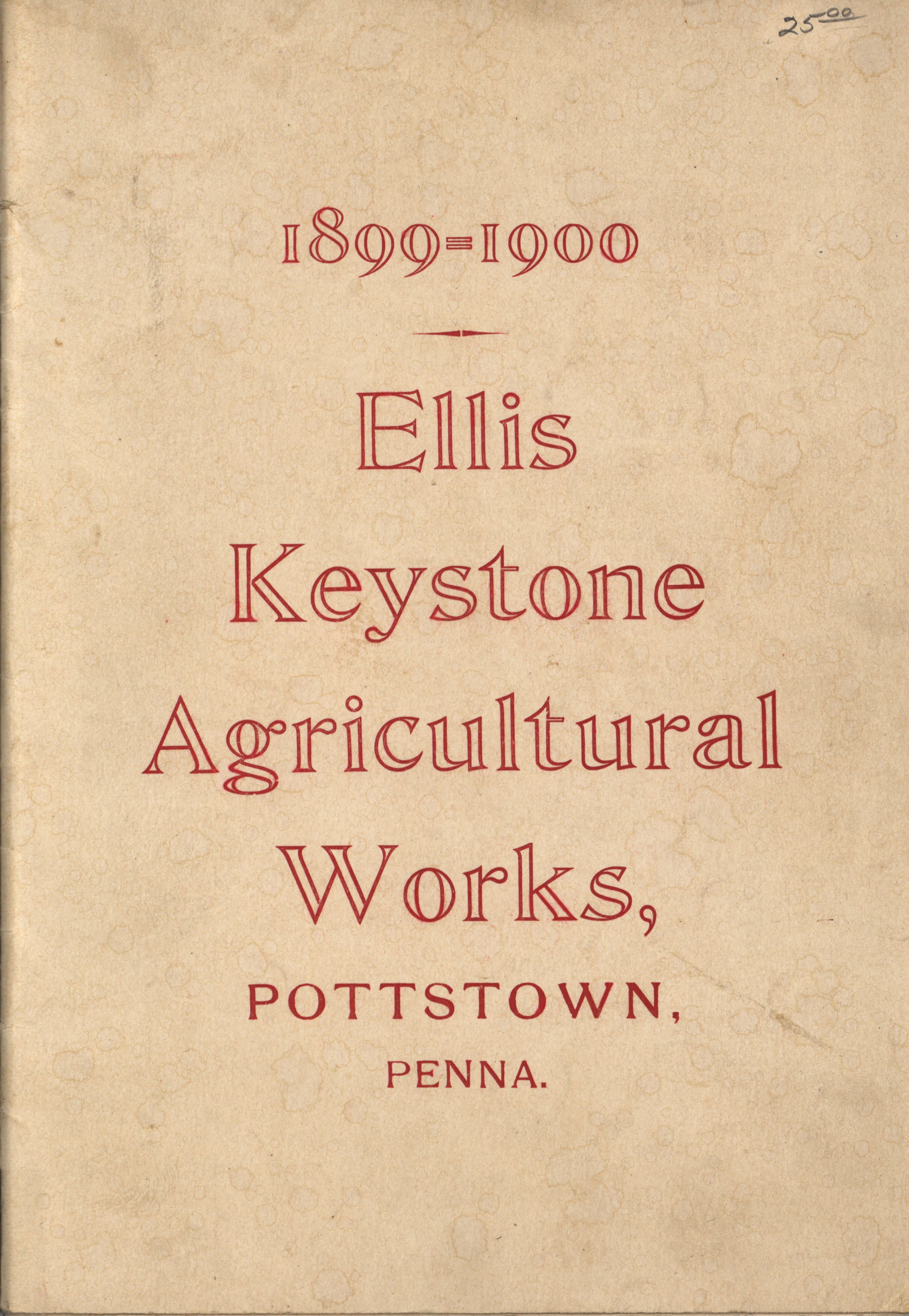 - Illustrated catalog describing the agricultural implements offered by Ellis Keystone Agricultural Works during 1899-1900.