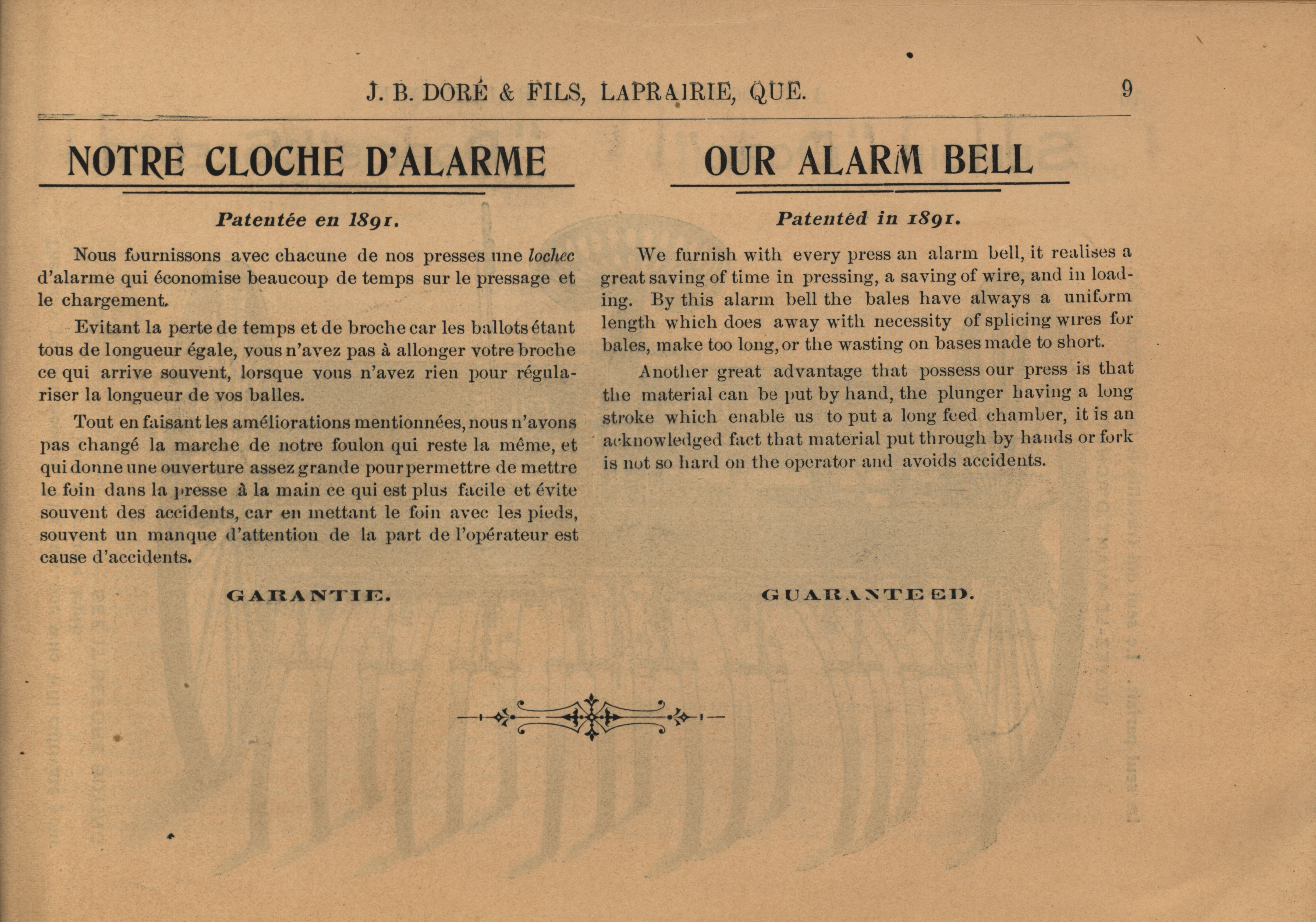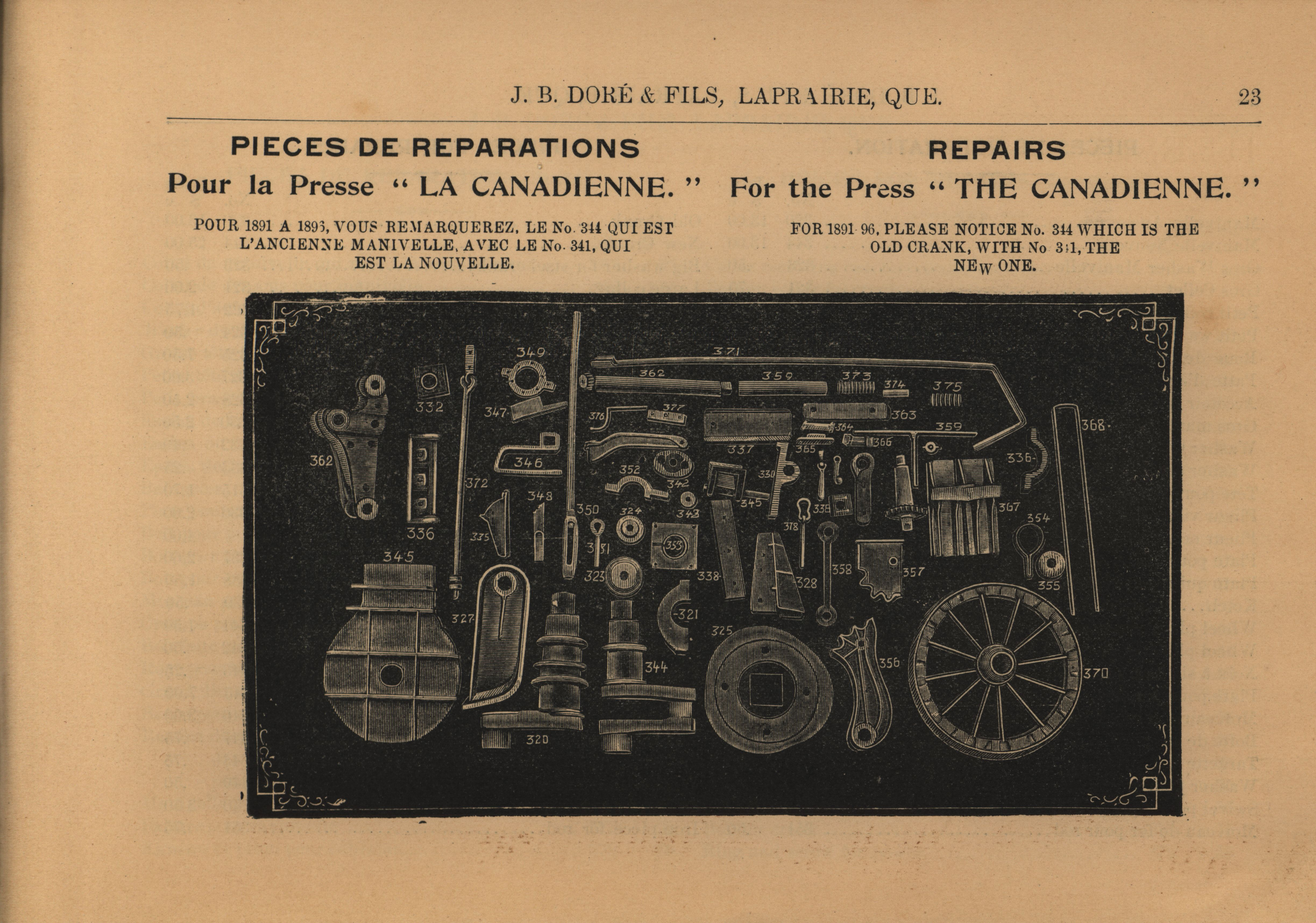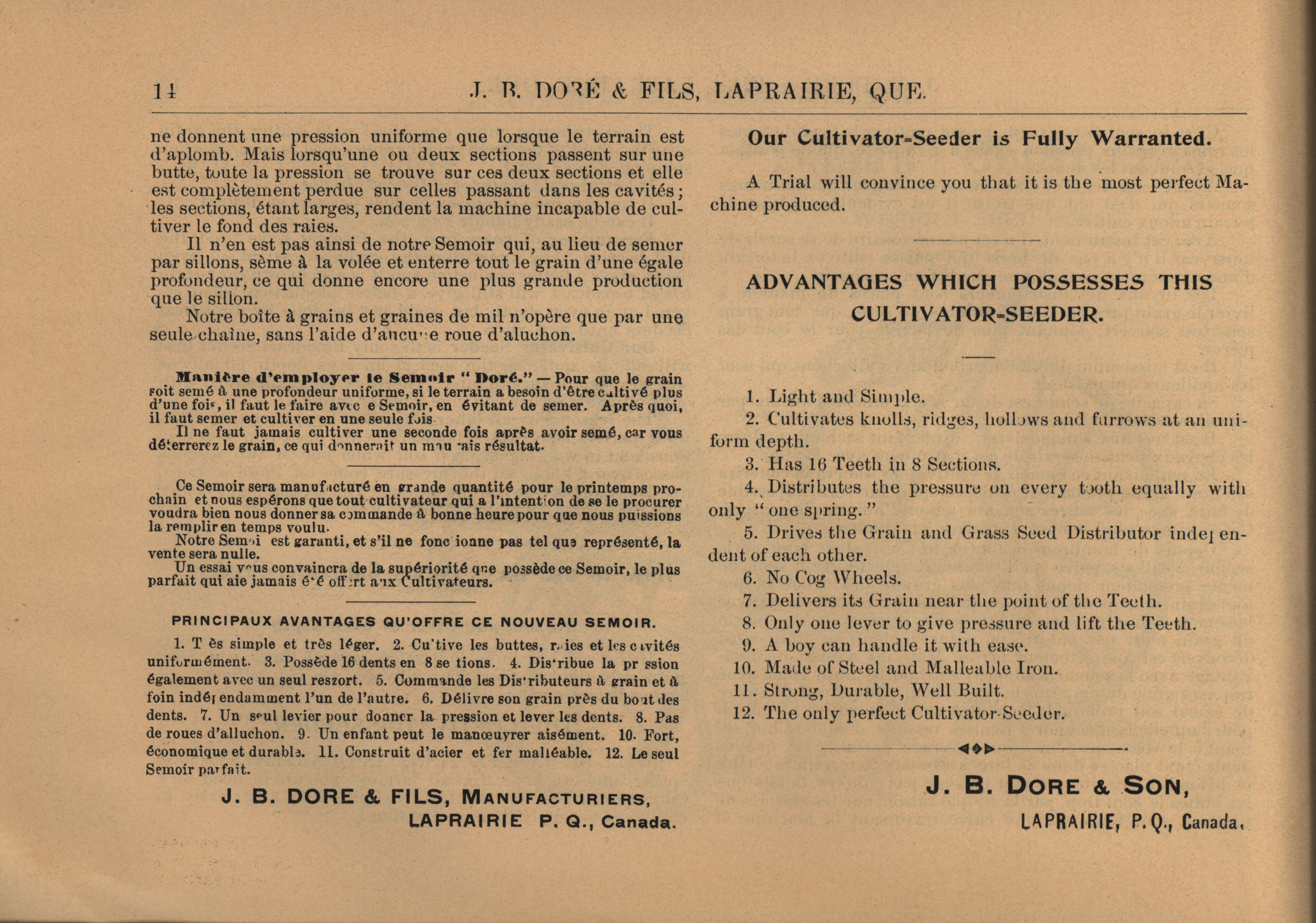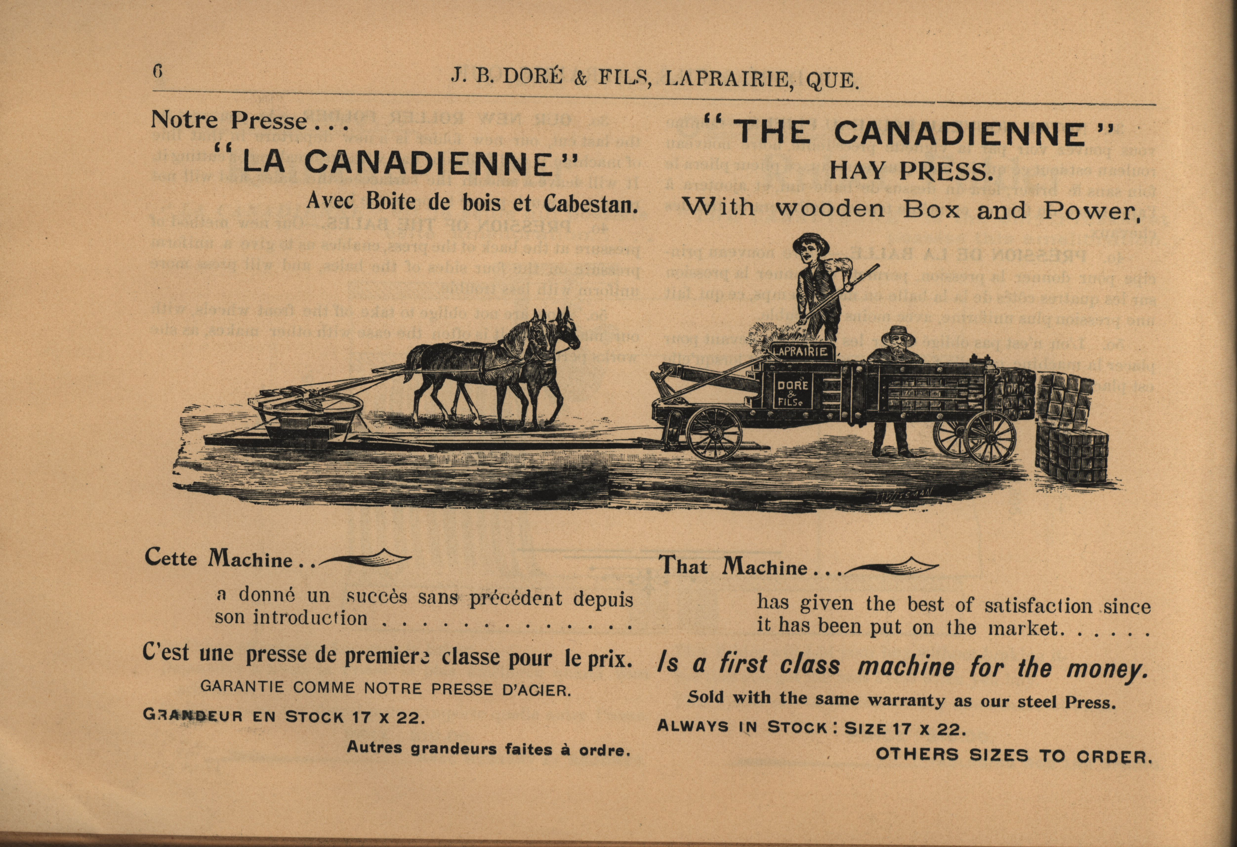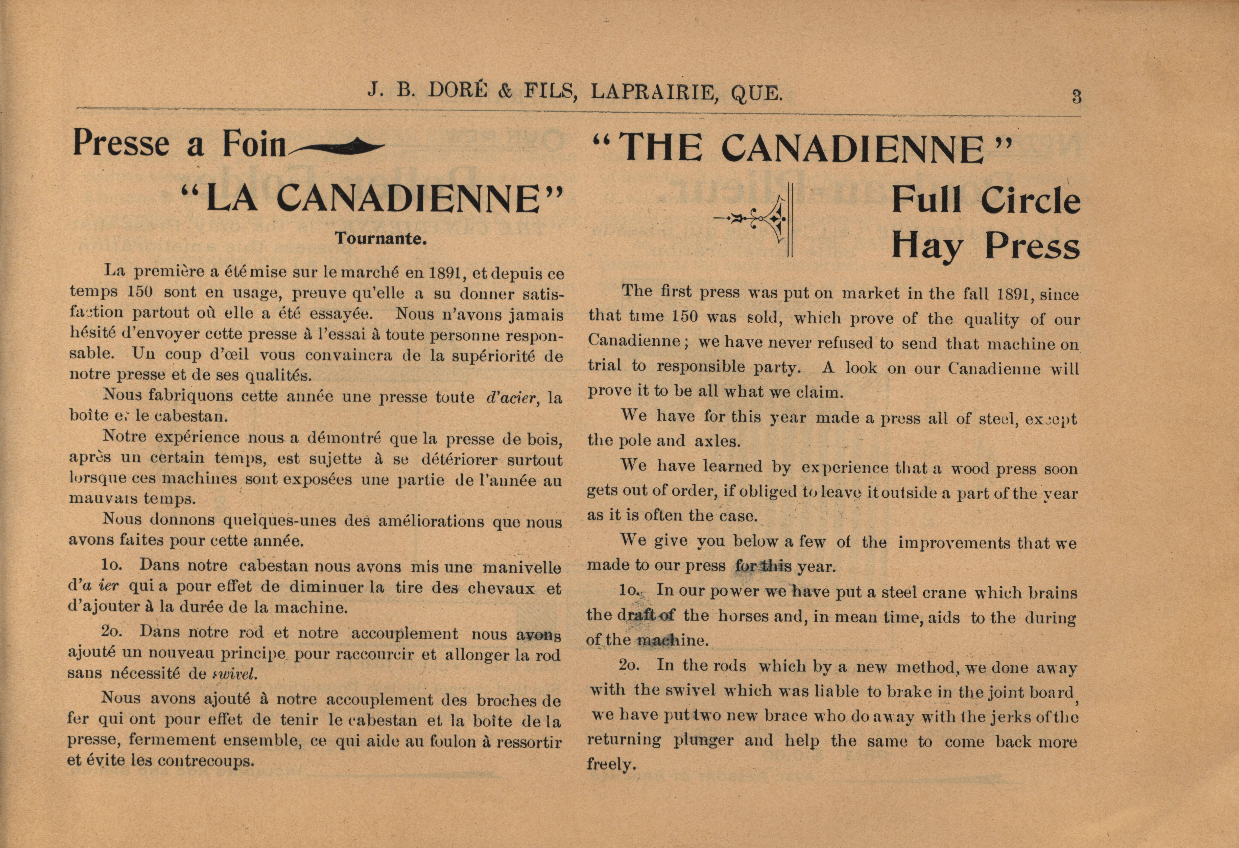 - Illustrated catalog describing the farm implements offered by J. B. Dore and Sons in 1896.