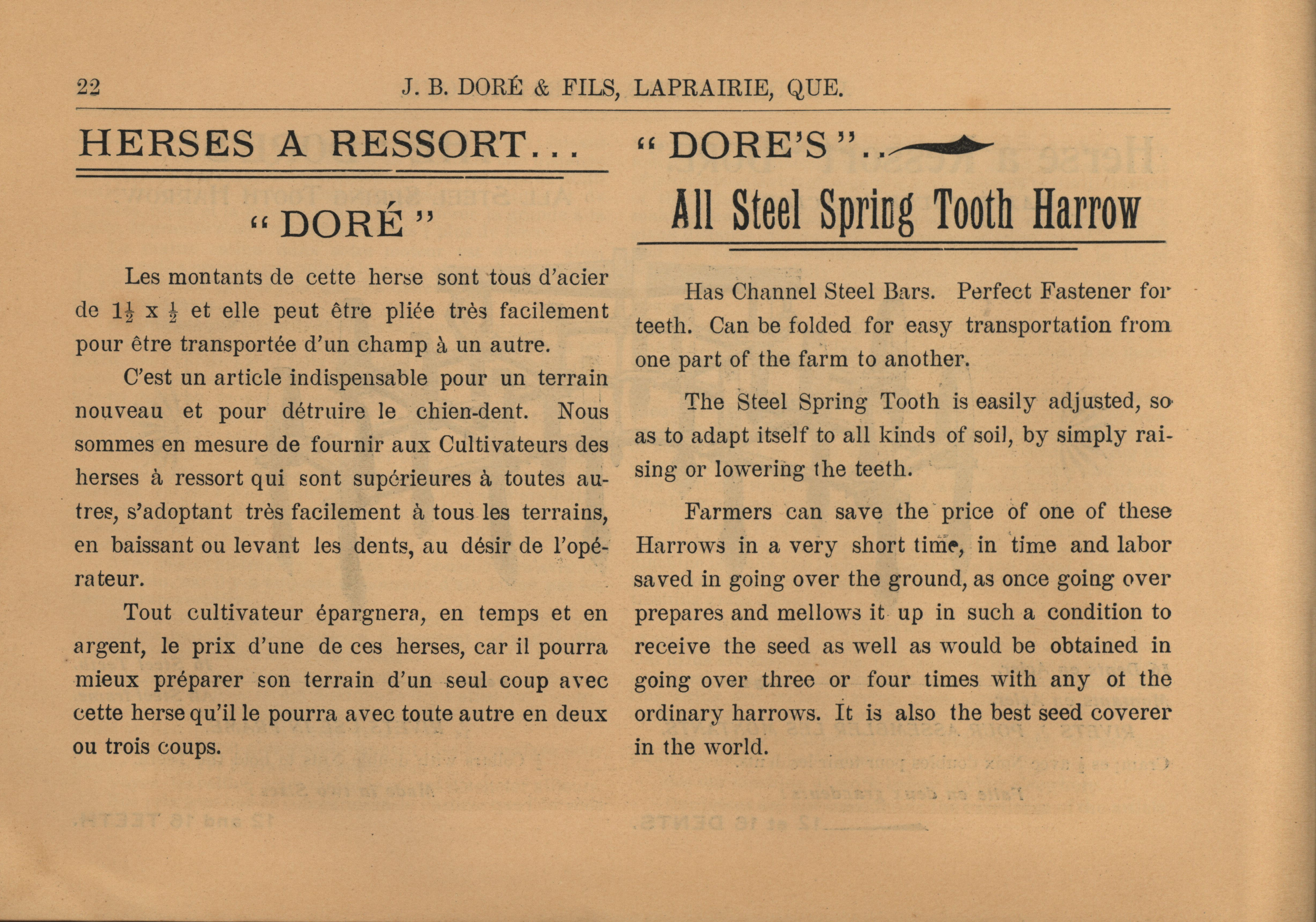 - "J. B. Dore and Son Farm Implements catalog", Agricultural Machinery Literature Collection, Iowa State University Library Digital Collections