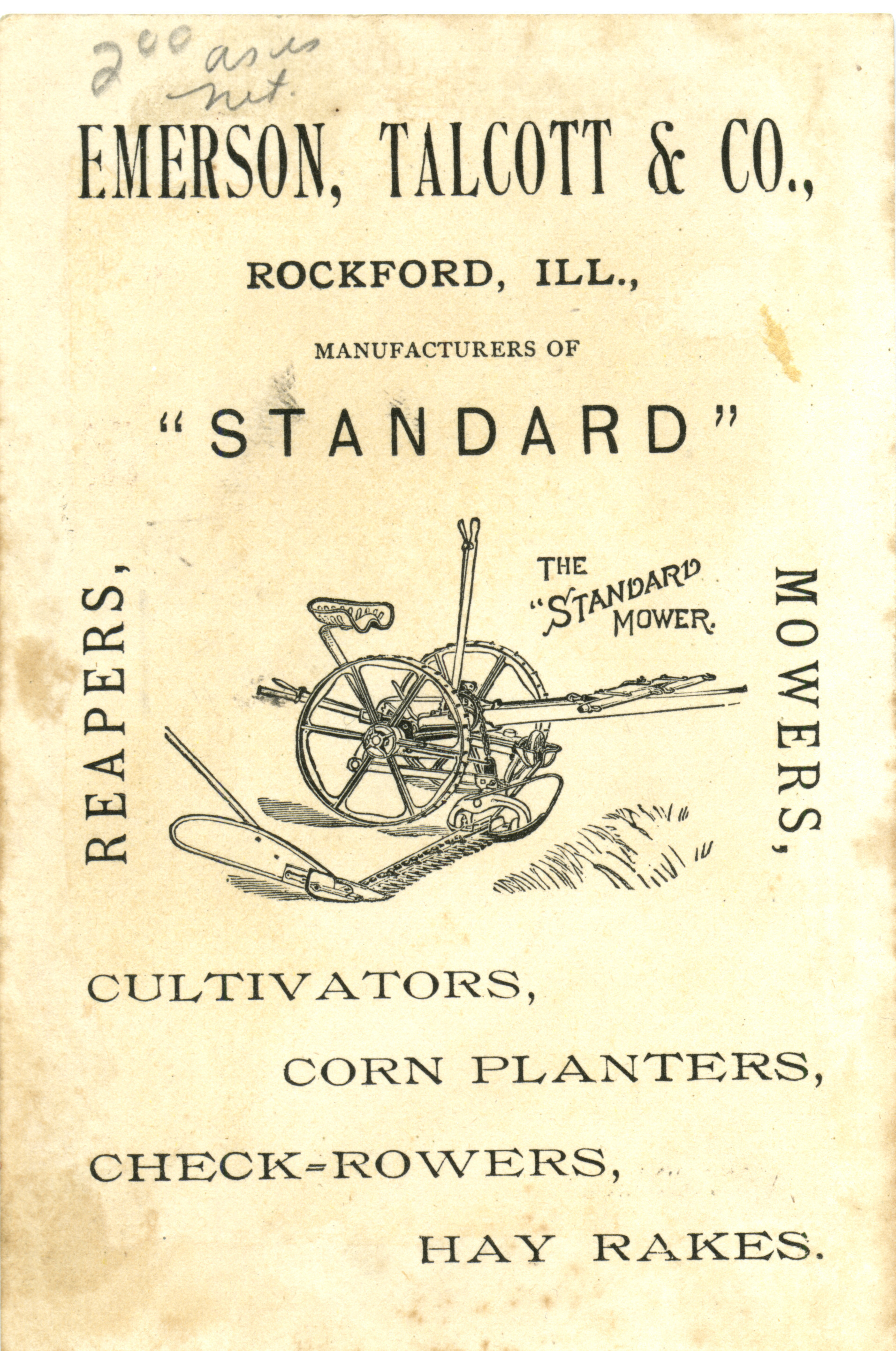 - "Emerson, Talcott and Company advertisement card", Agricultural Machinery Literature Collection, Iowa State University Library Digital Collections
