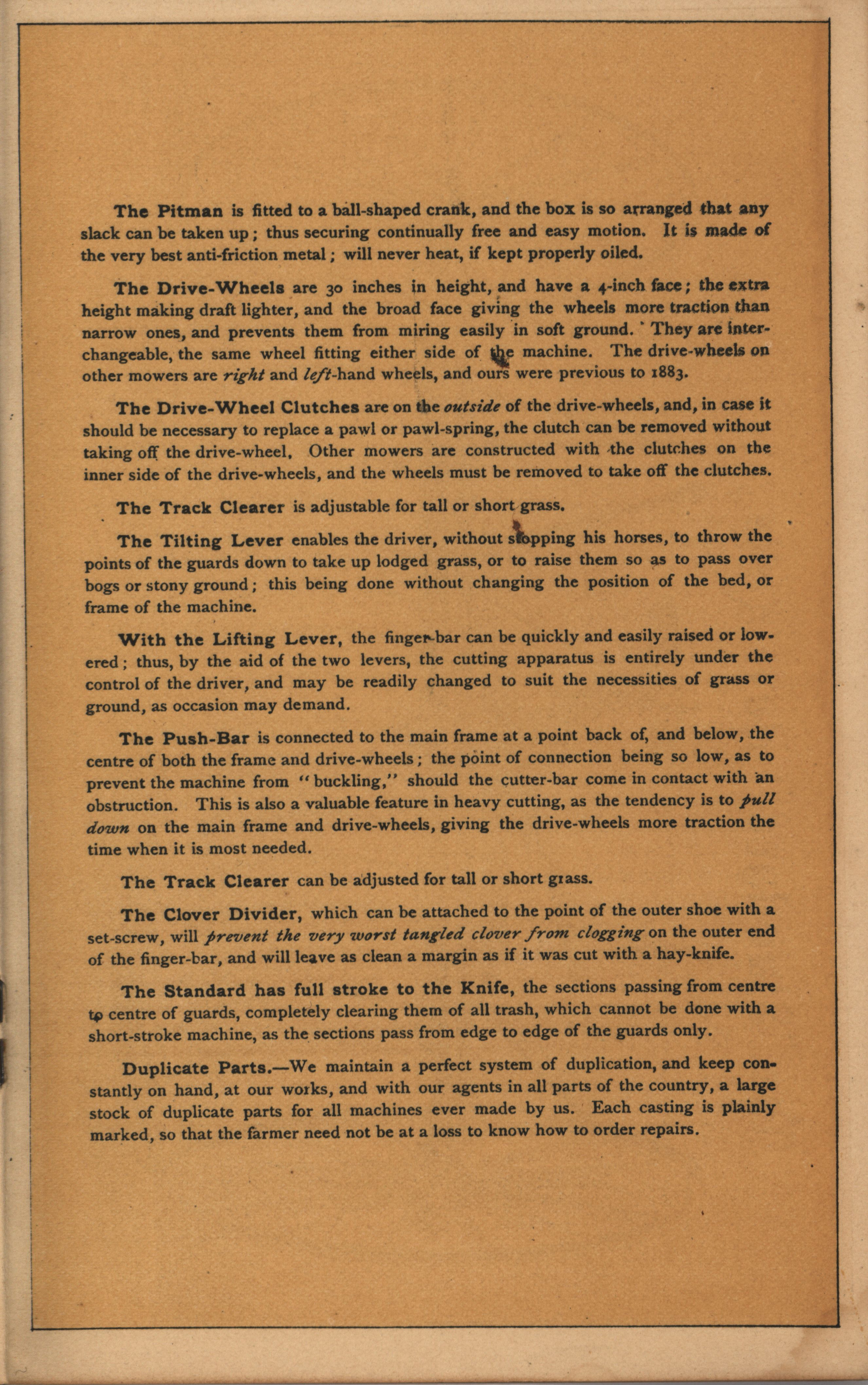 Emerson, Talcott and Company hay rake and mower catalog Item Info