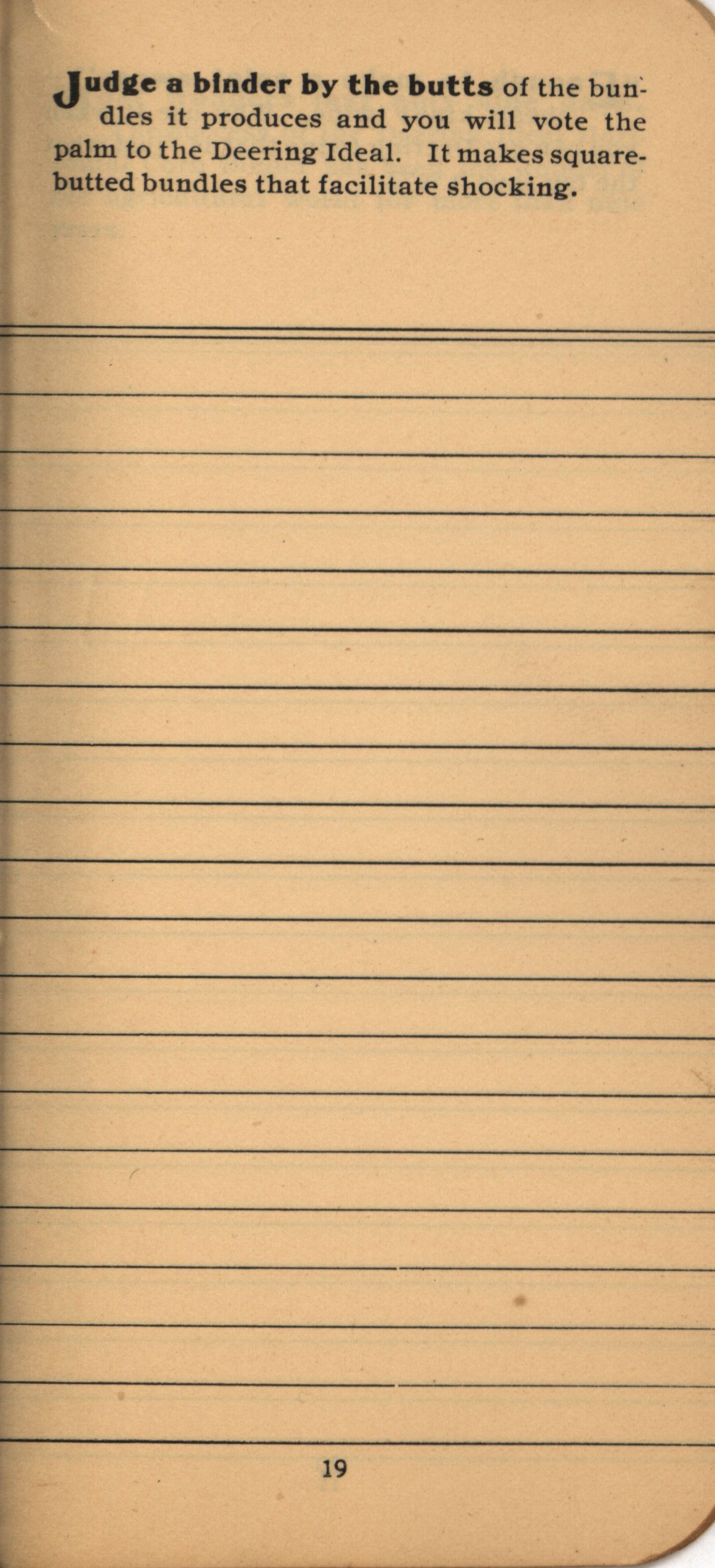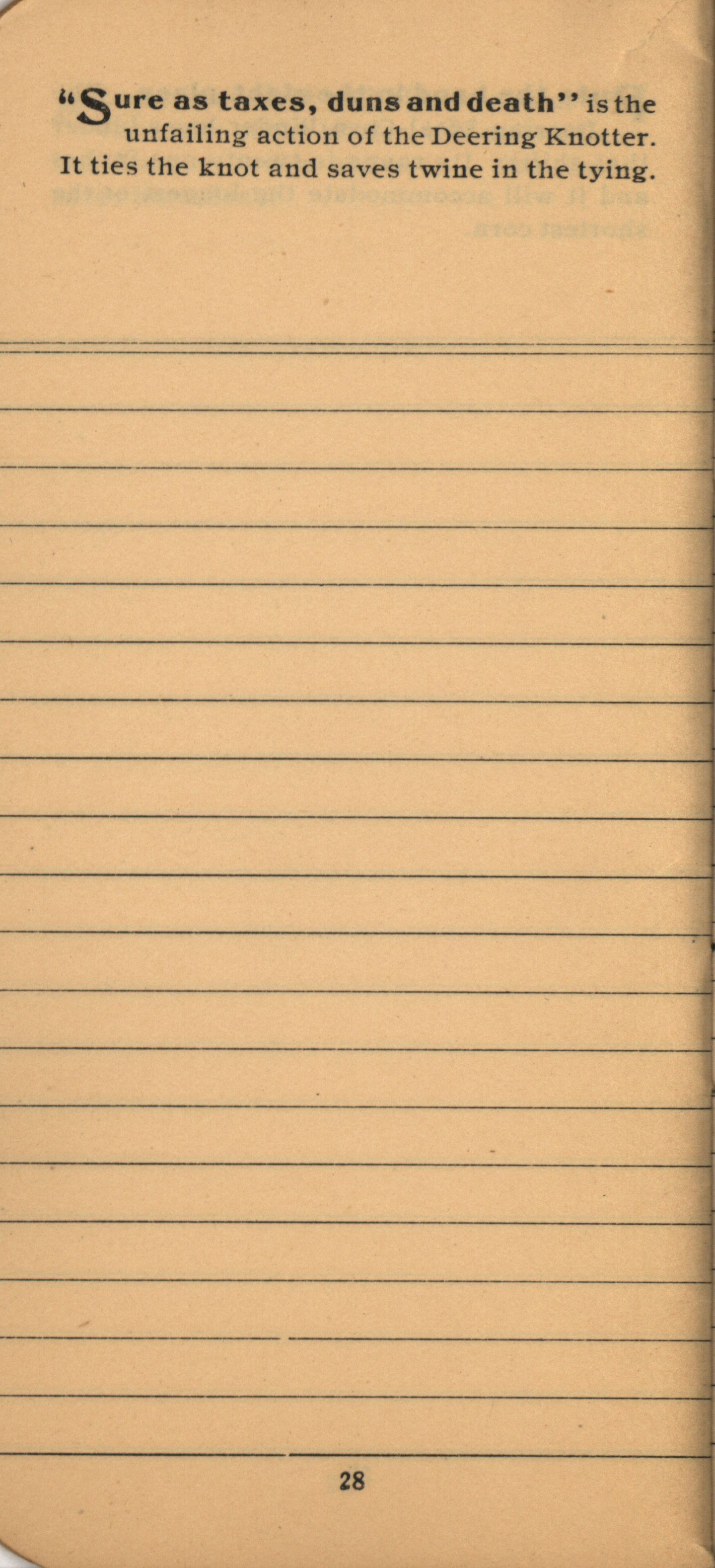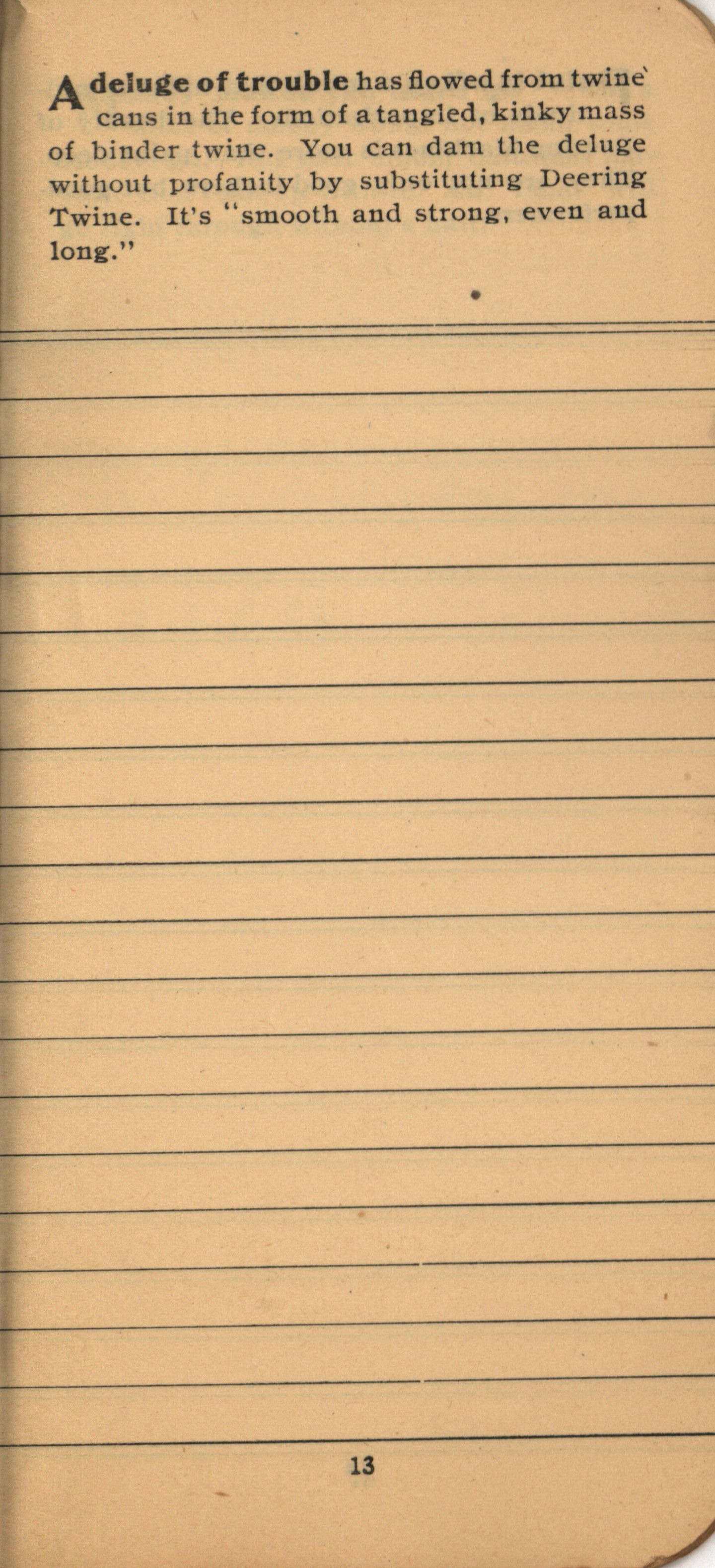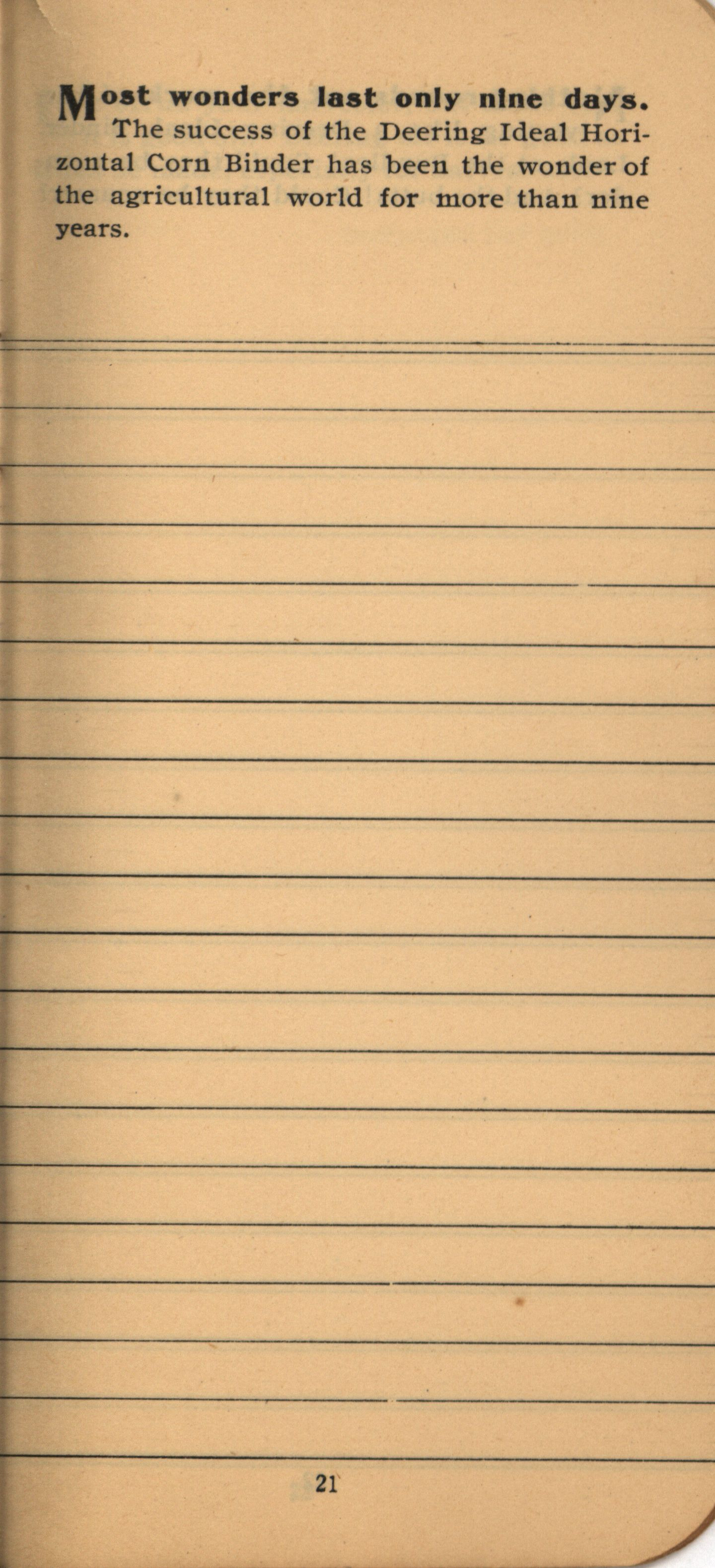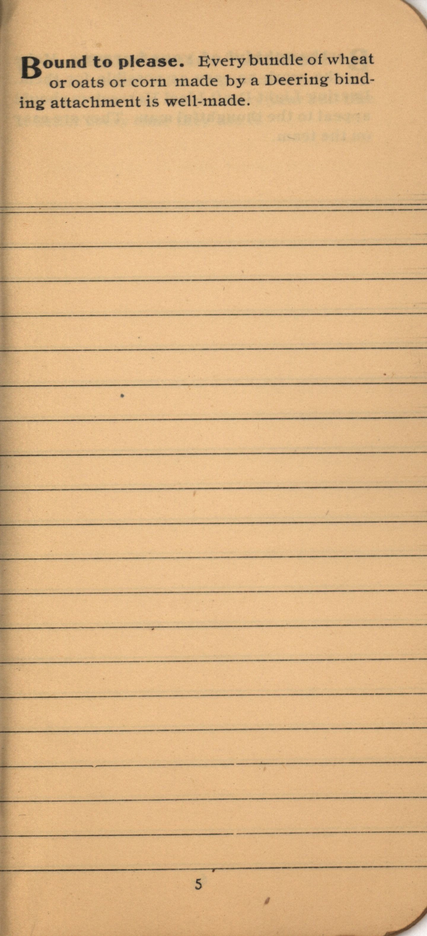 - Pocket notebook offered by William Deering and Company for advertisement purposes including a calendar and other useful information for farmers.
