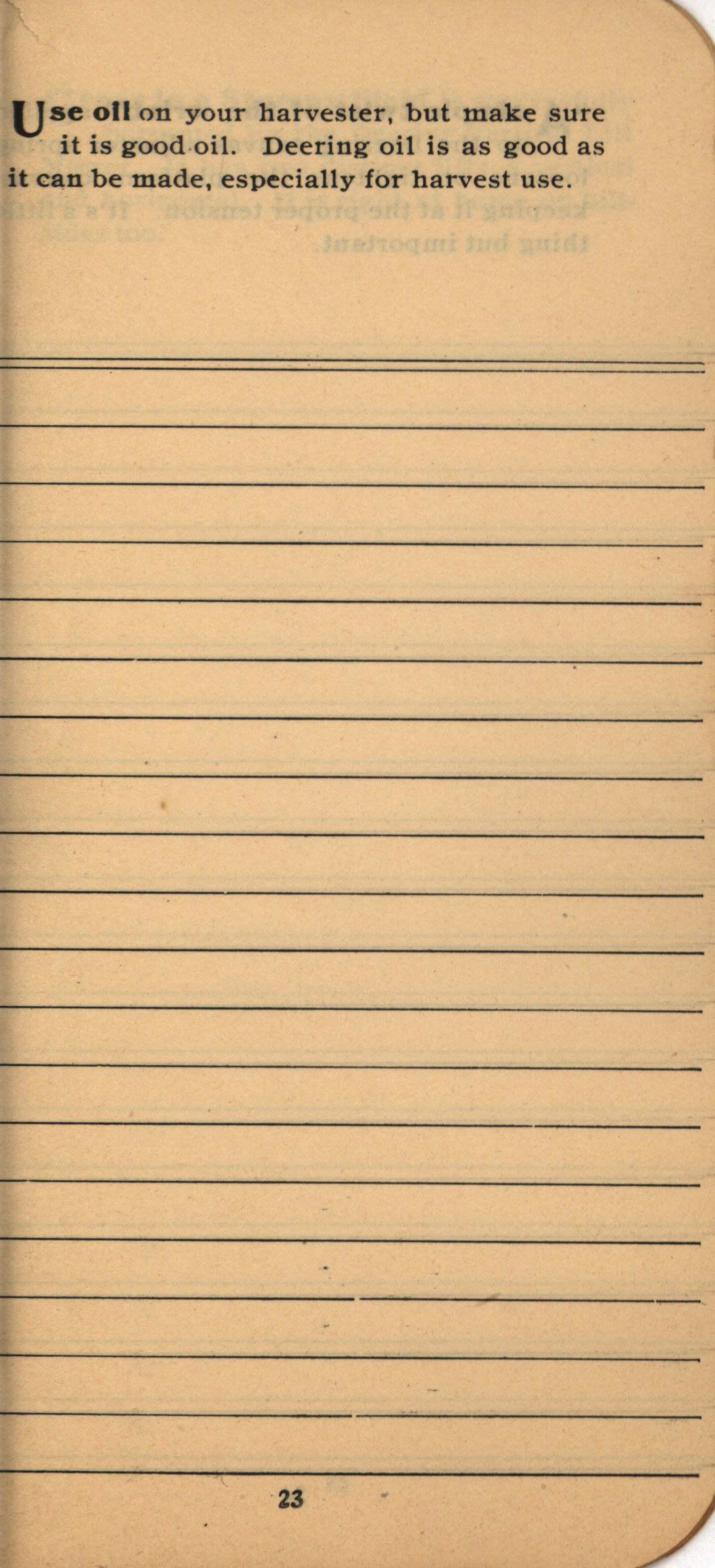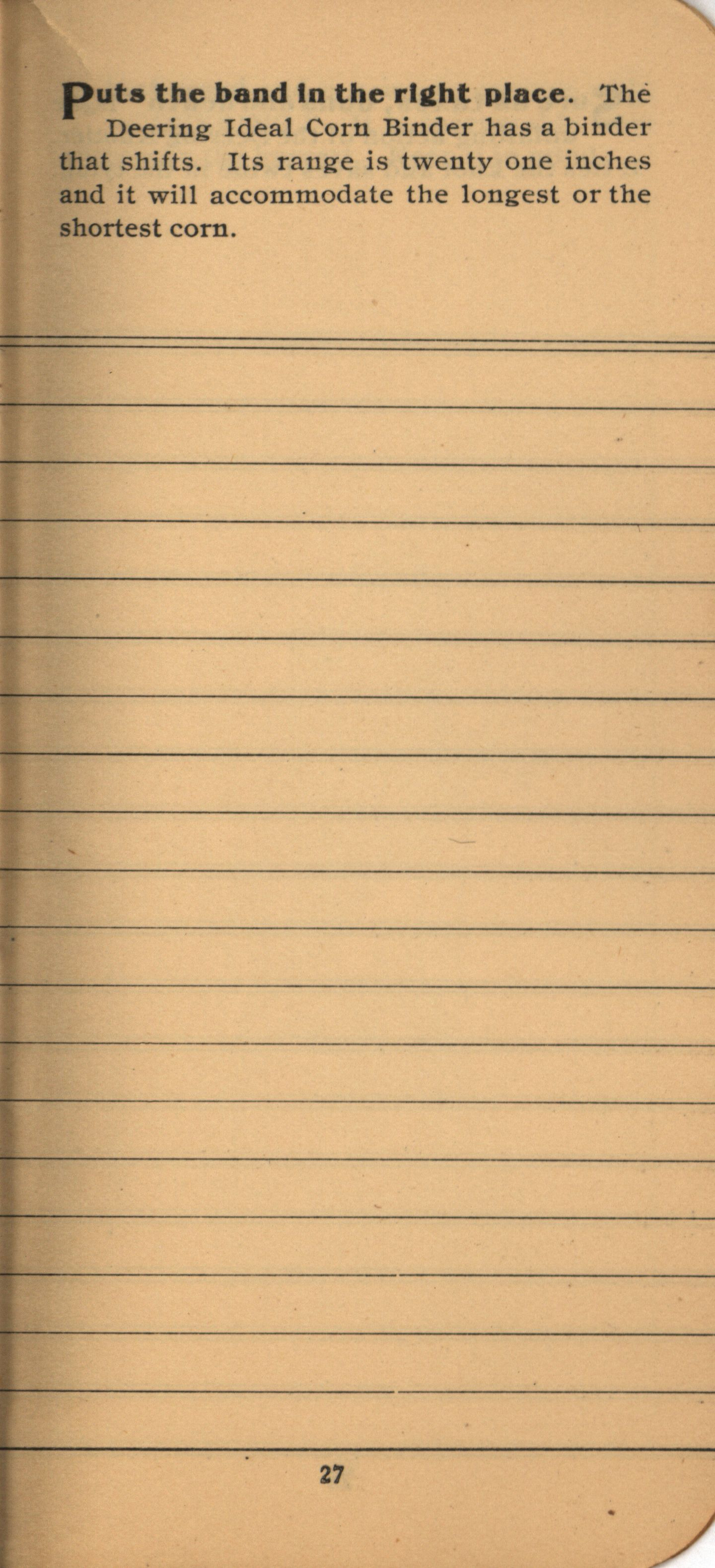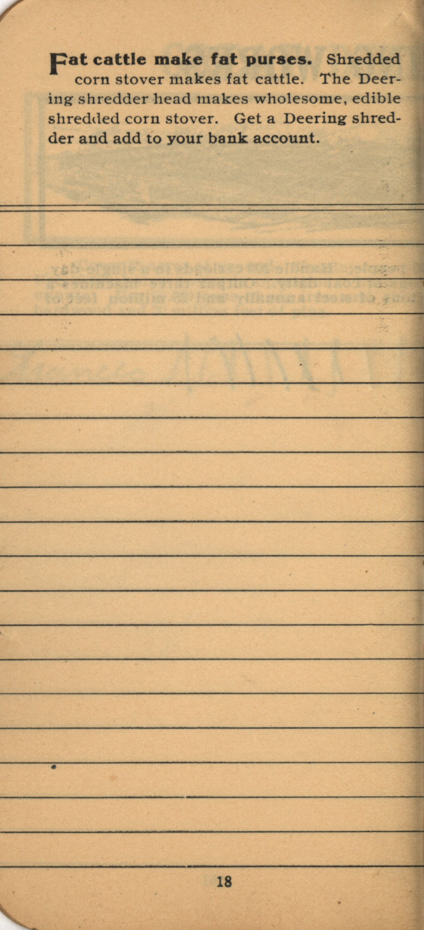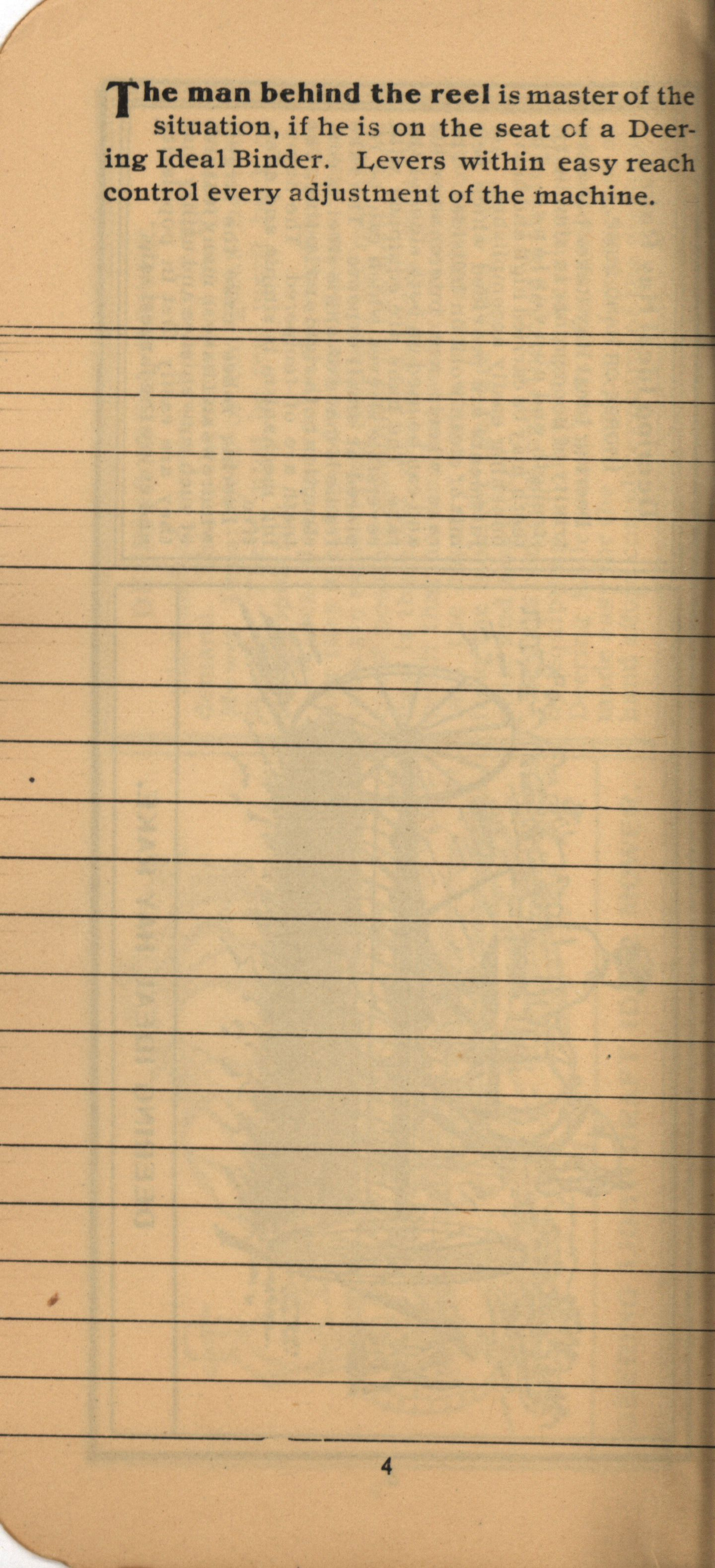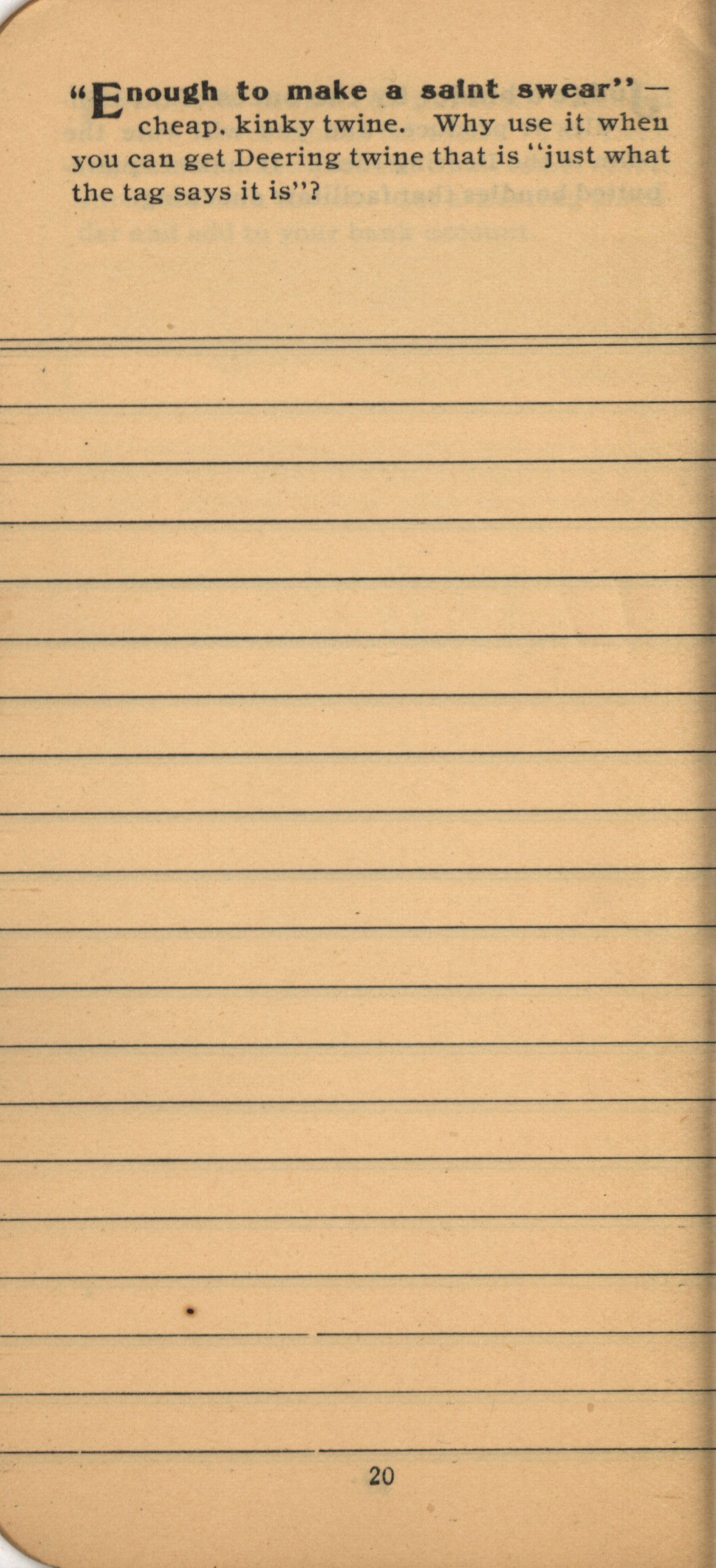 - Pocket notebook offered by William Deering and Company for advertisement purposes including a calendar and other useful information for farmers.
