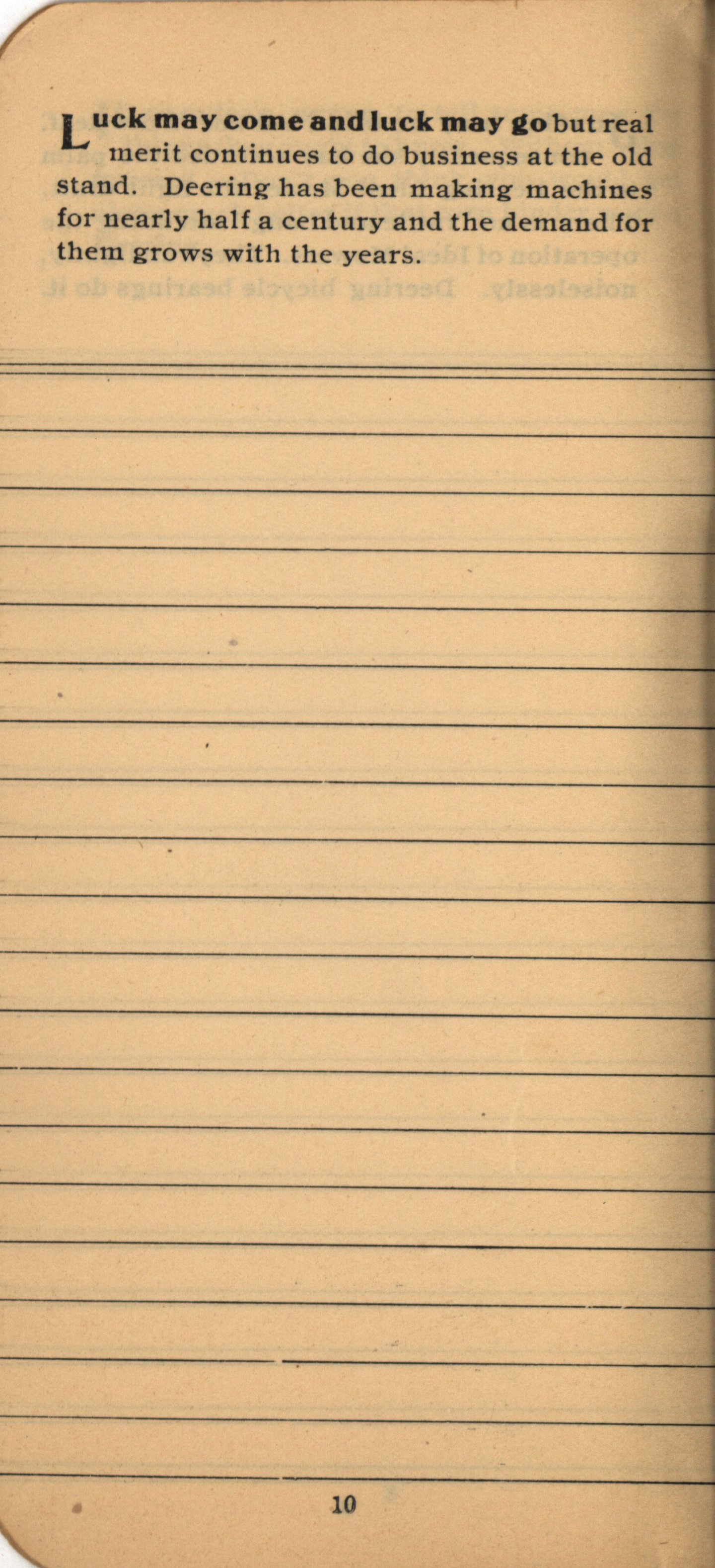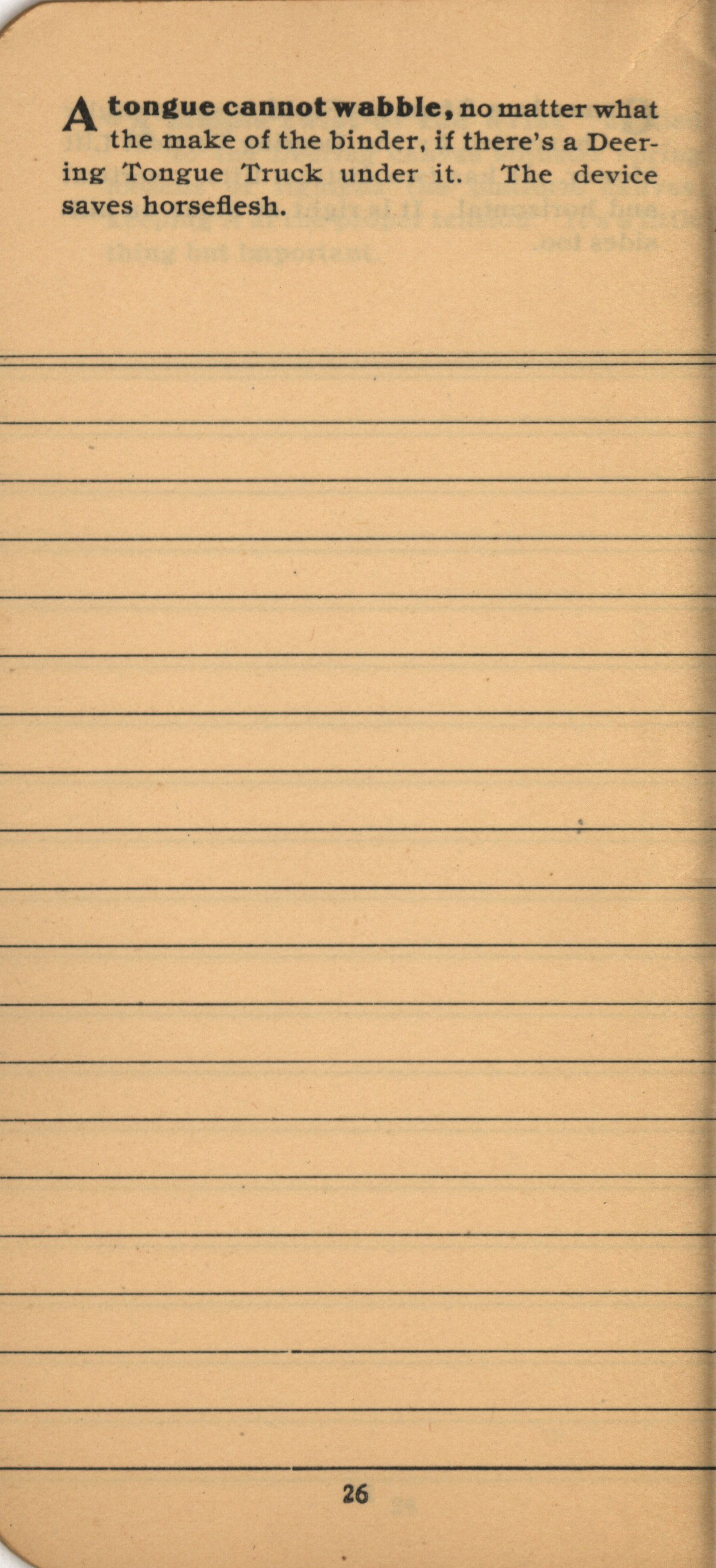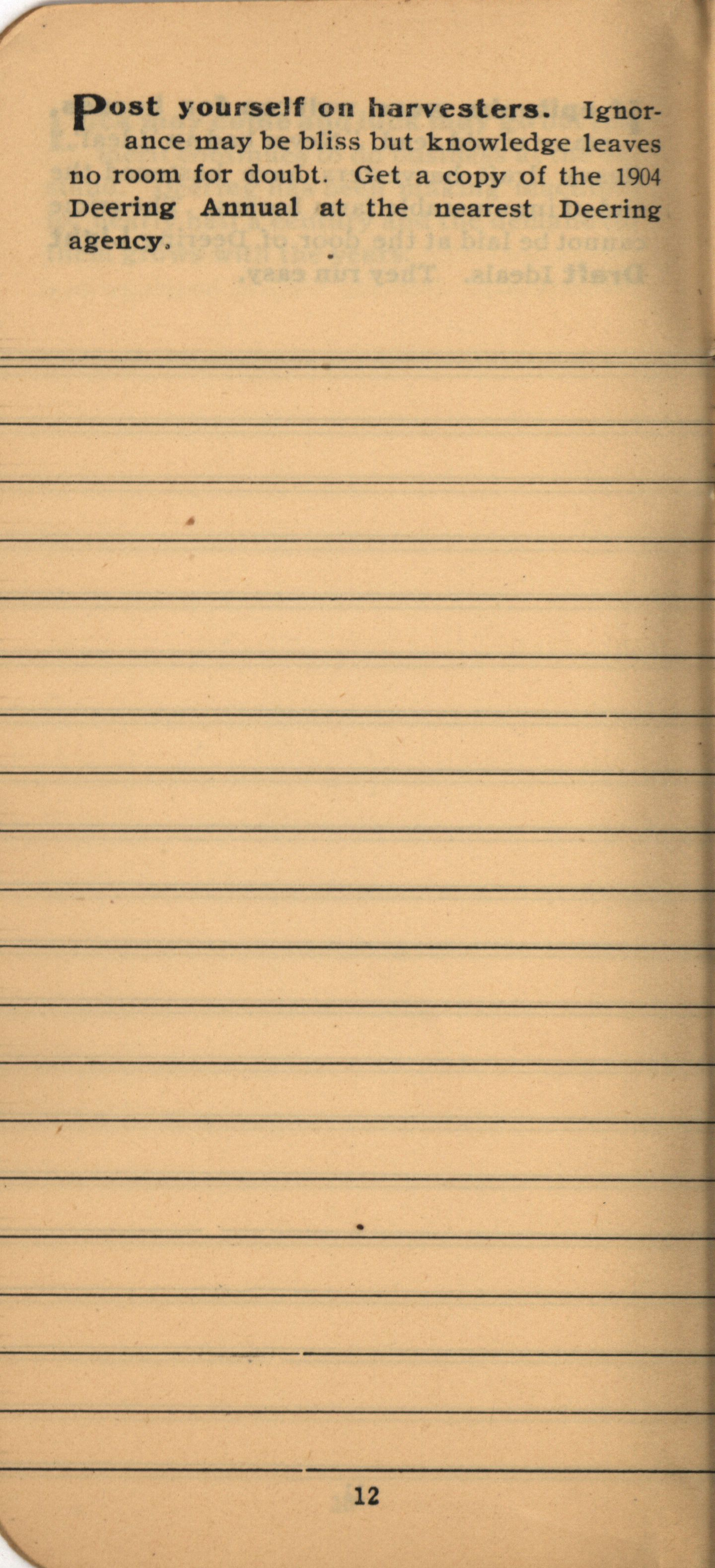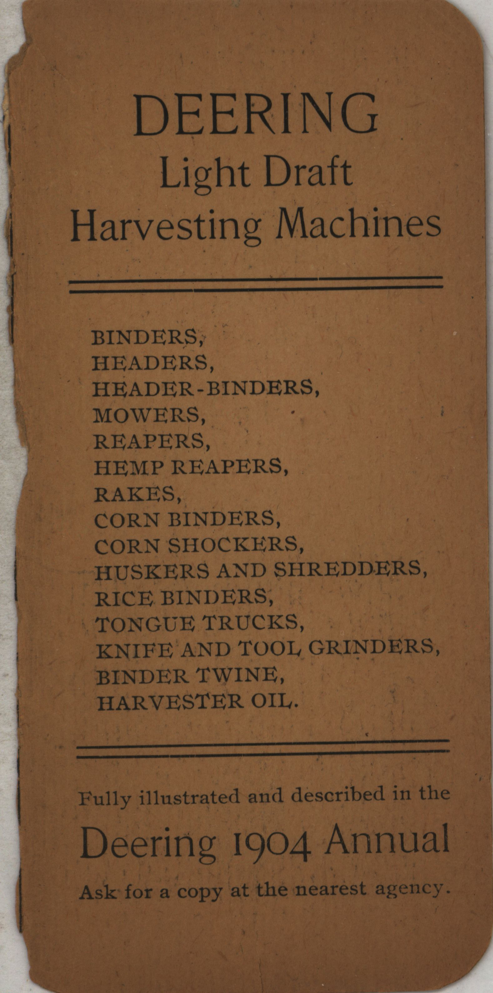 - "William Deering and Company Deering pocket memoranda", Agricultural Machinery Literature Collection, Iowa State University Library Digital Collections